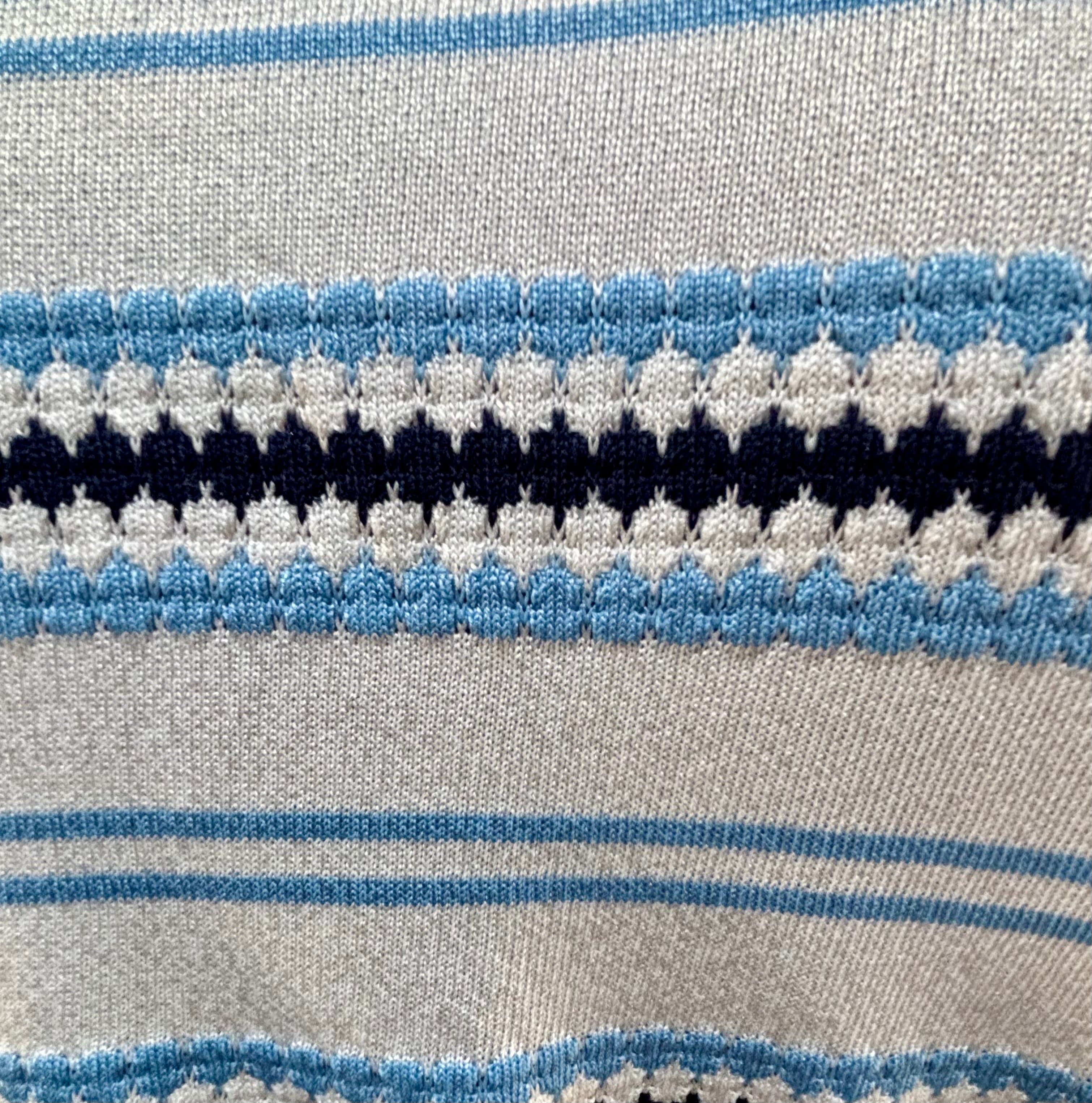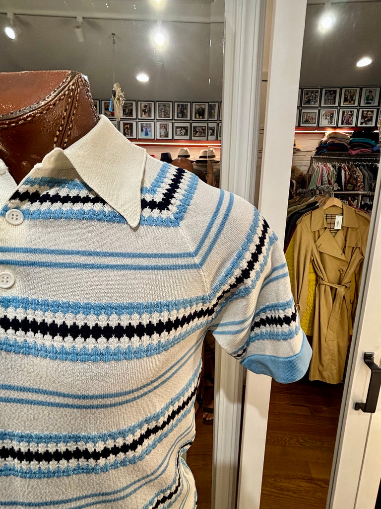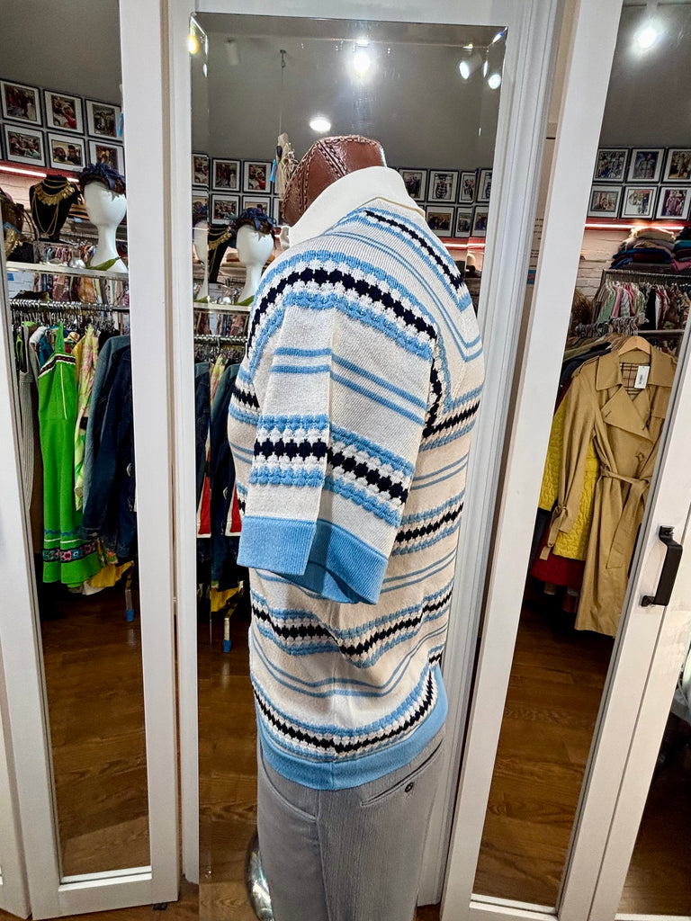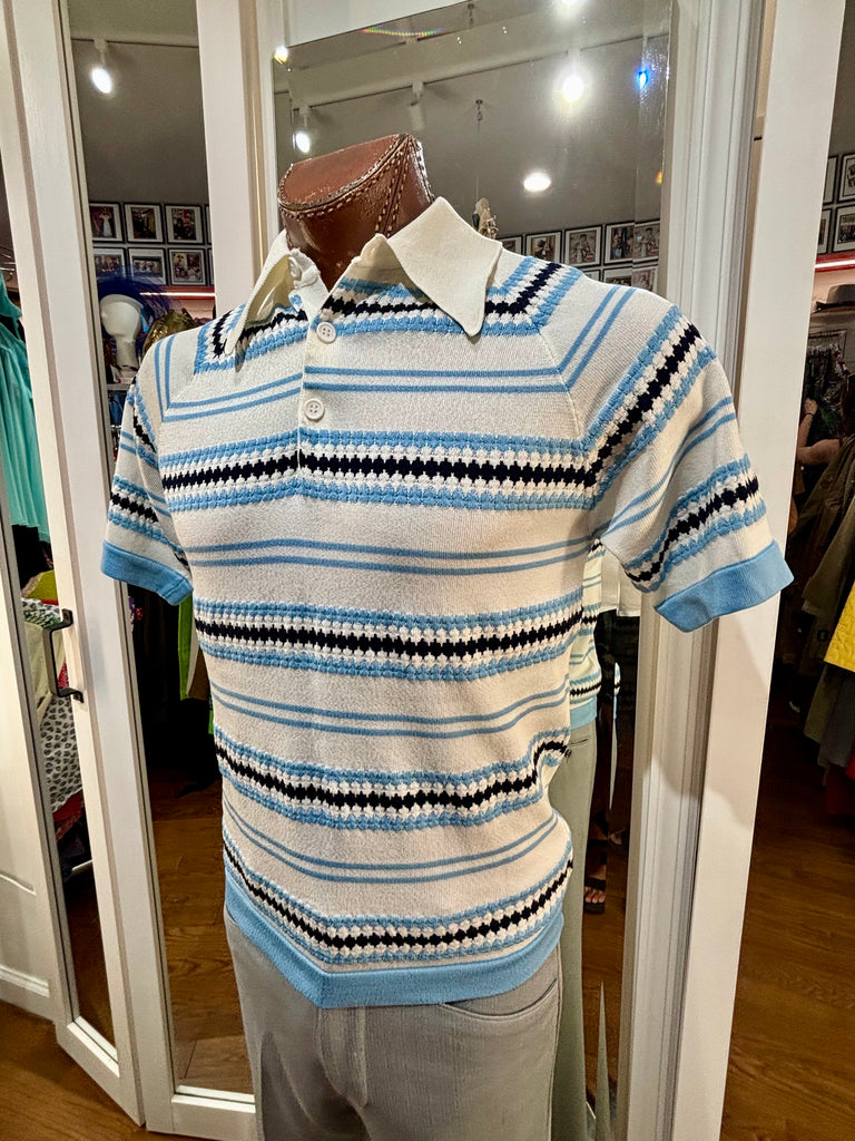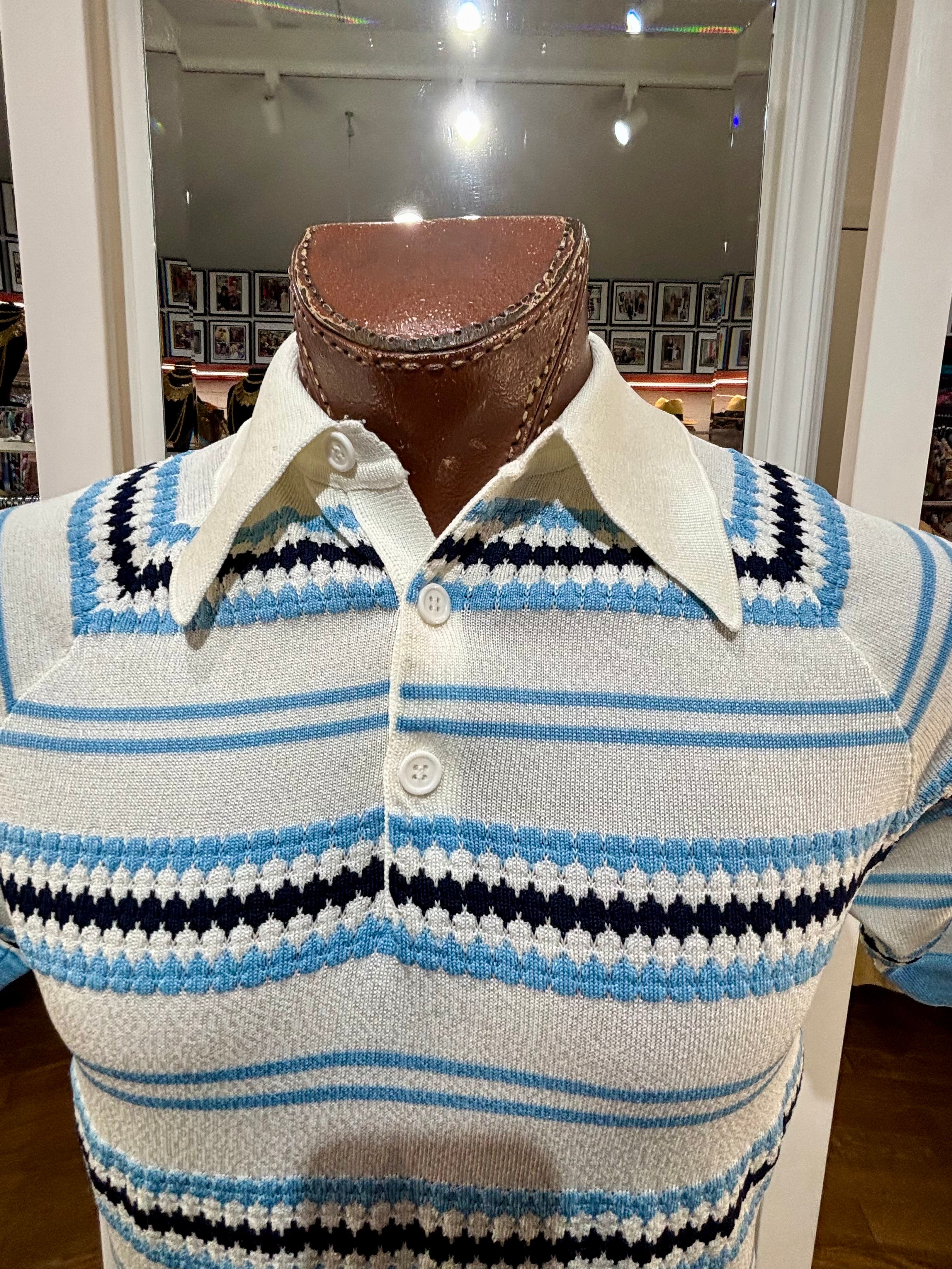 60’s White And blue Multicolored Stripes Textured Collared Polo By Donegal Coleseta