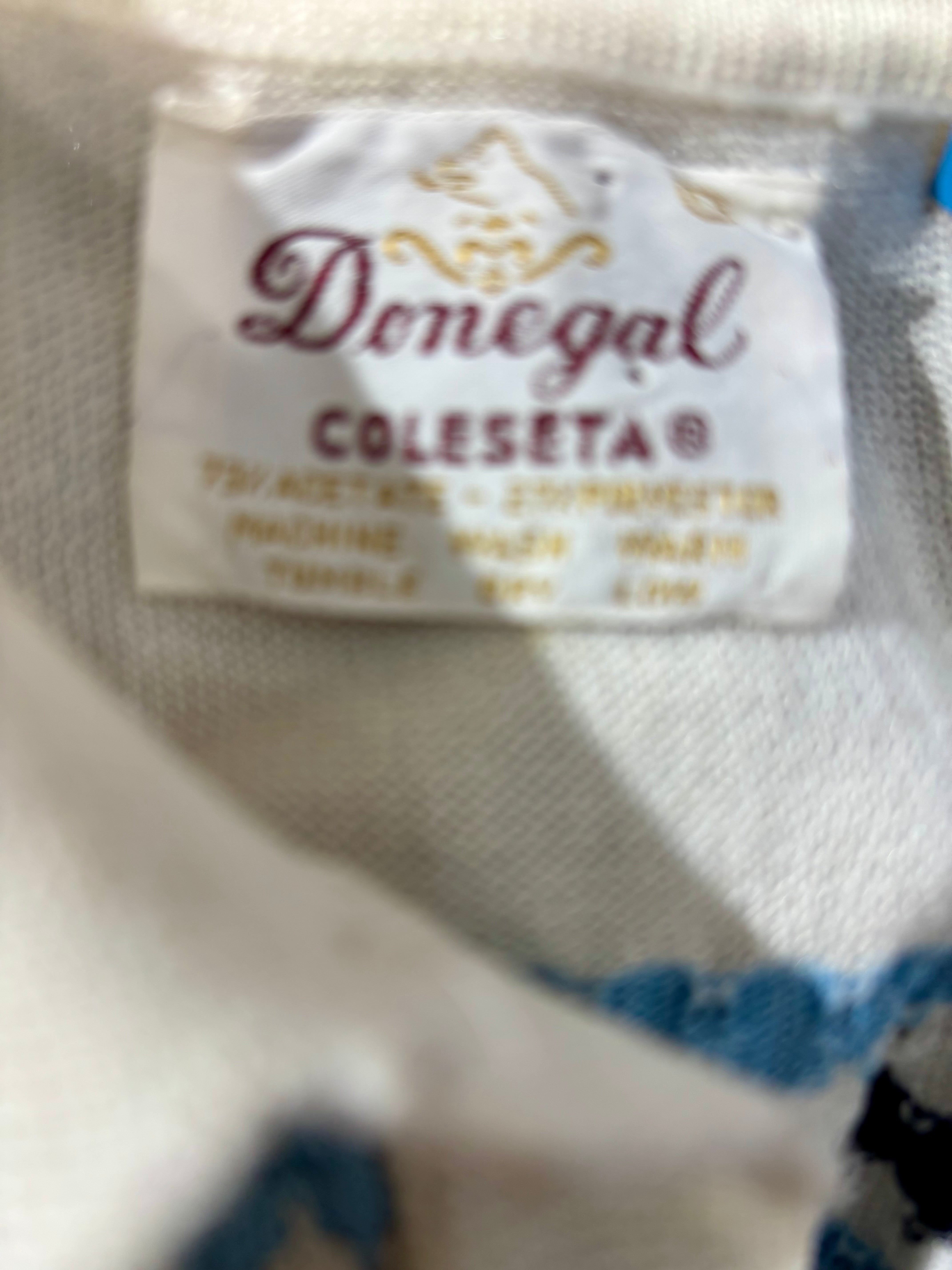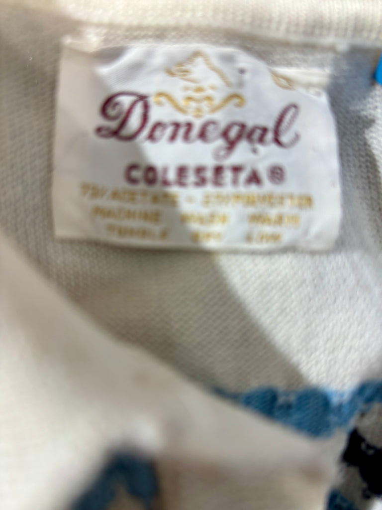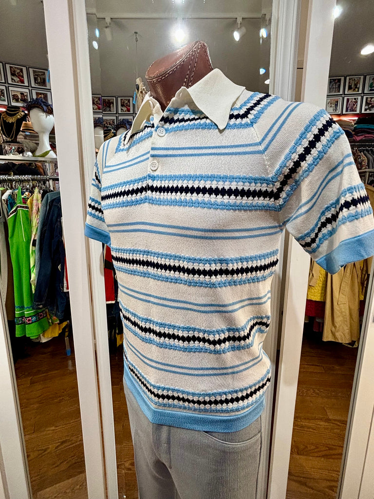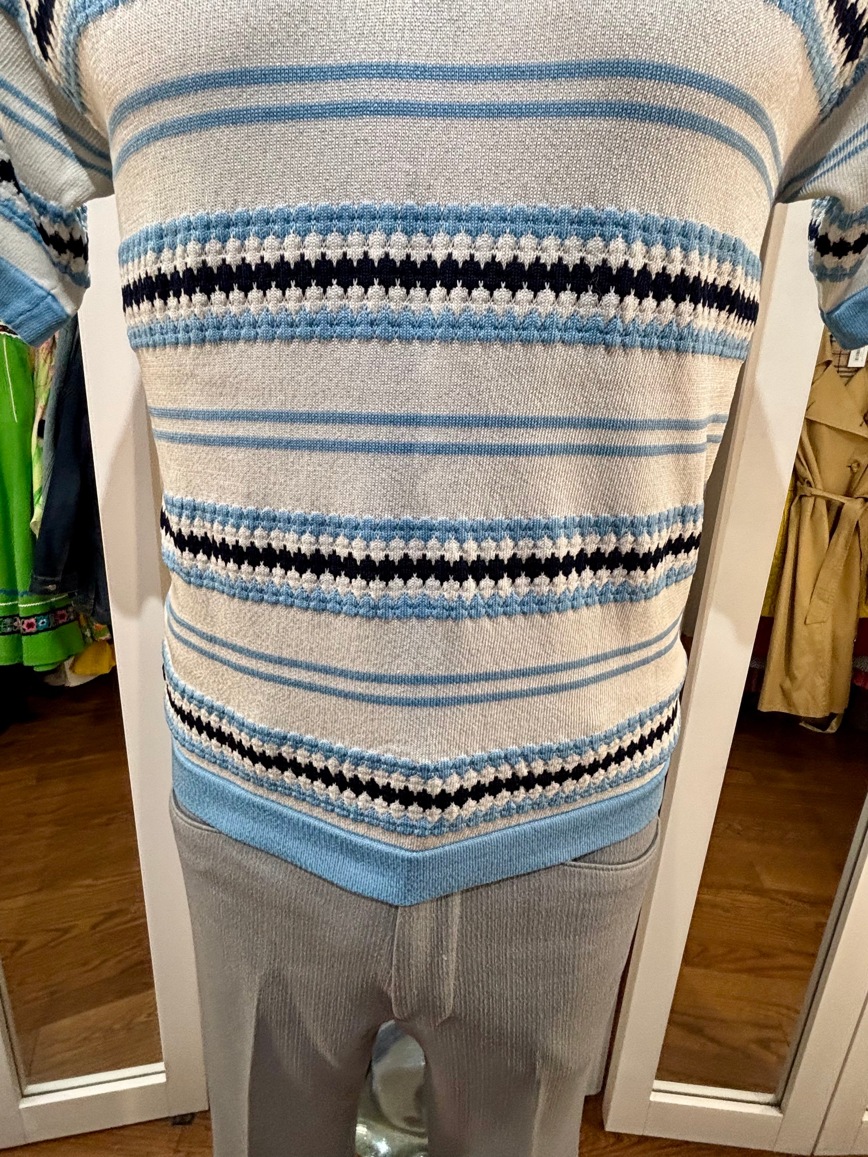 60’s White And blue Multicolored Stripes Textured Collared Polo By Donegal Coleseta