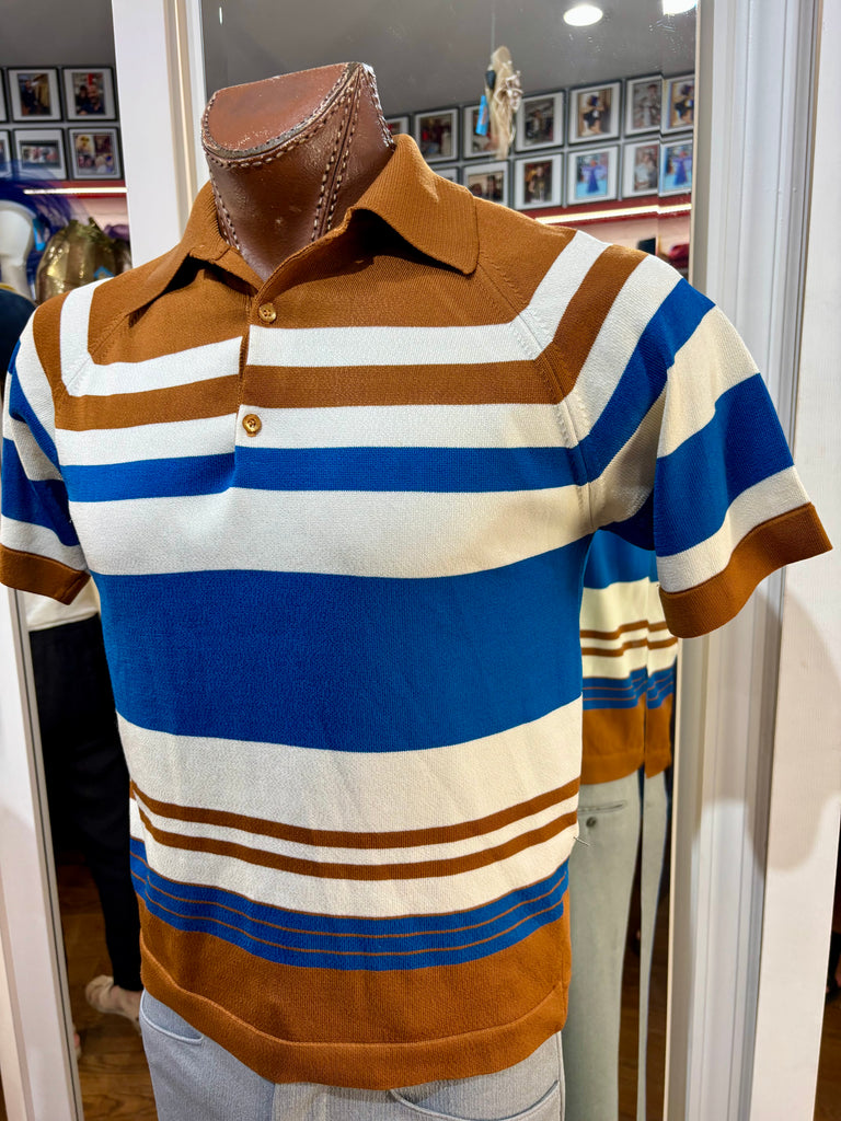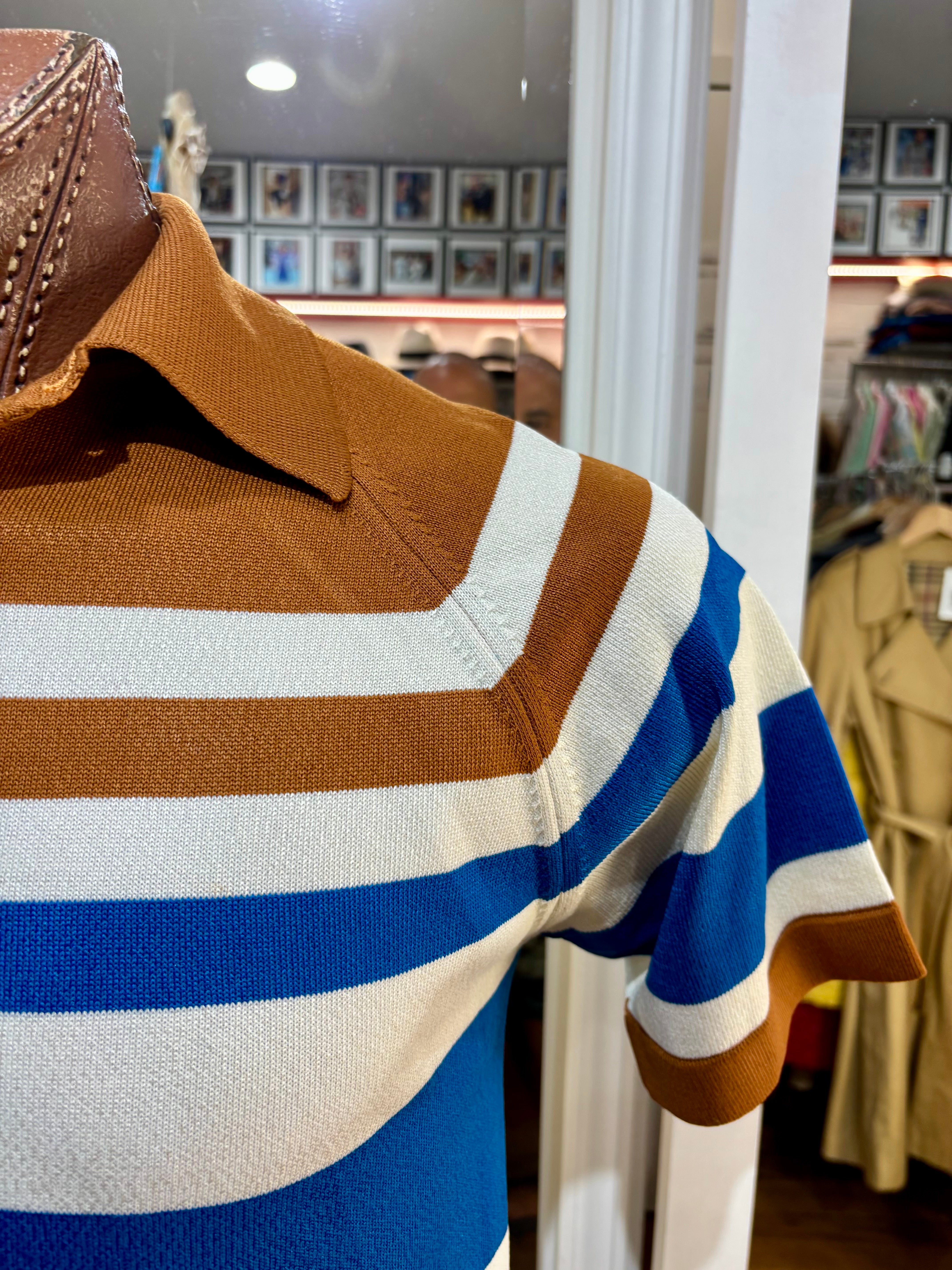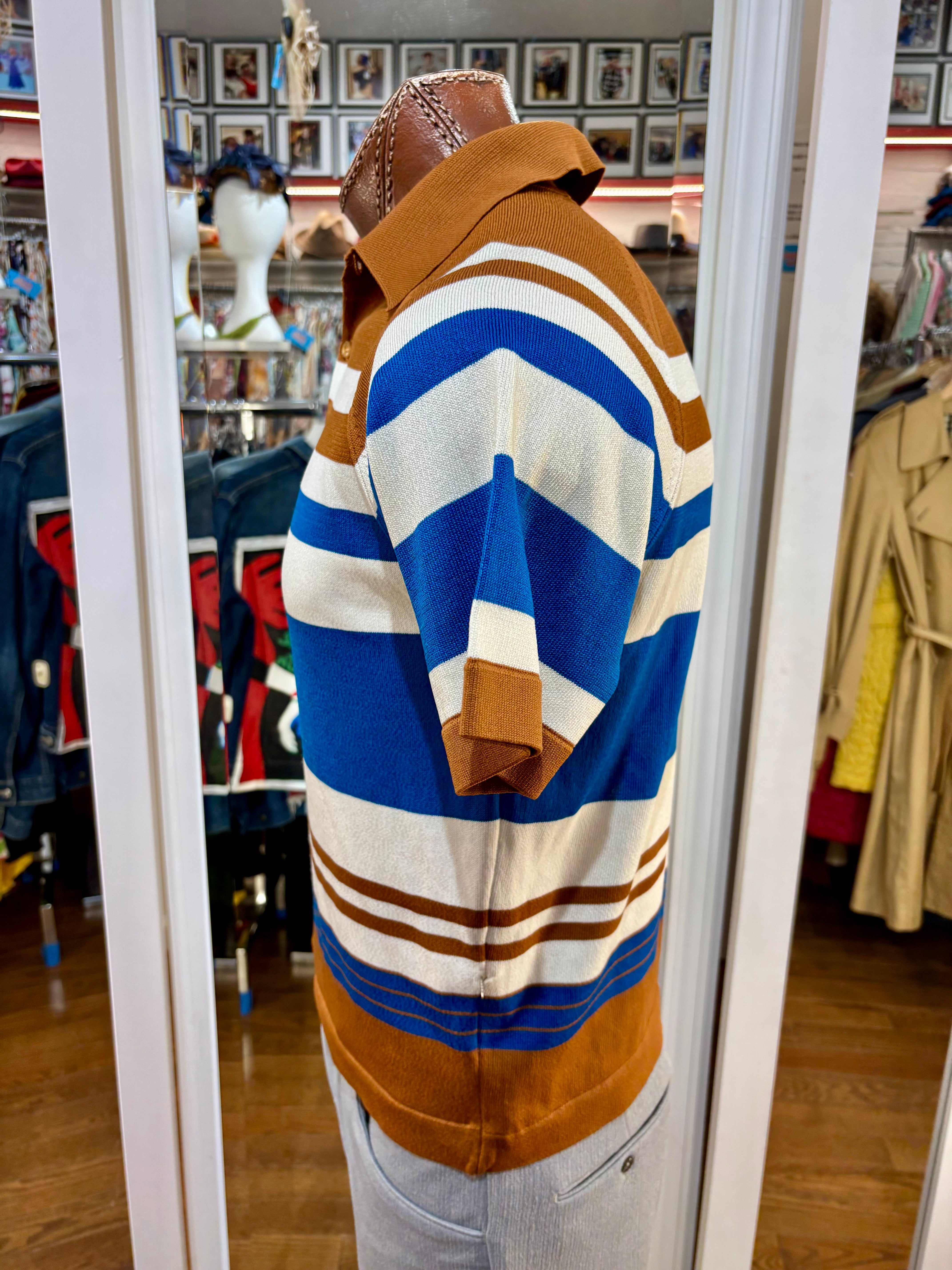 60’s Multicolored Stripes Textured Collared Polo By Donegal Coleseta
