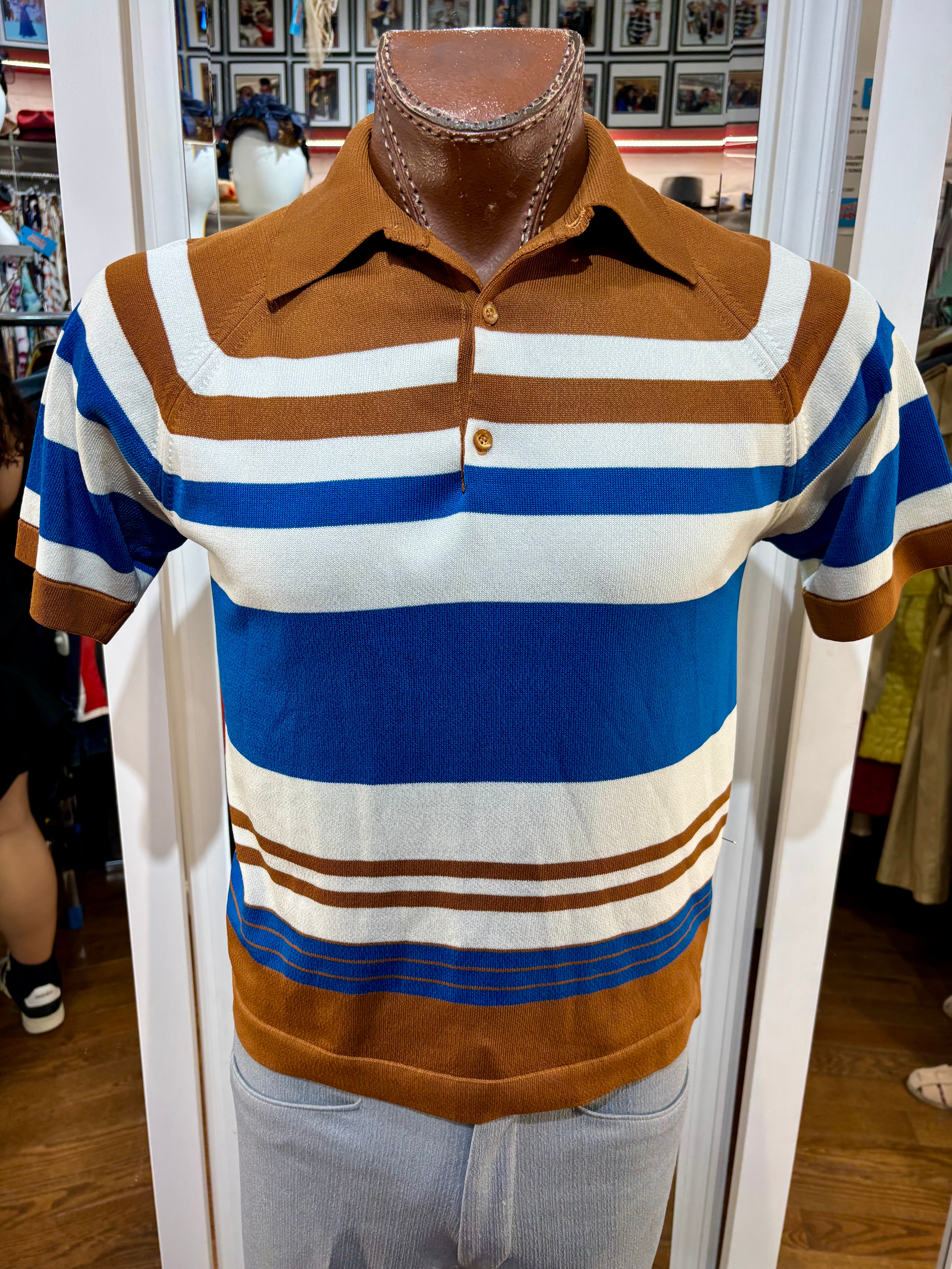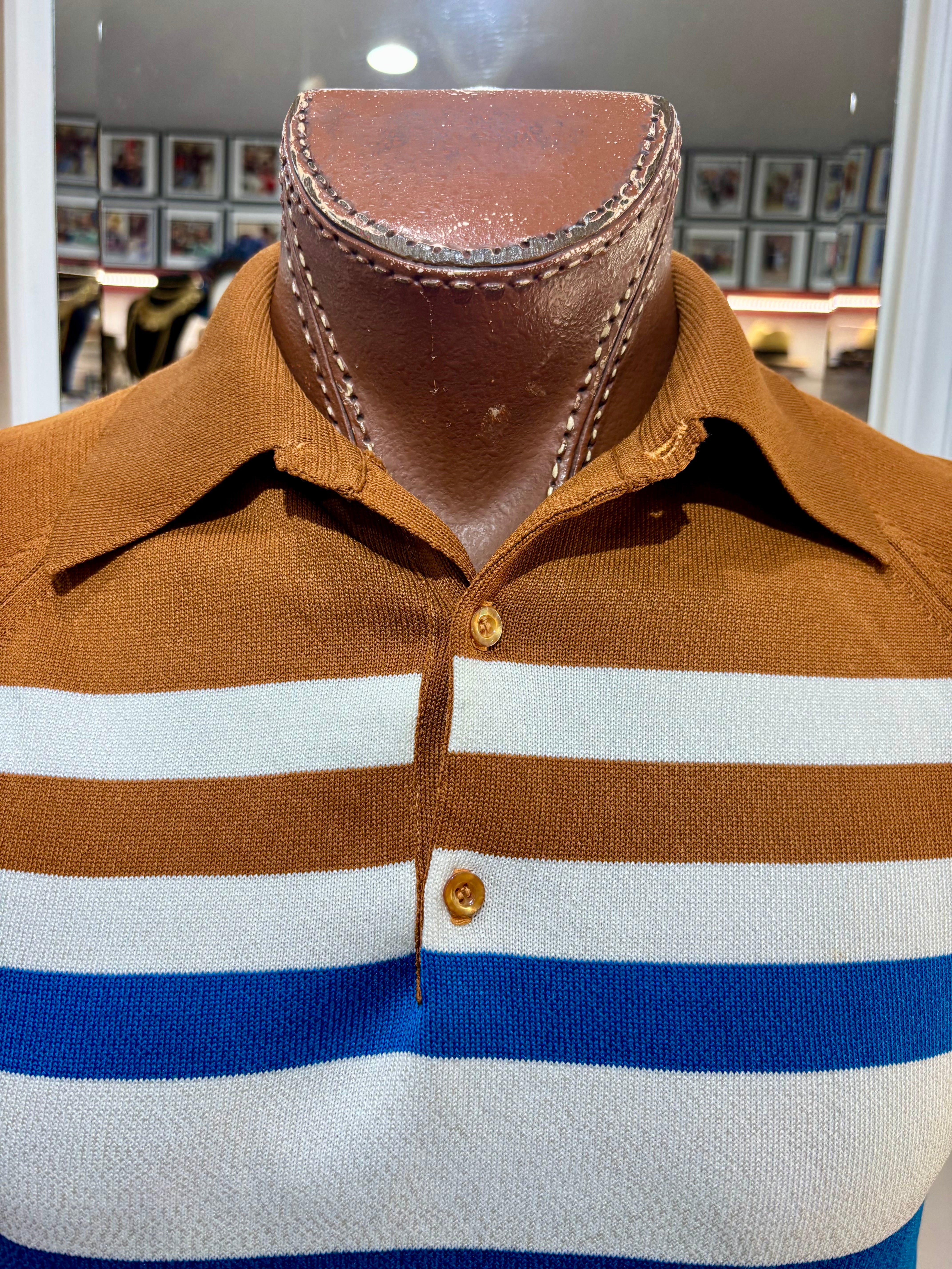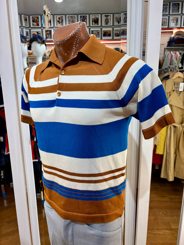 60’s Multicolored Stripes Textured Collared Polo By Donegal Coleseta