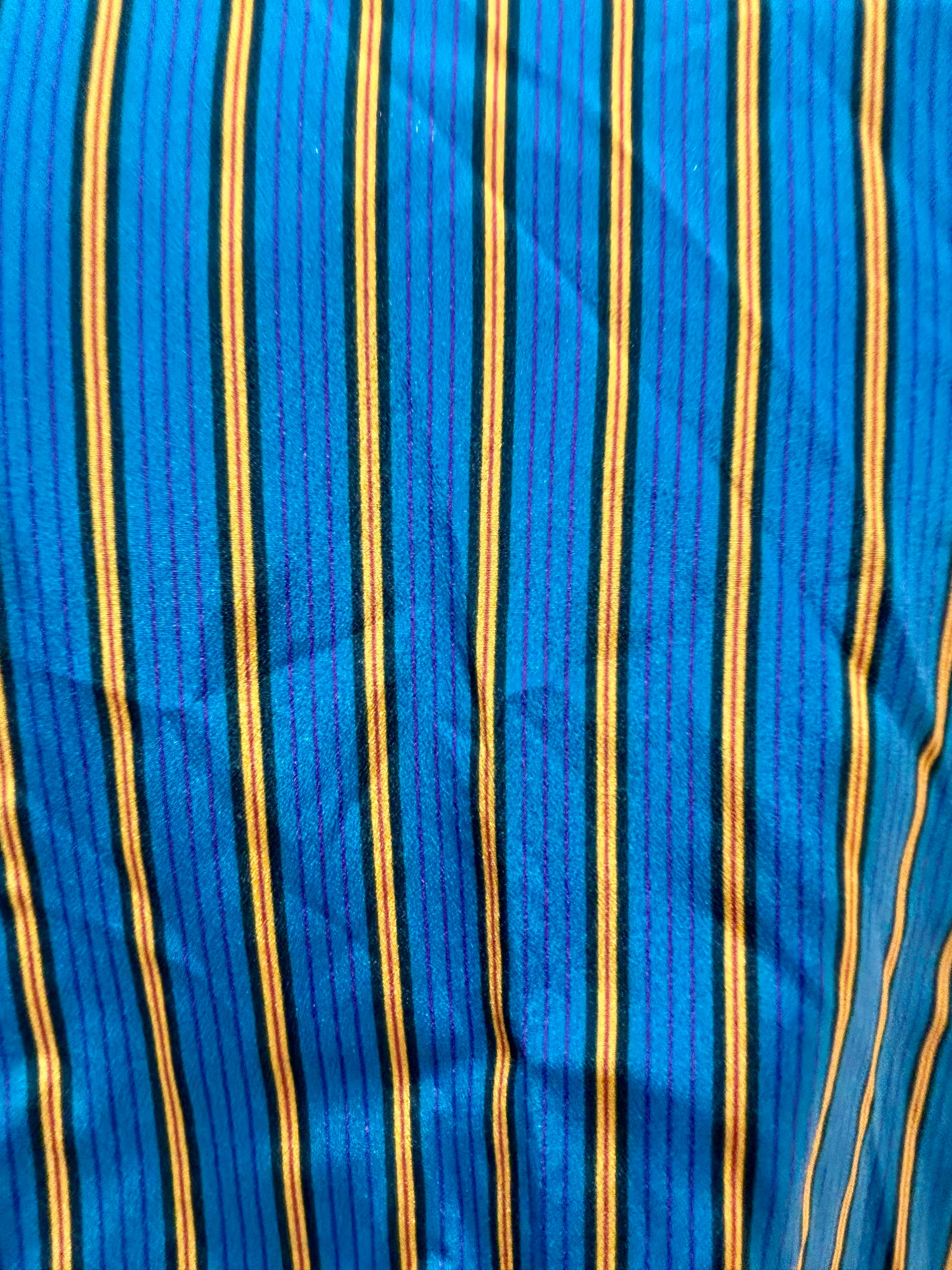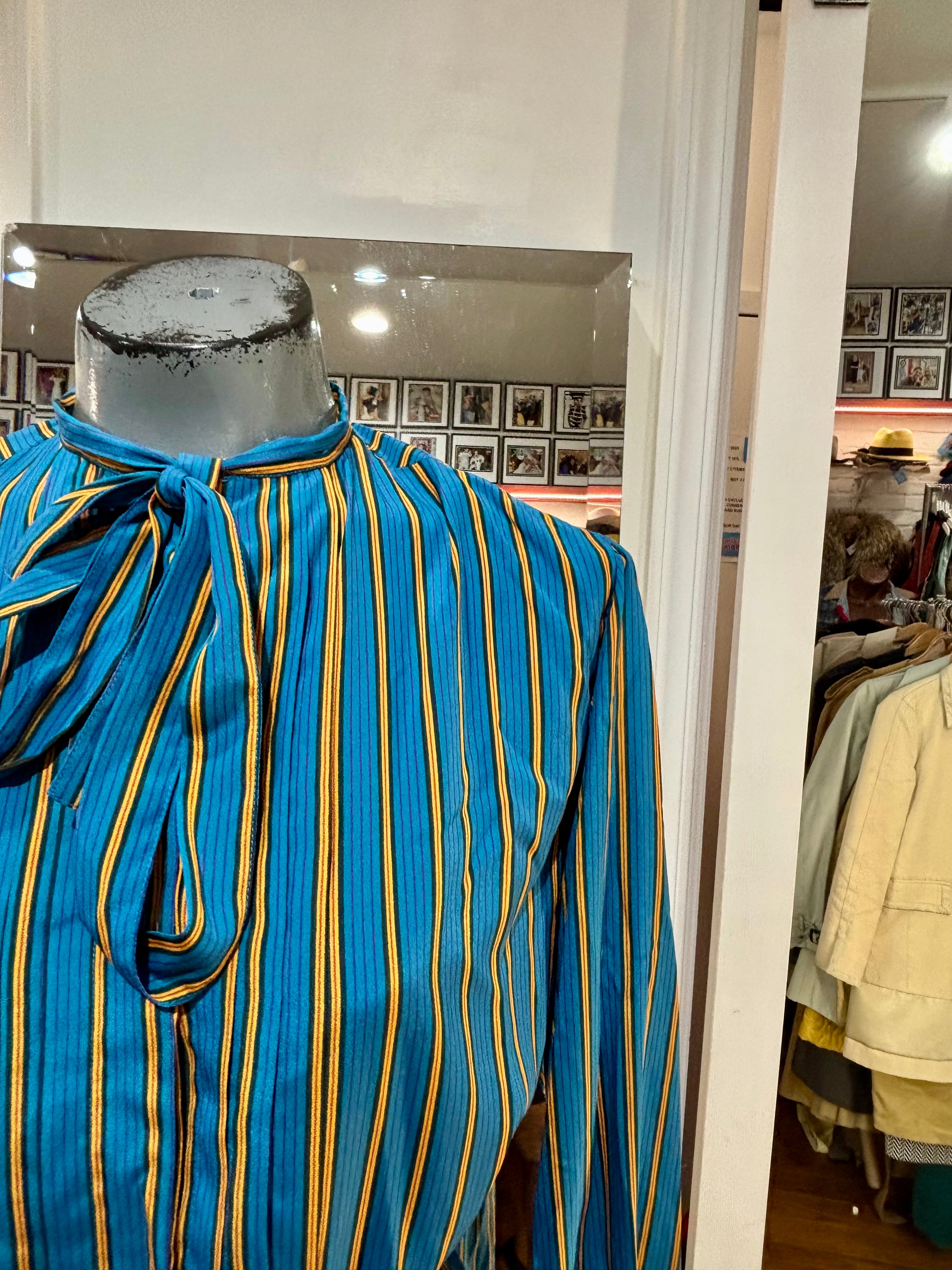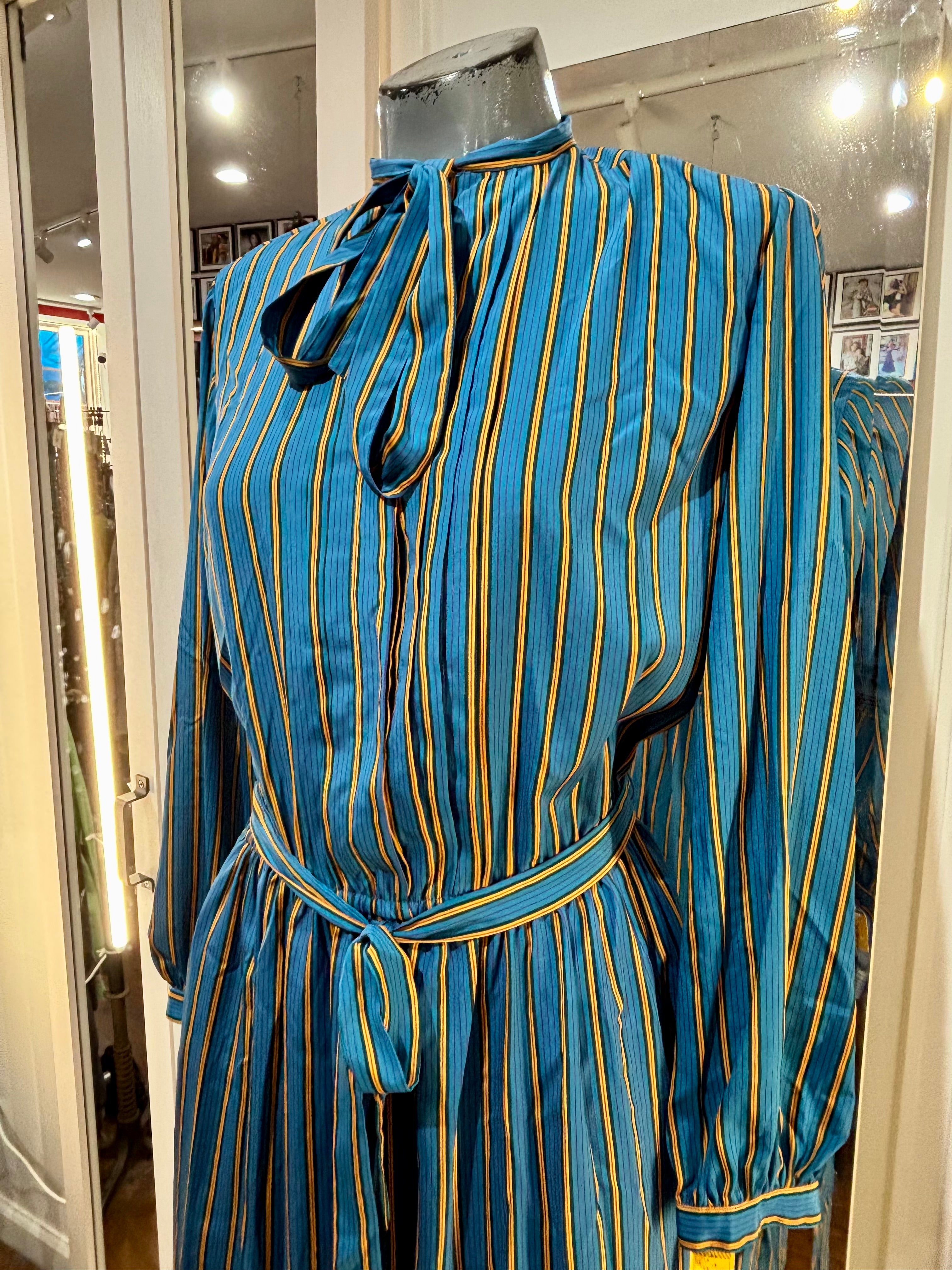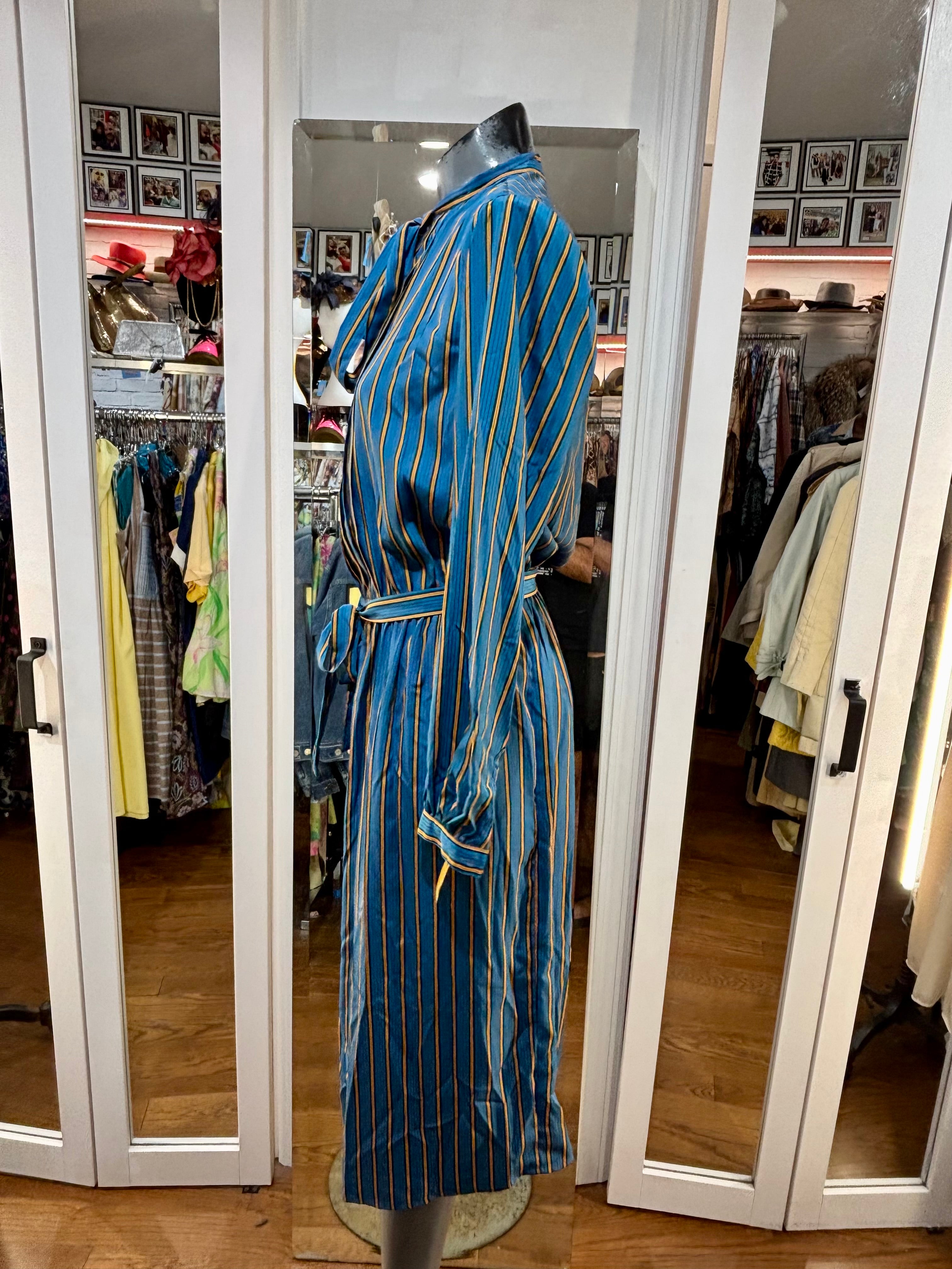 80’s Green And Gold Stripes Long Sleeve Secretary Dress