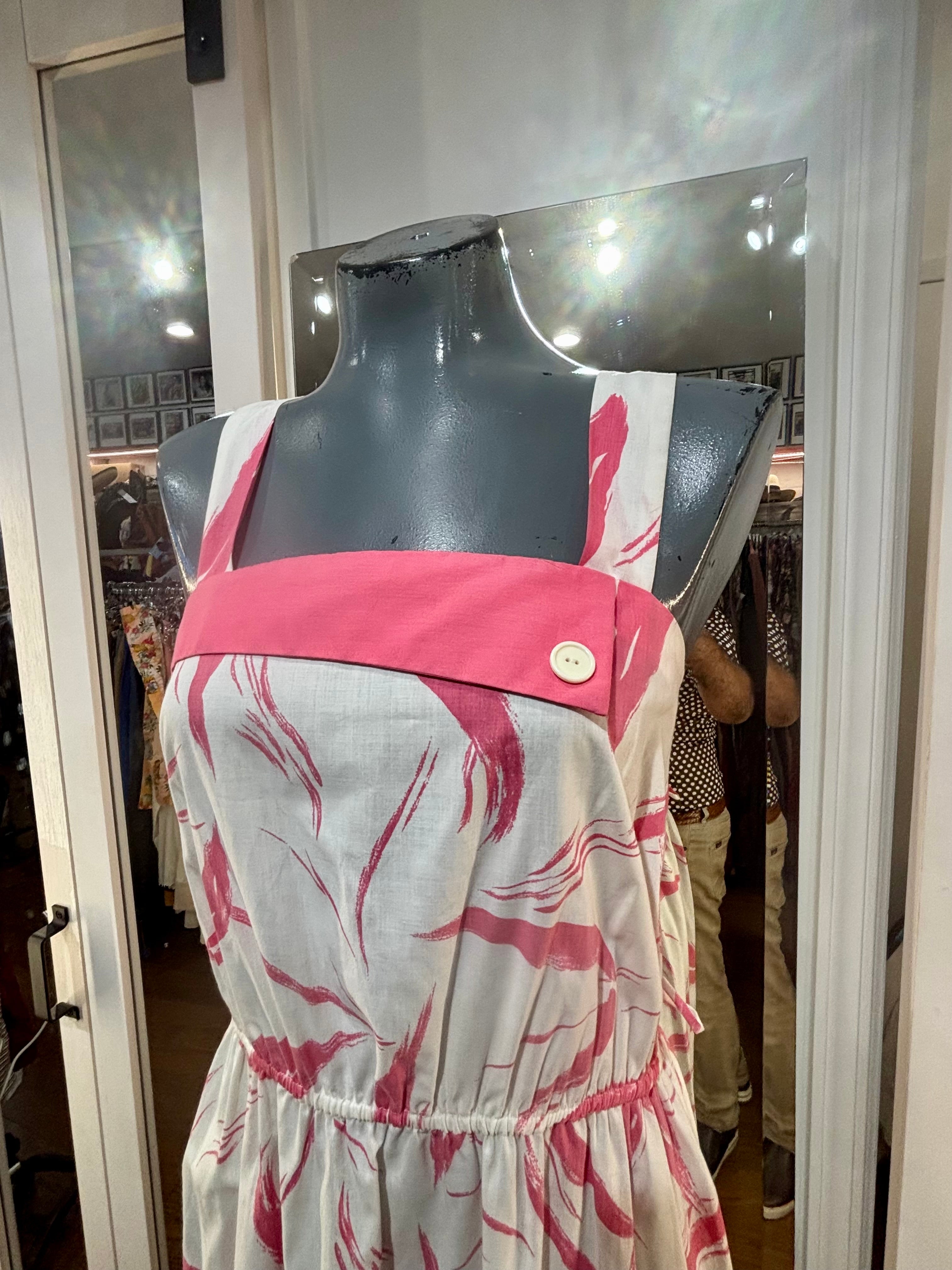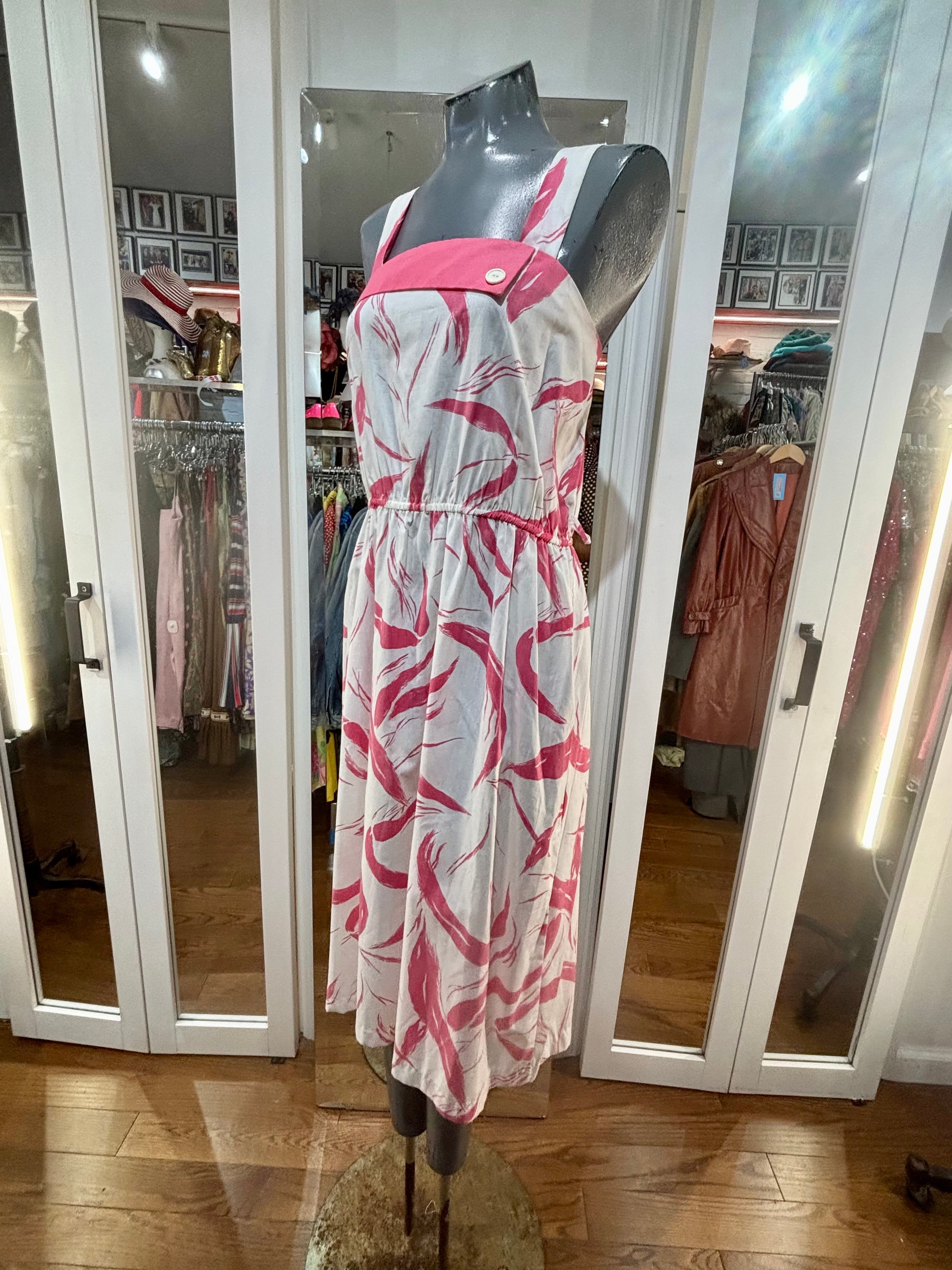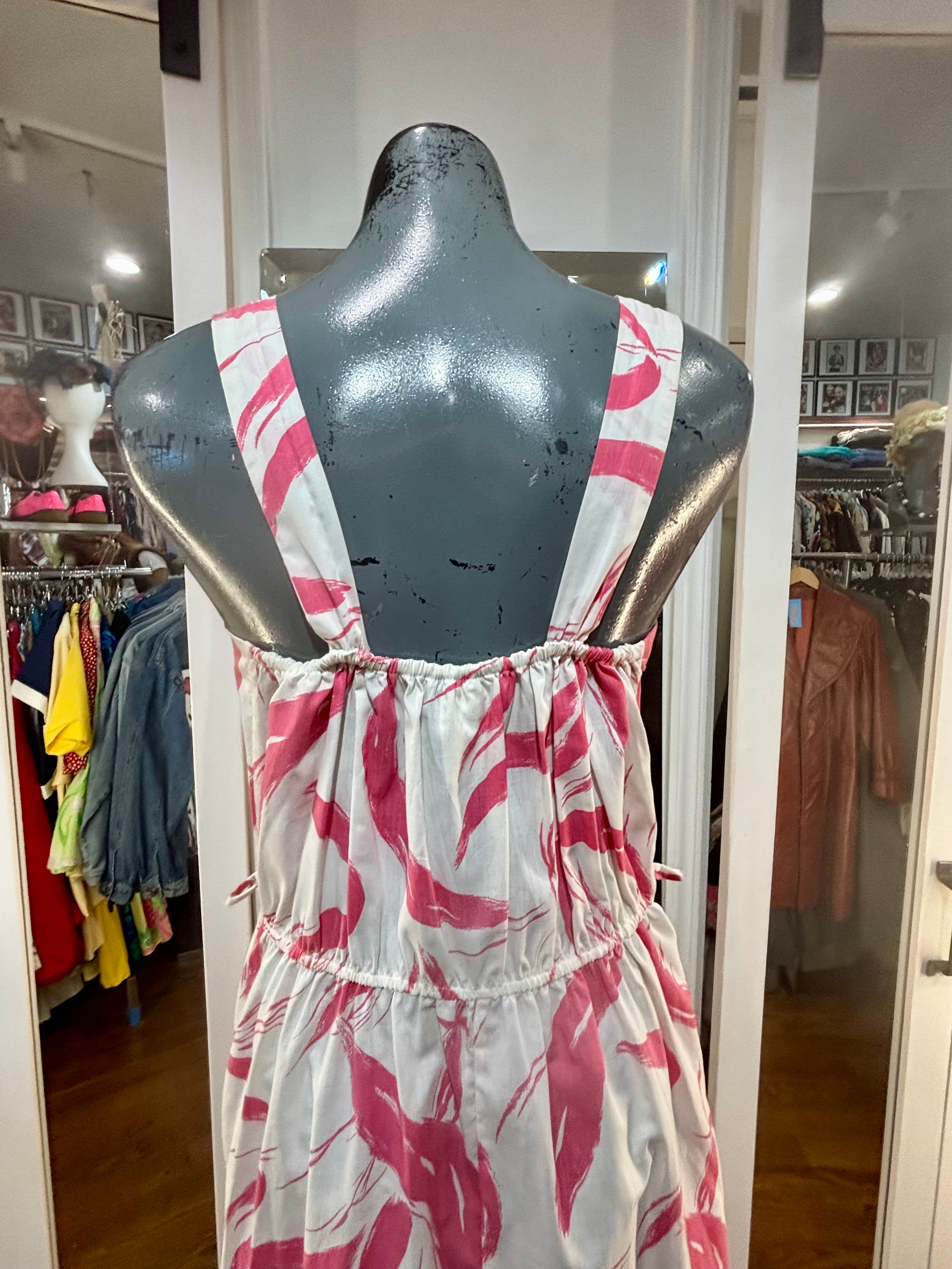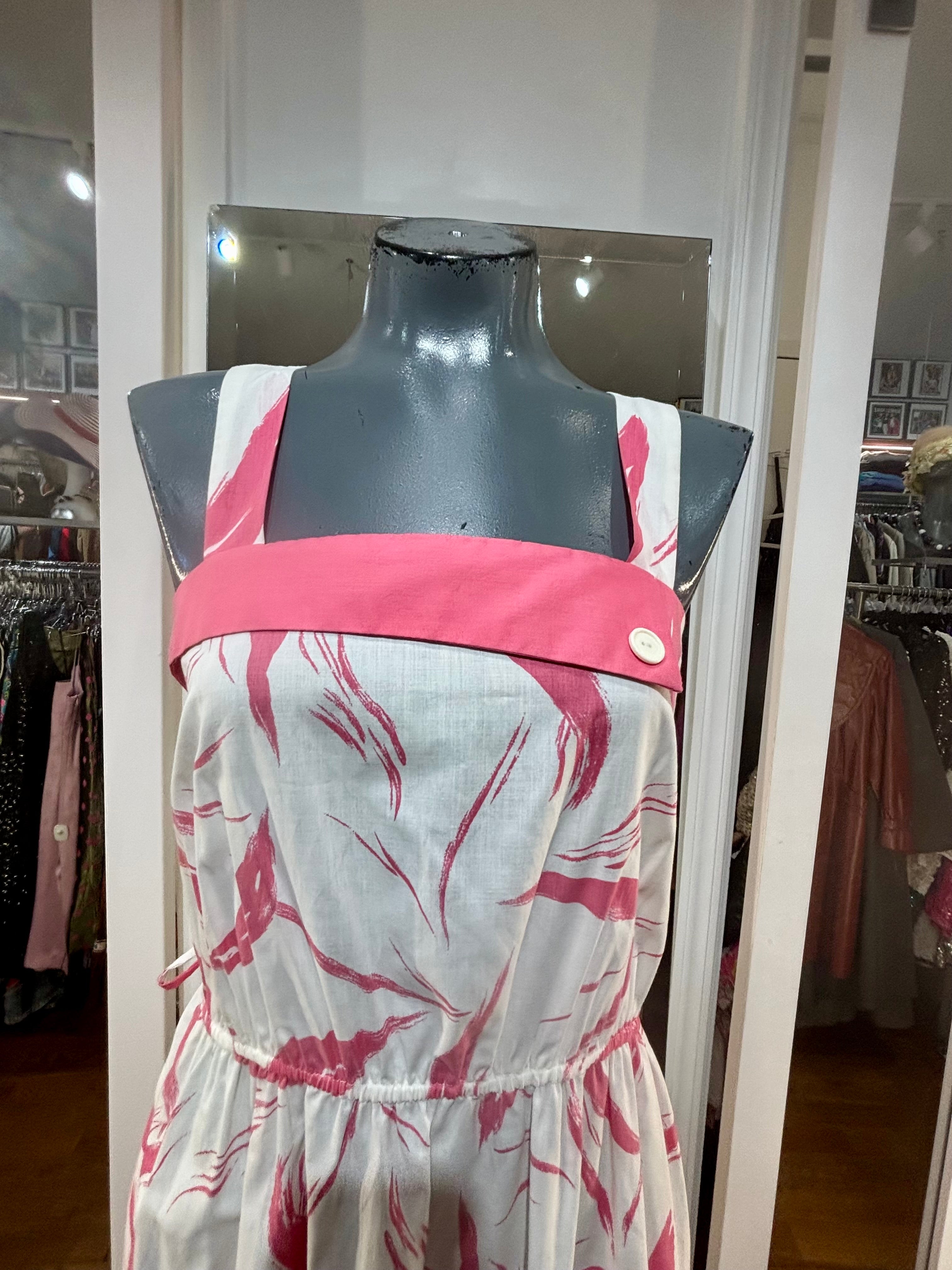 80’s White & Pink Abstract Print Dress With Straps By Jandabar