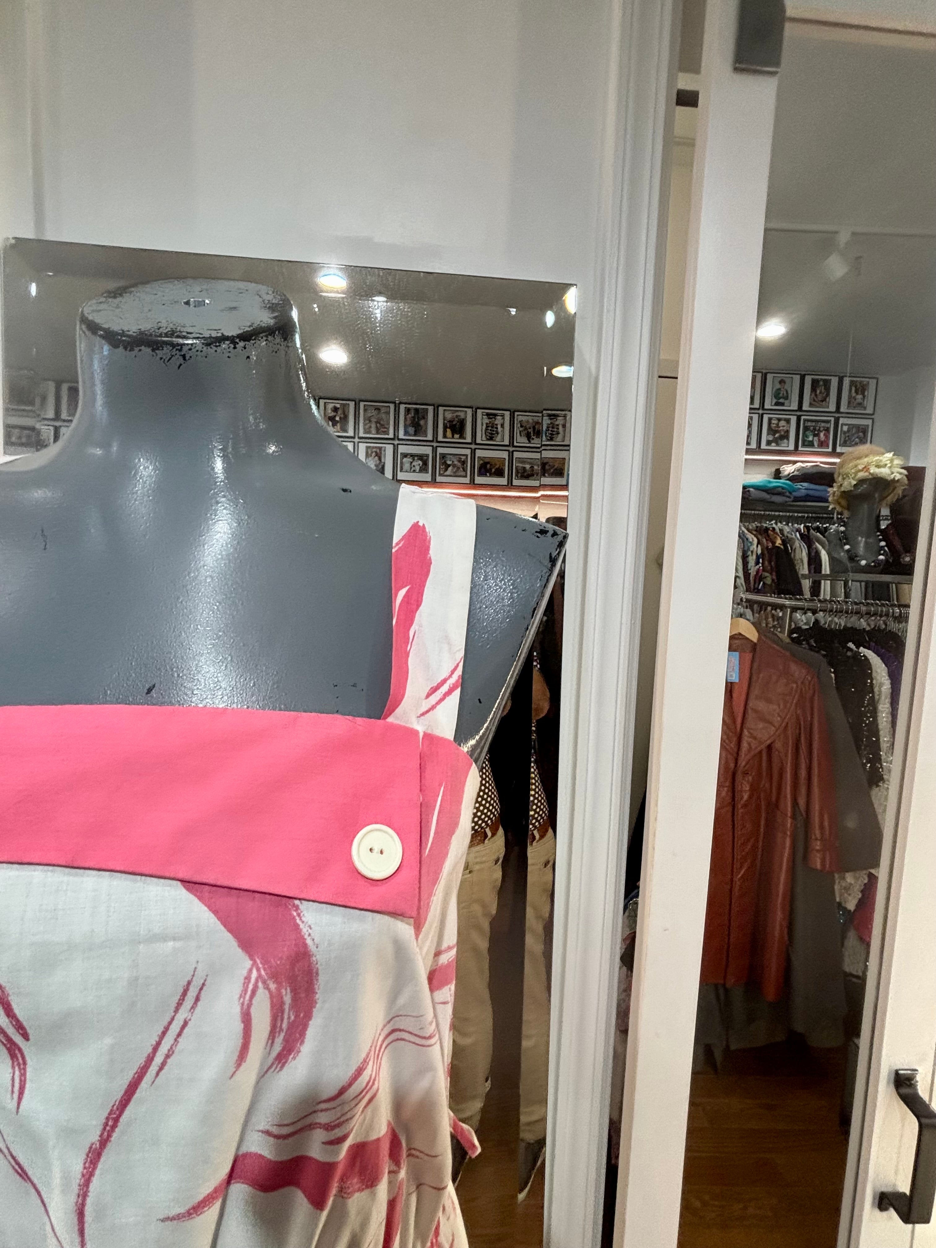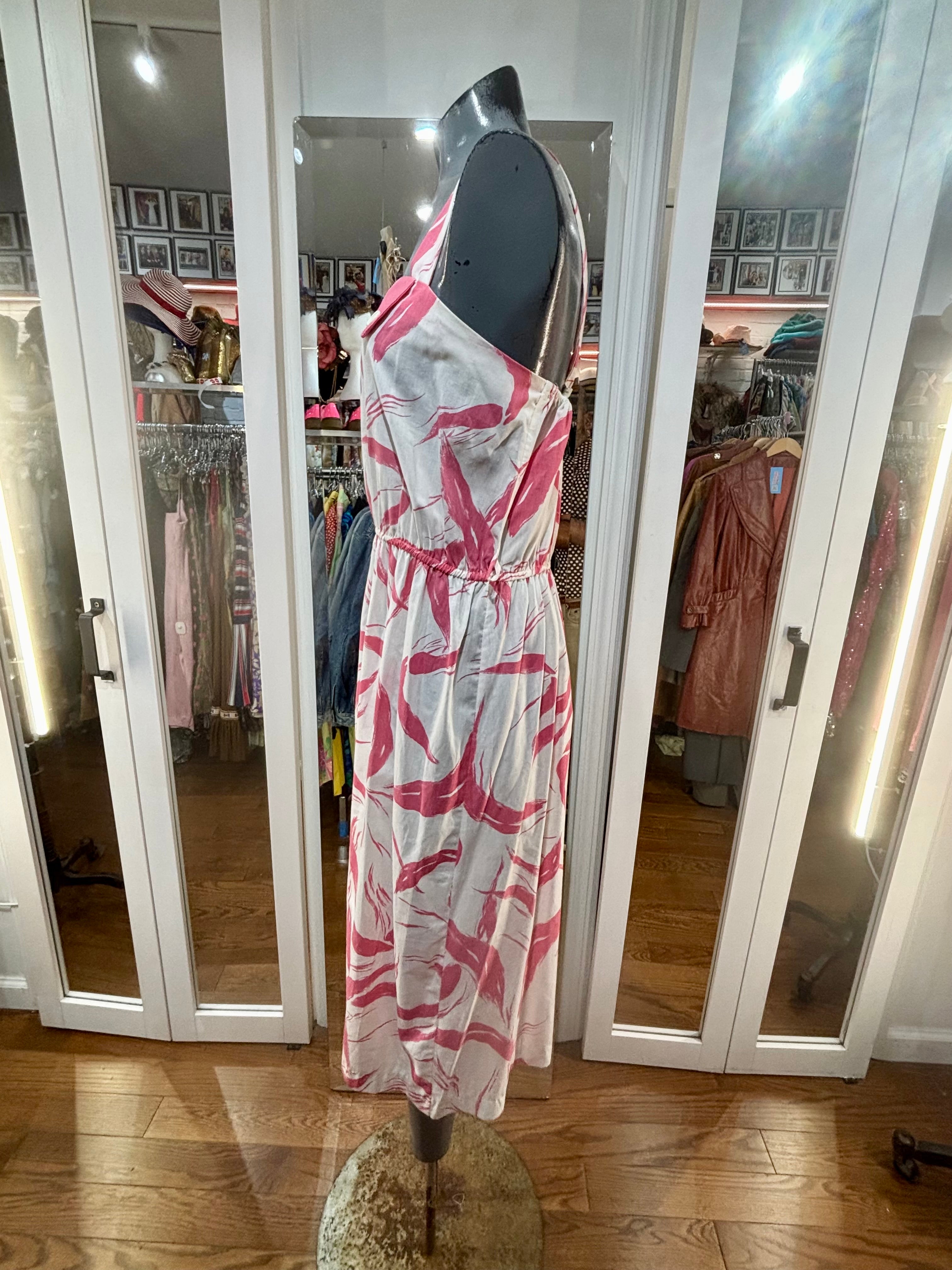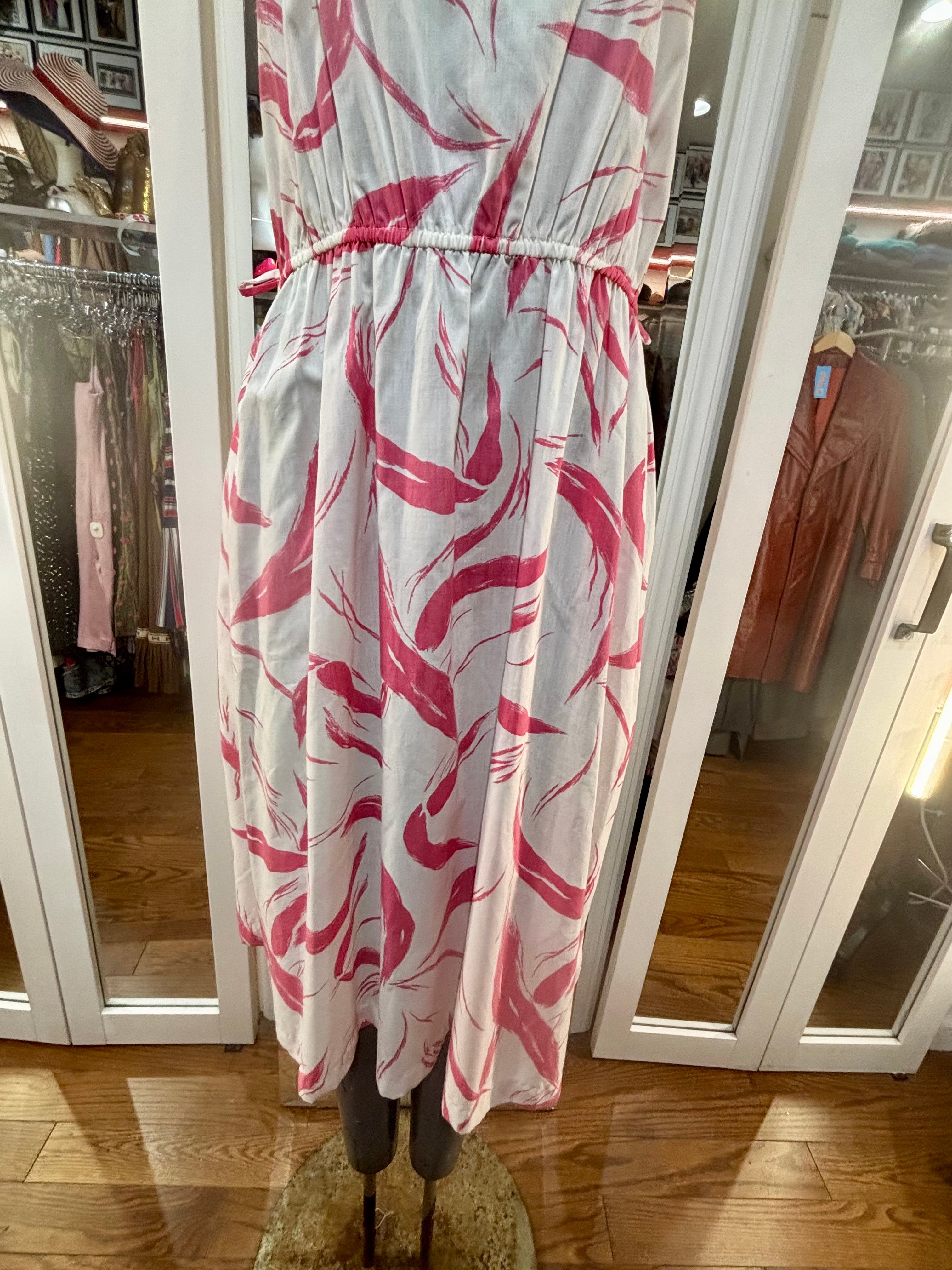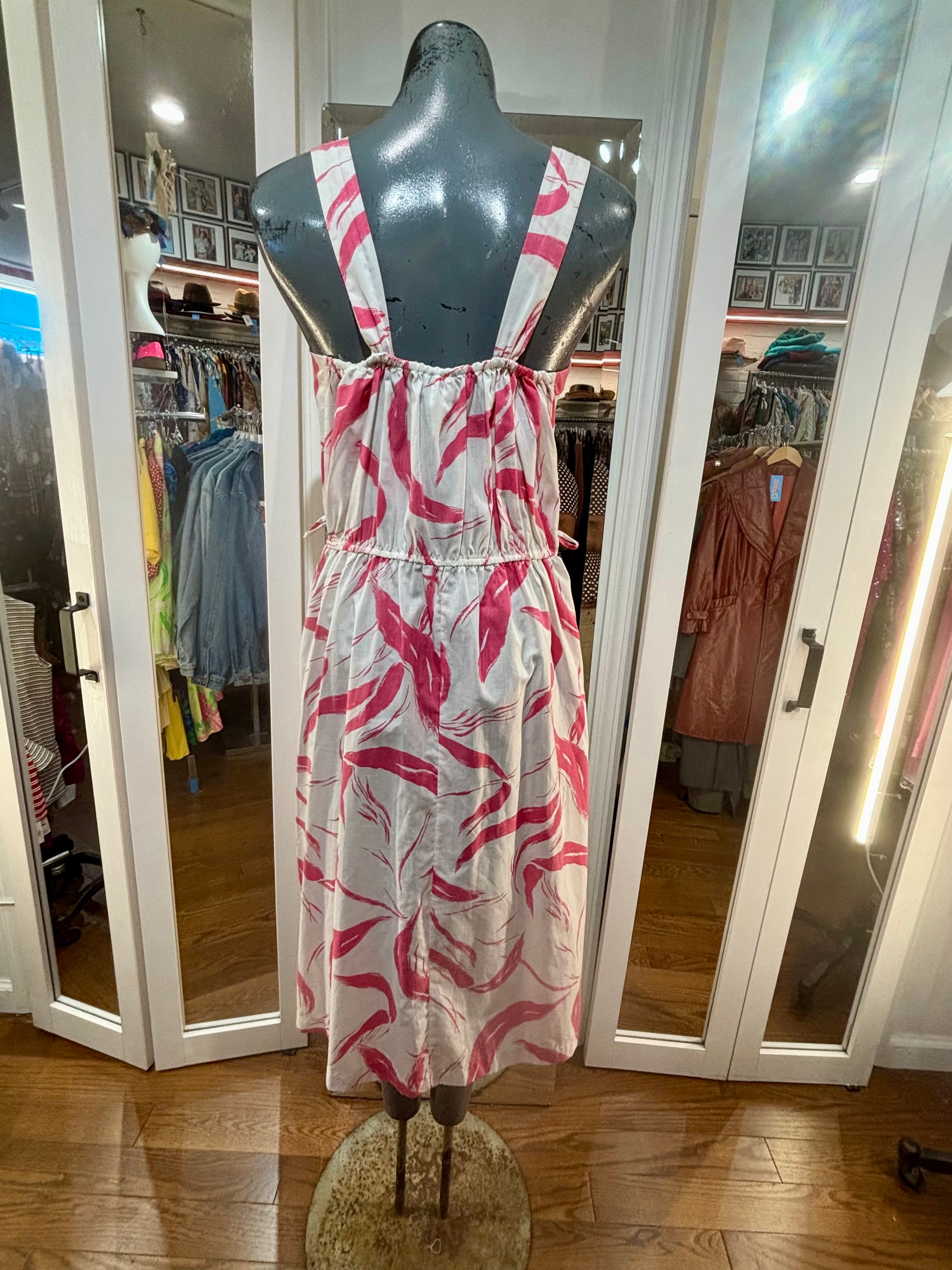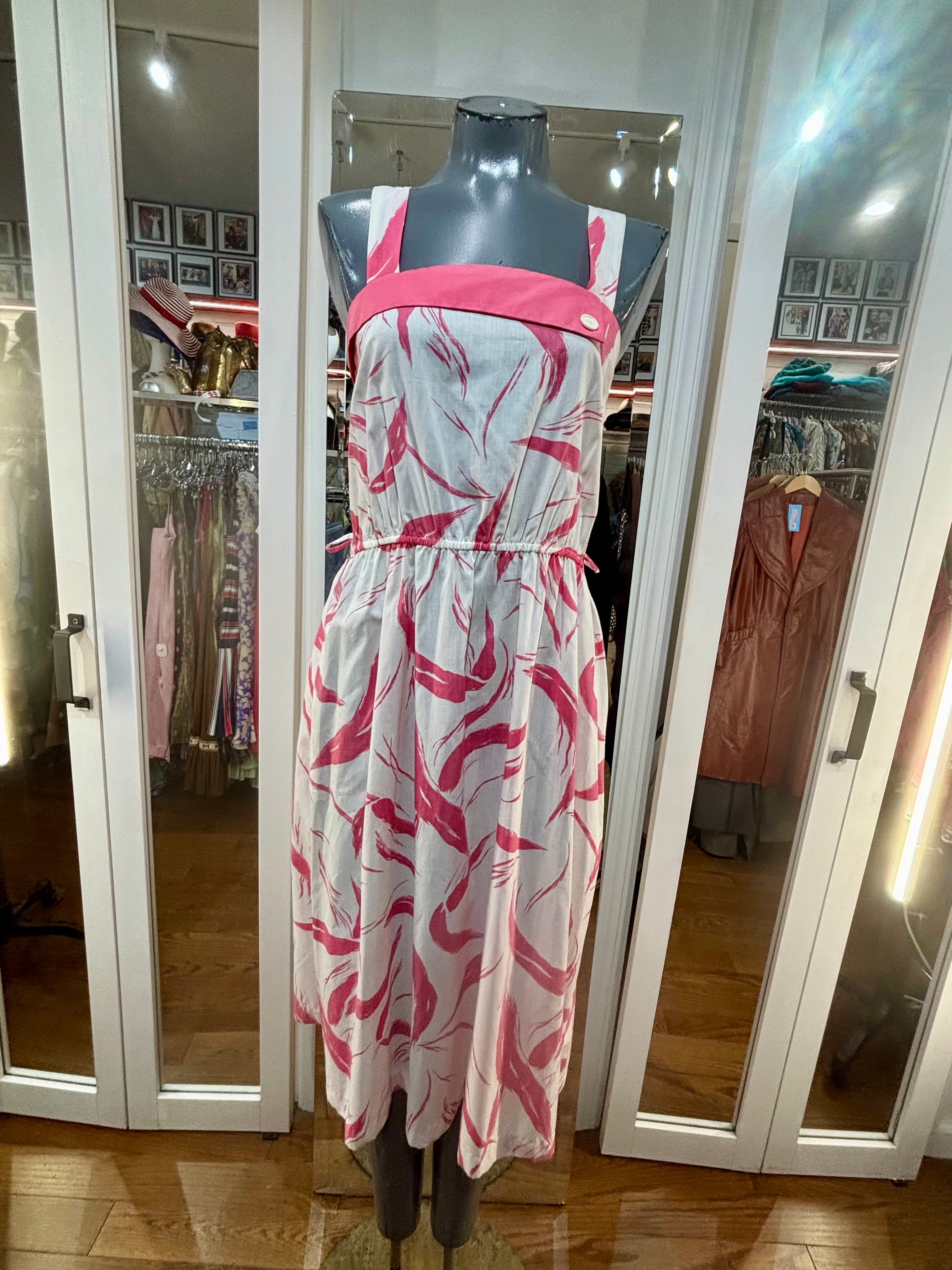 80’s White & Pink Abstract Print Dress With Straps By Jandabar