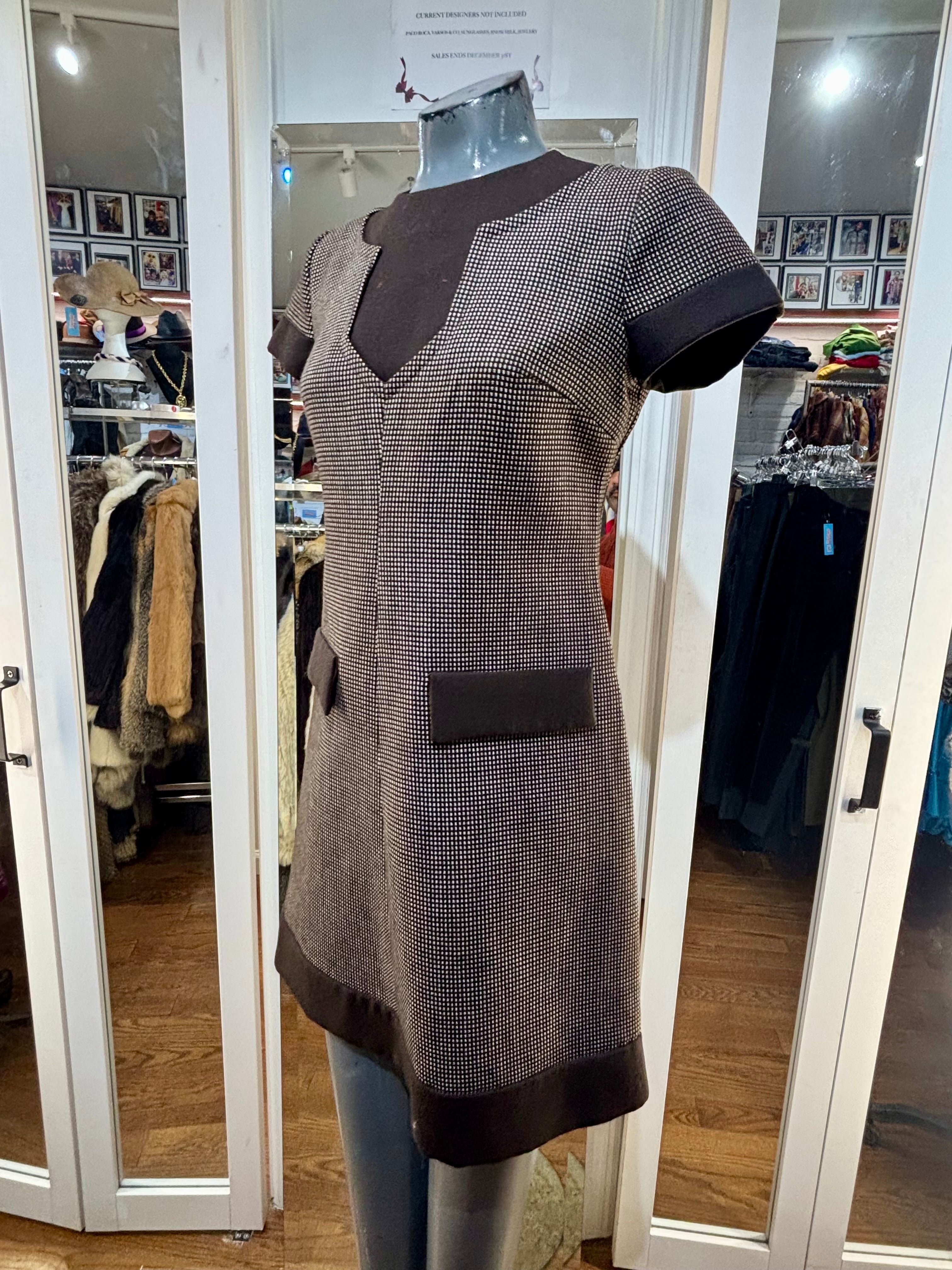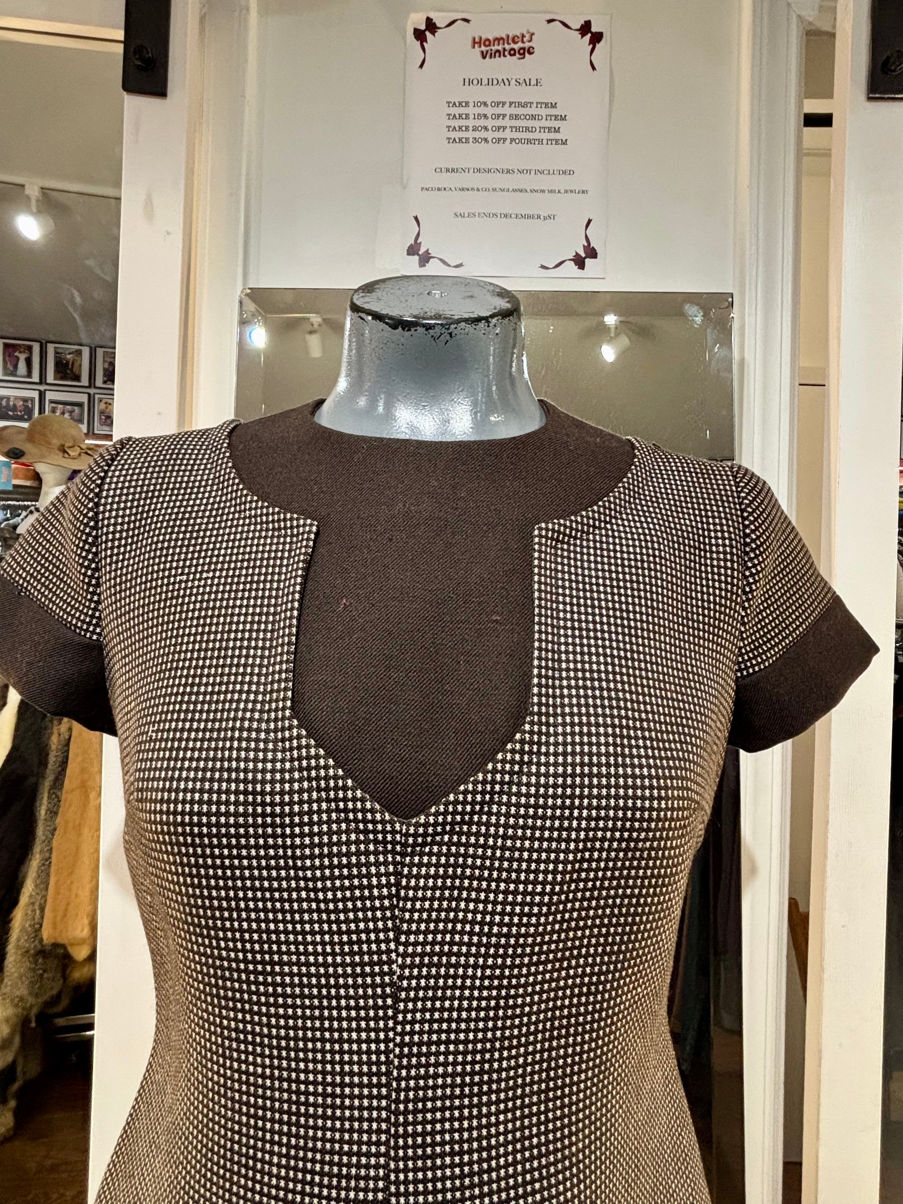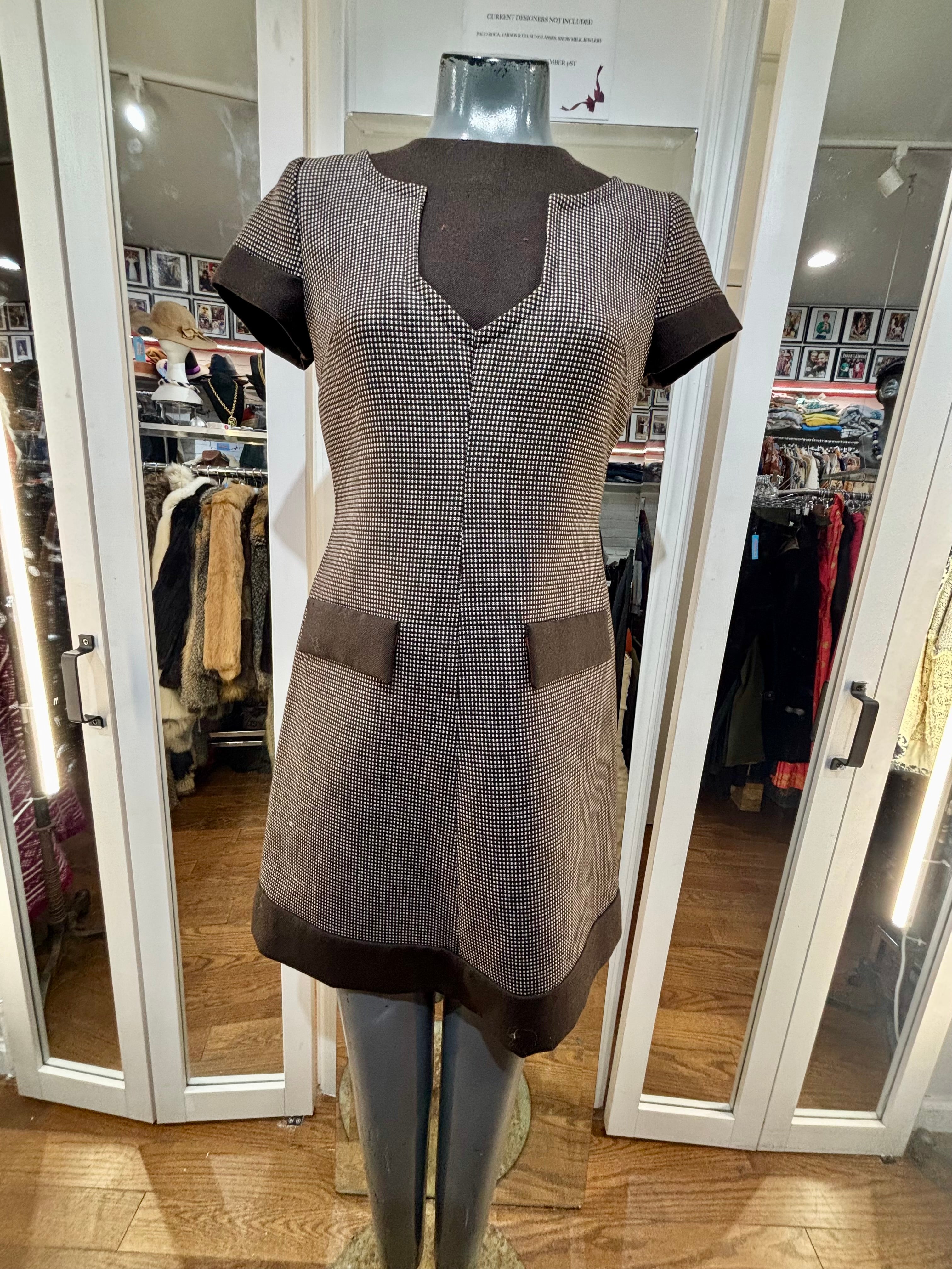 90’s Going 60’s Brown Woven Cap Sleeve Dress By Geral Paris