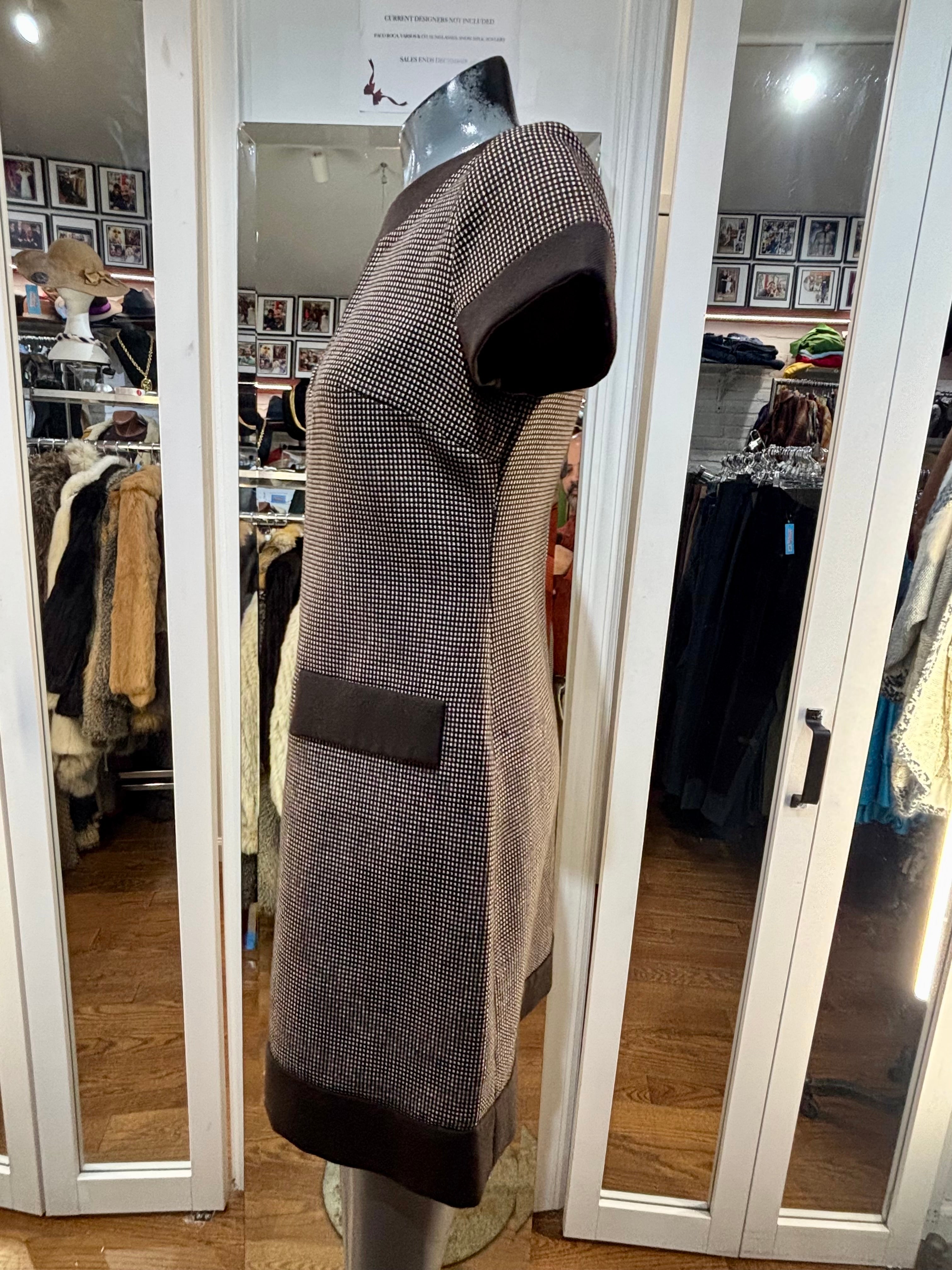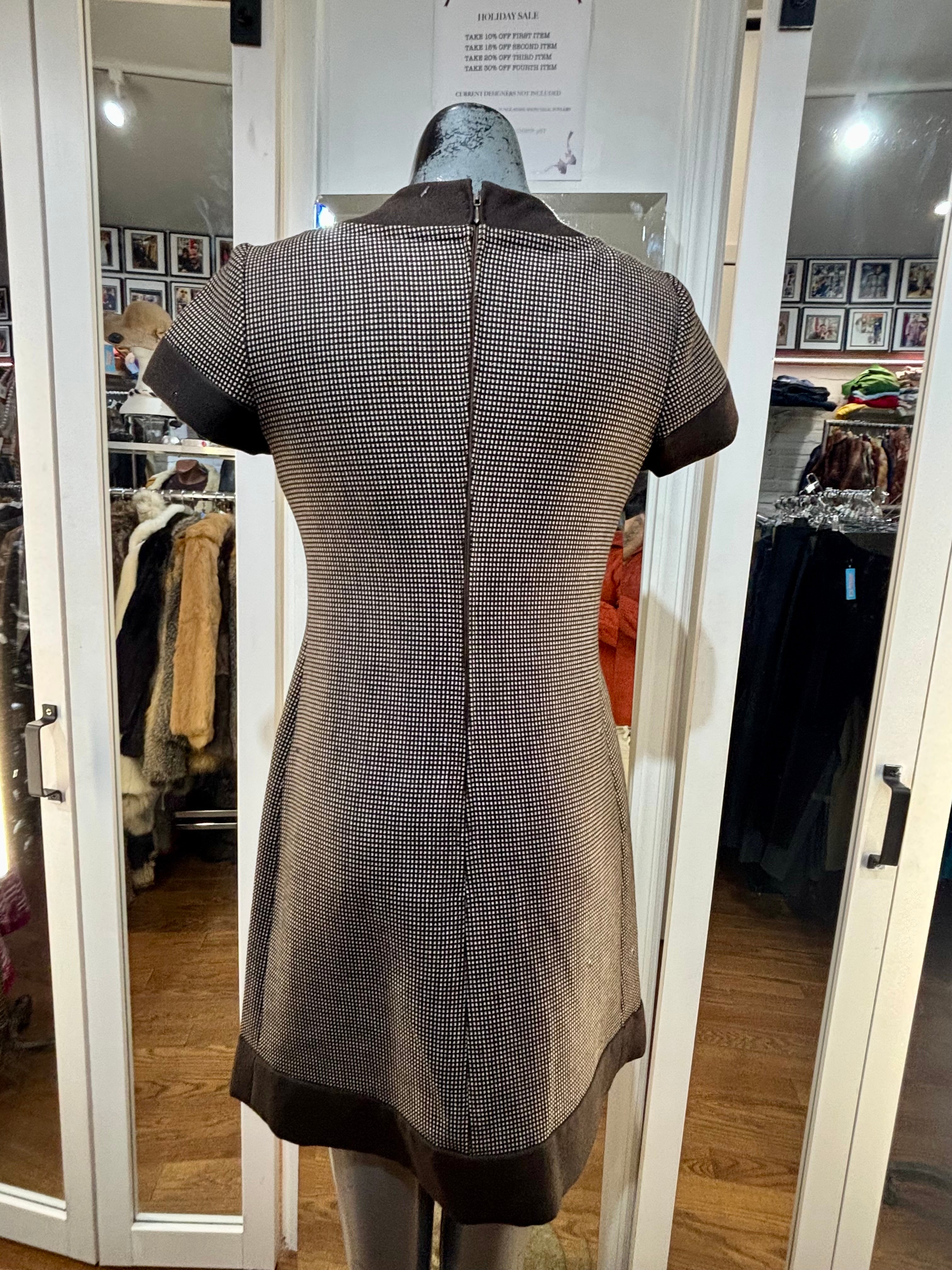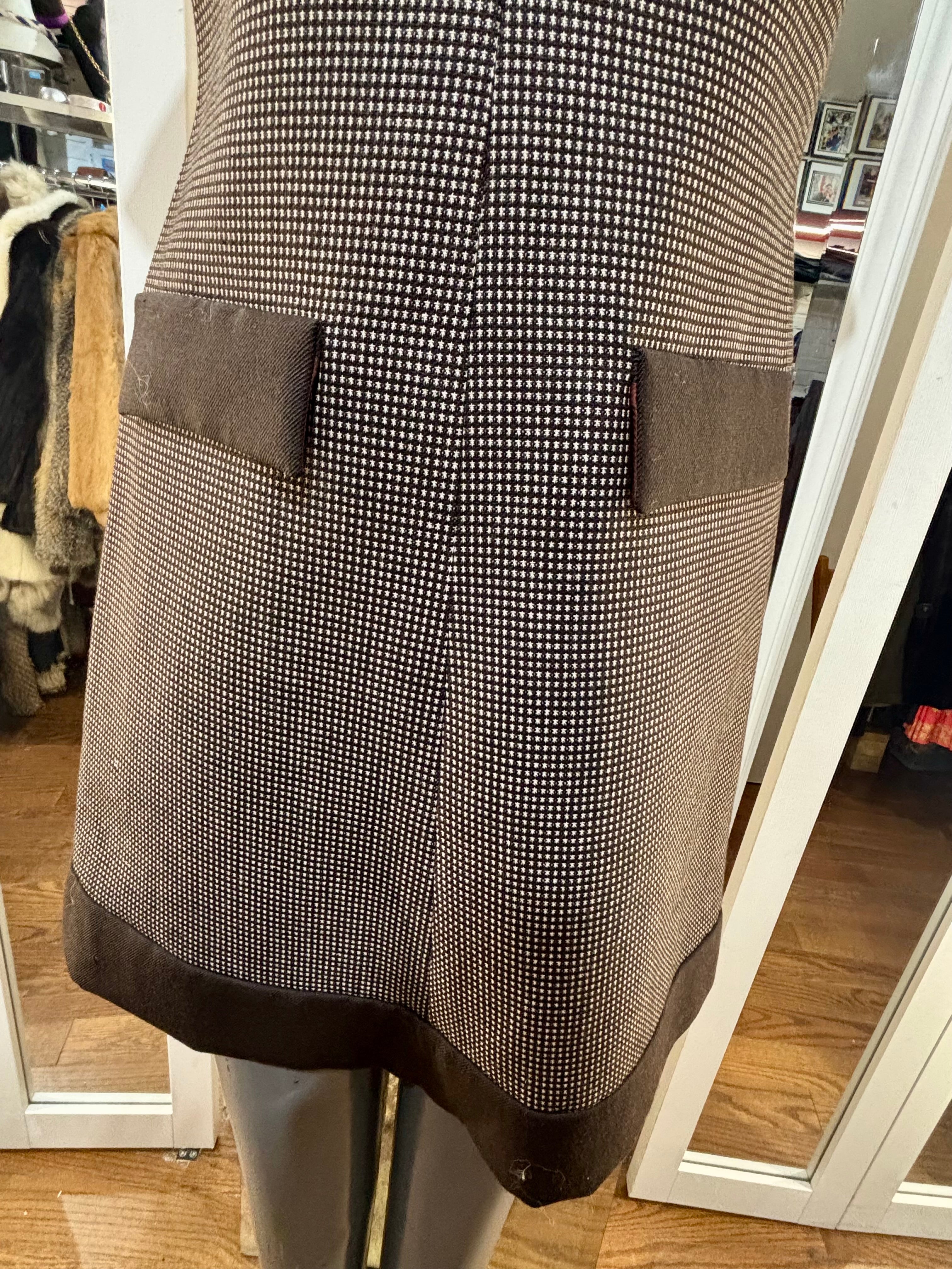 90’s Going 60’s Brown Woven Cap Sleeve Dress By Geral Paris