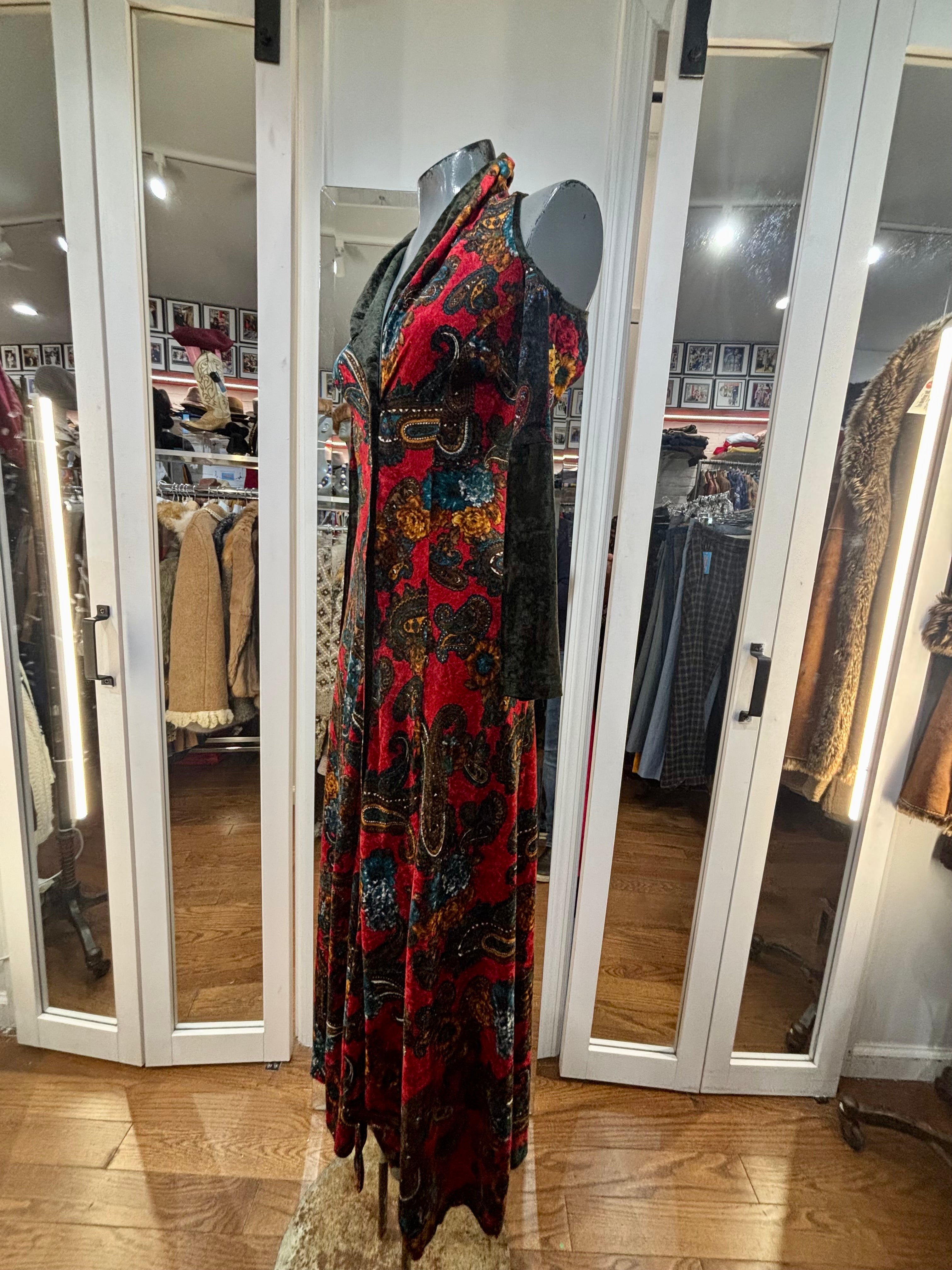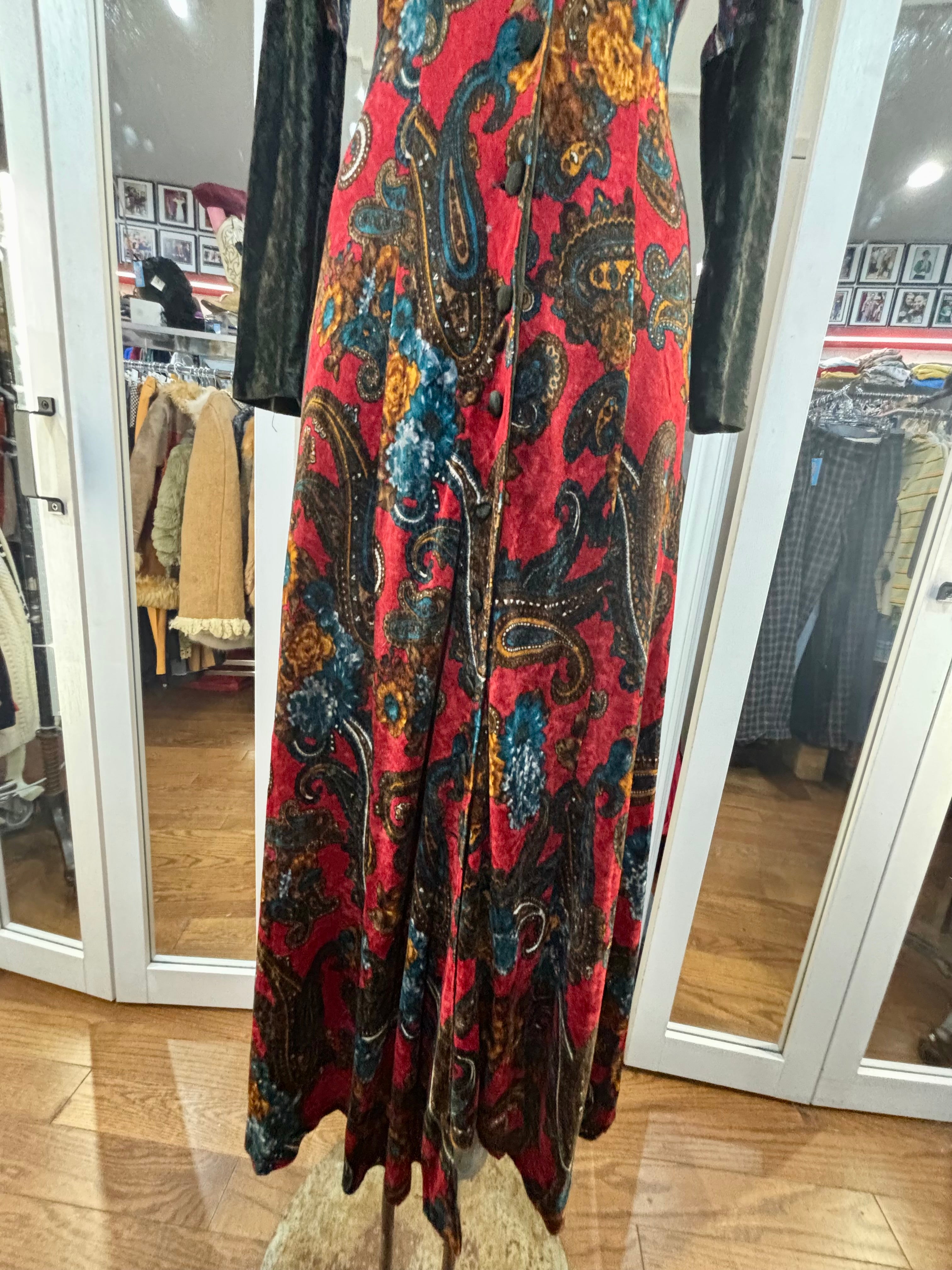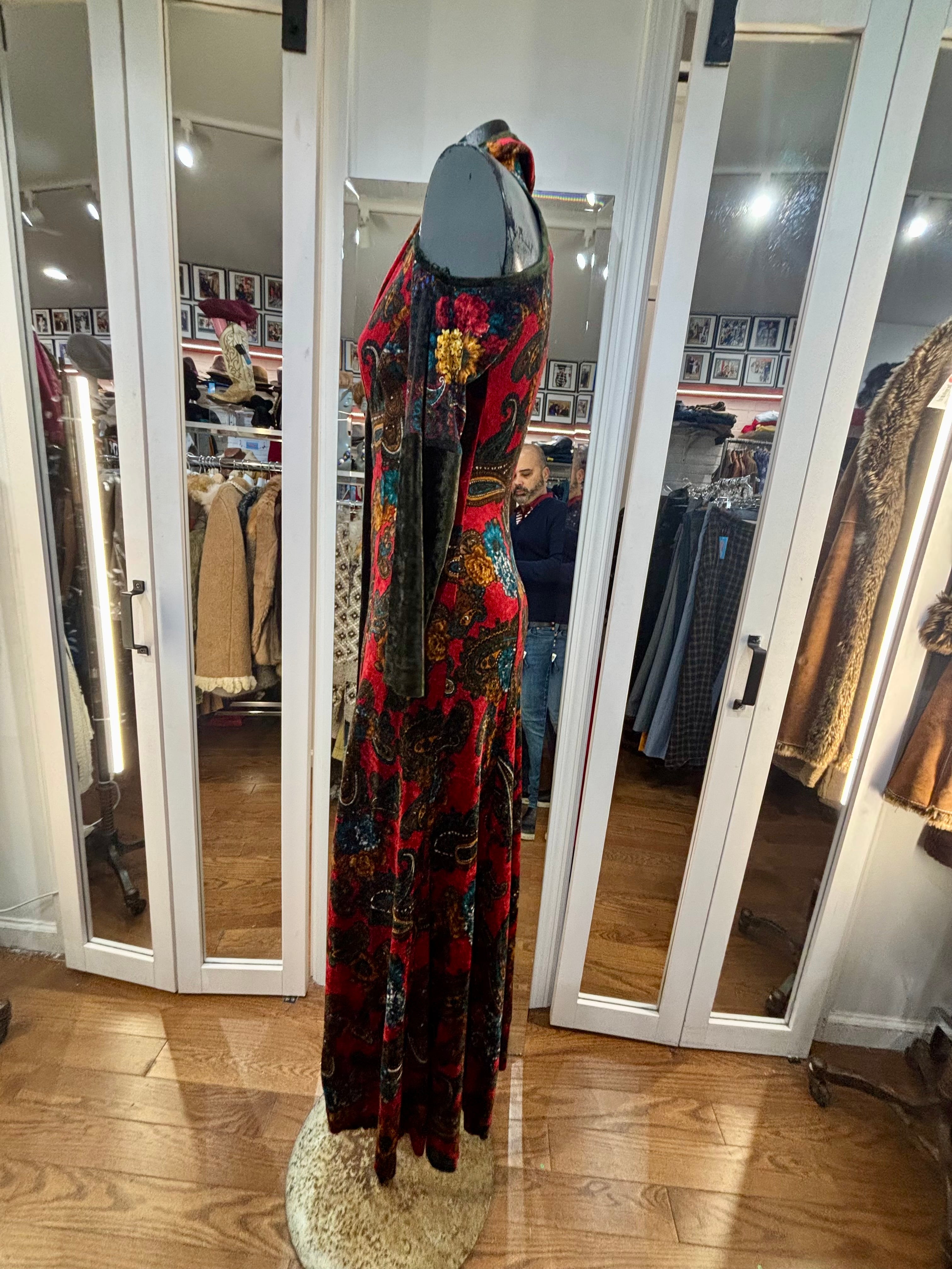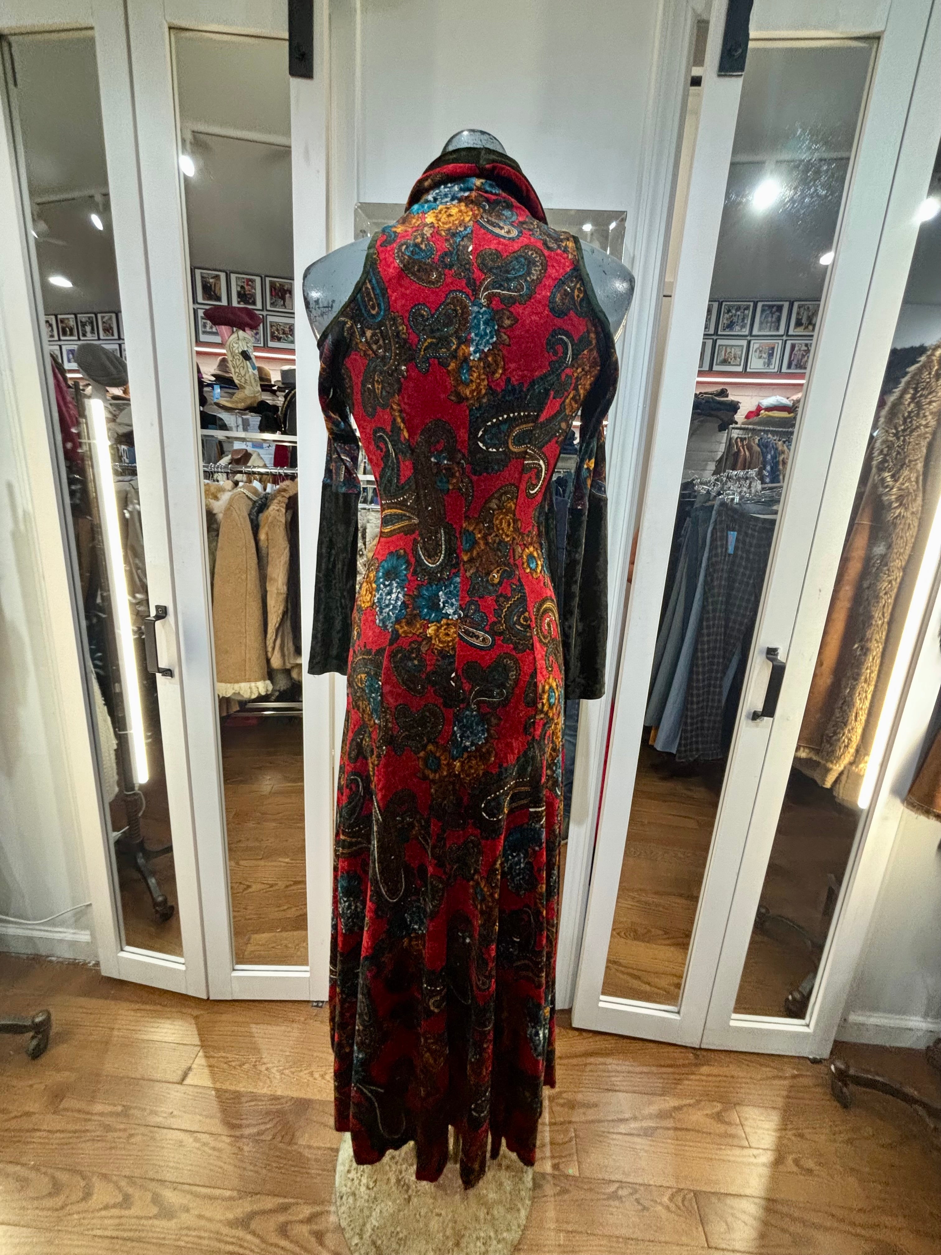 90’s Red & Green Multicolor Flower Velvet Maxi Dress