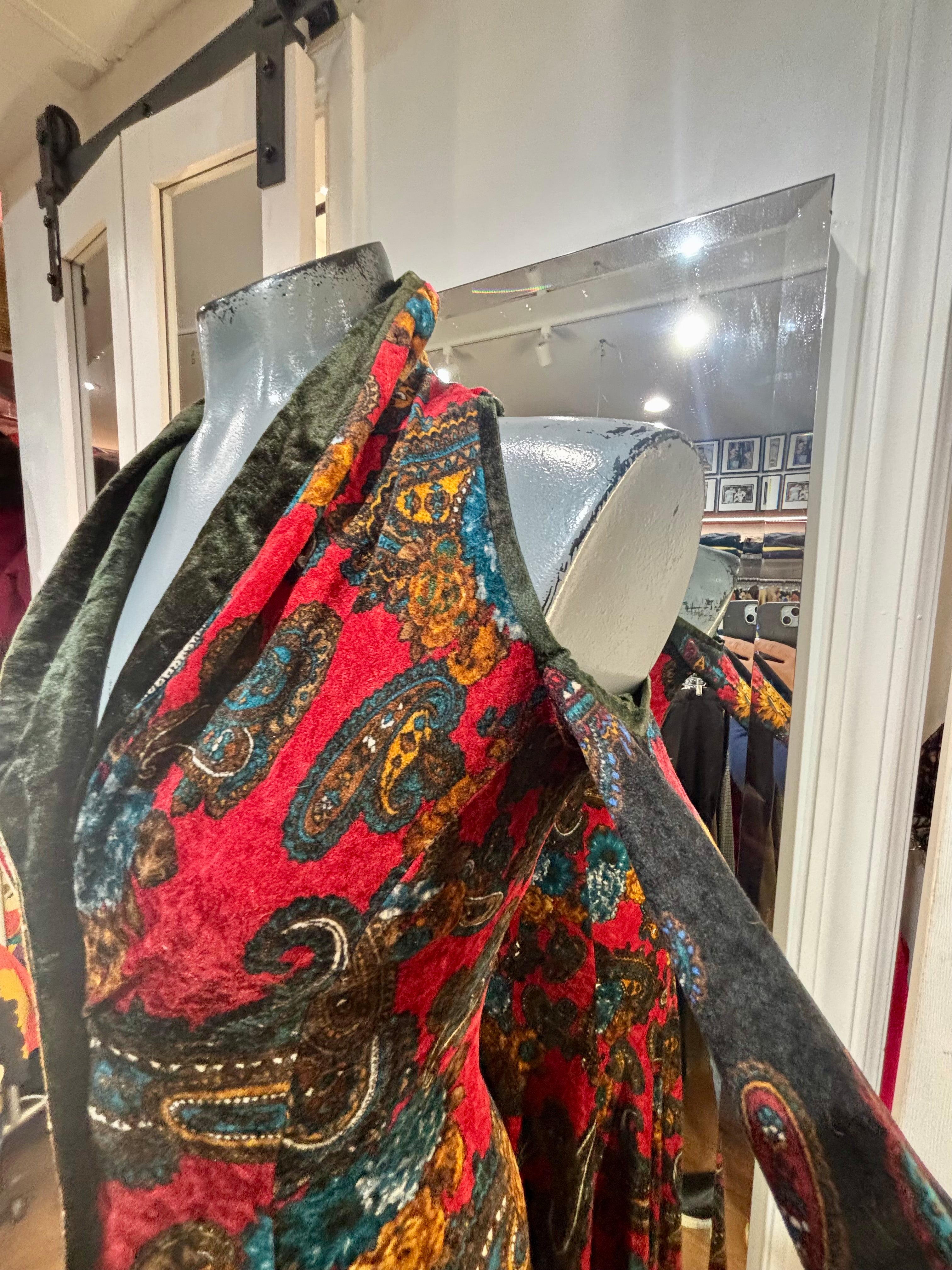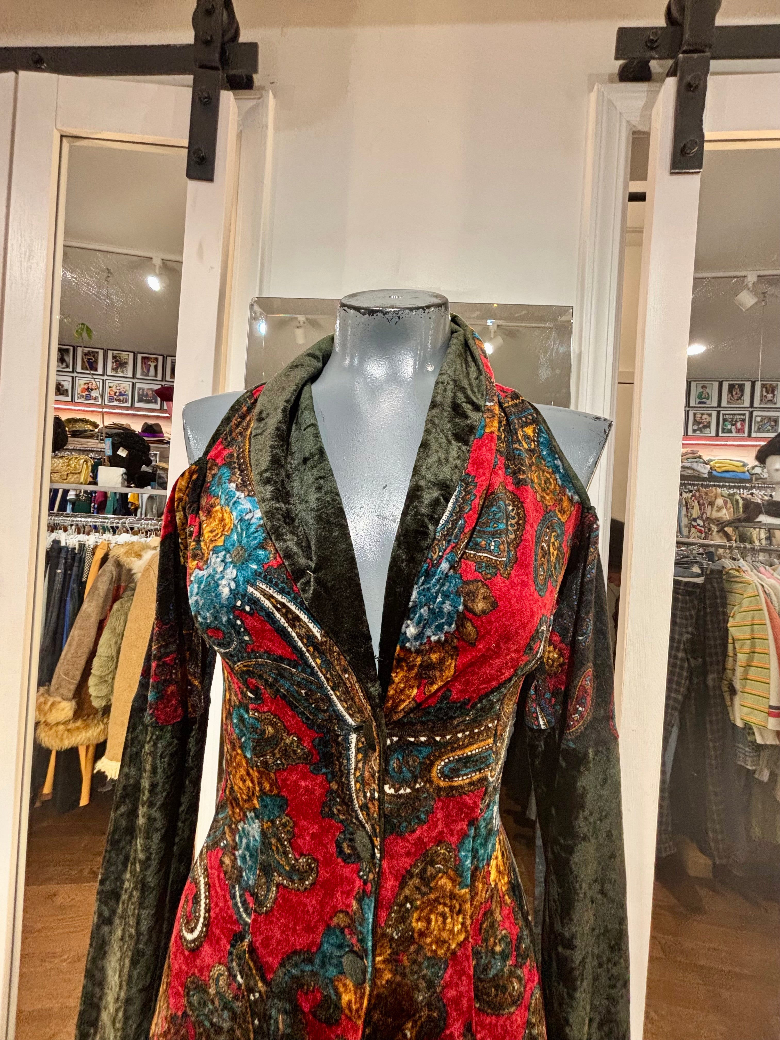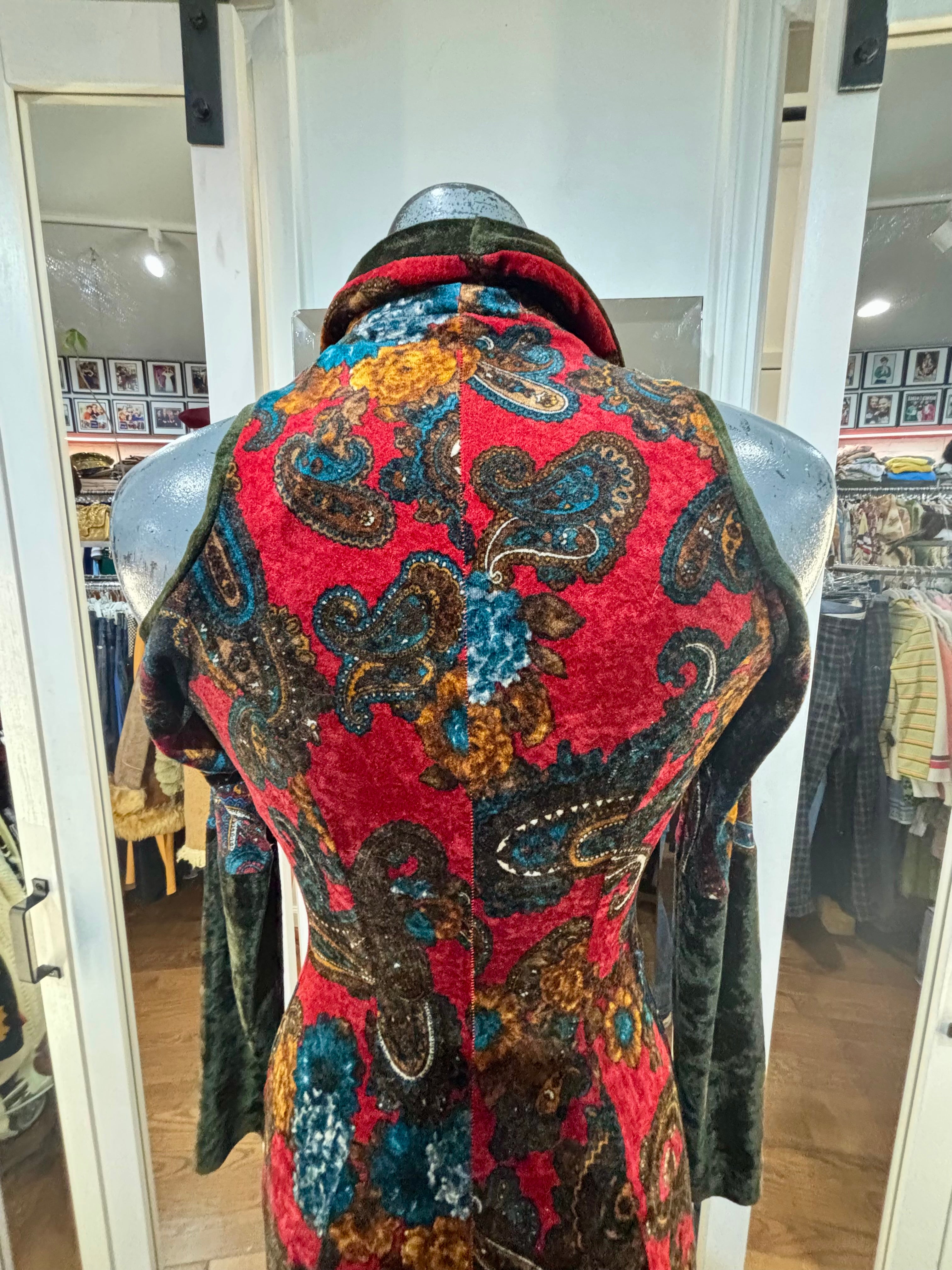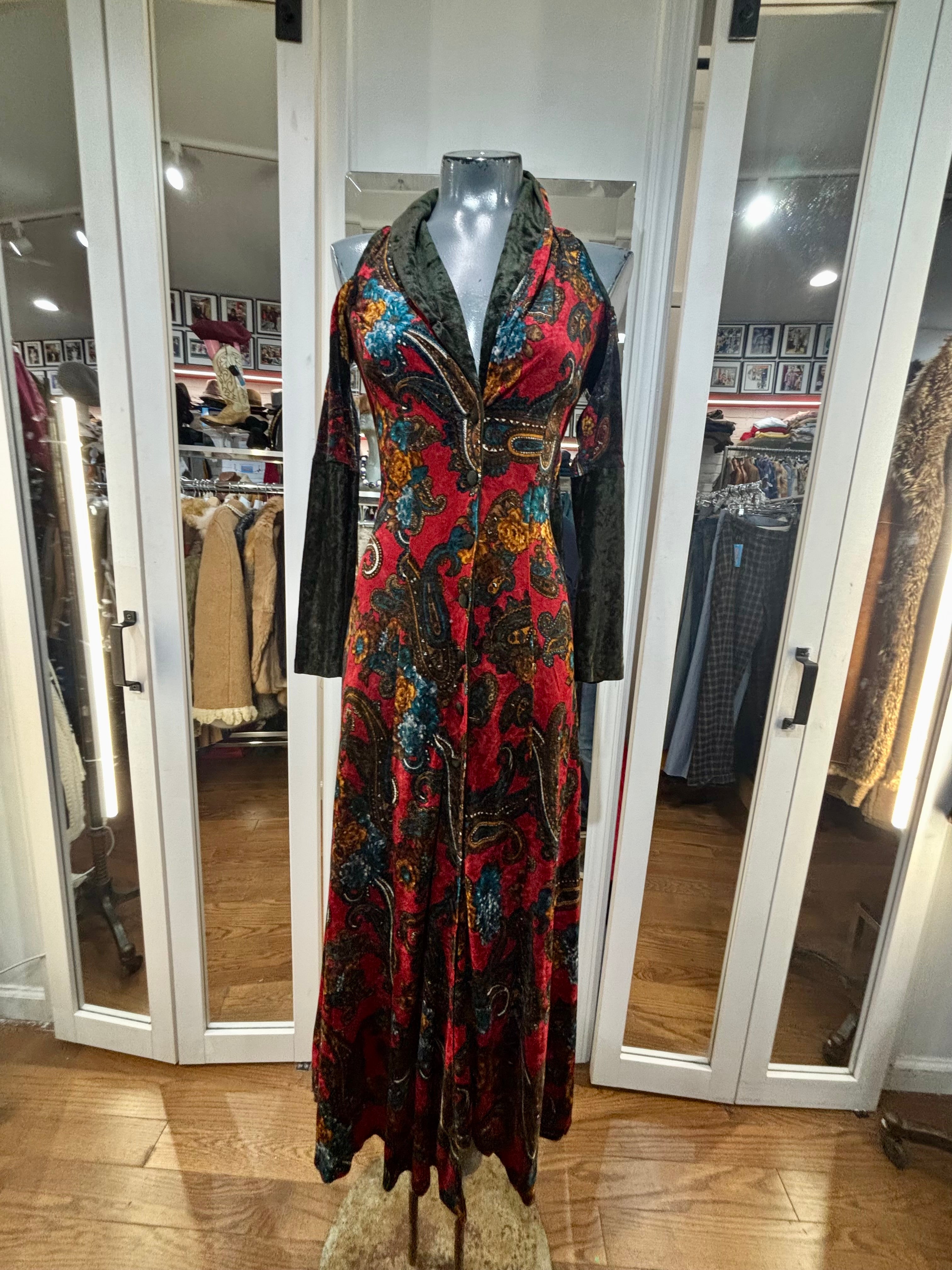 90’s Red & Green Multicolor Flower Velvet Maxi Dress