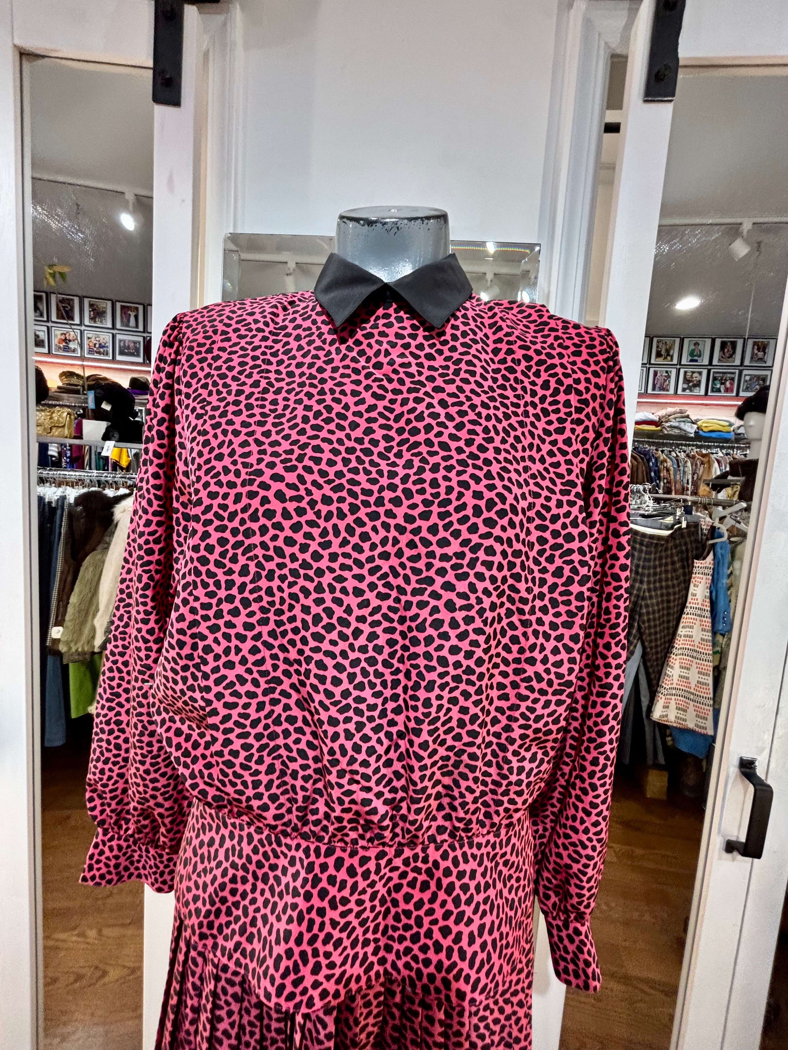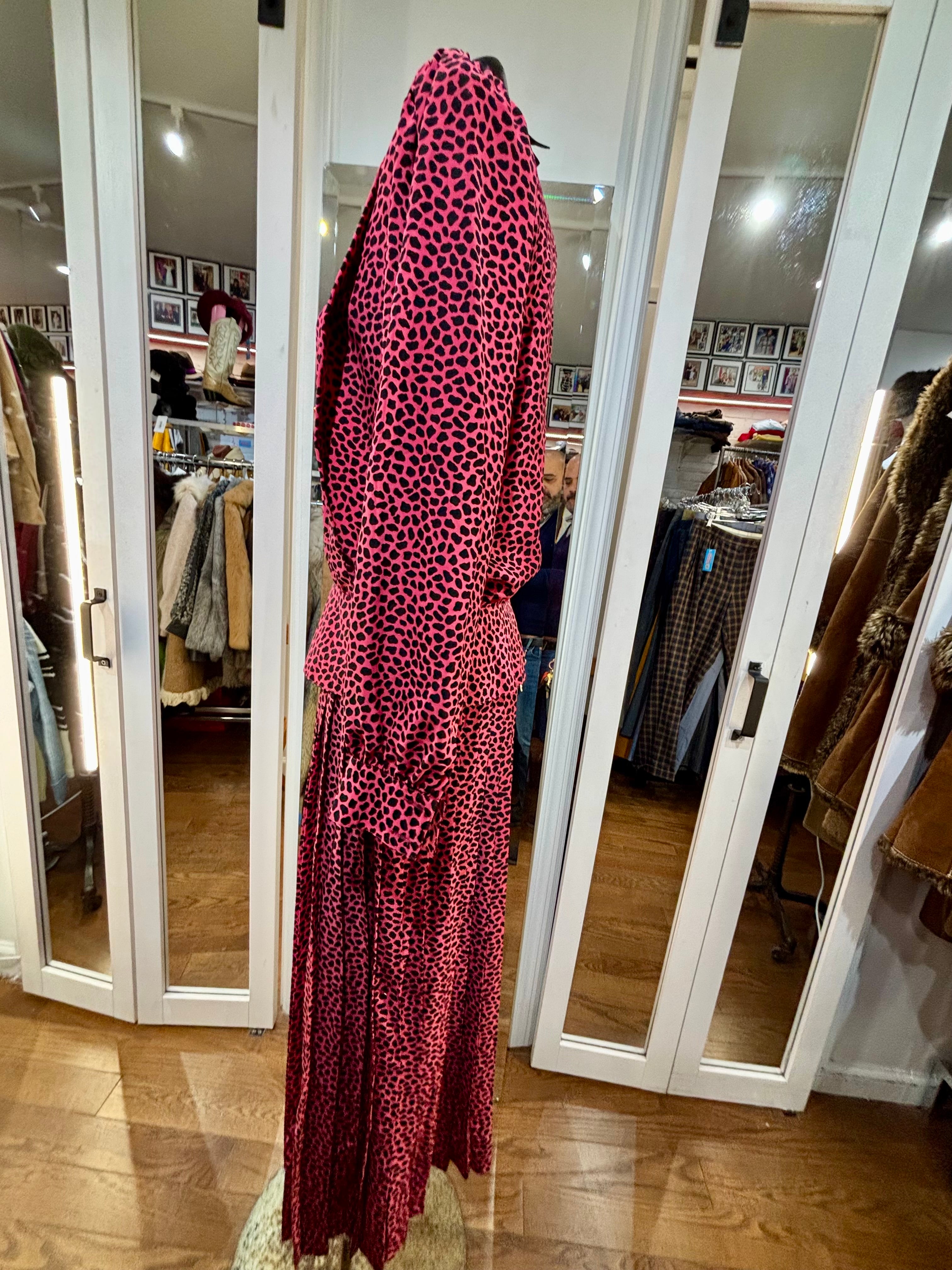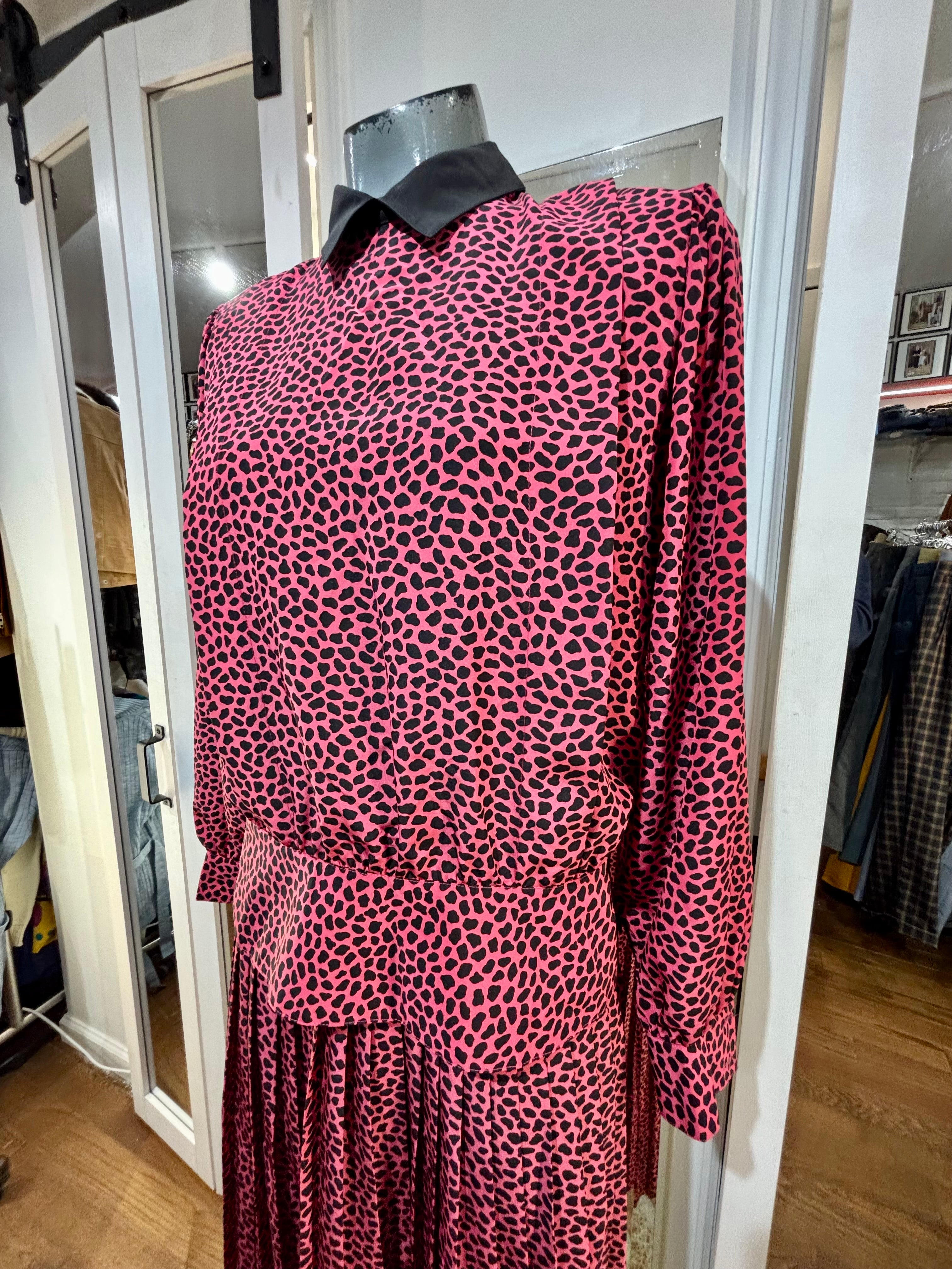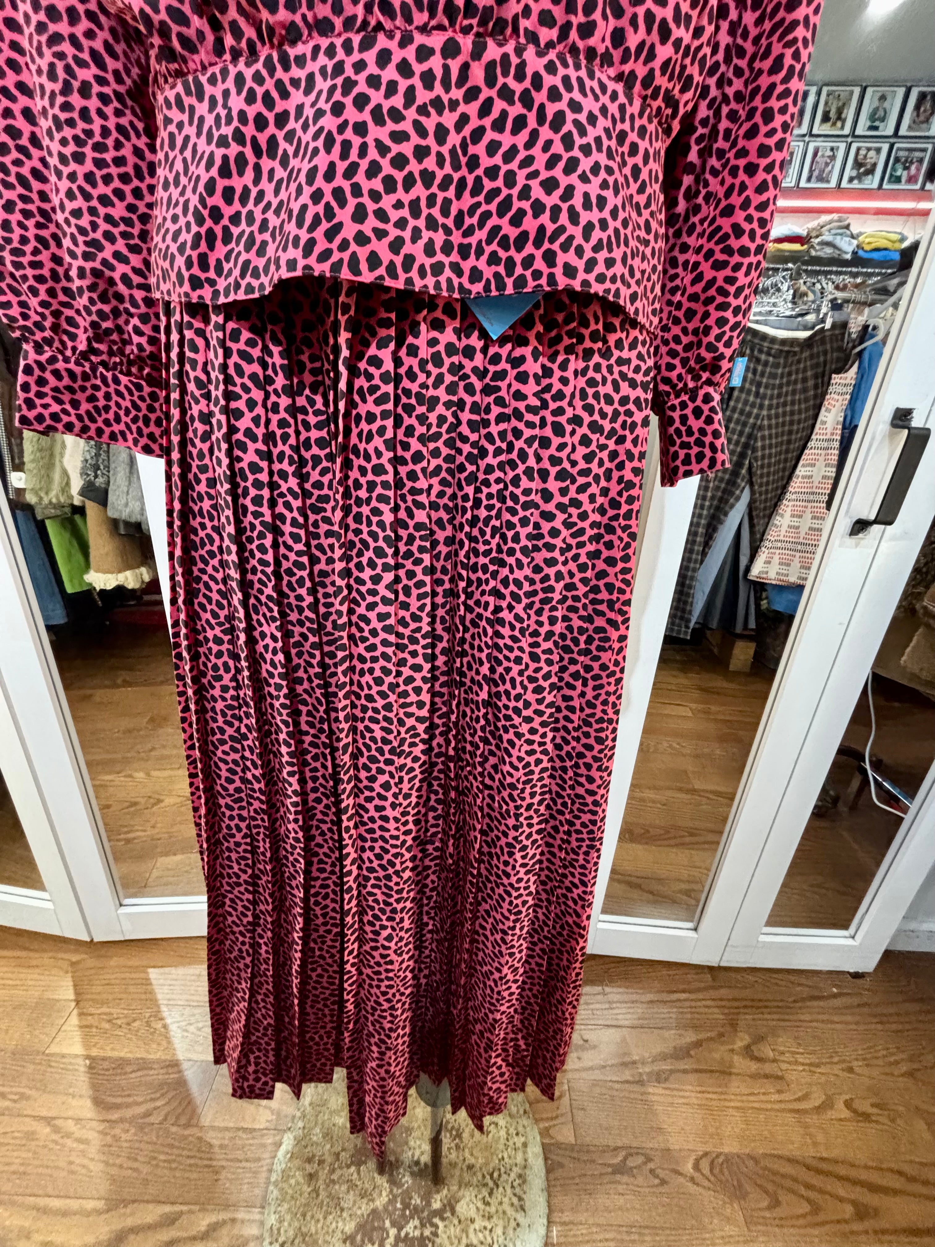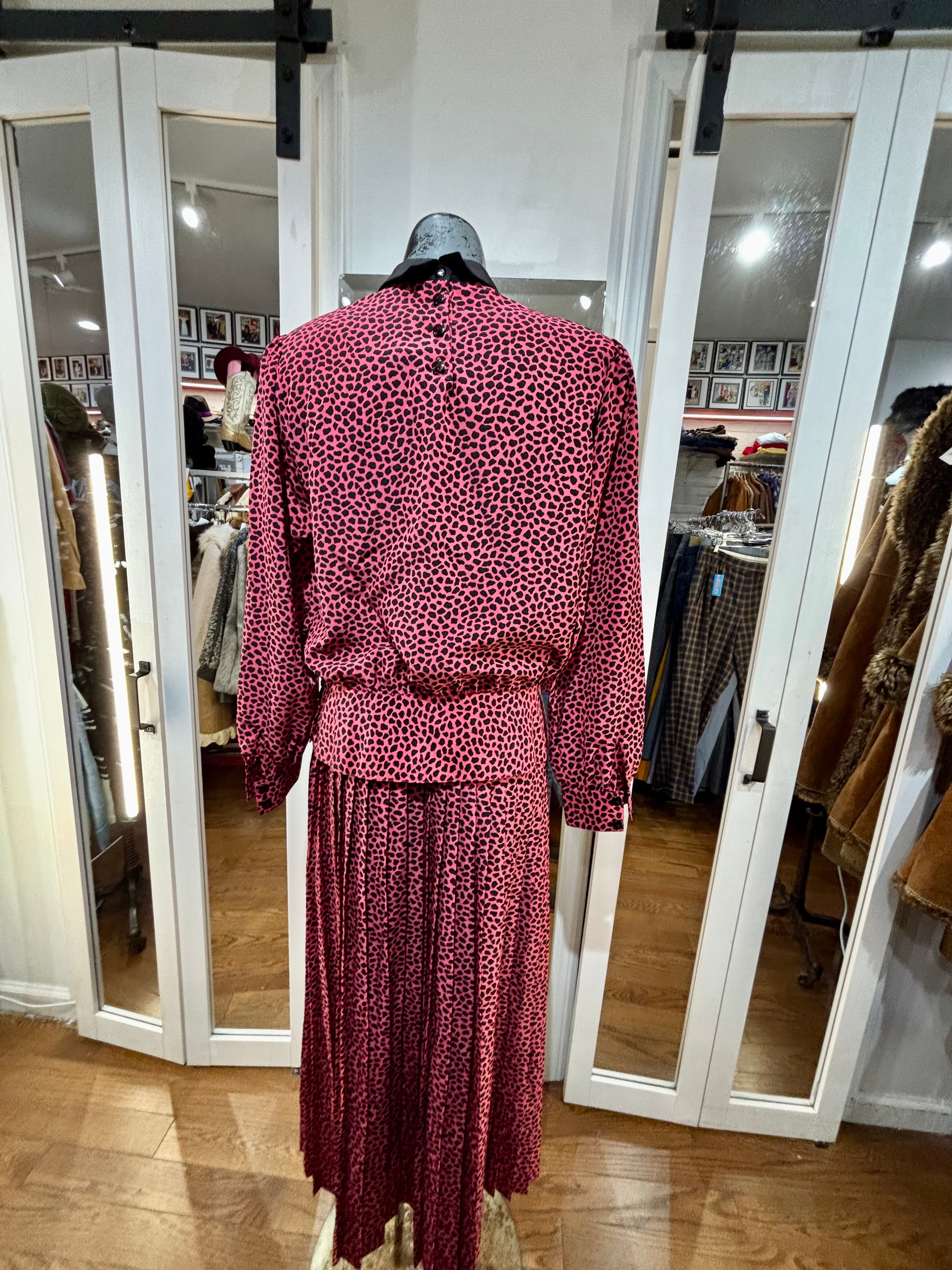 80’s Red & Black Print 2 Piece Skirt Set By Chaus