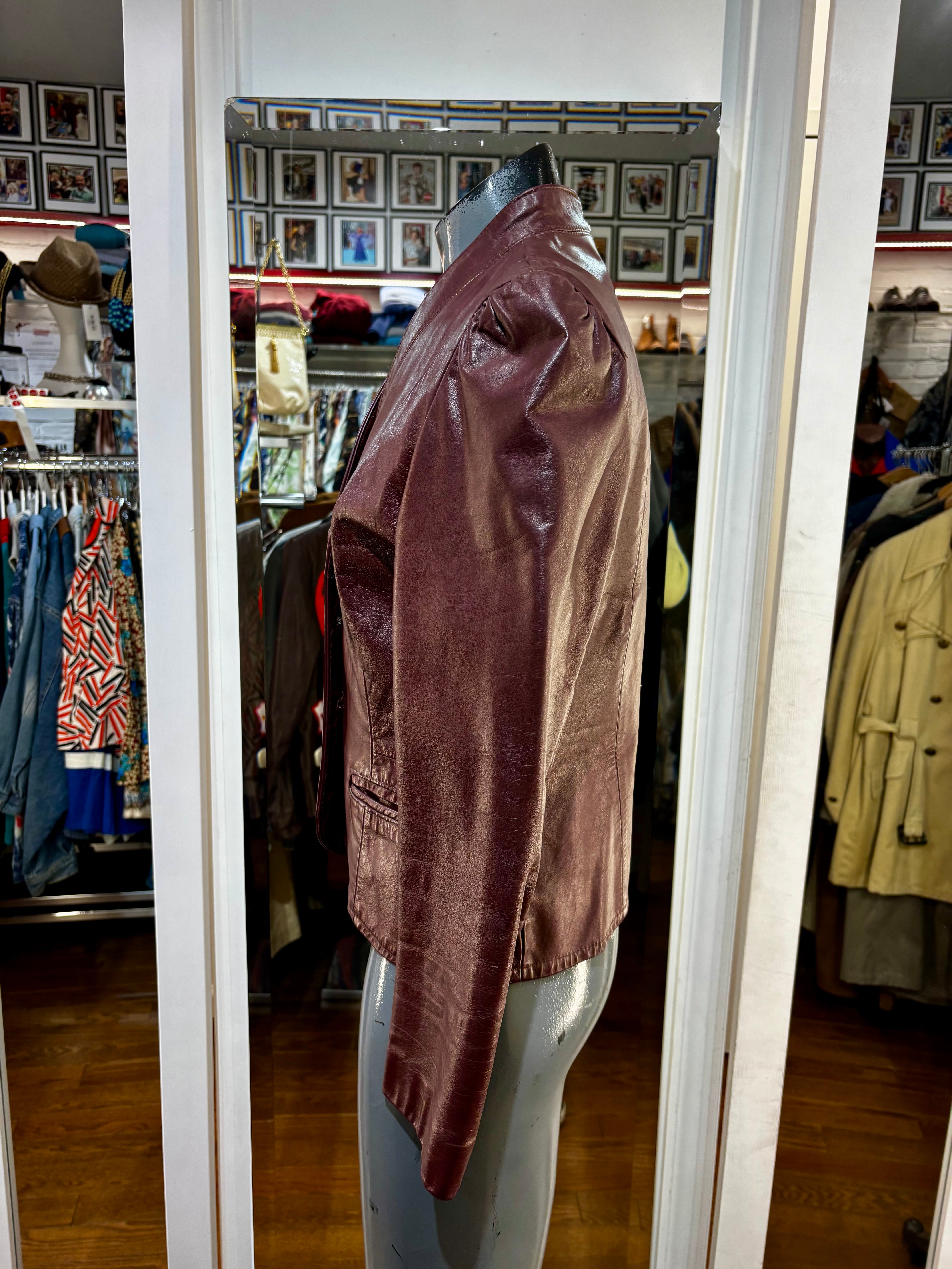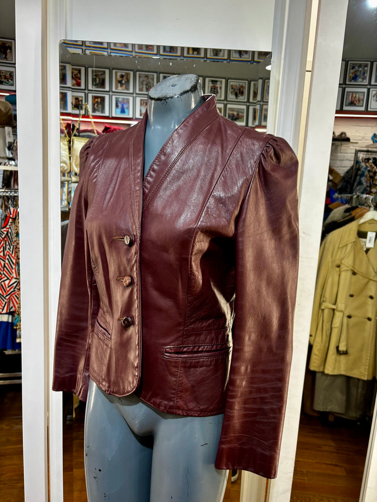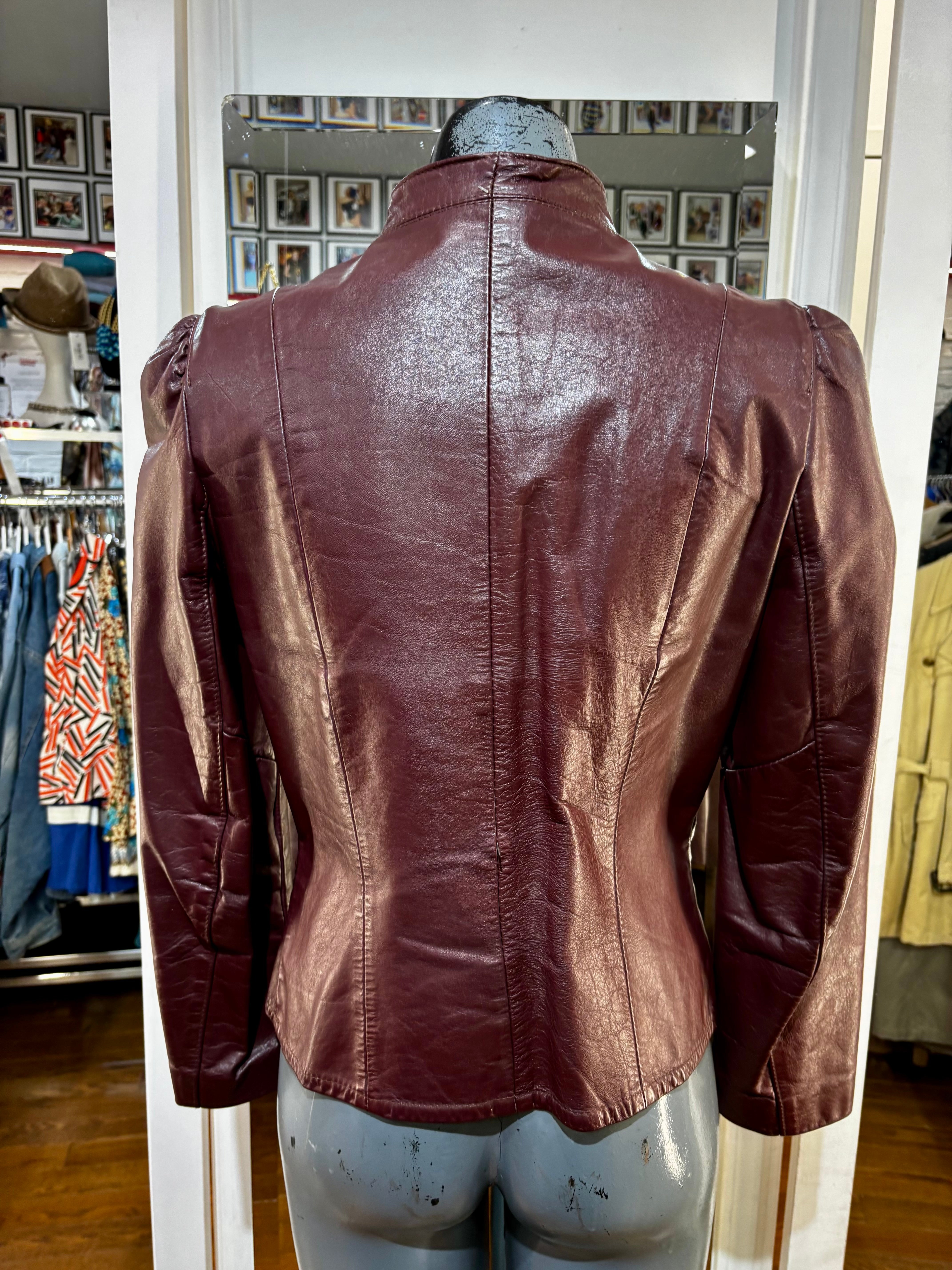 70’s Burgundy Short Leather Jacket By Garfin Leathers