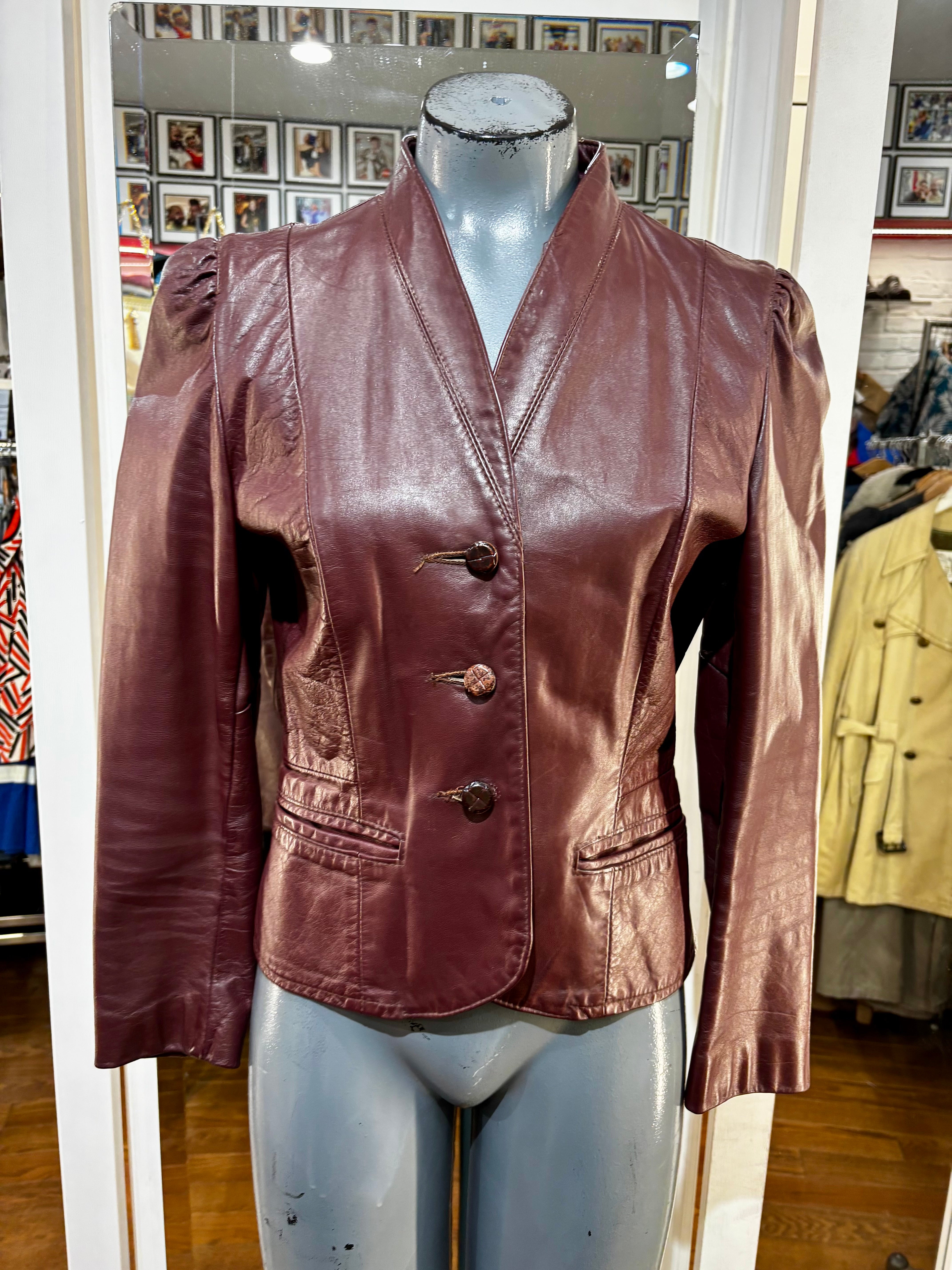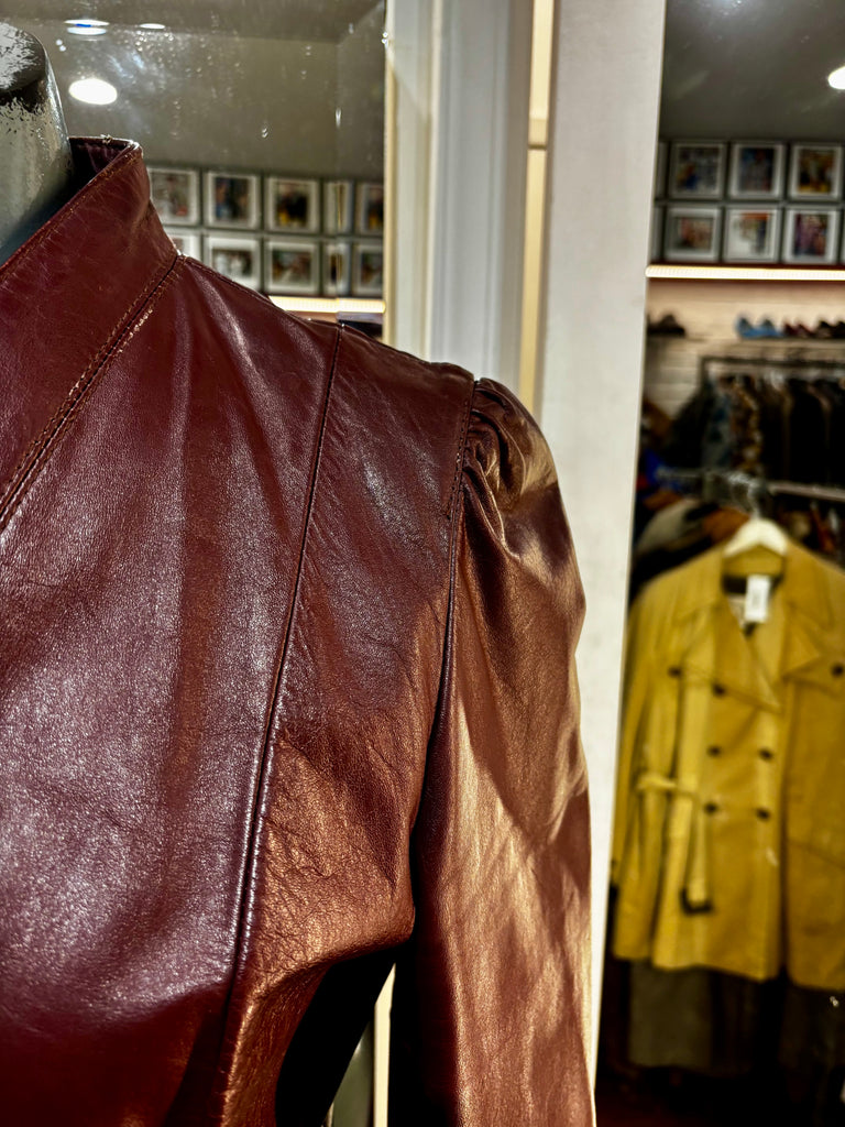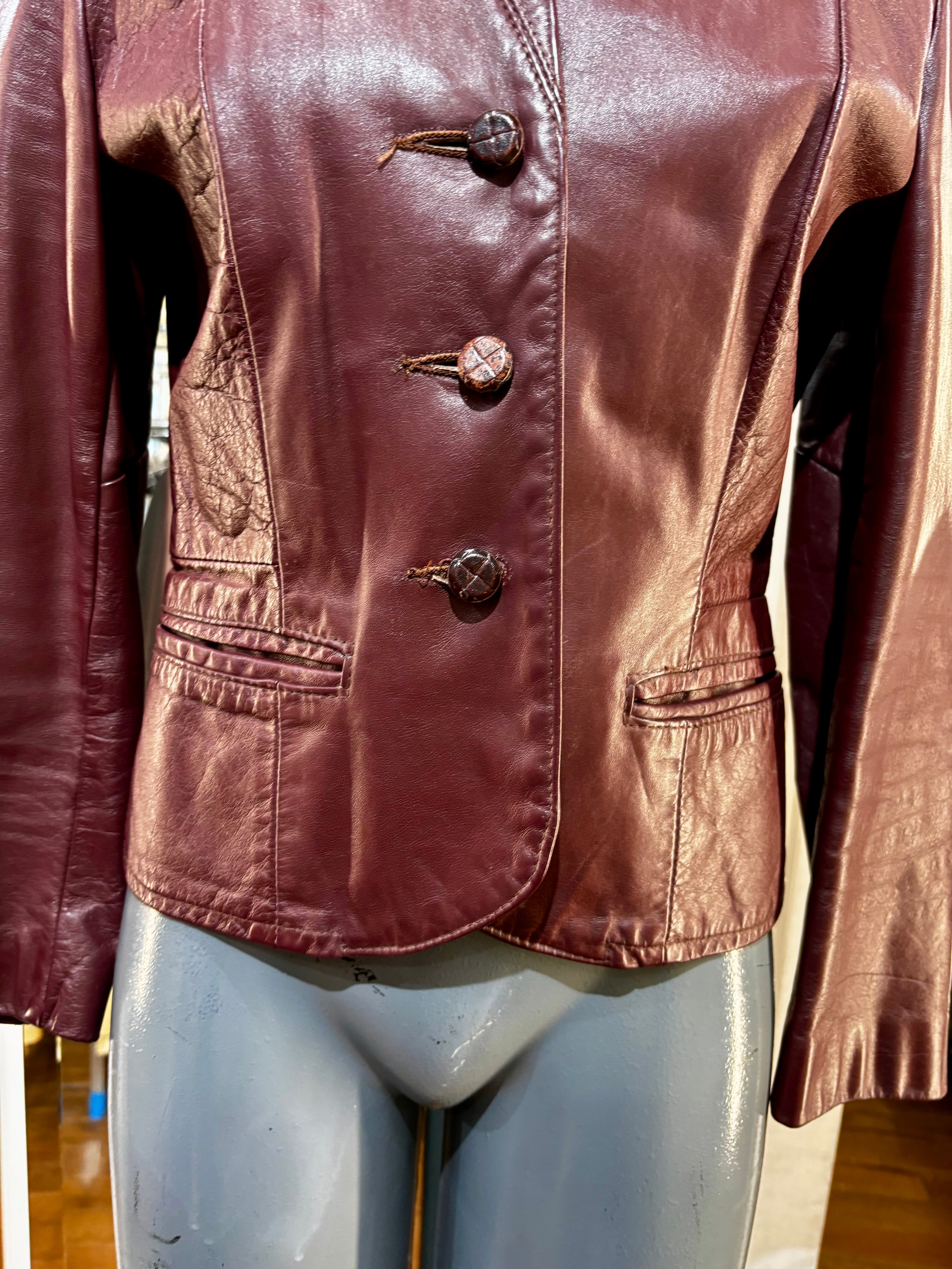 70’s Burgundy Short Leather Jacket By Garfin Leathers