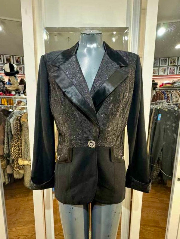 90’s Black Two Tone Dinner Jacket By Caché