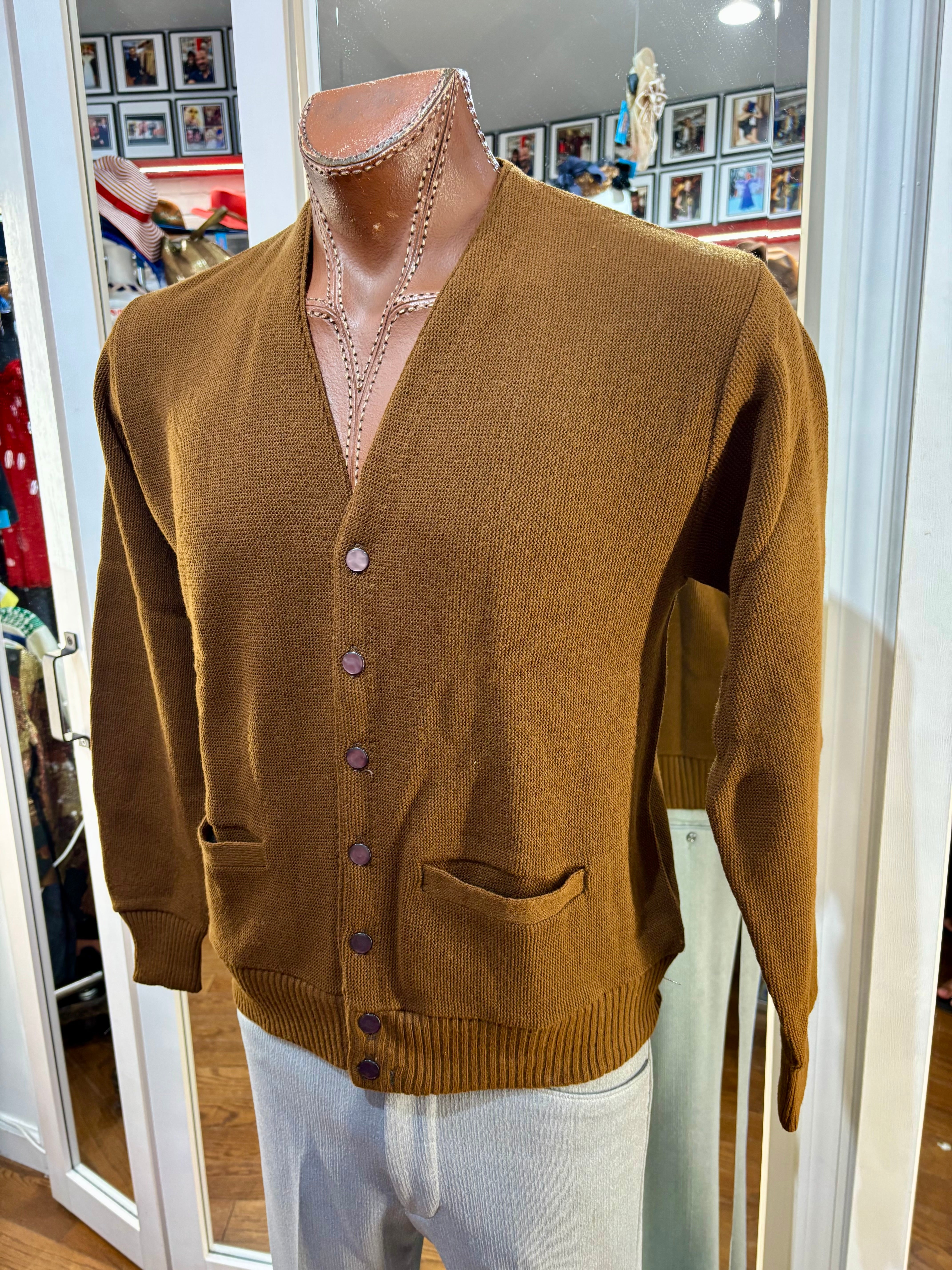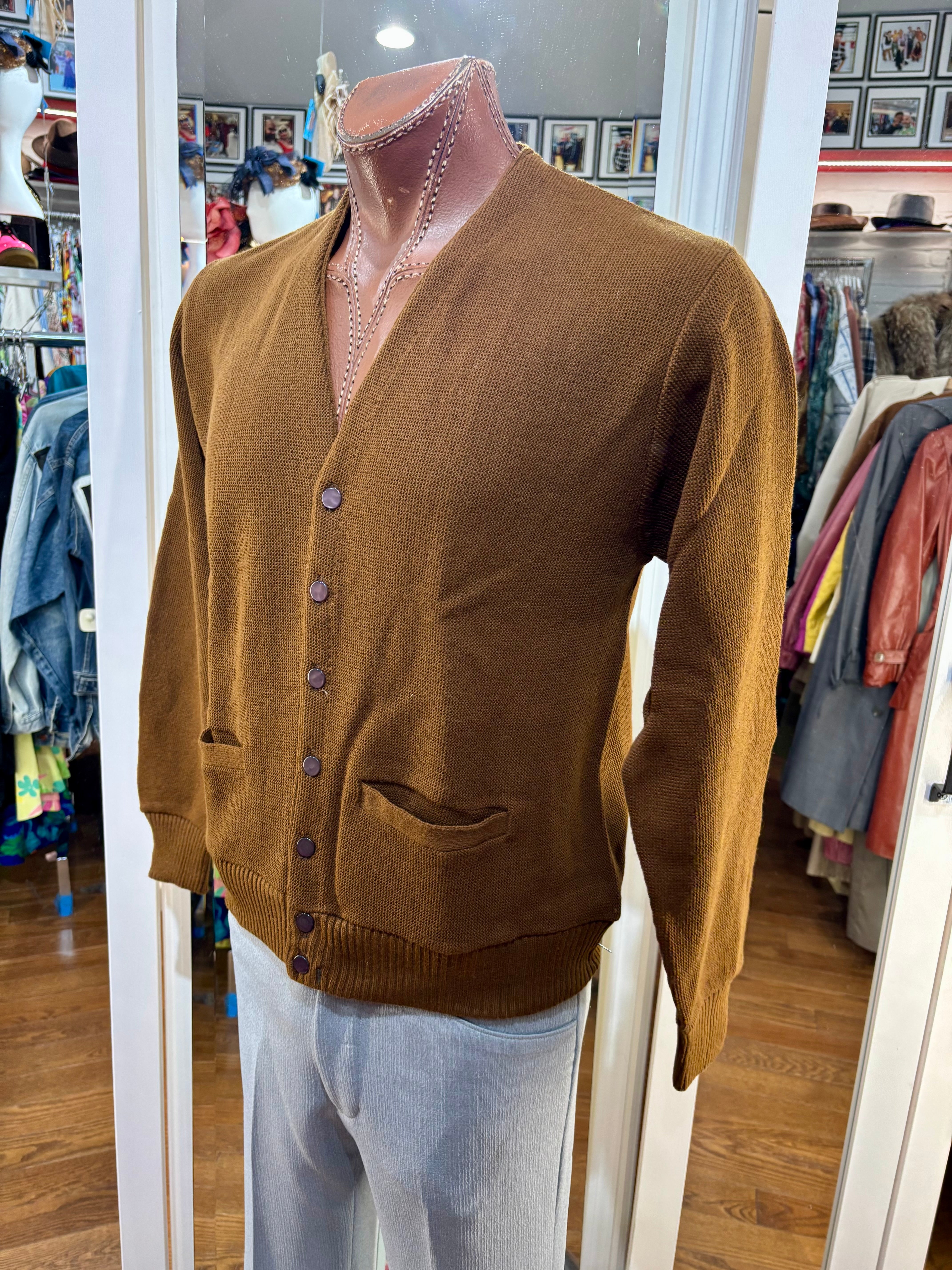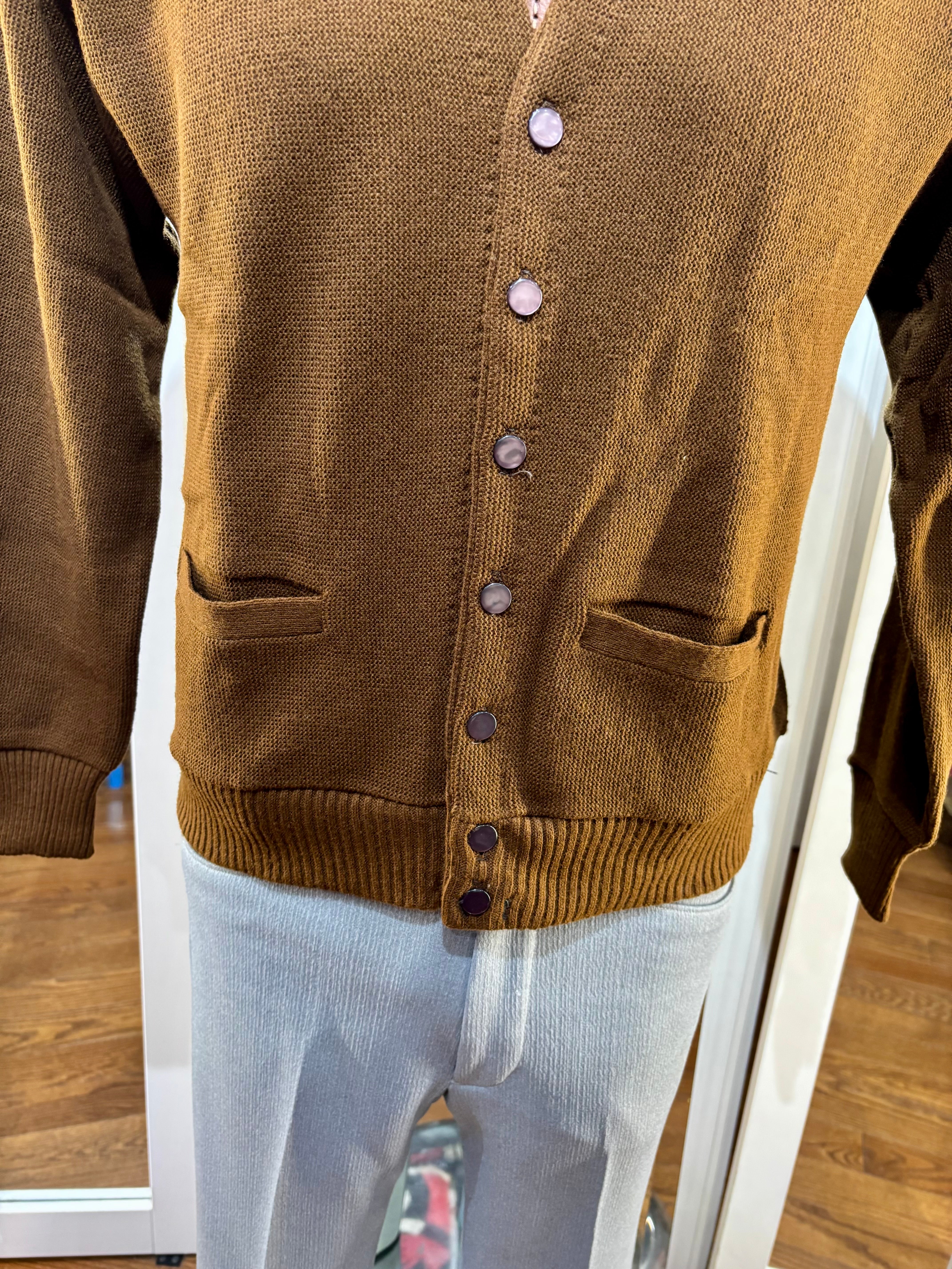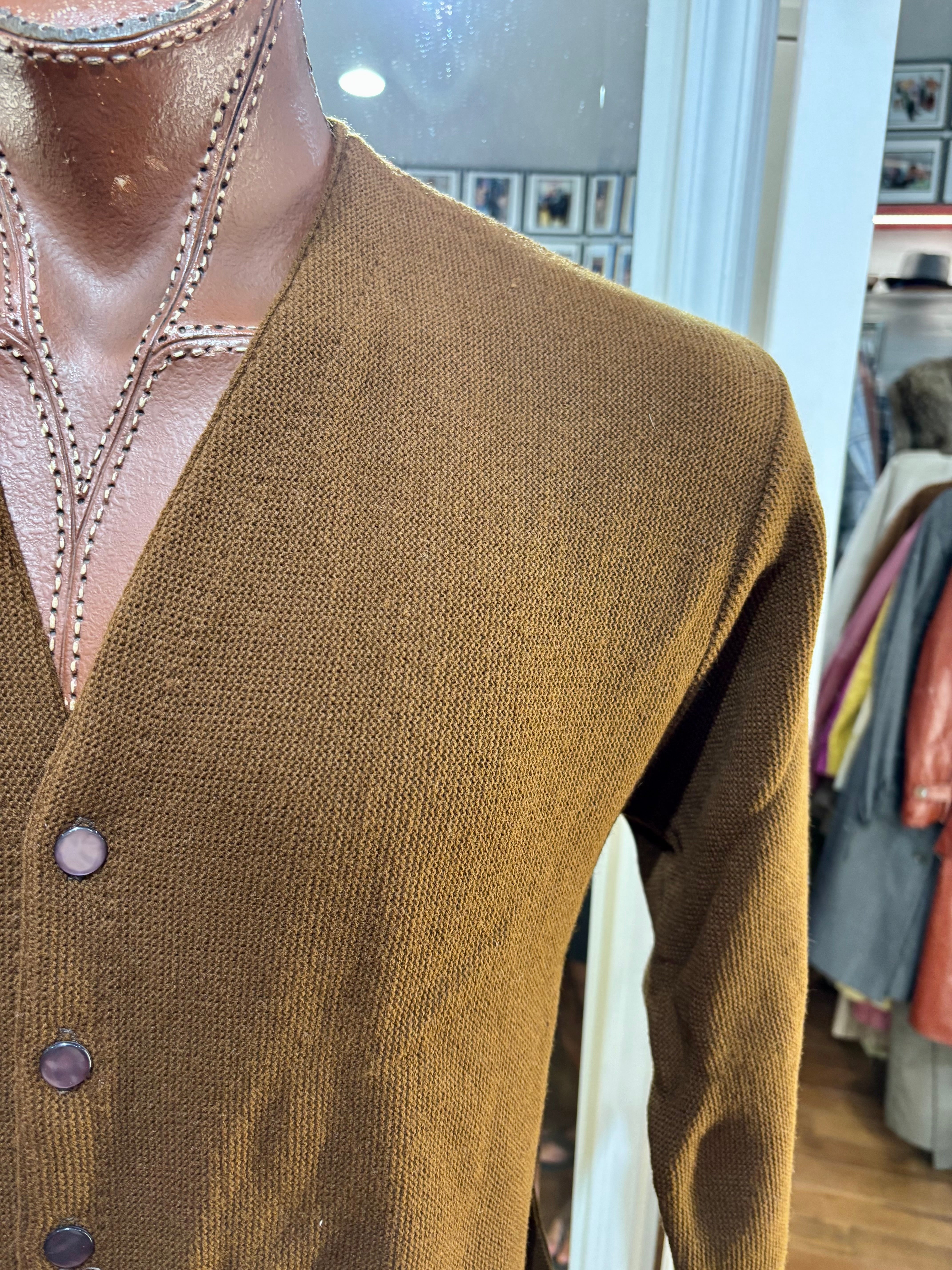 60’s Latte Brown Knitted Button Cardigan With 2 Front Pockets By Sedqewick