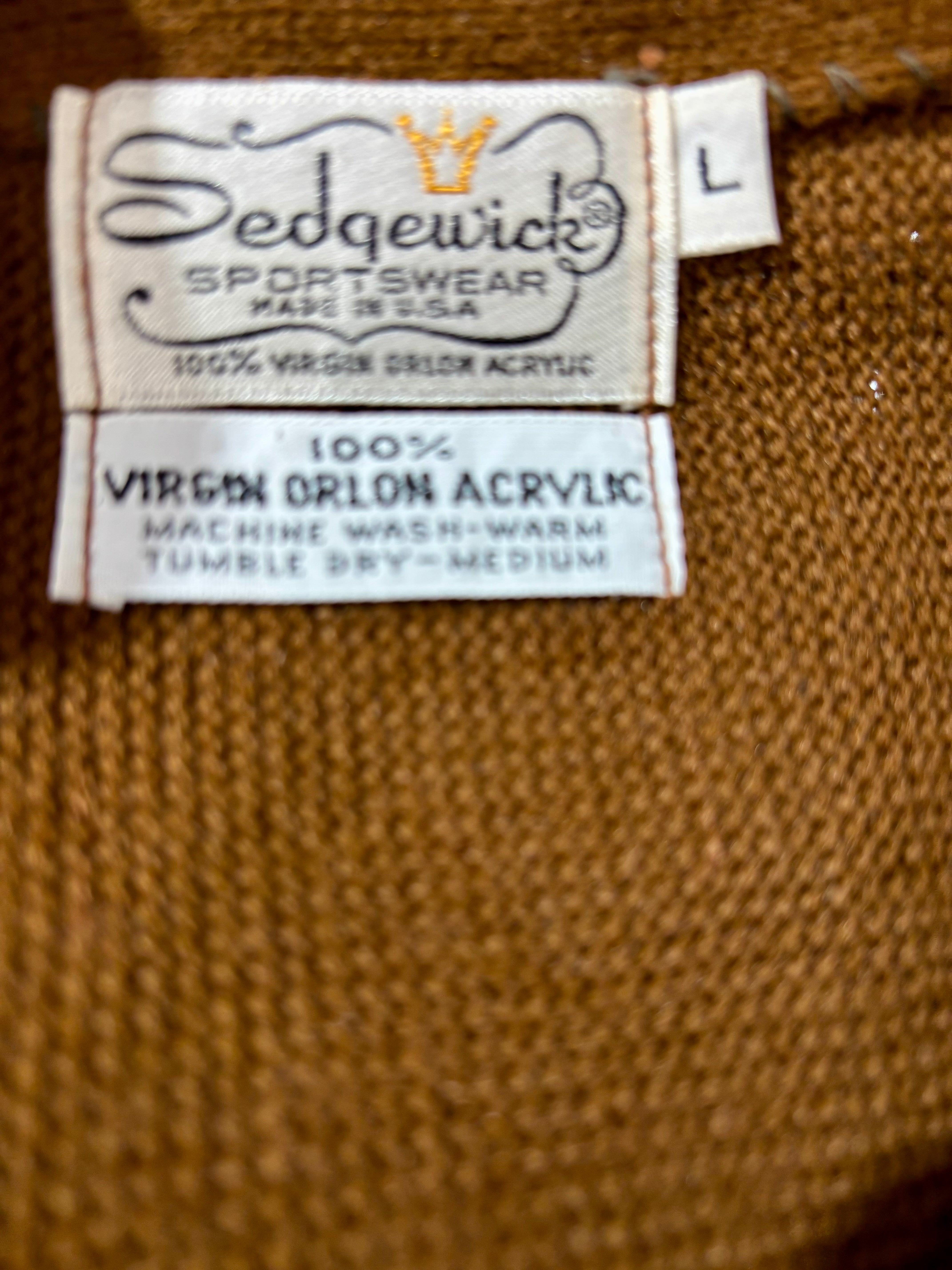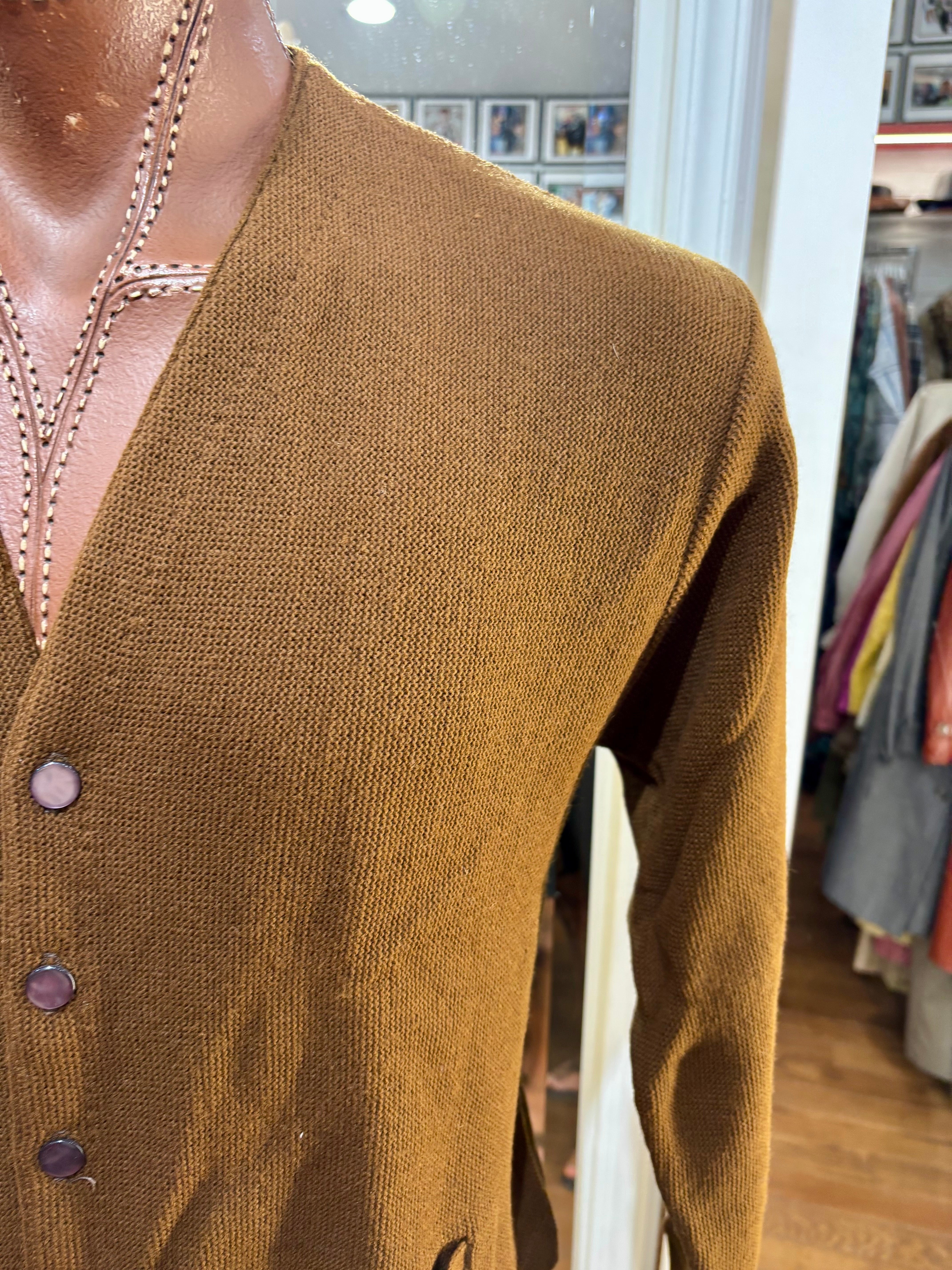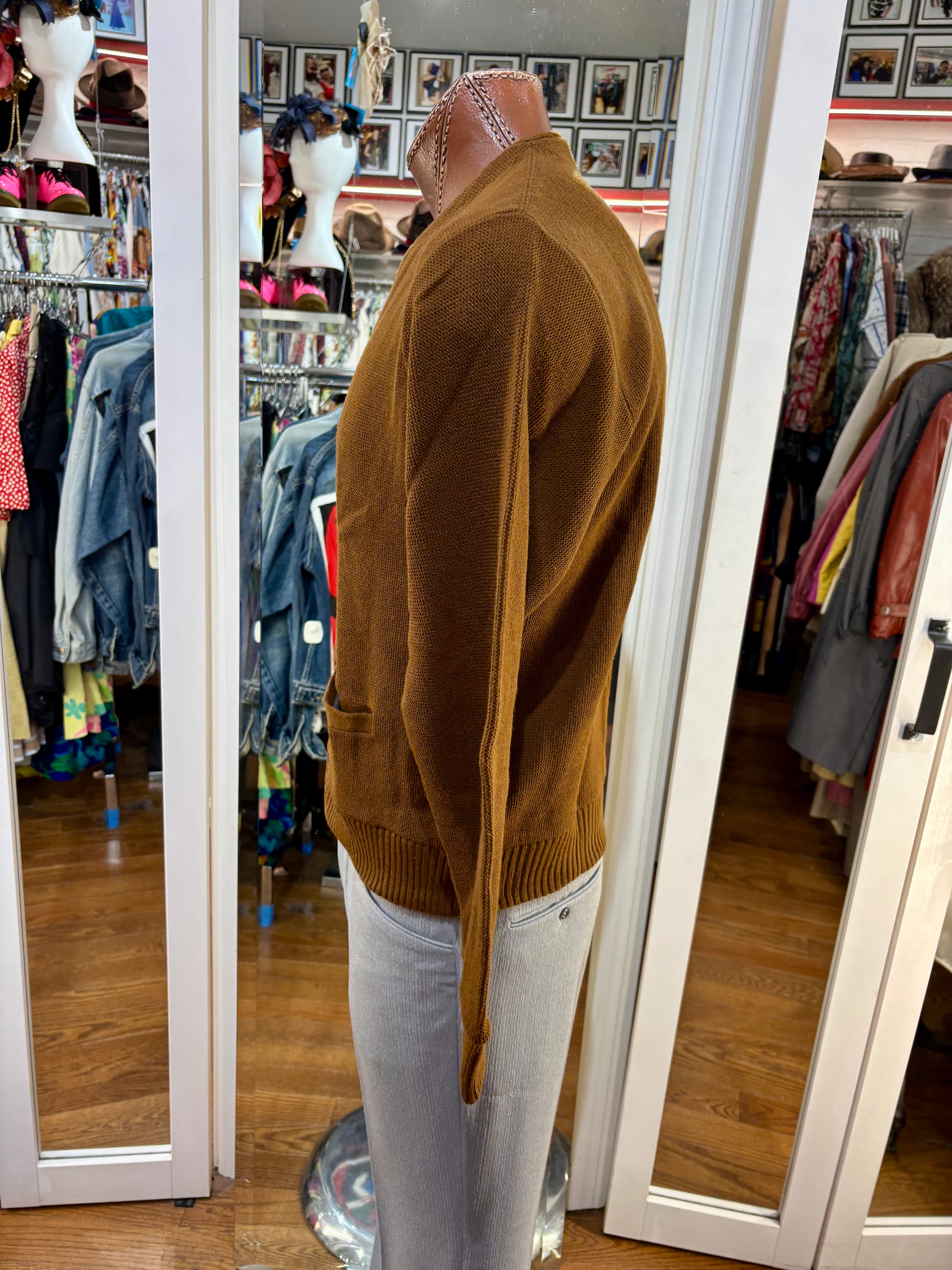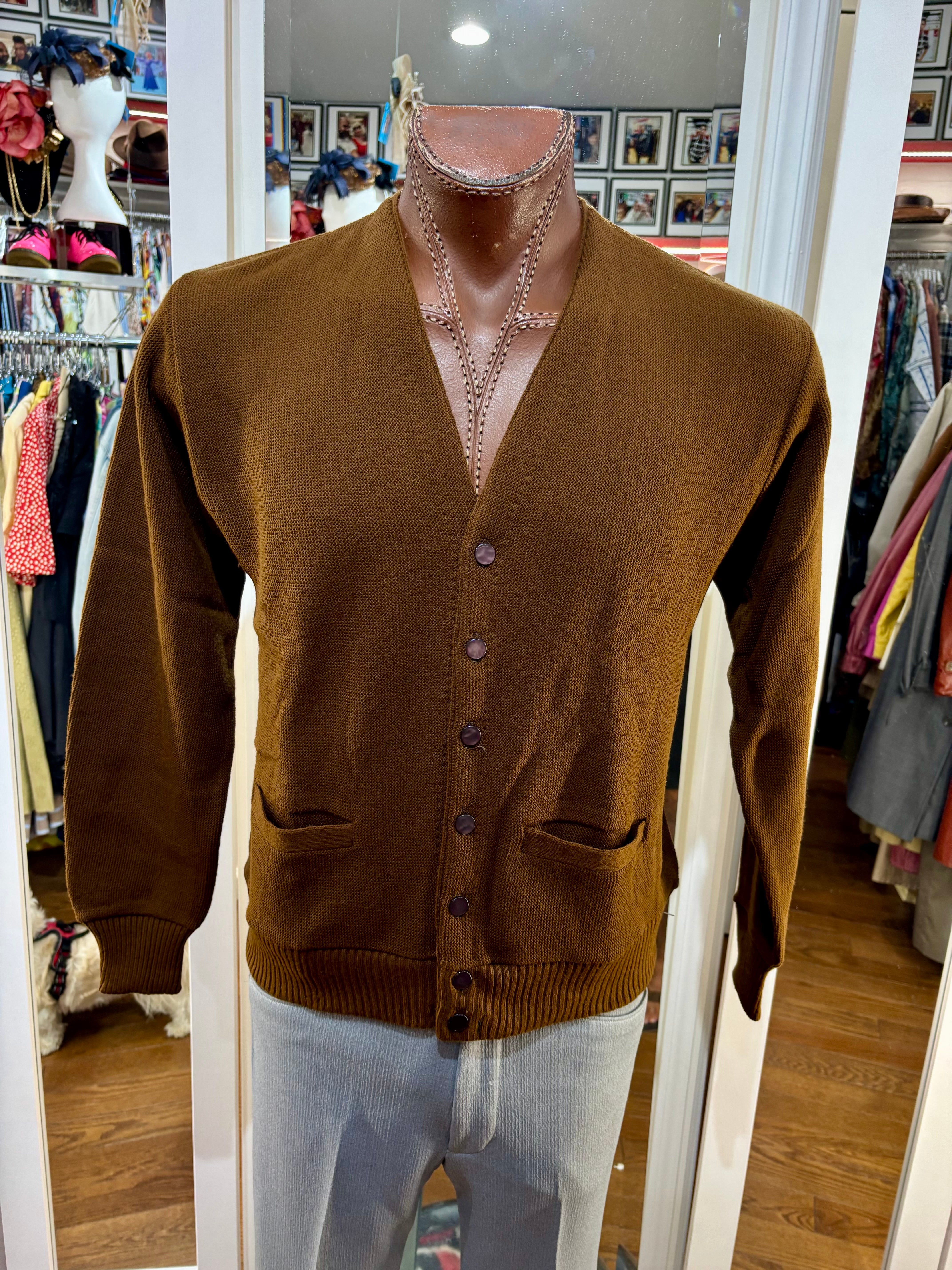 60’s Latte Brown Knitted Button Cardigan With 2 Front Pockets By Sedqewick