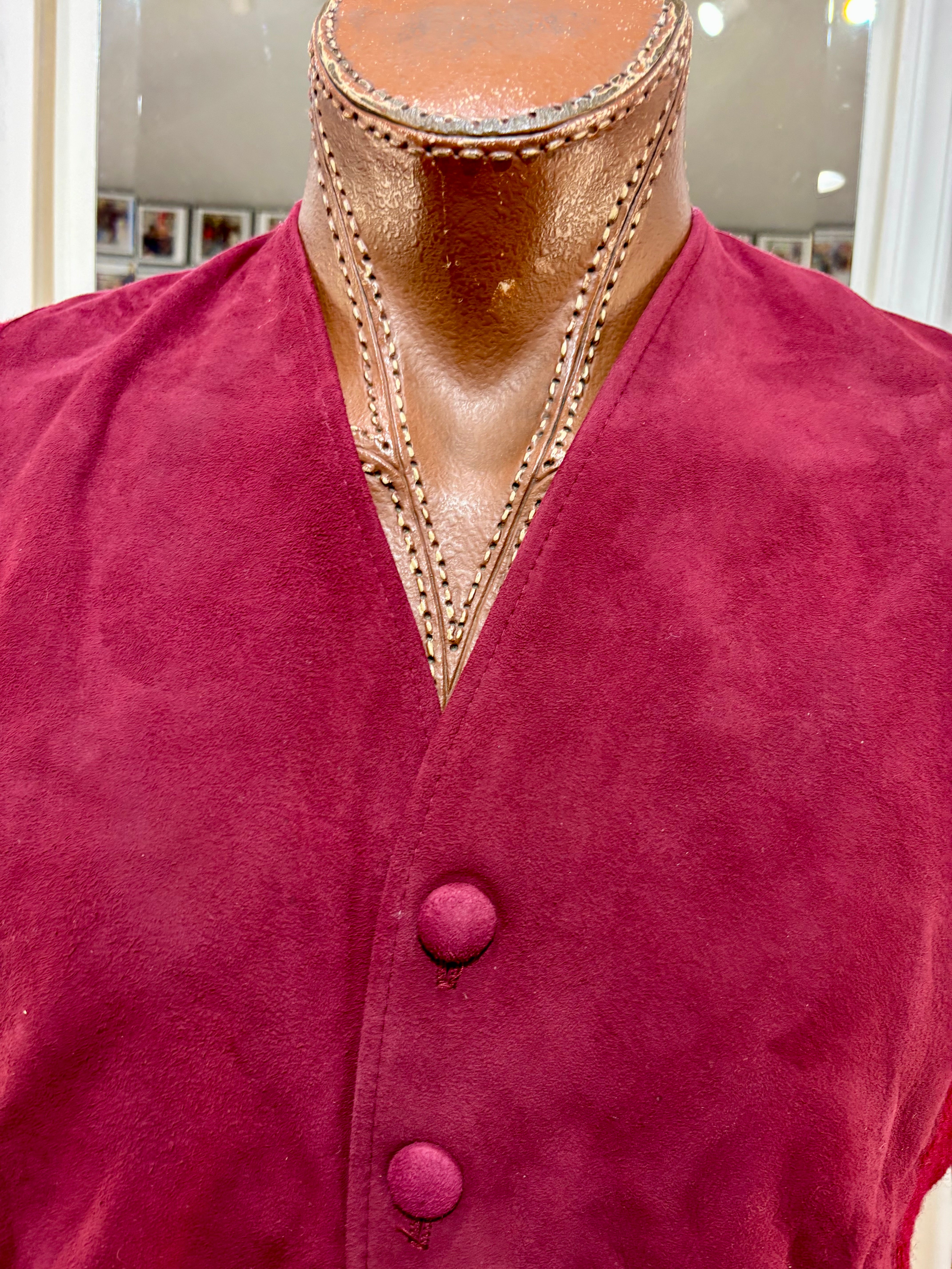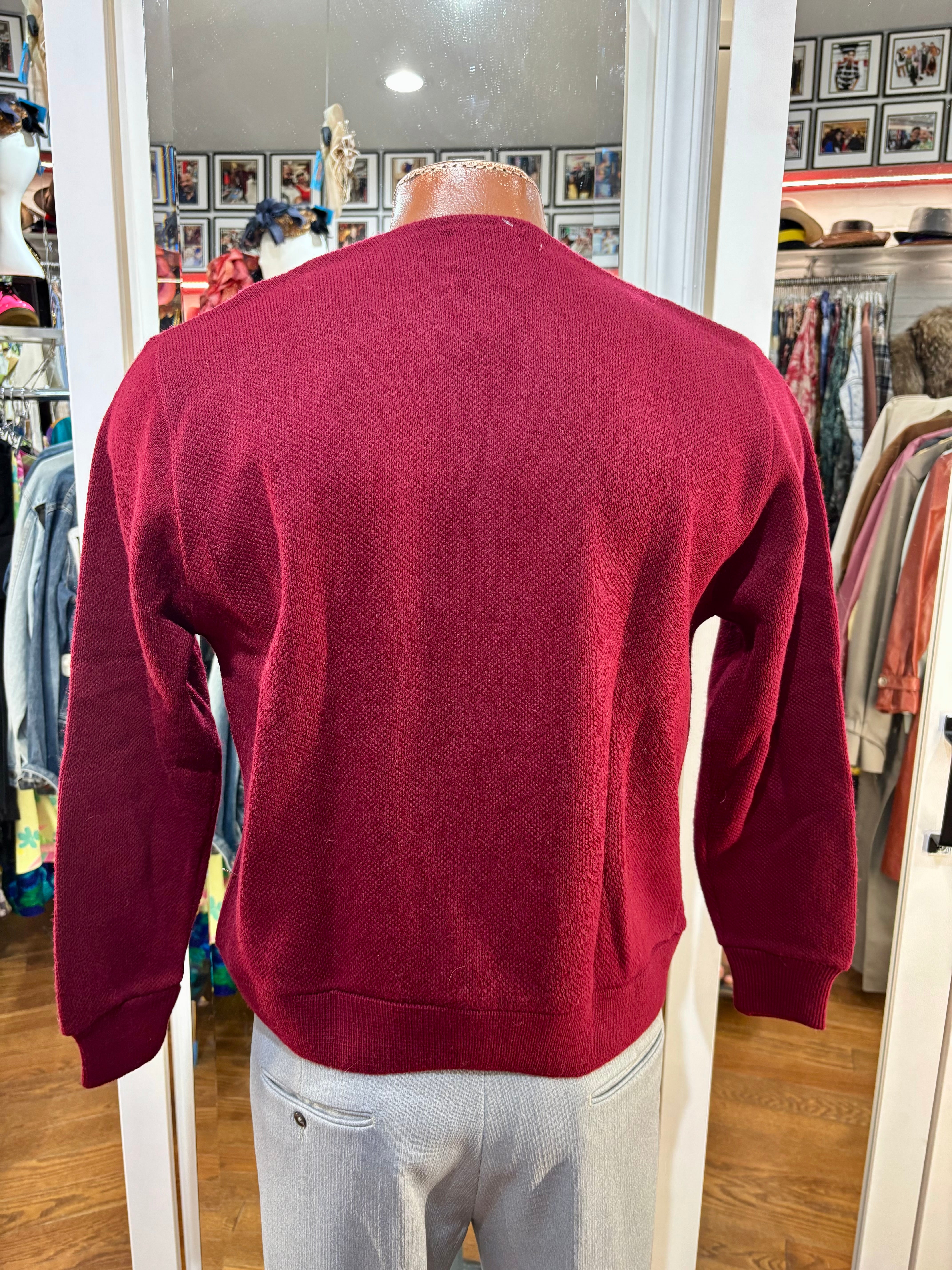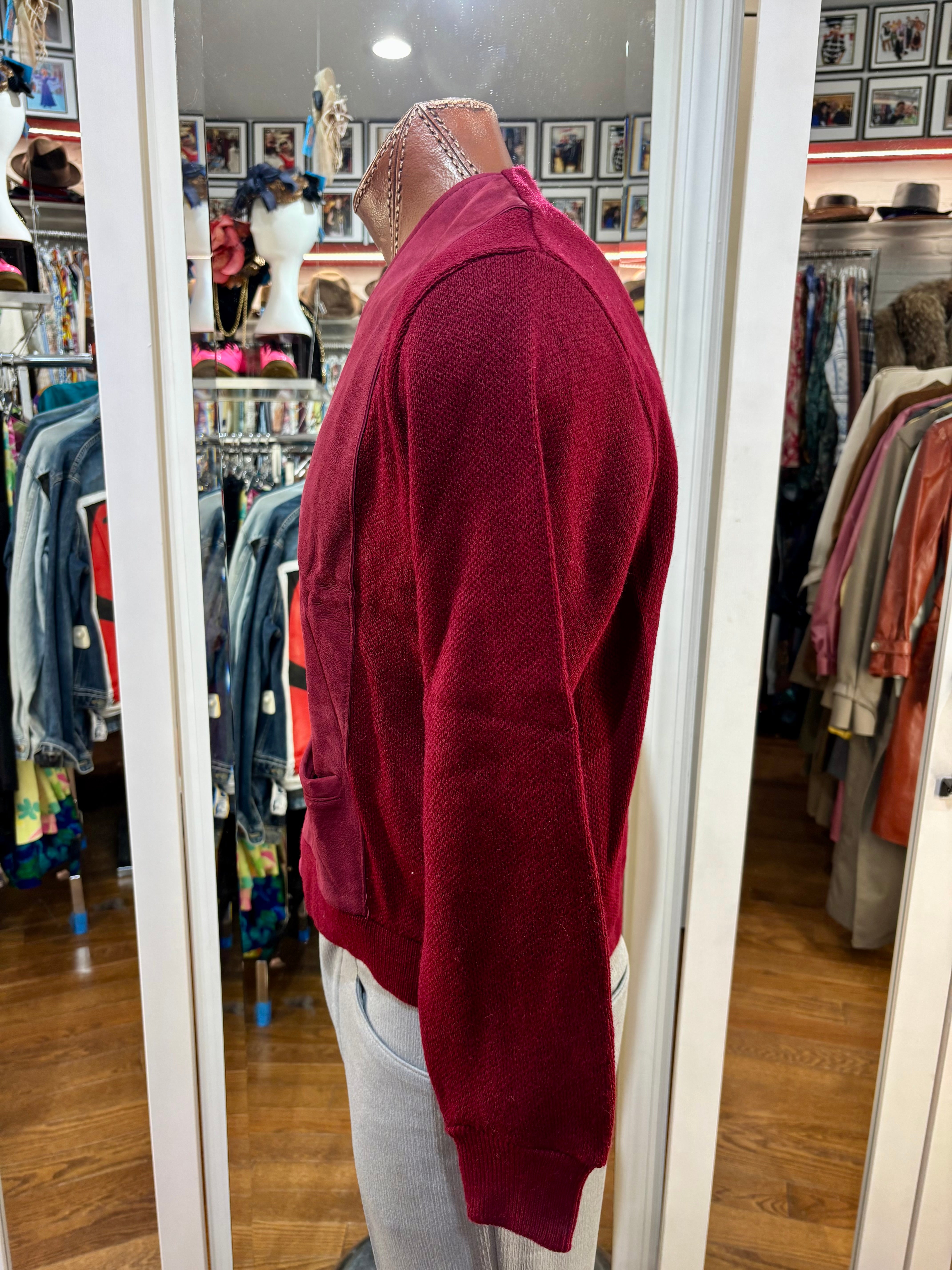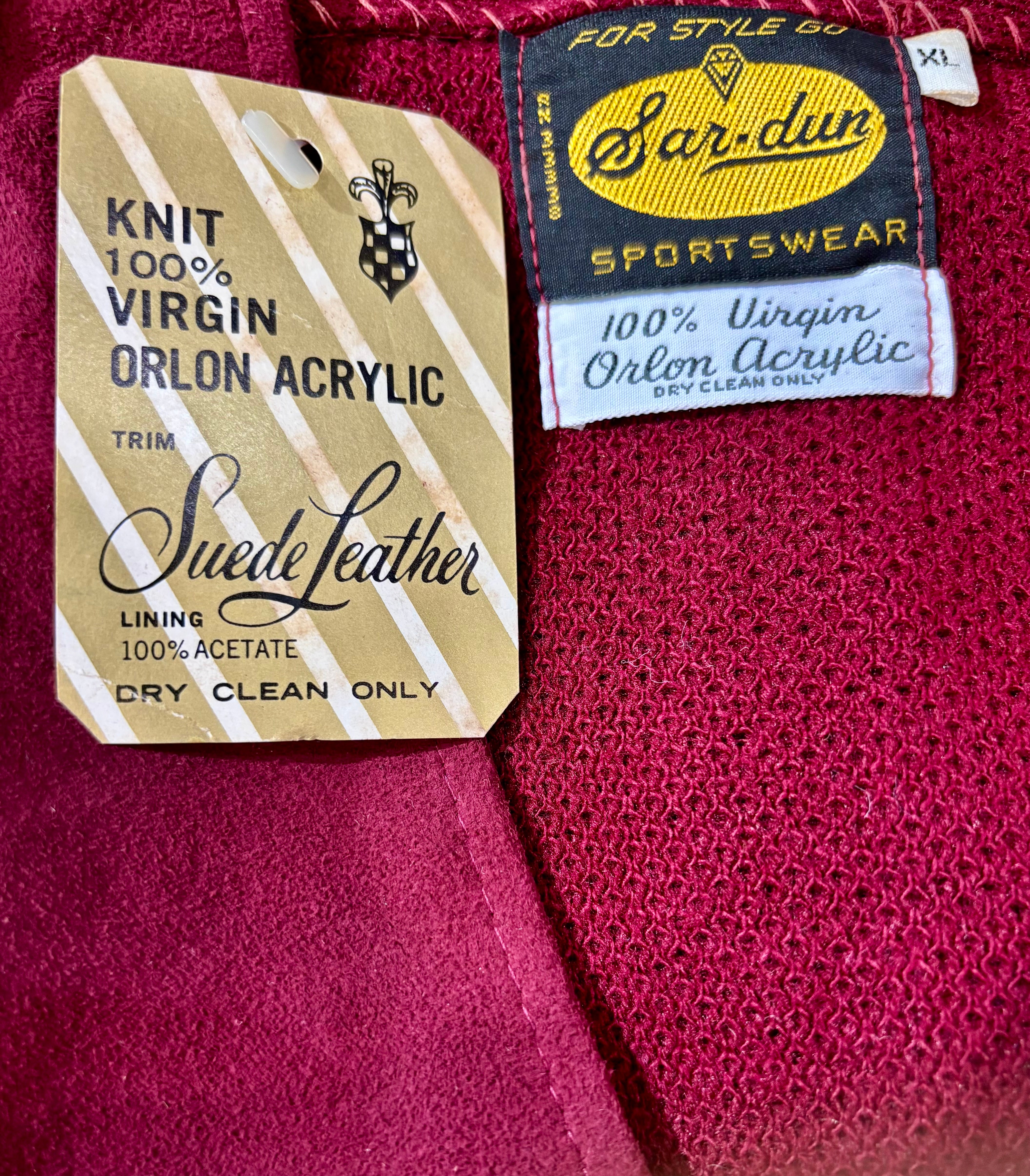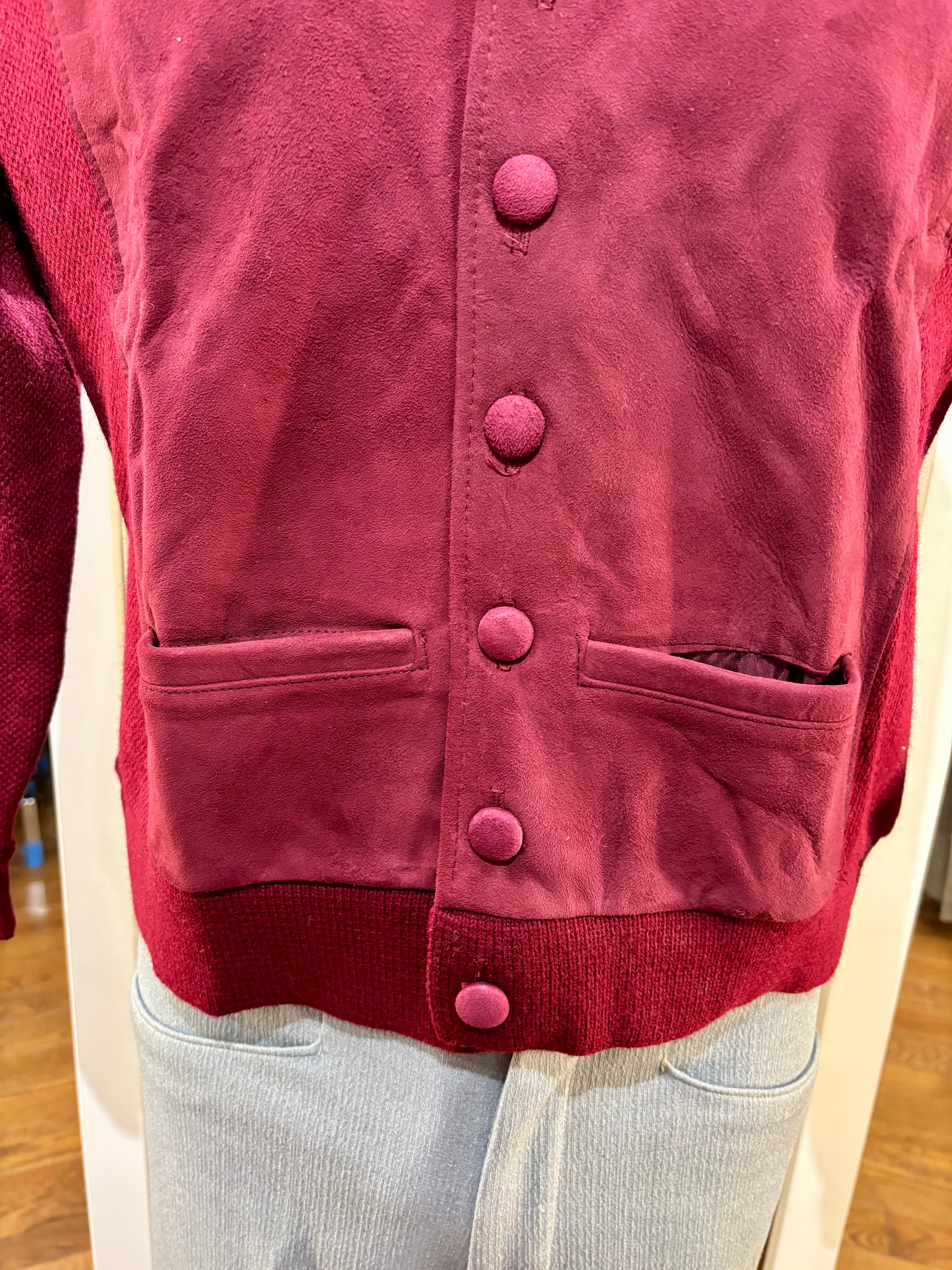 60’s Burgundy Knit And Suede Bottom Cardigan By Sar-Dun