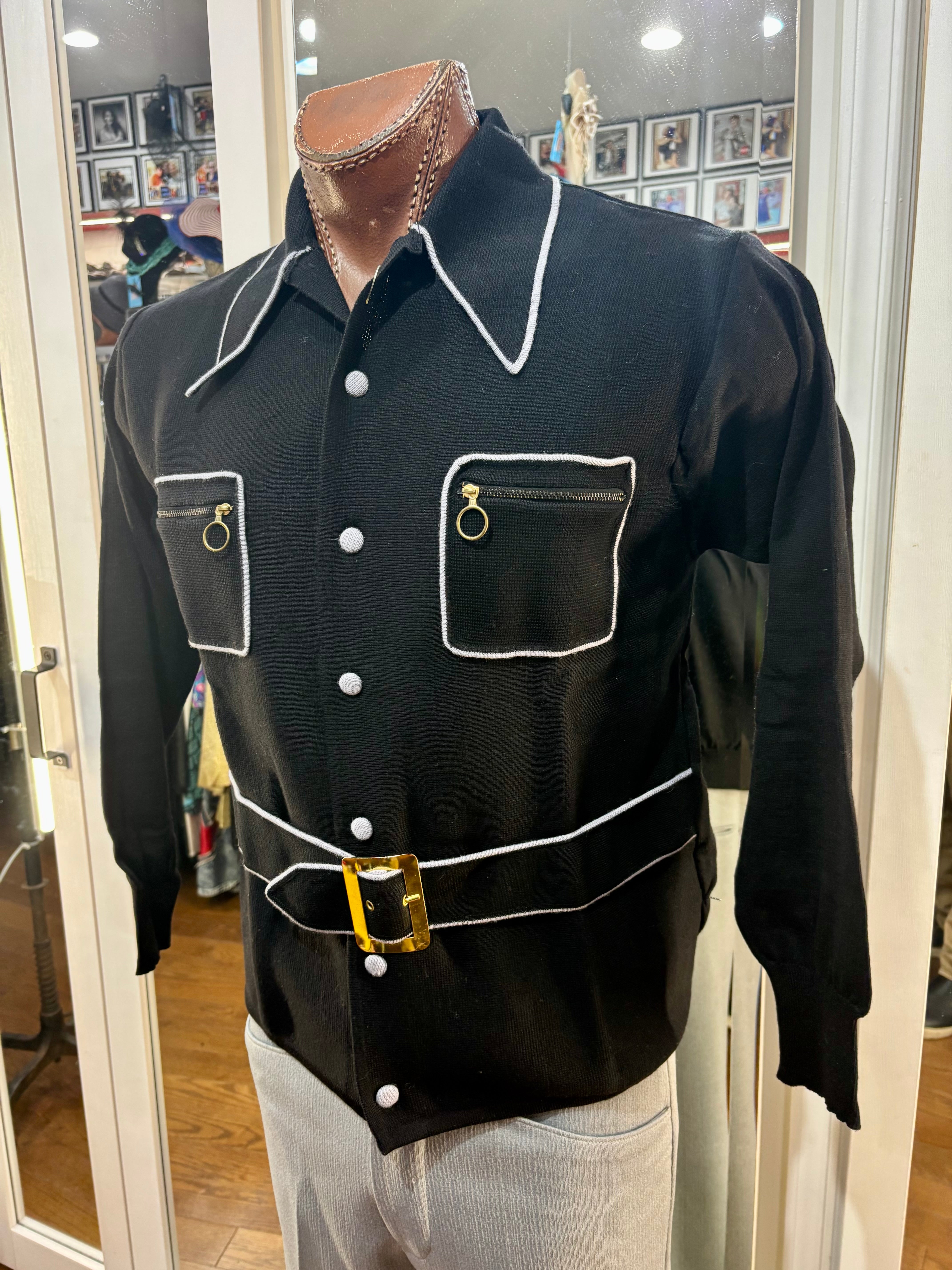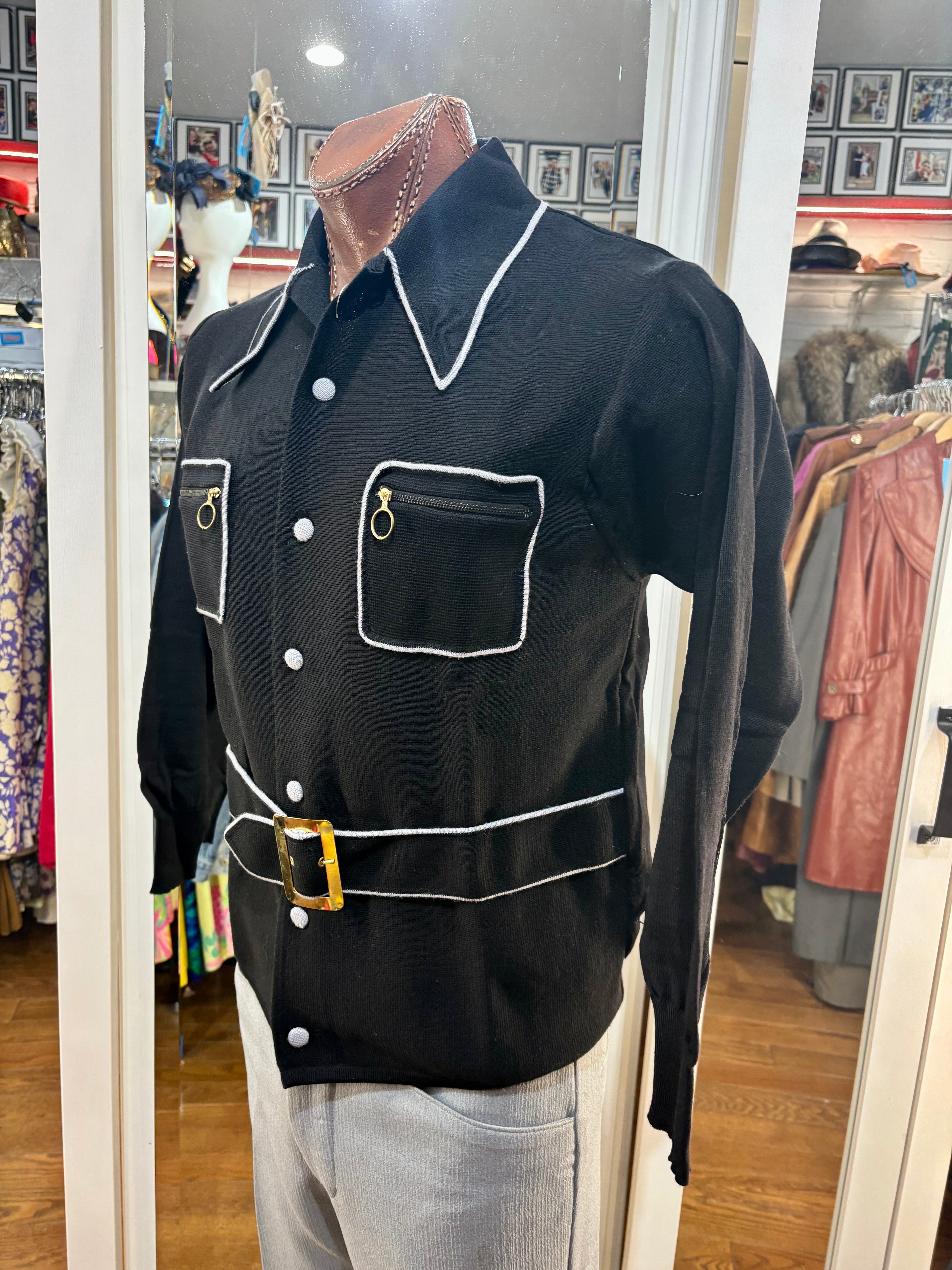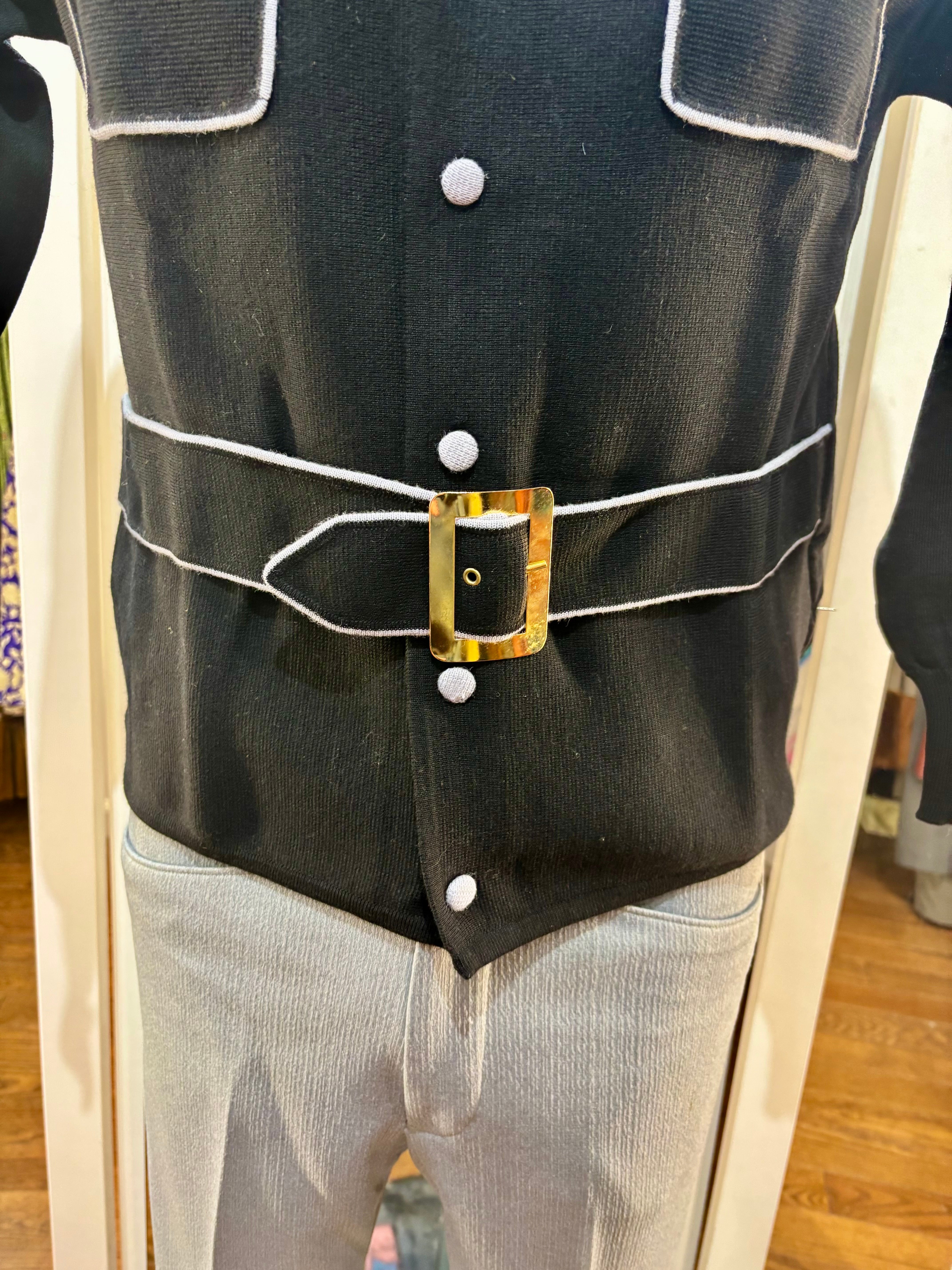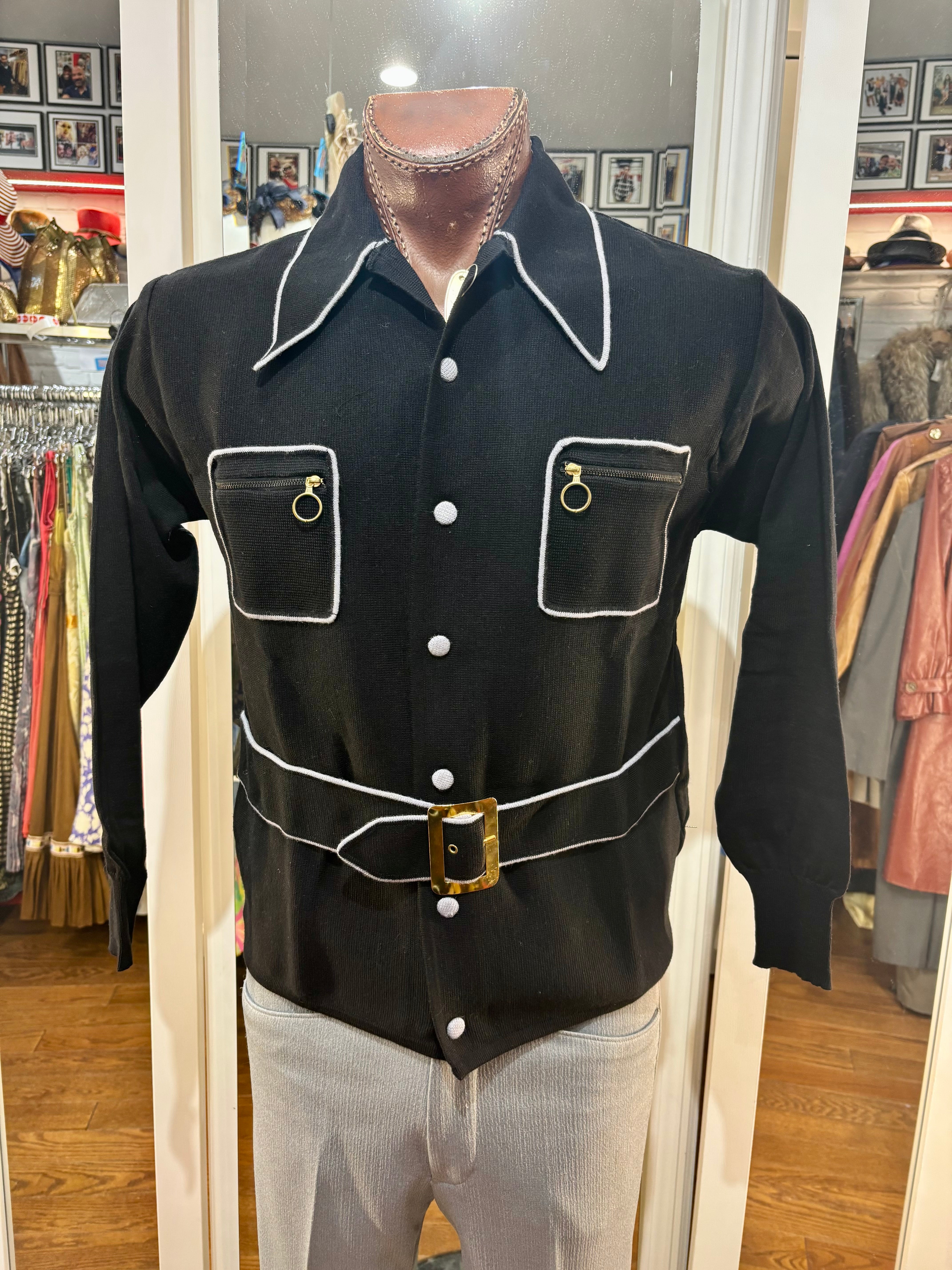 60’s Black Knit And Belted Cardigan Collared By Alfredo Italia