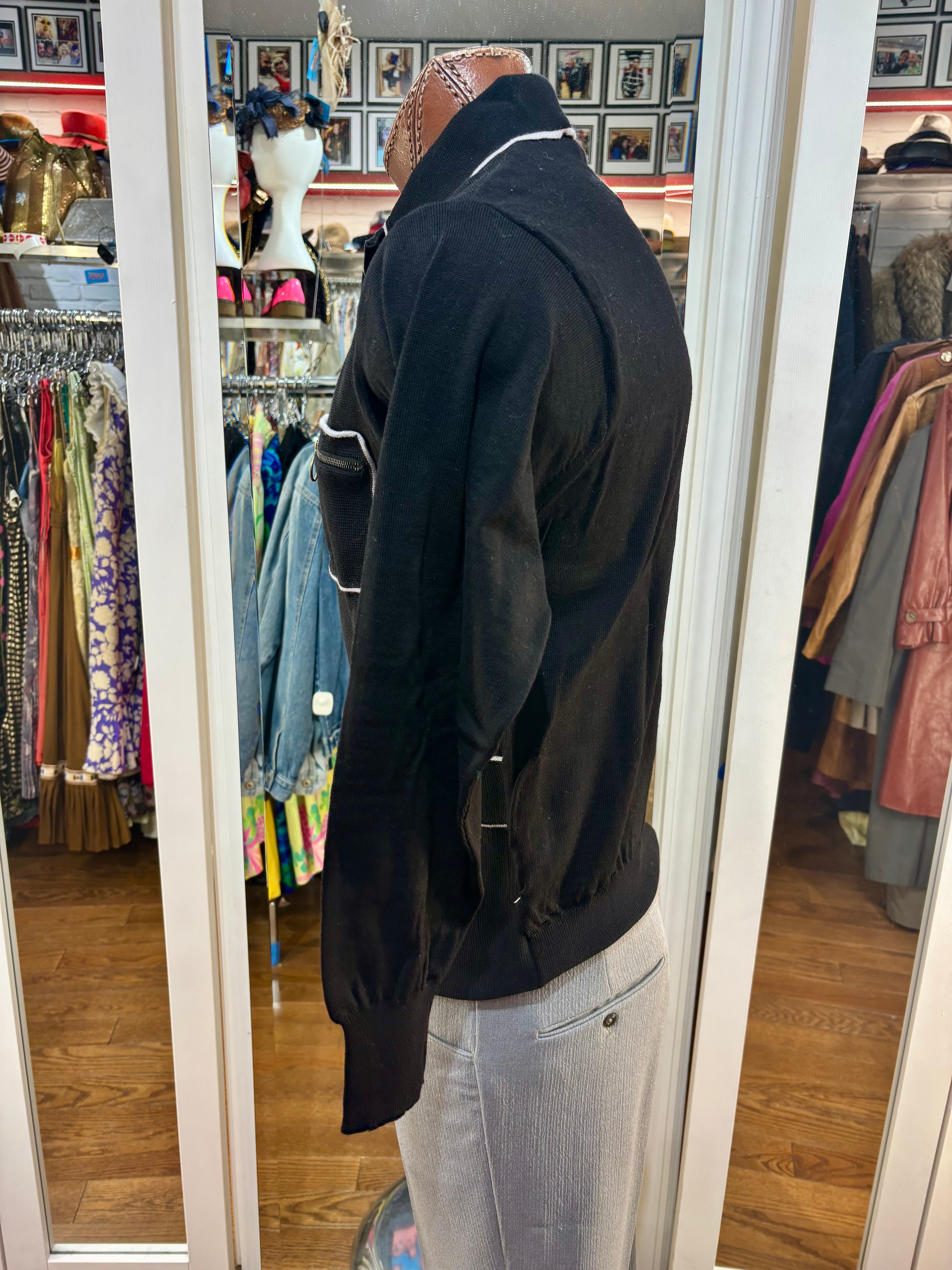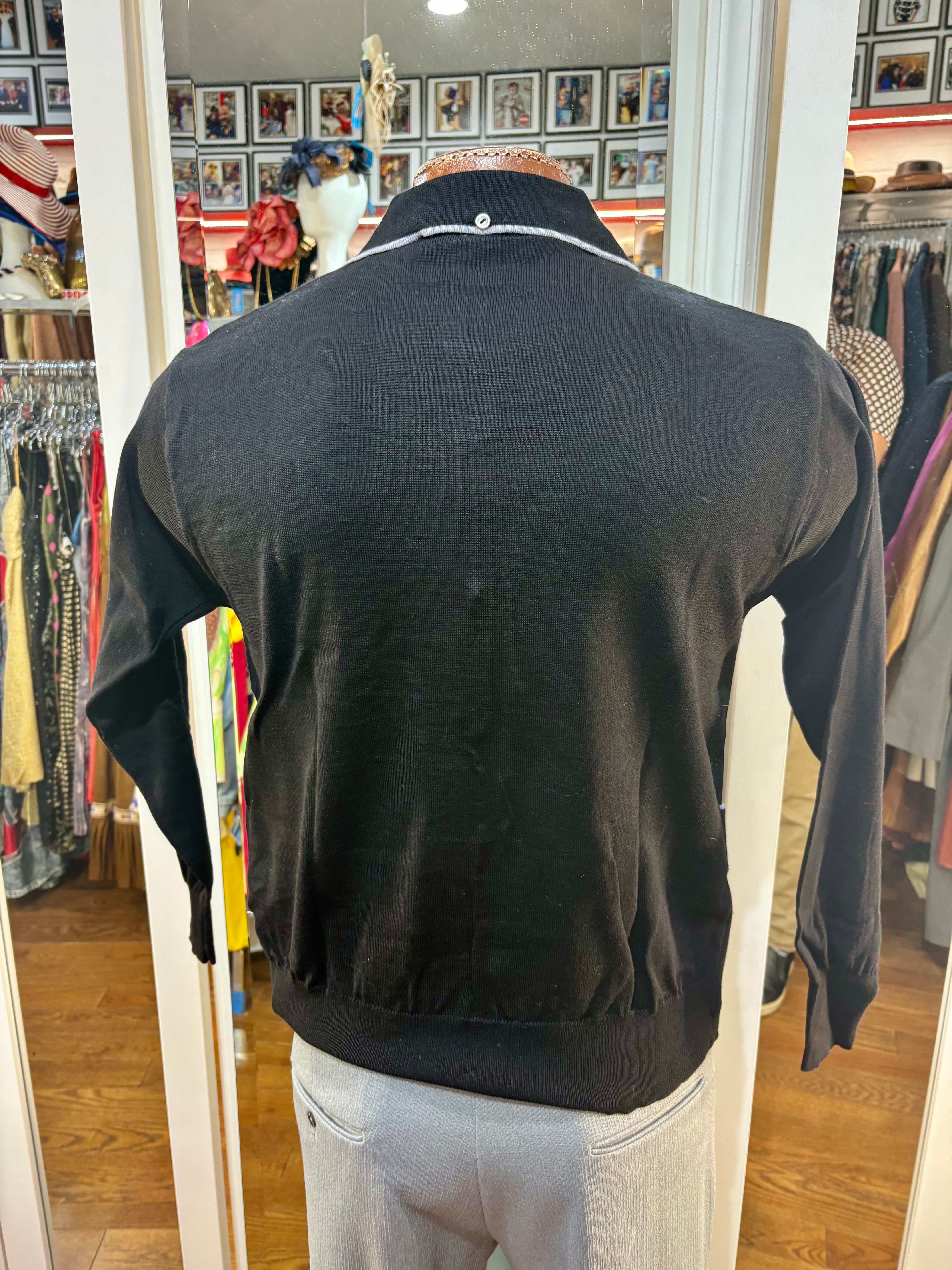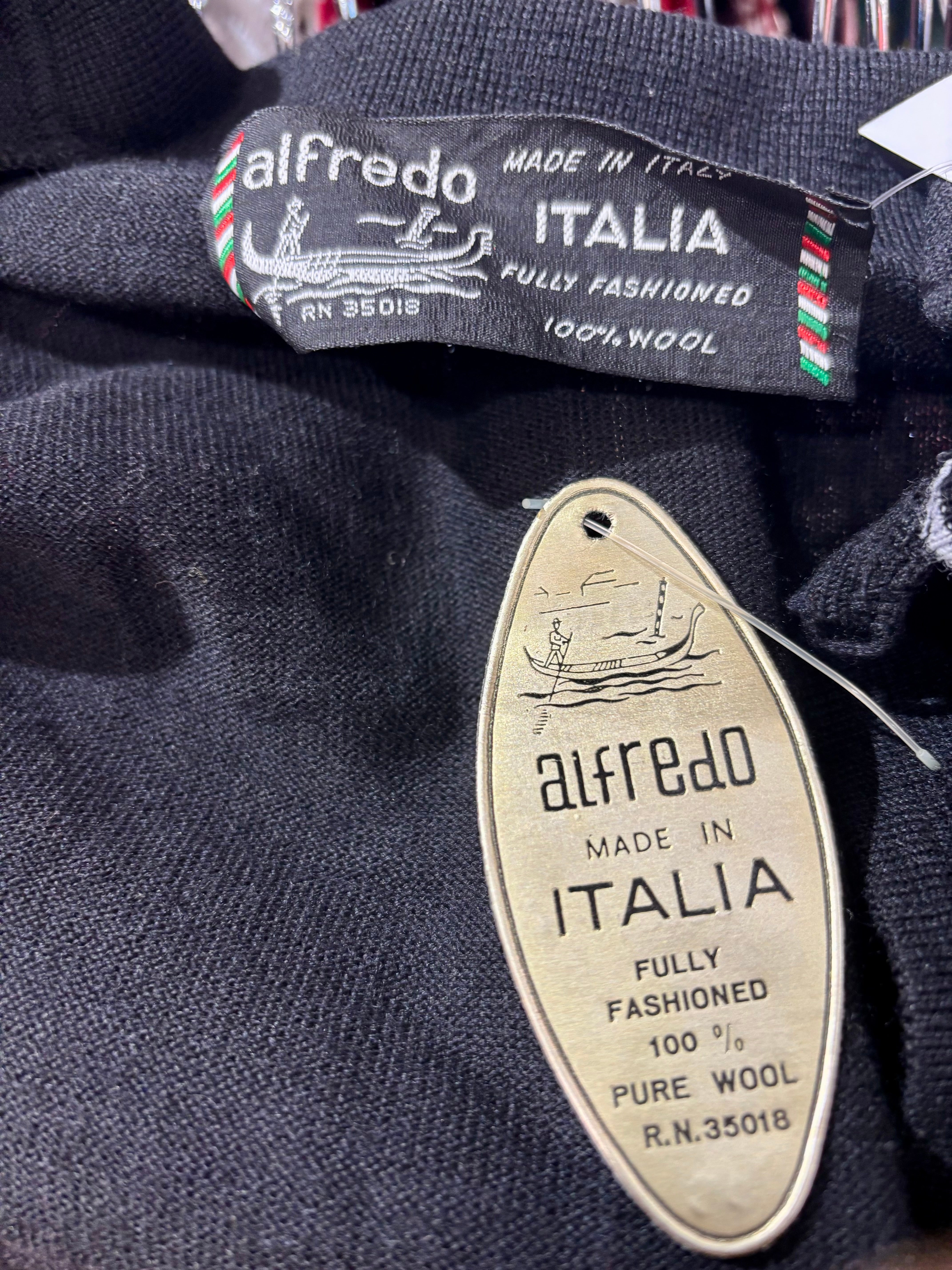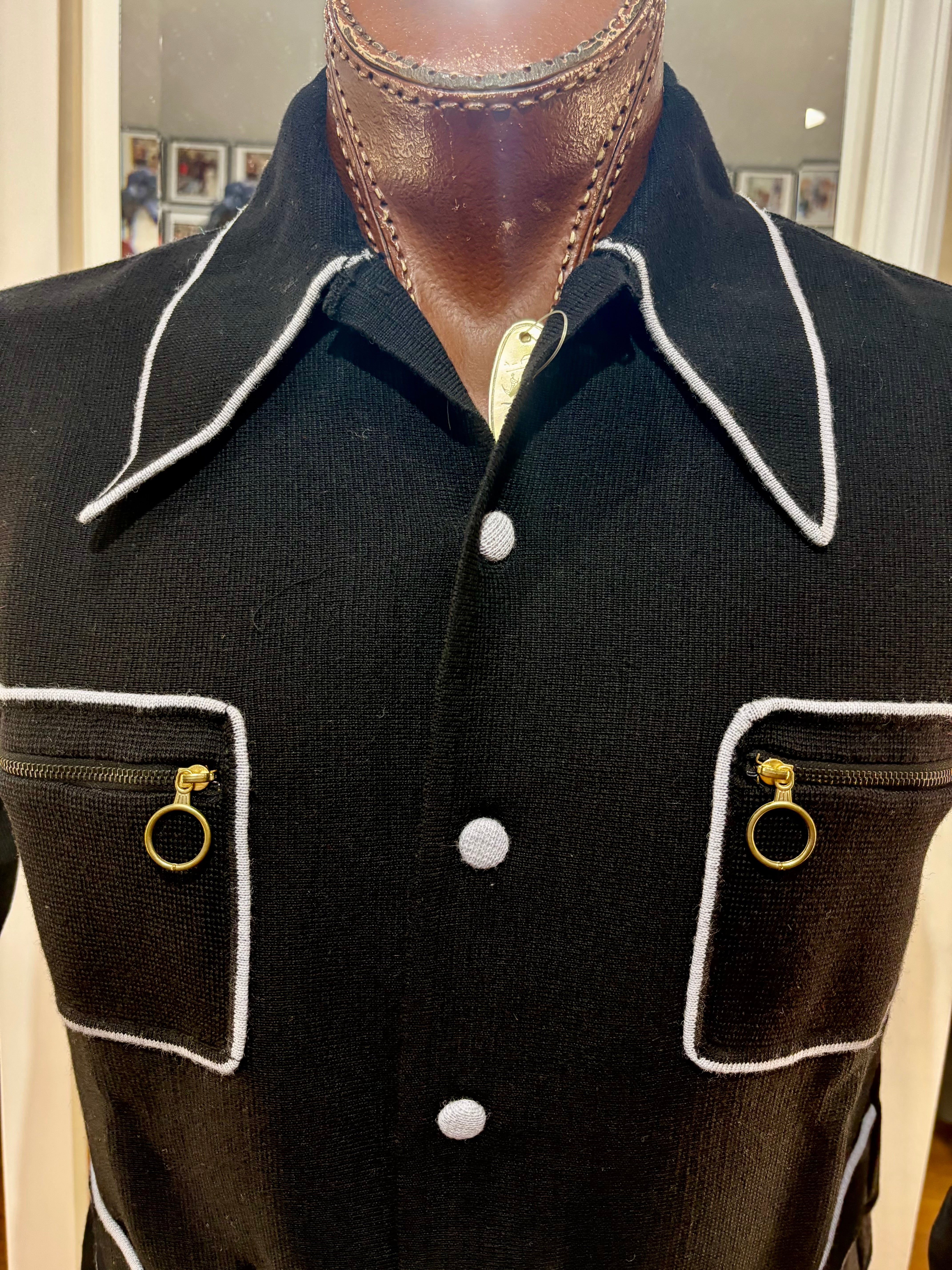60’s Black Knit And Belted Cardigan Collared By Alfredo Italia