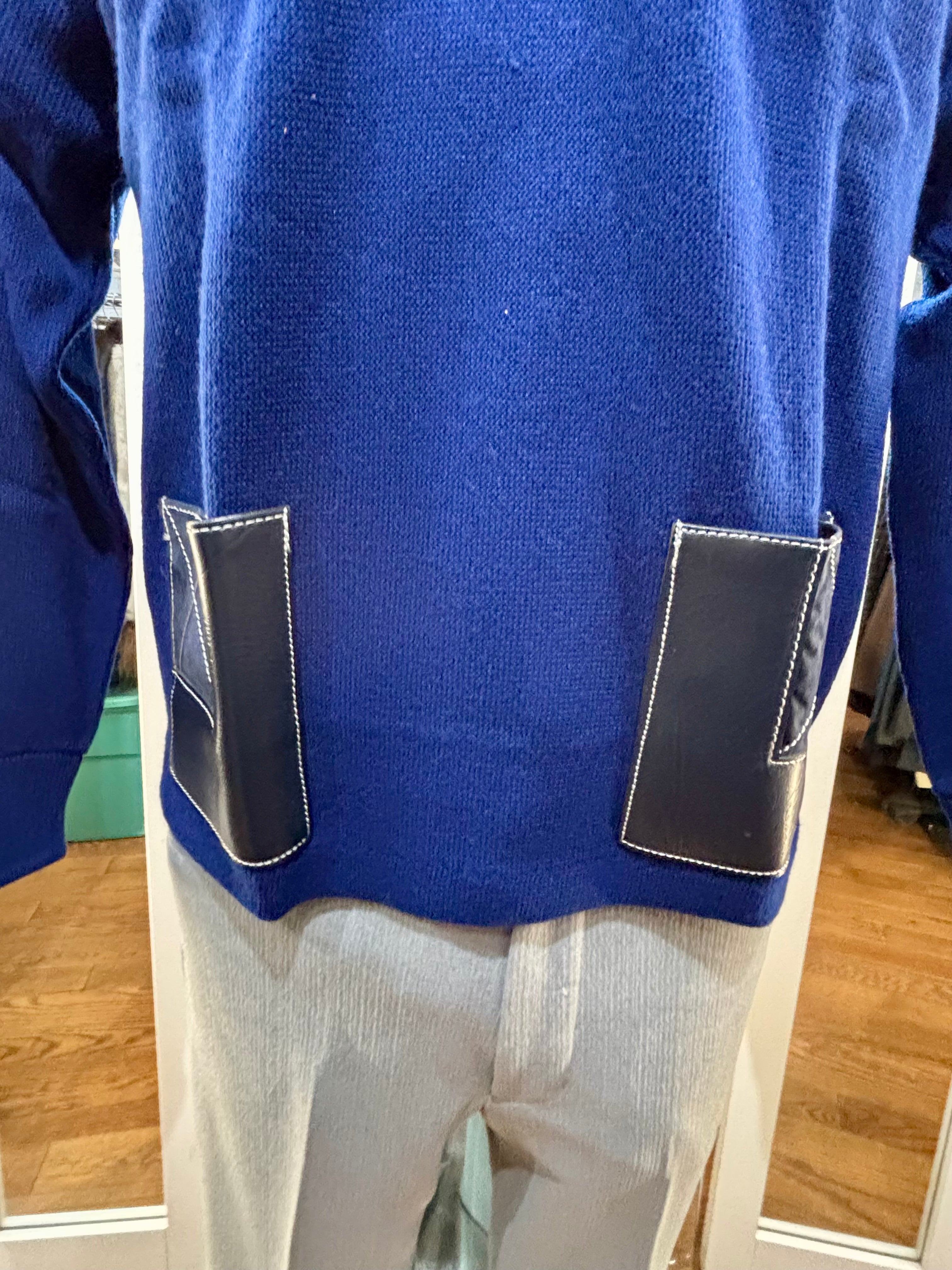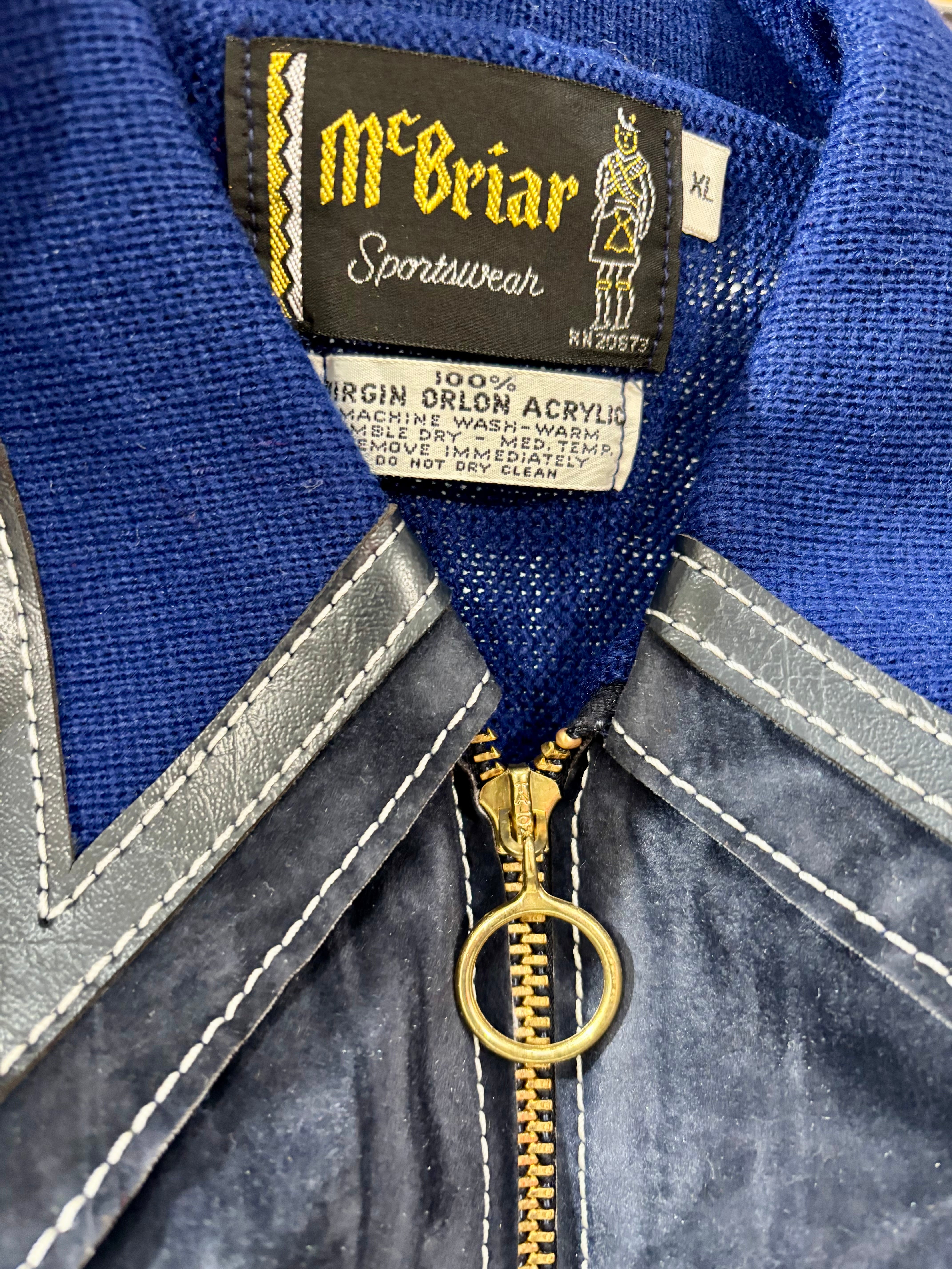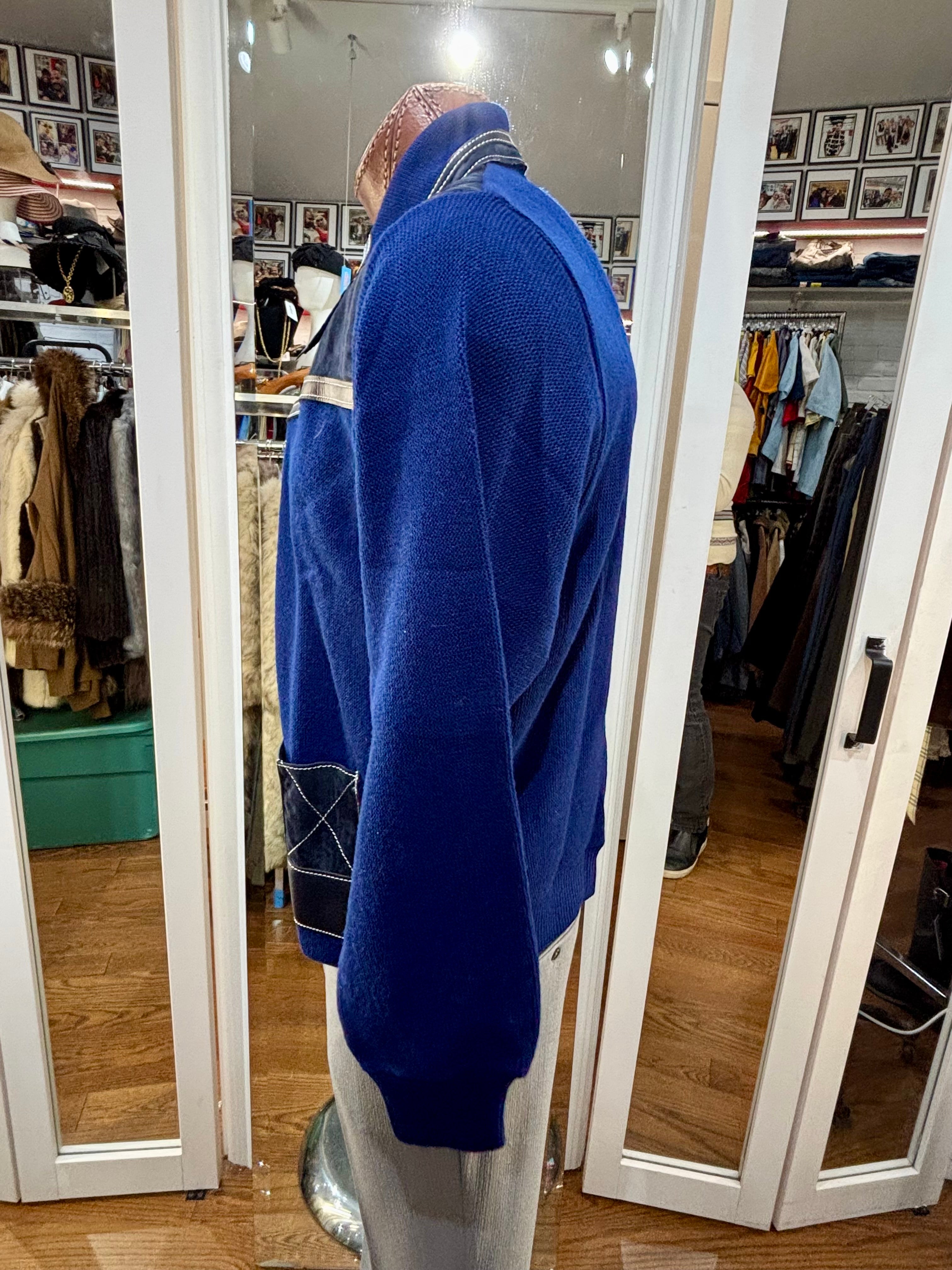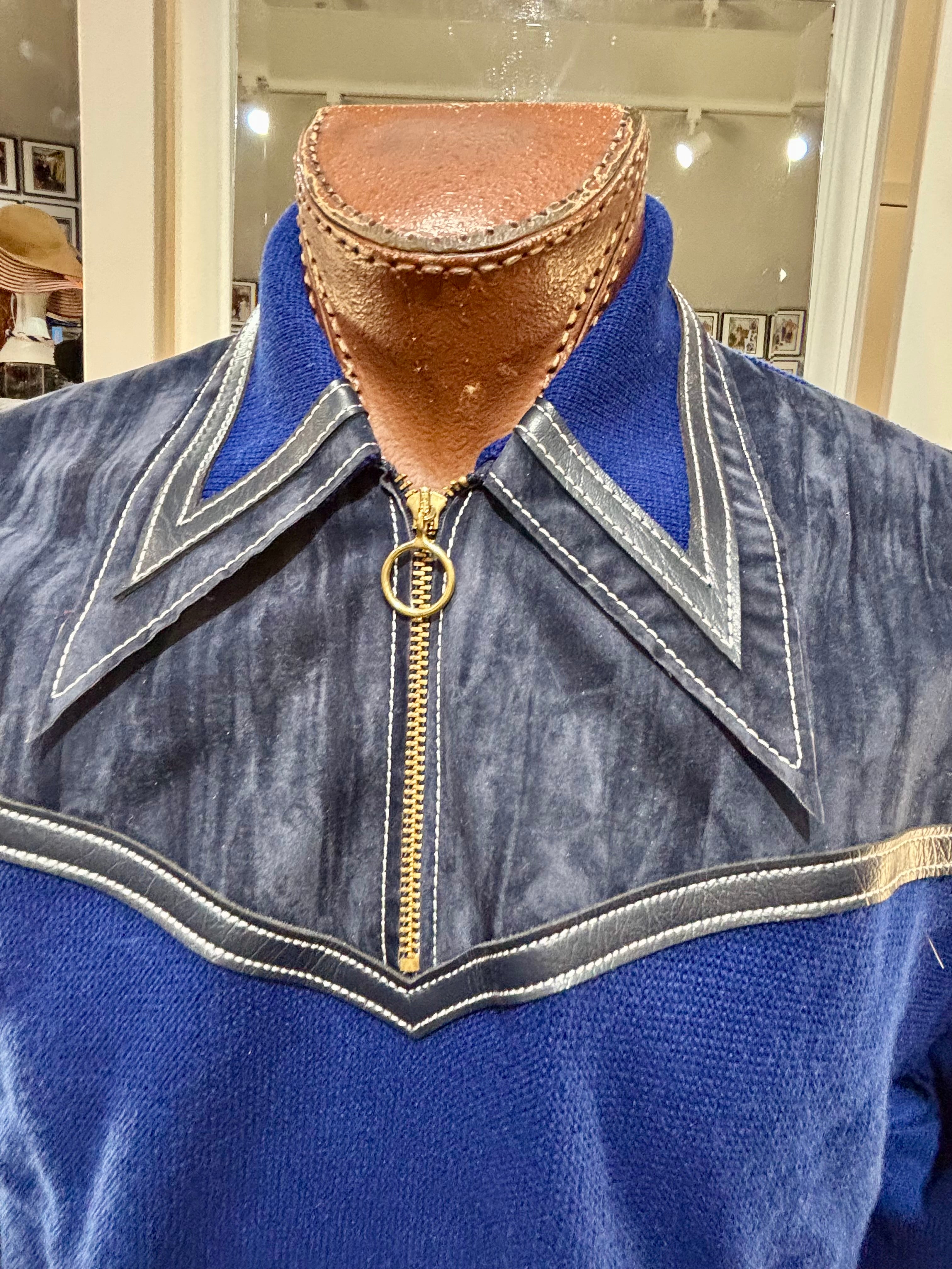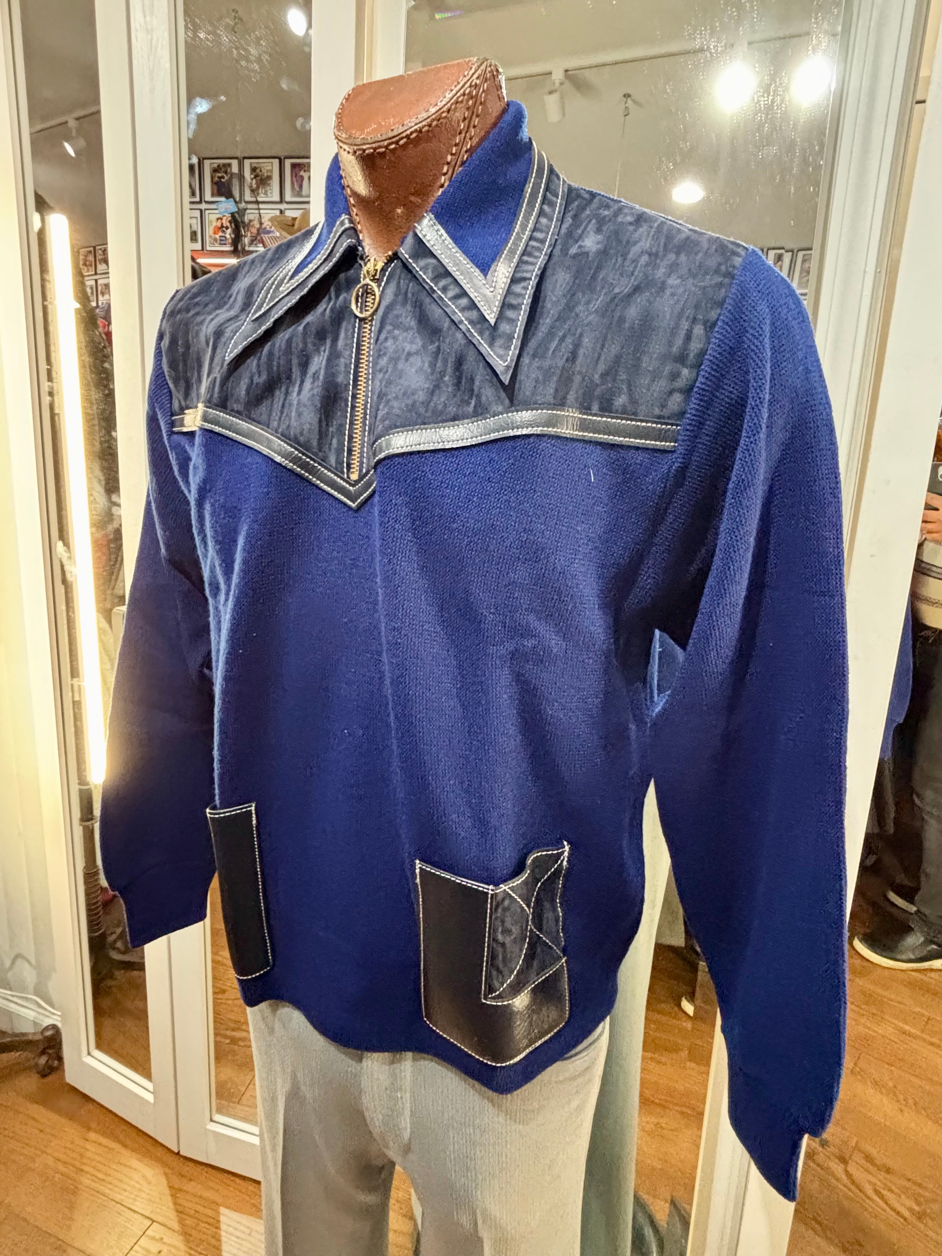 70’s Blue Old Stock Zip Collar Pull Sweater With Applications By Mc Brian