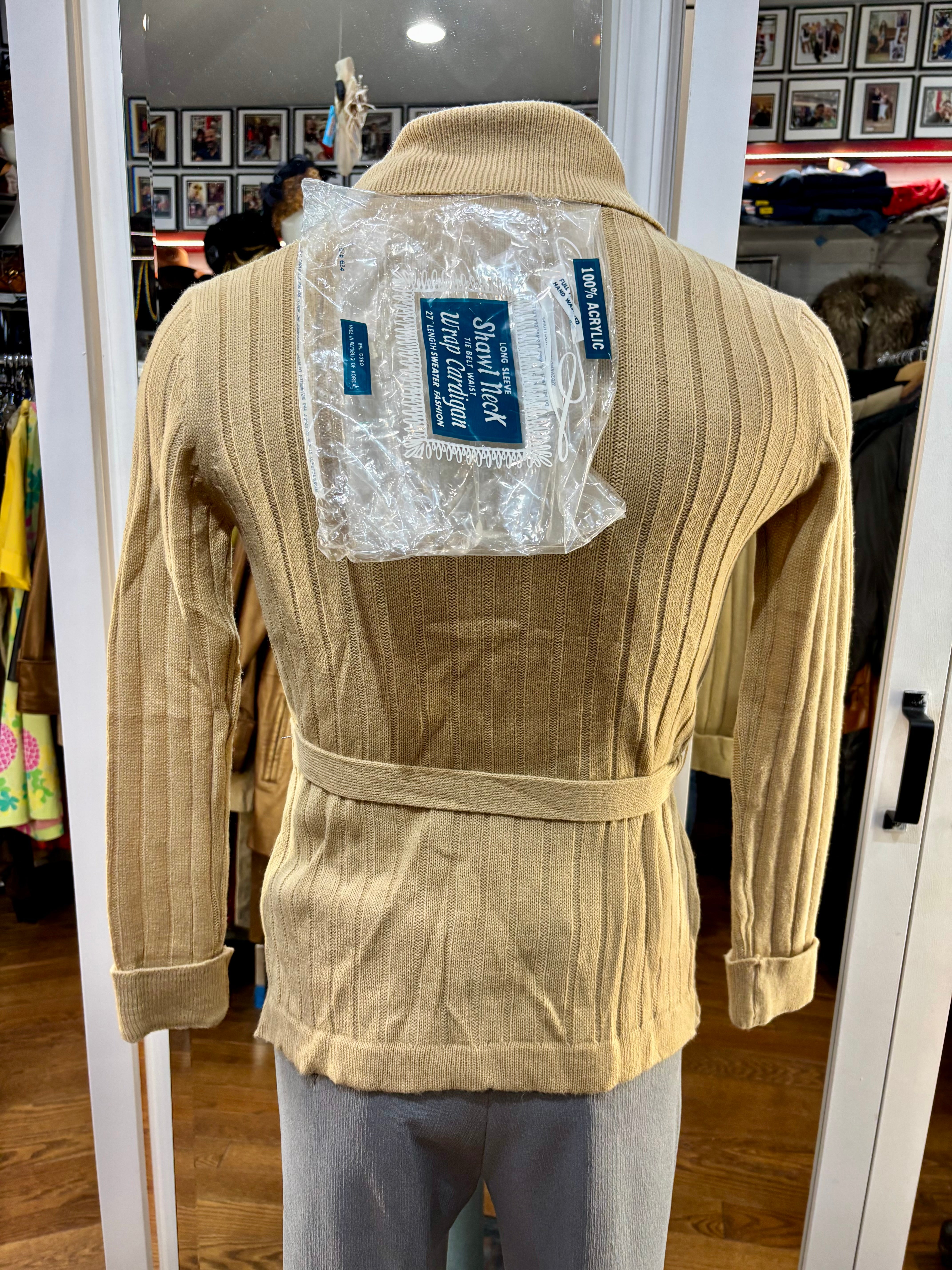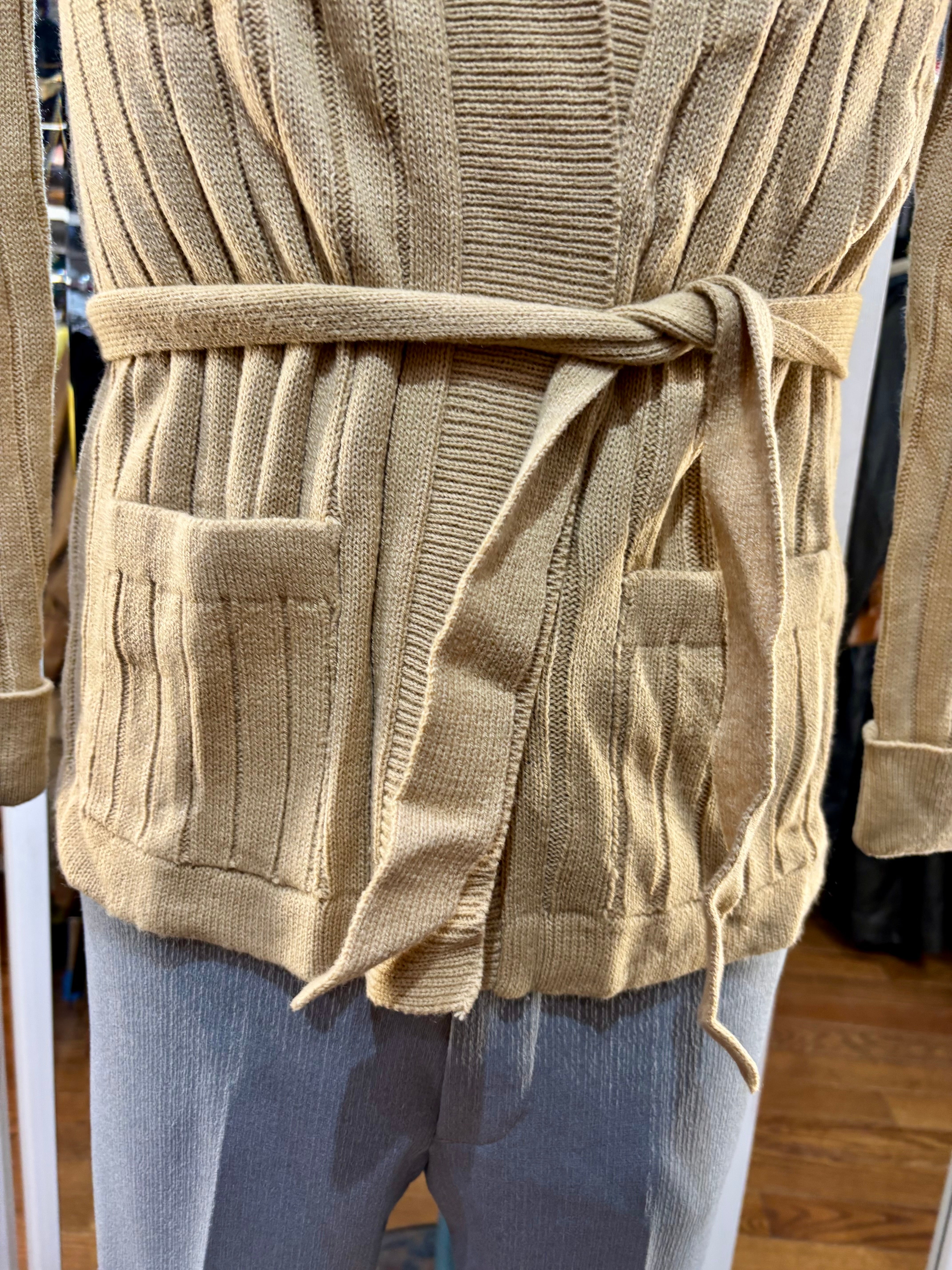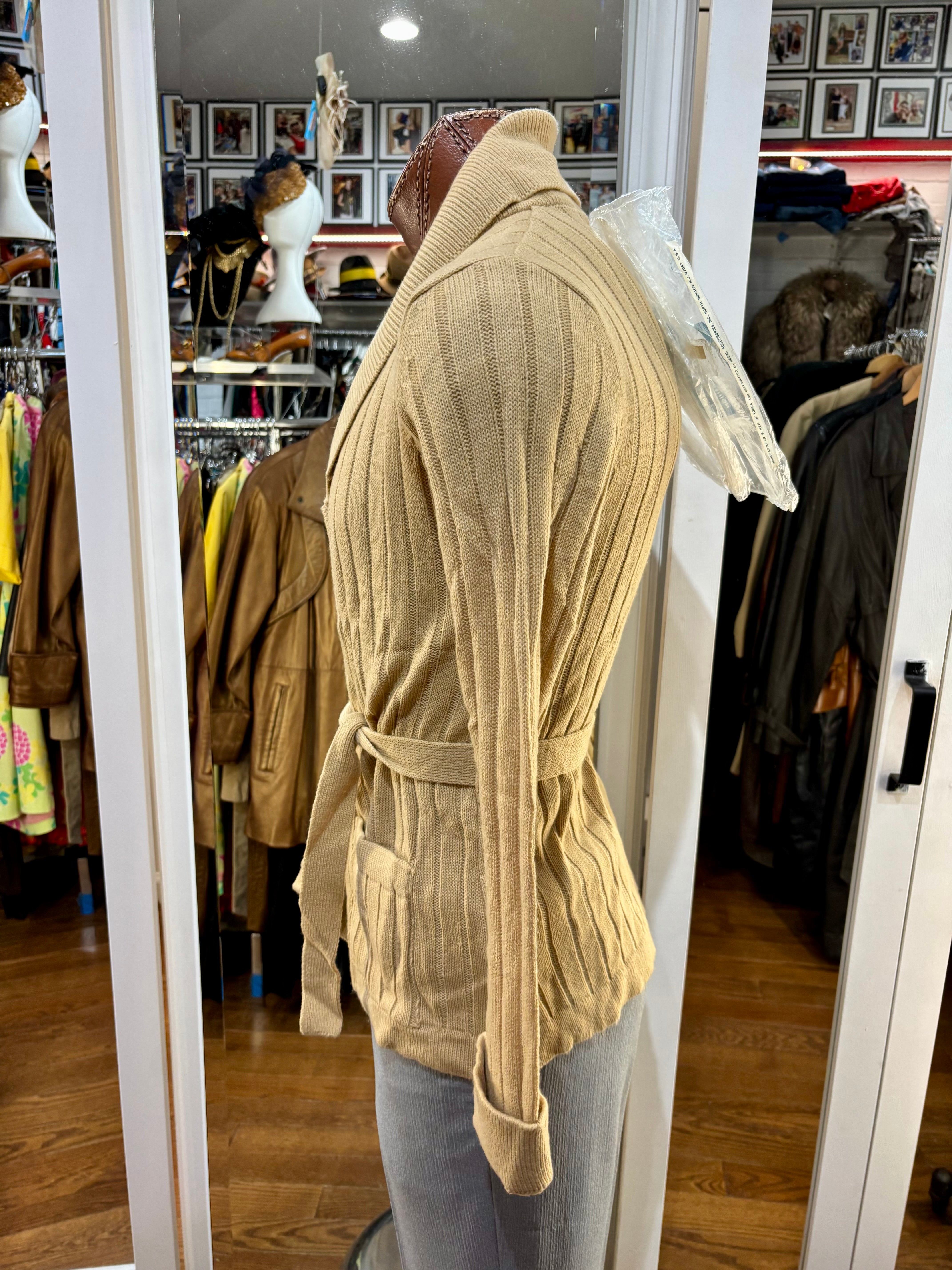 70’s Beige Wrap Belted Cardigan By Acrylic Fibre