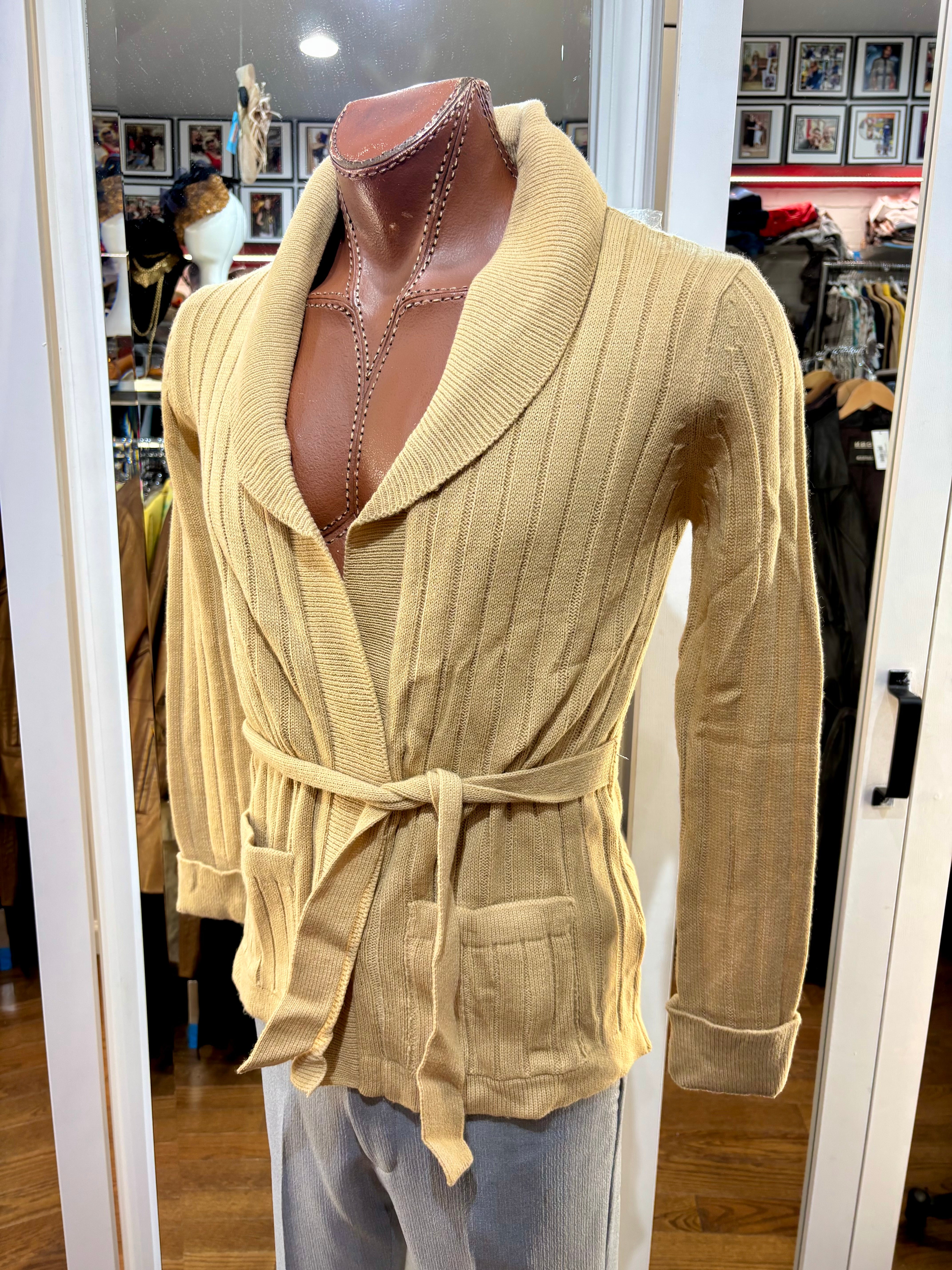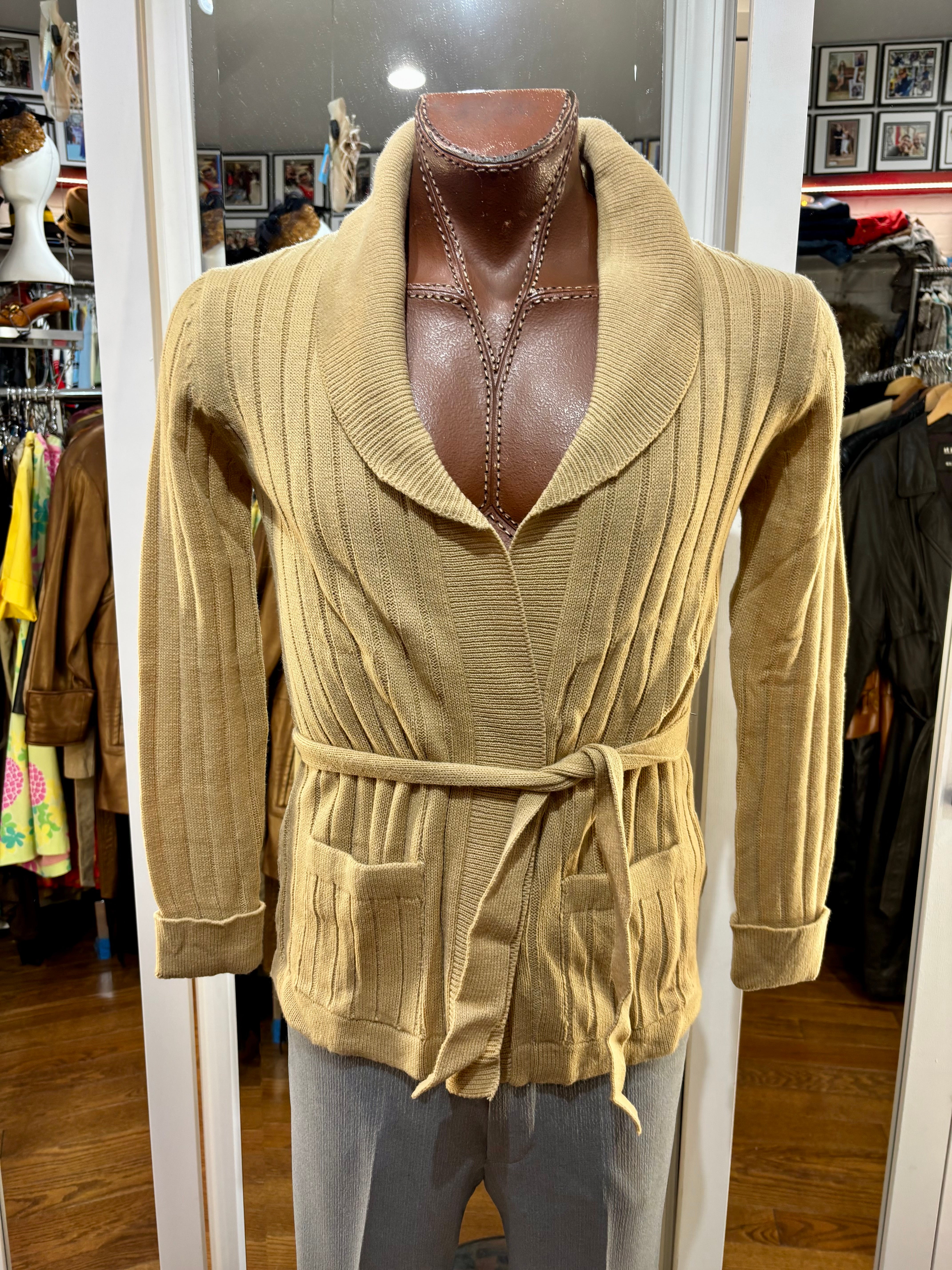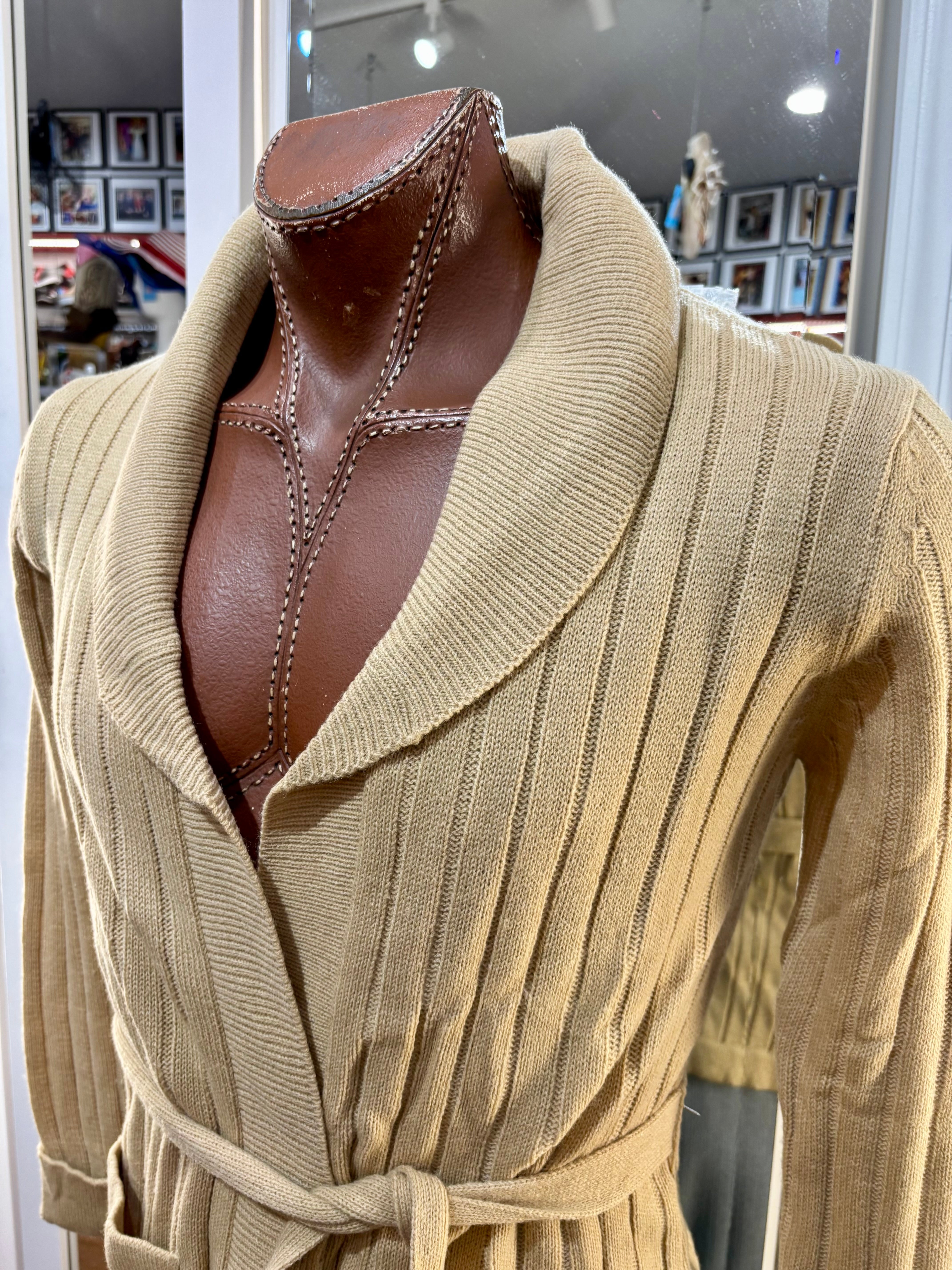 70’s Beige Wrap Belted Cardigan By Acrylic Fibre