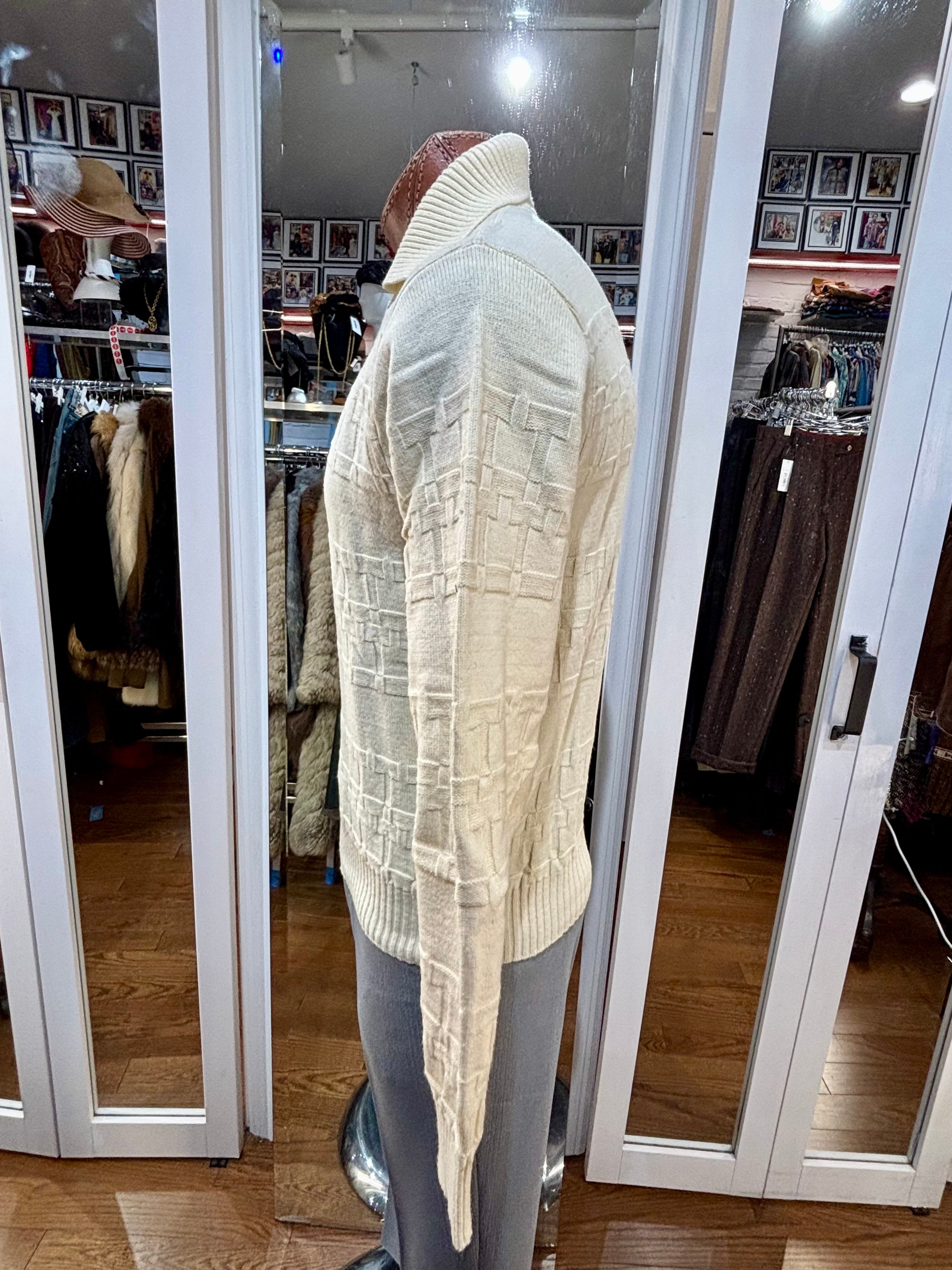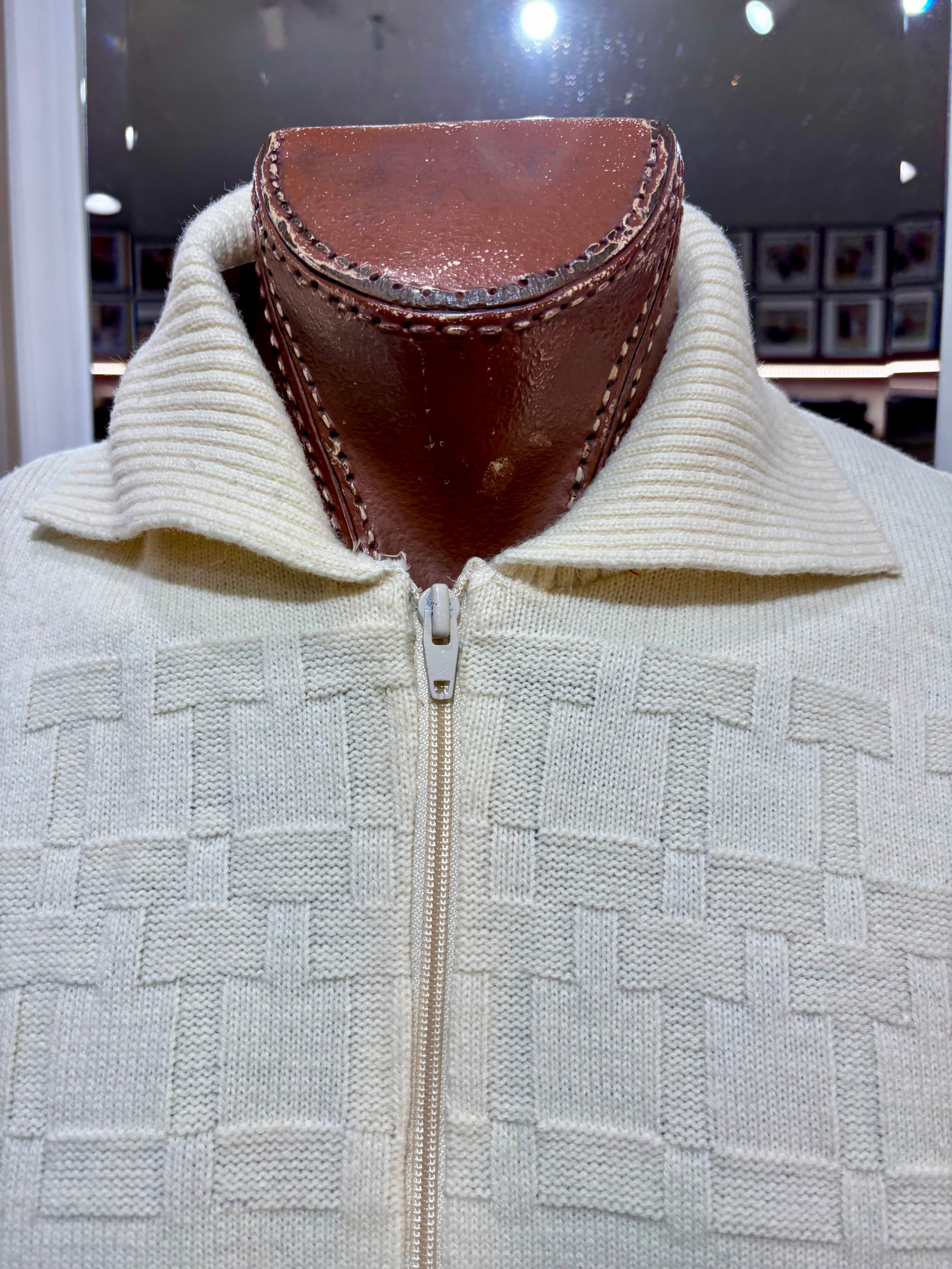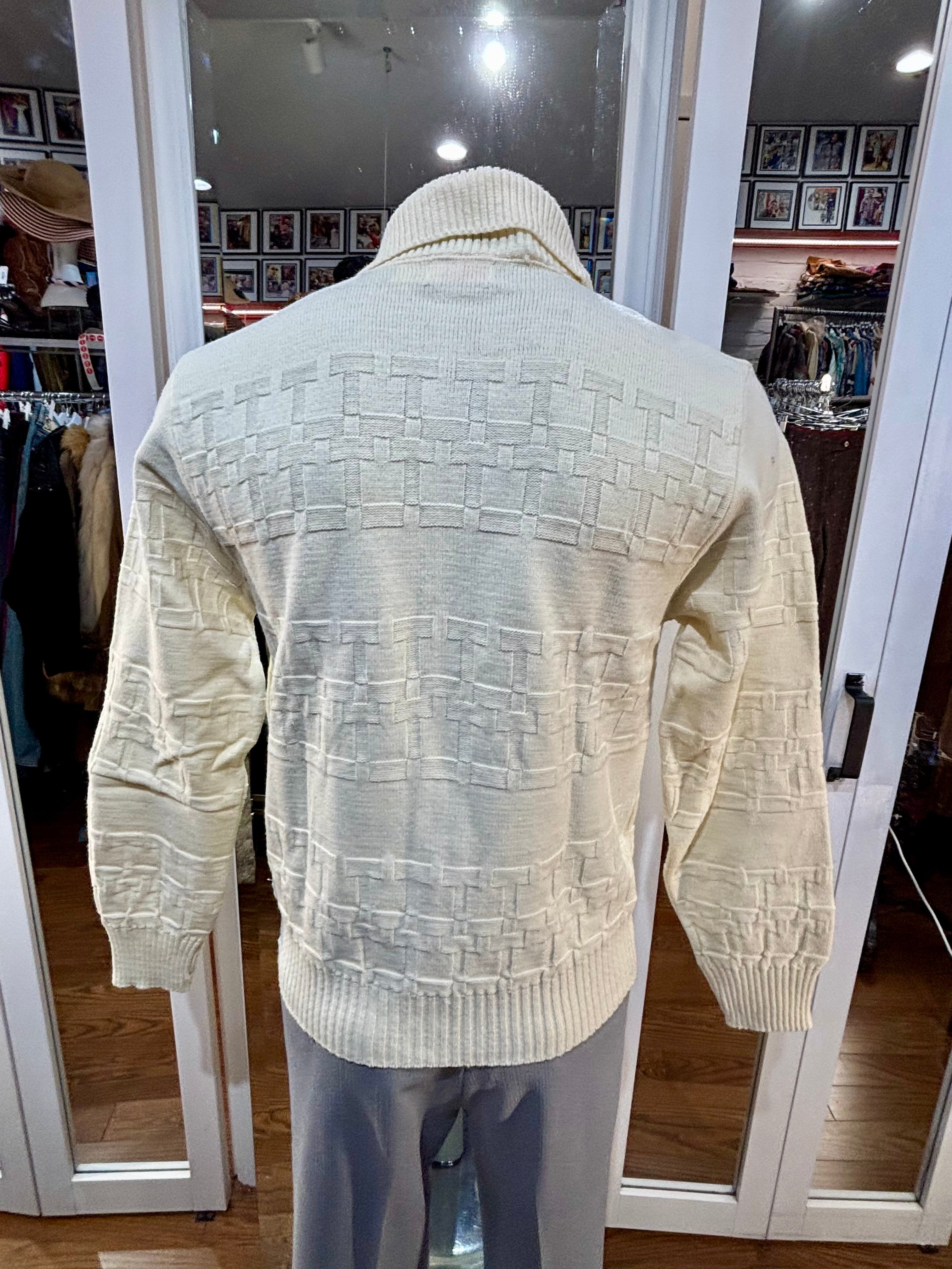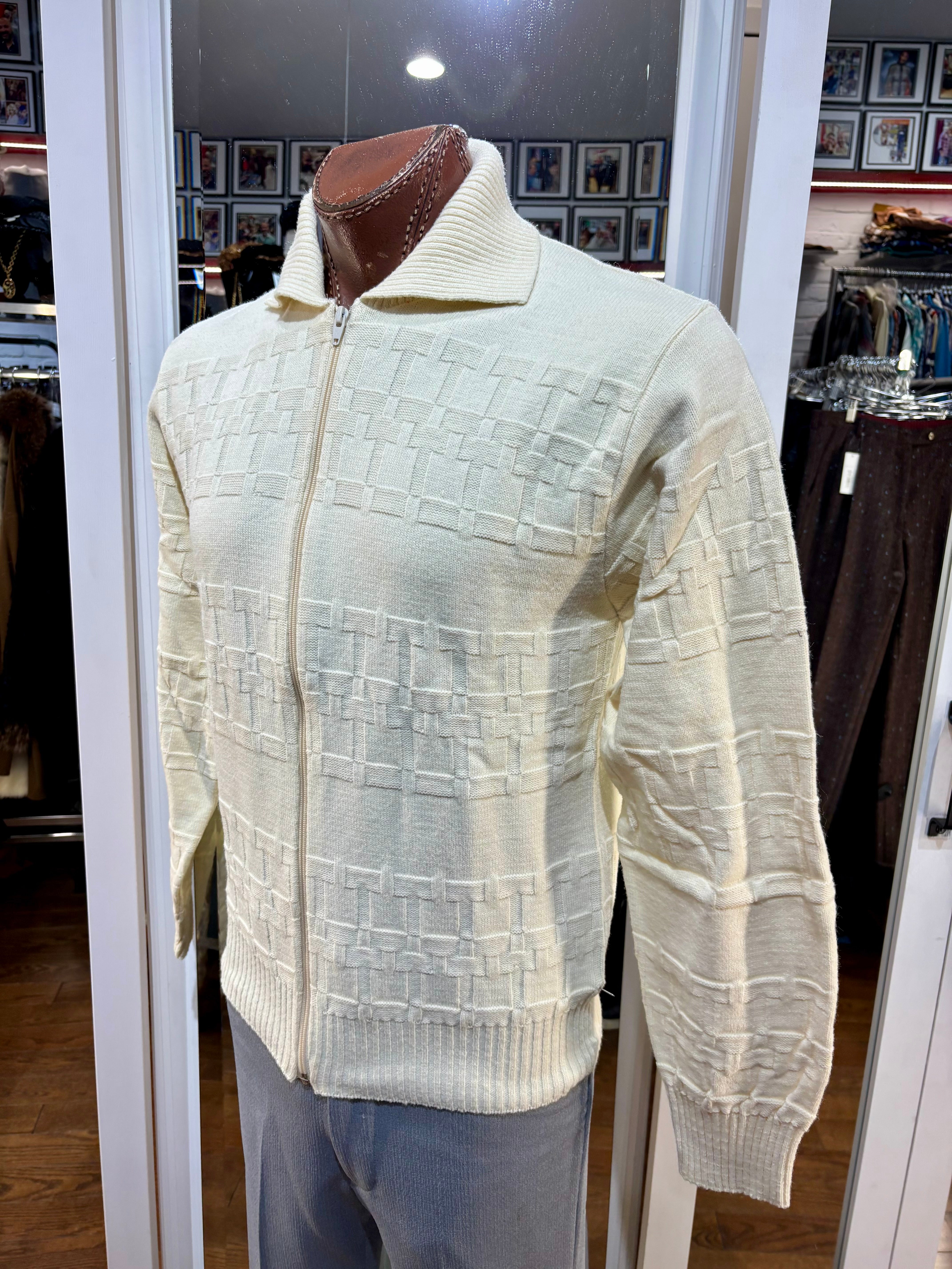 70’s Off White Old Stock Zip Texture Sweater By Marks Sweater