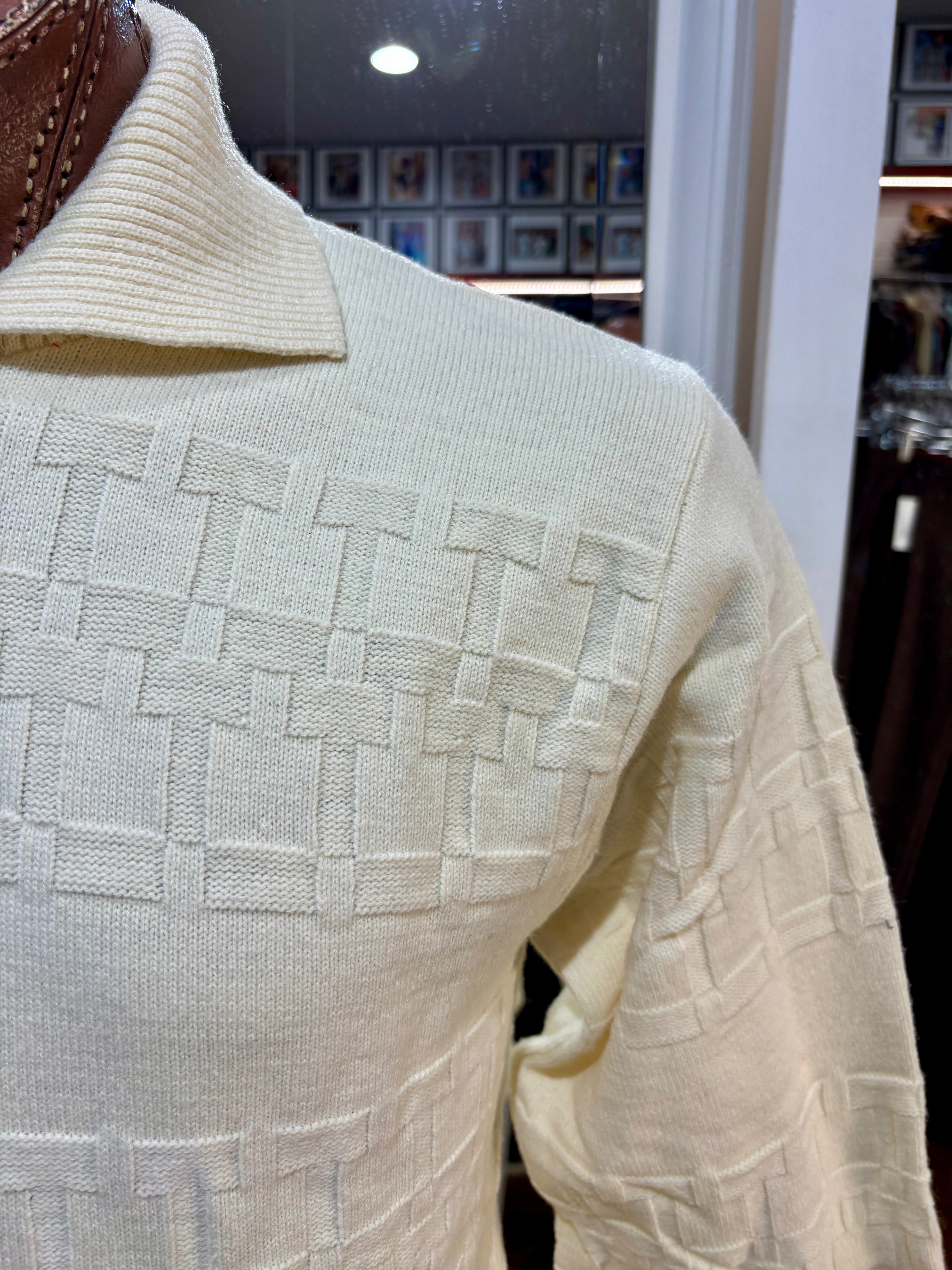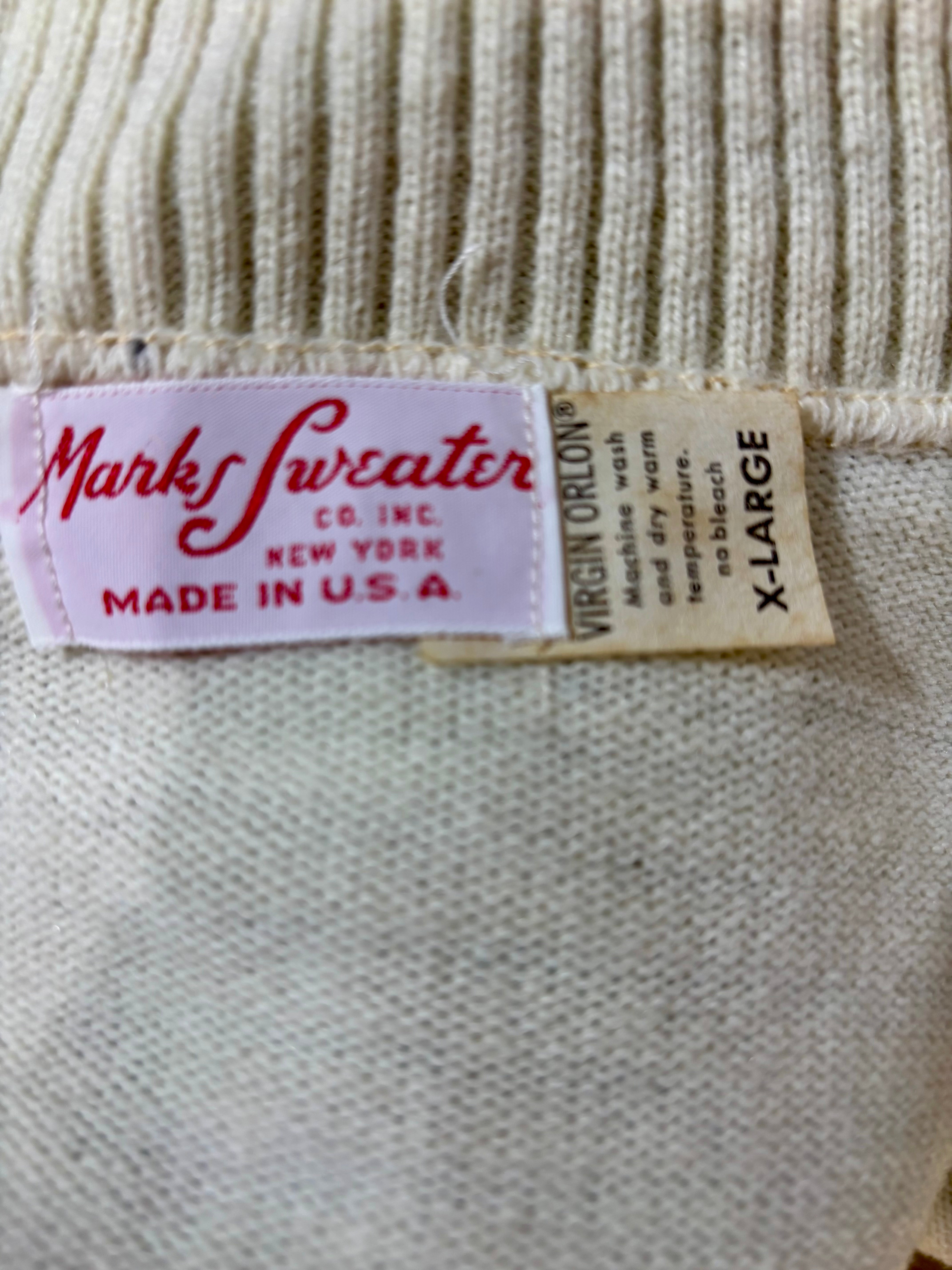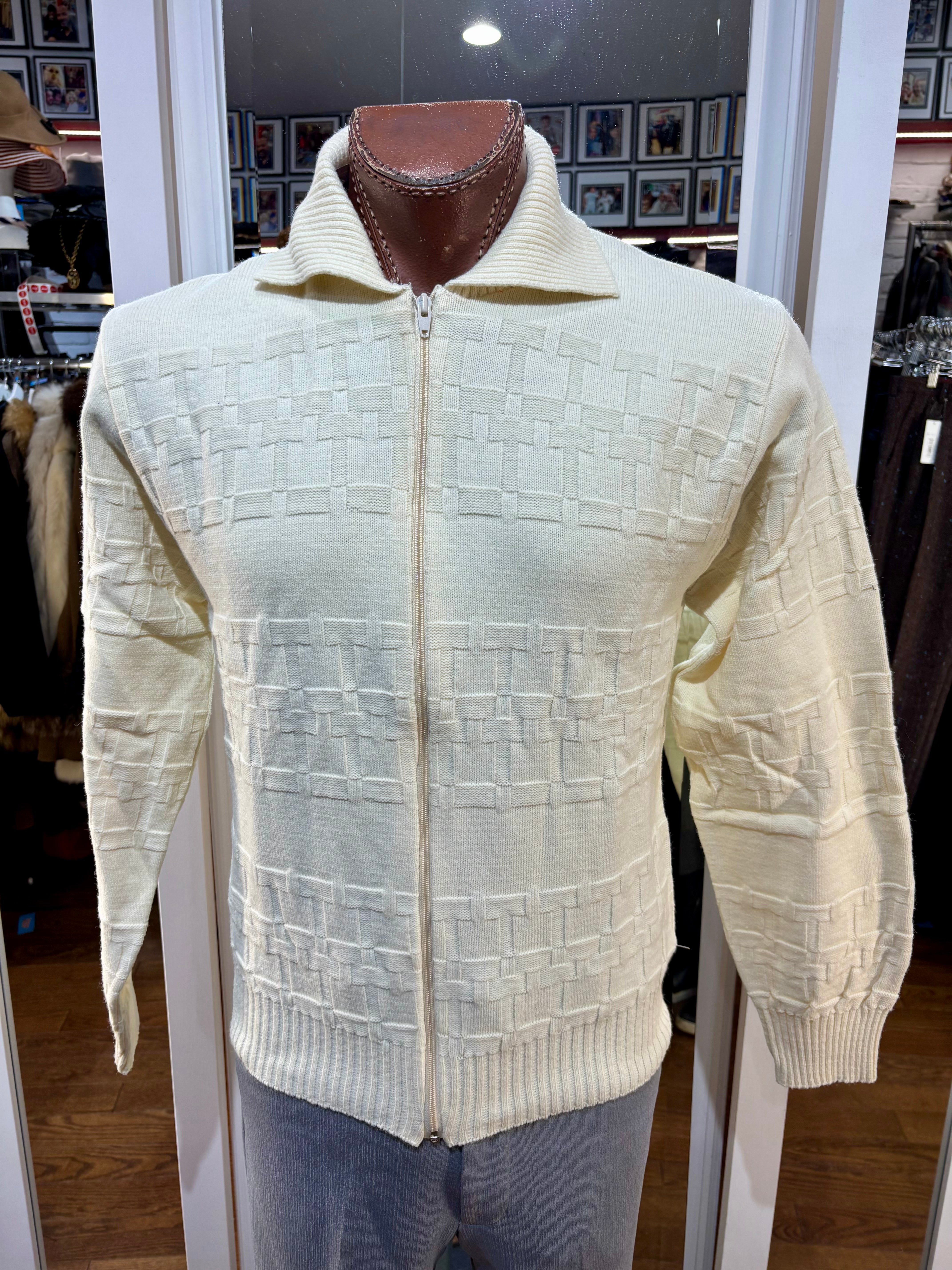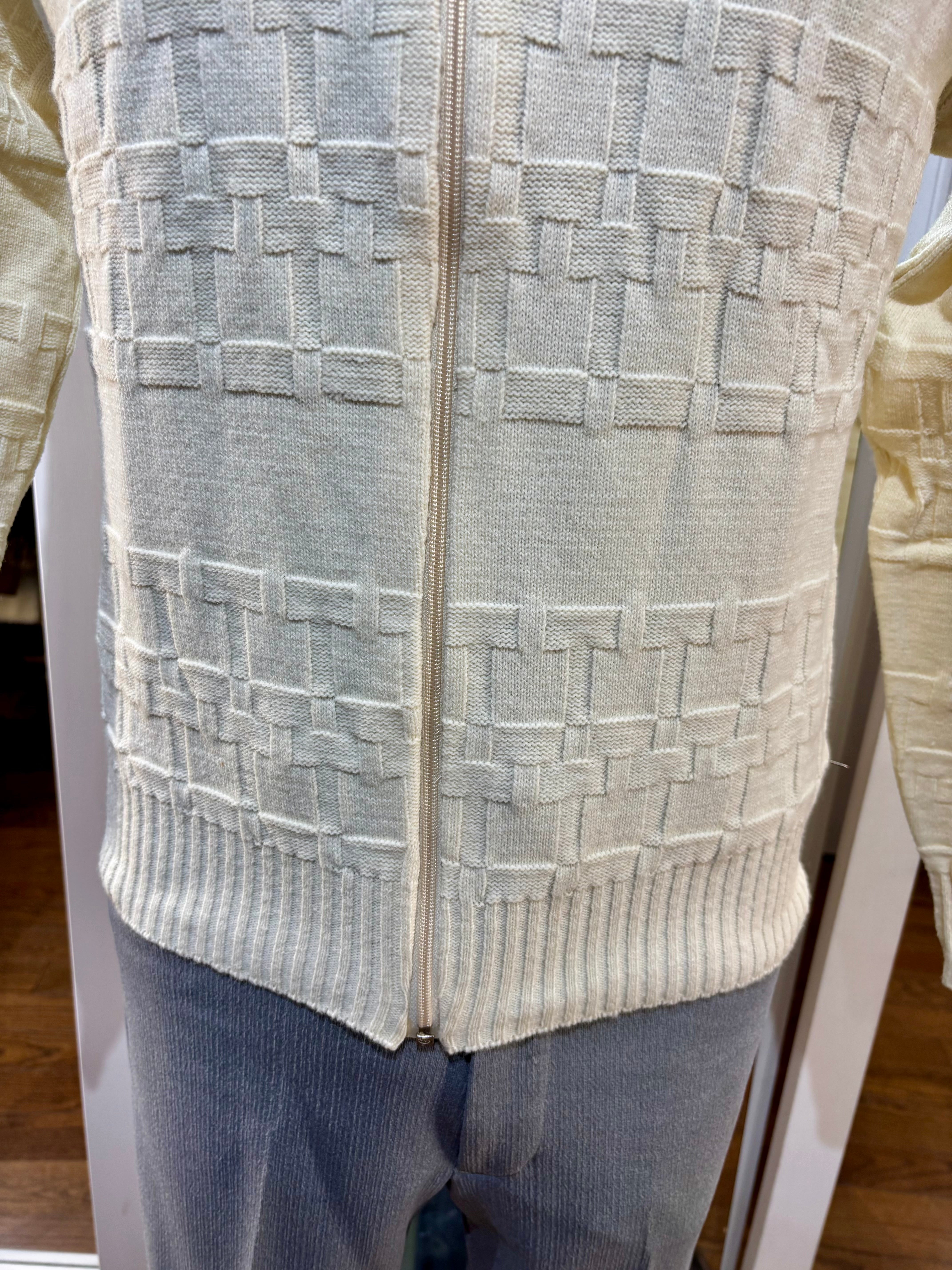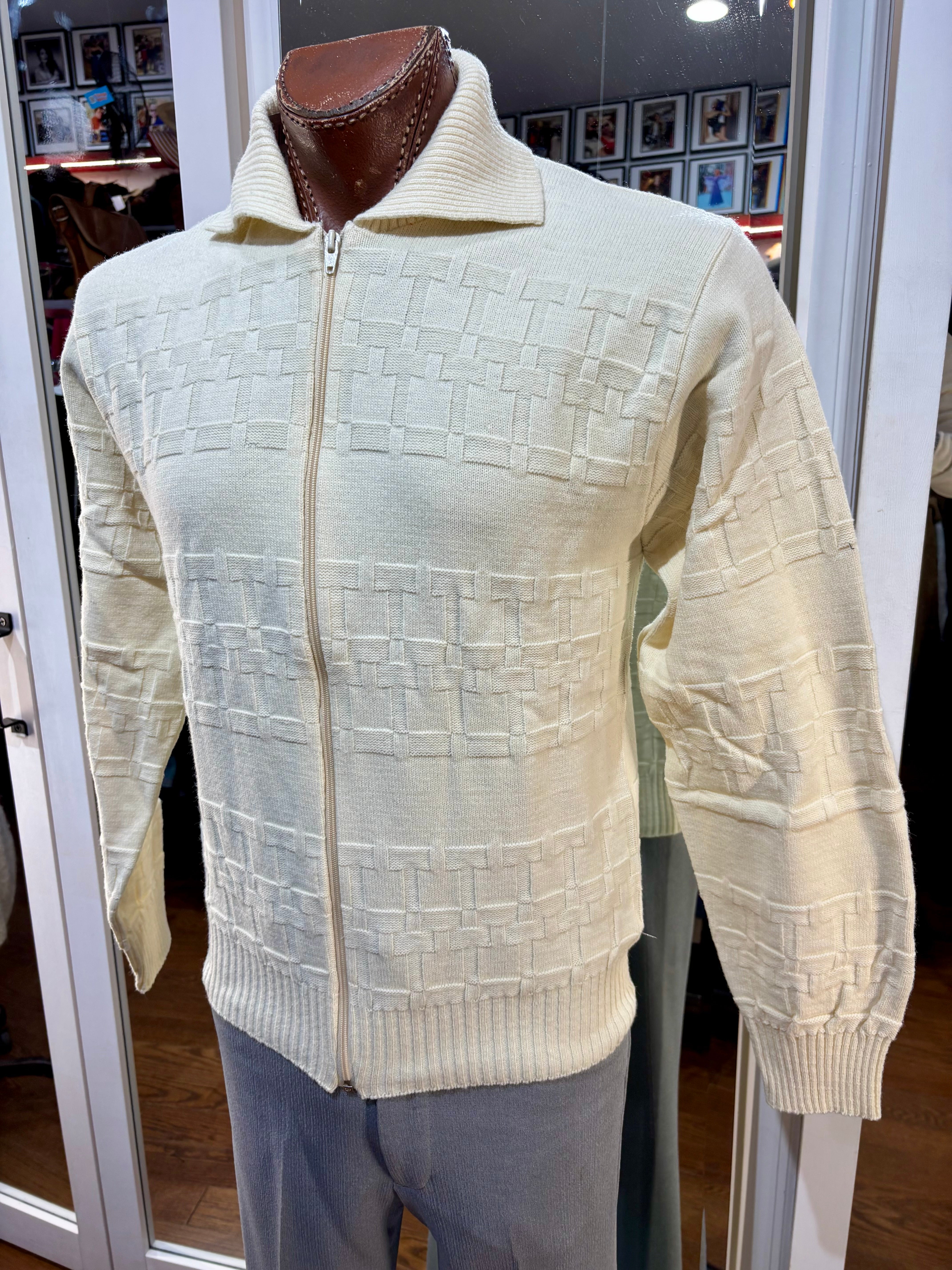 70’s Off White Old Stock Zip Texture Sweater By Marks Sweater