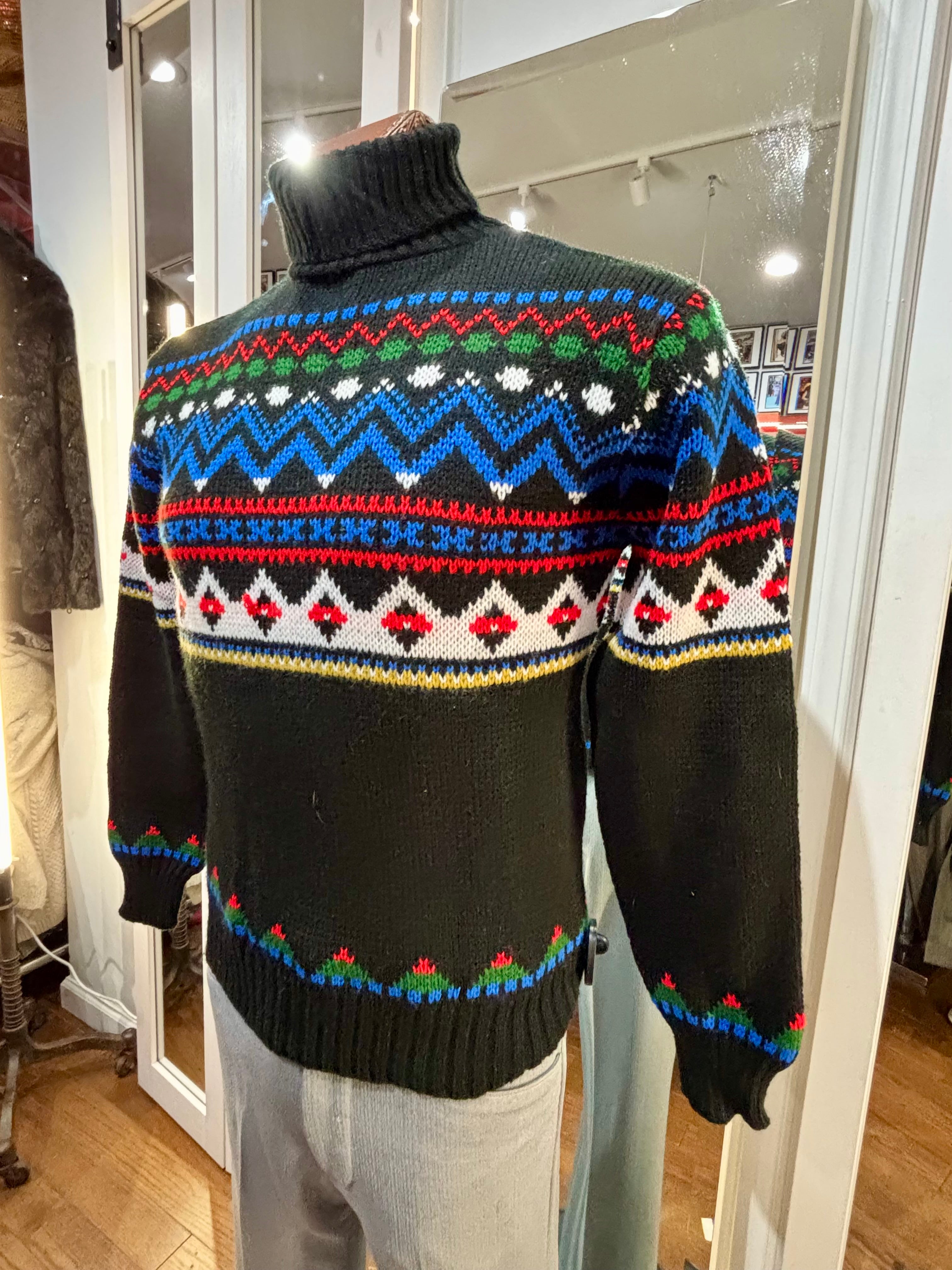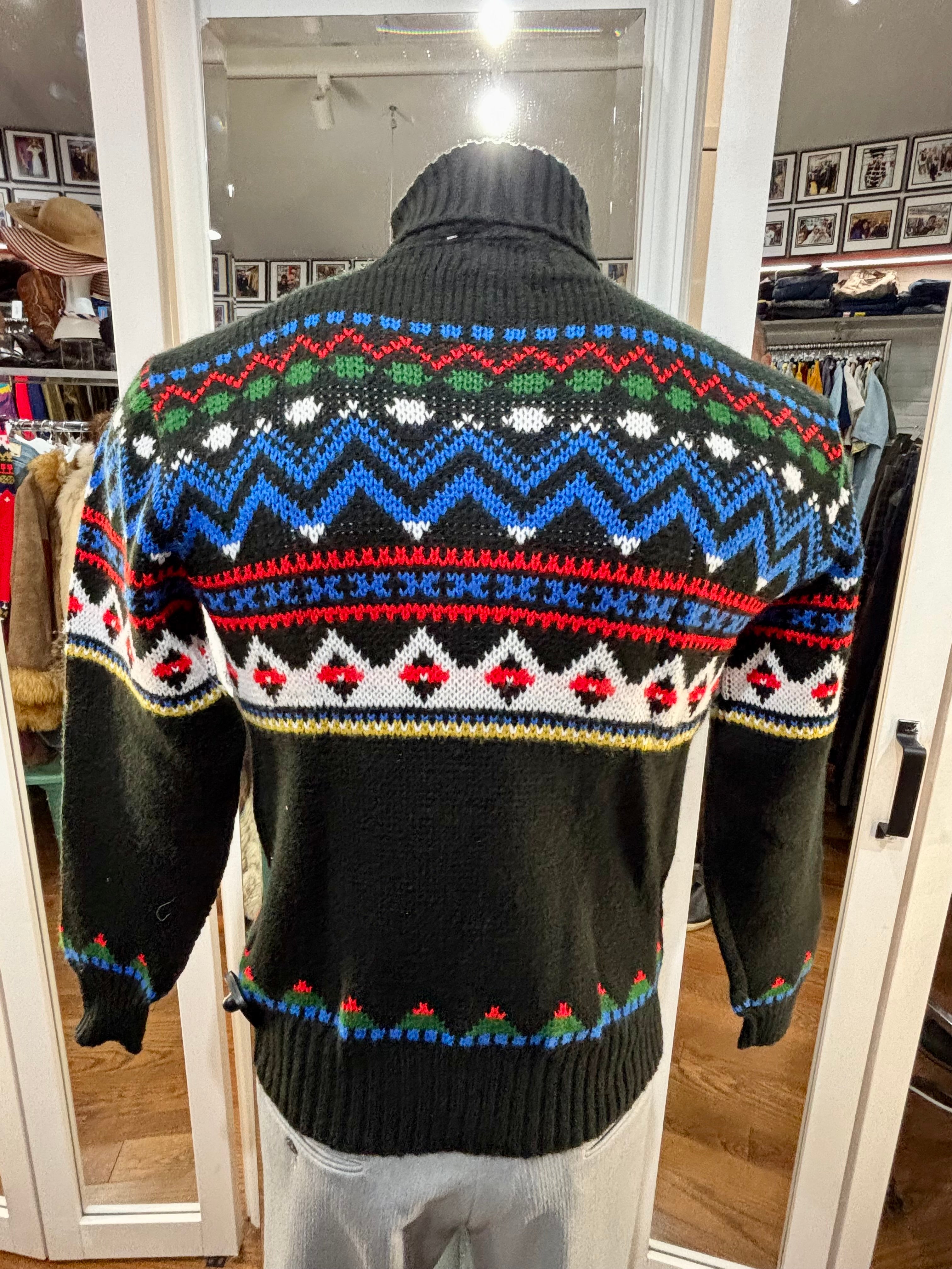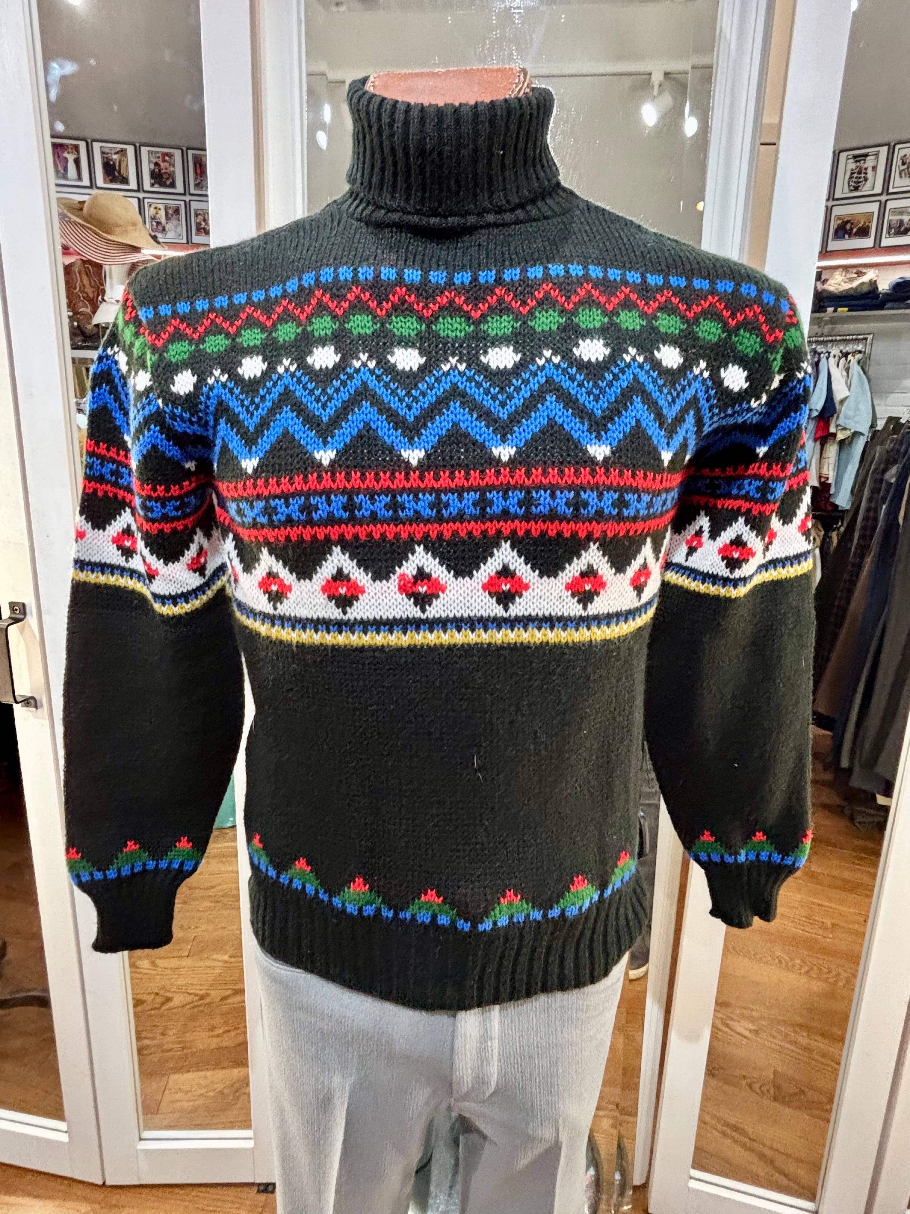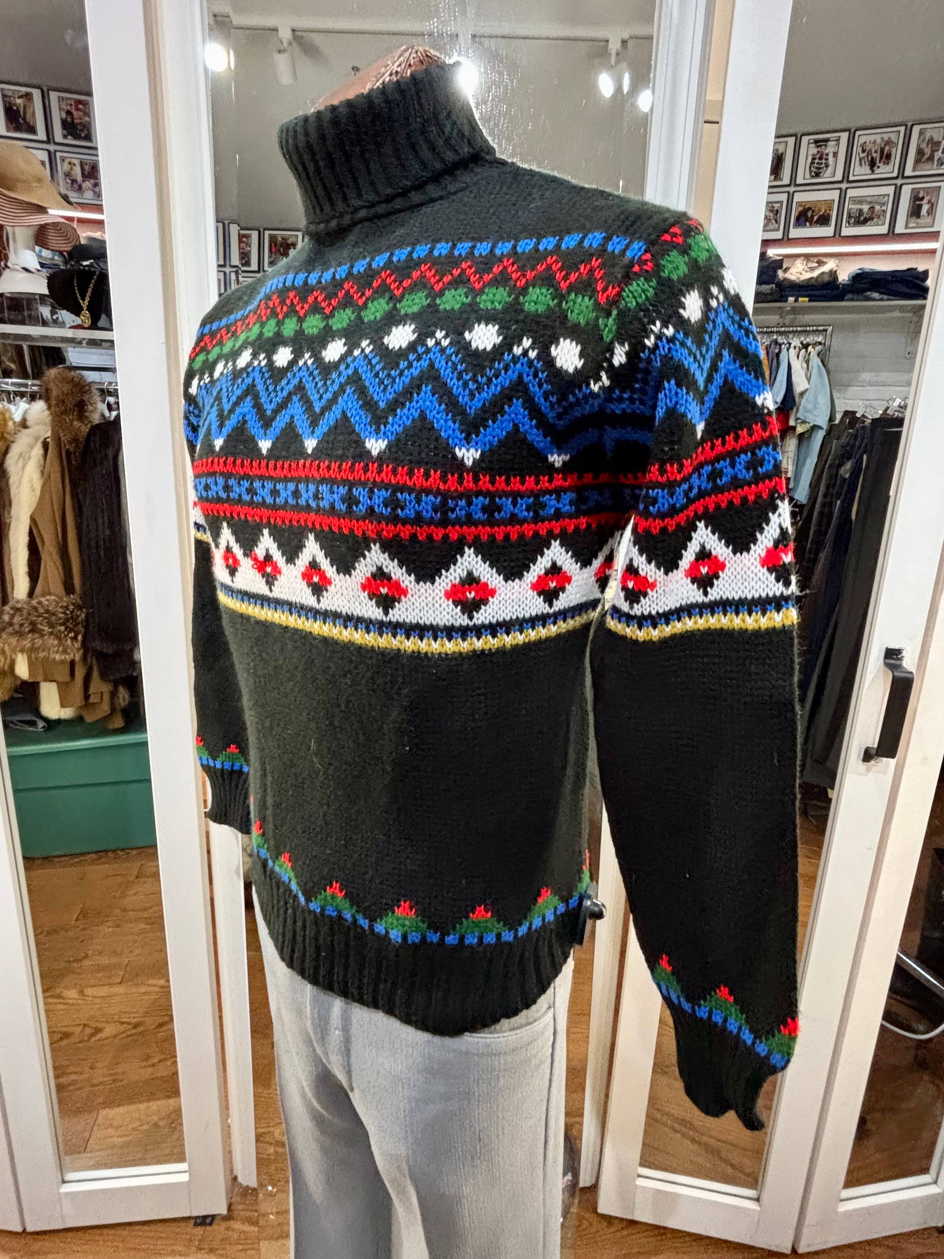 70’s Black Multicolor Old Stock Nordic TurtleNeck Sweater By Sedqewick