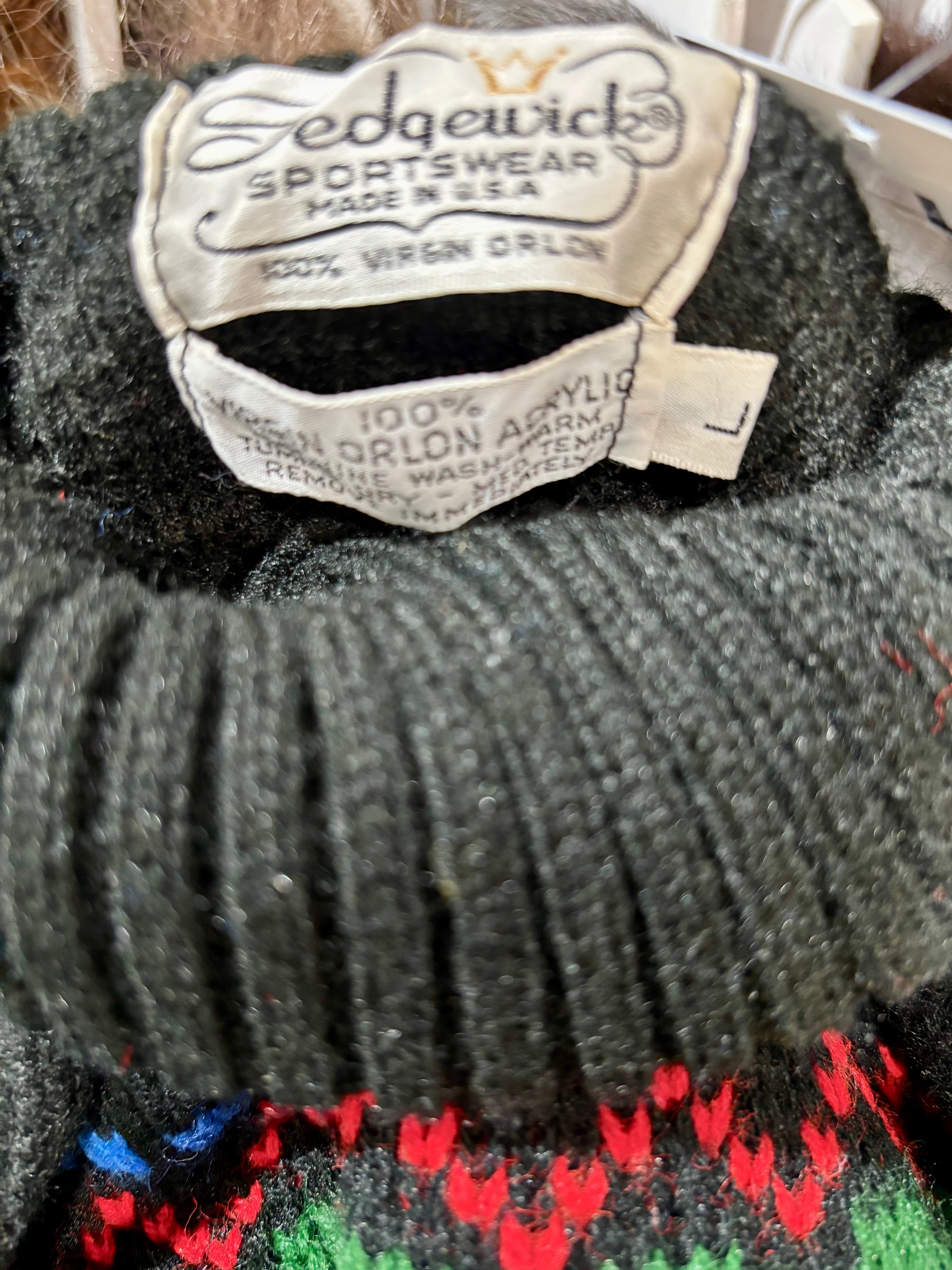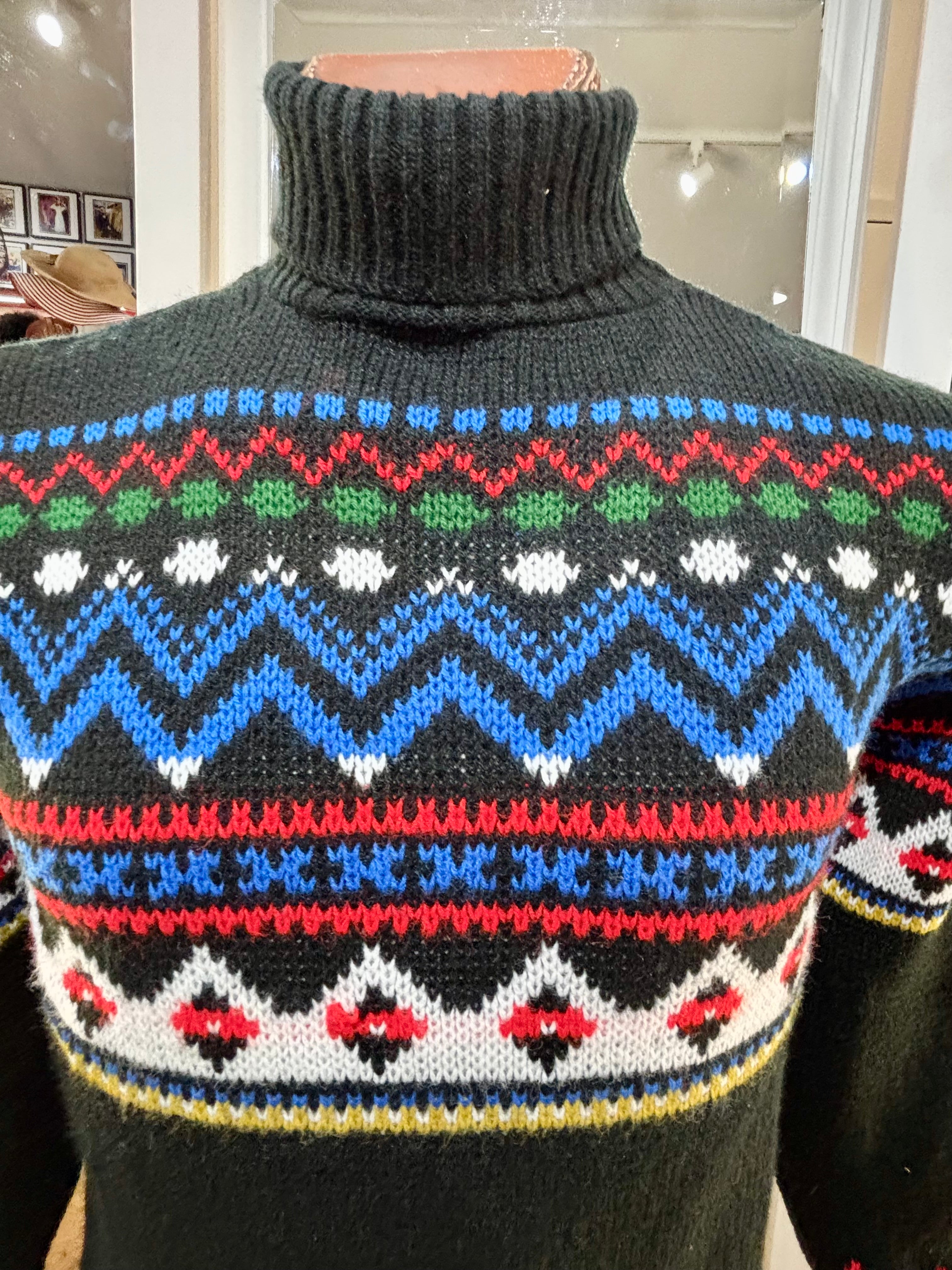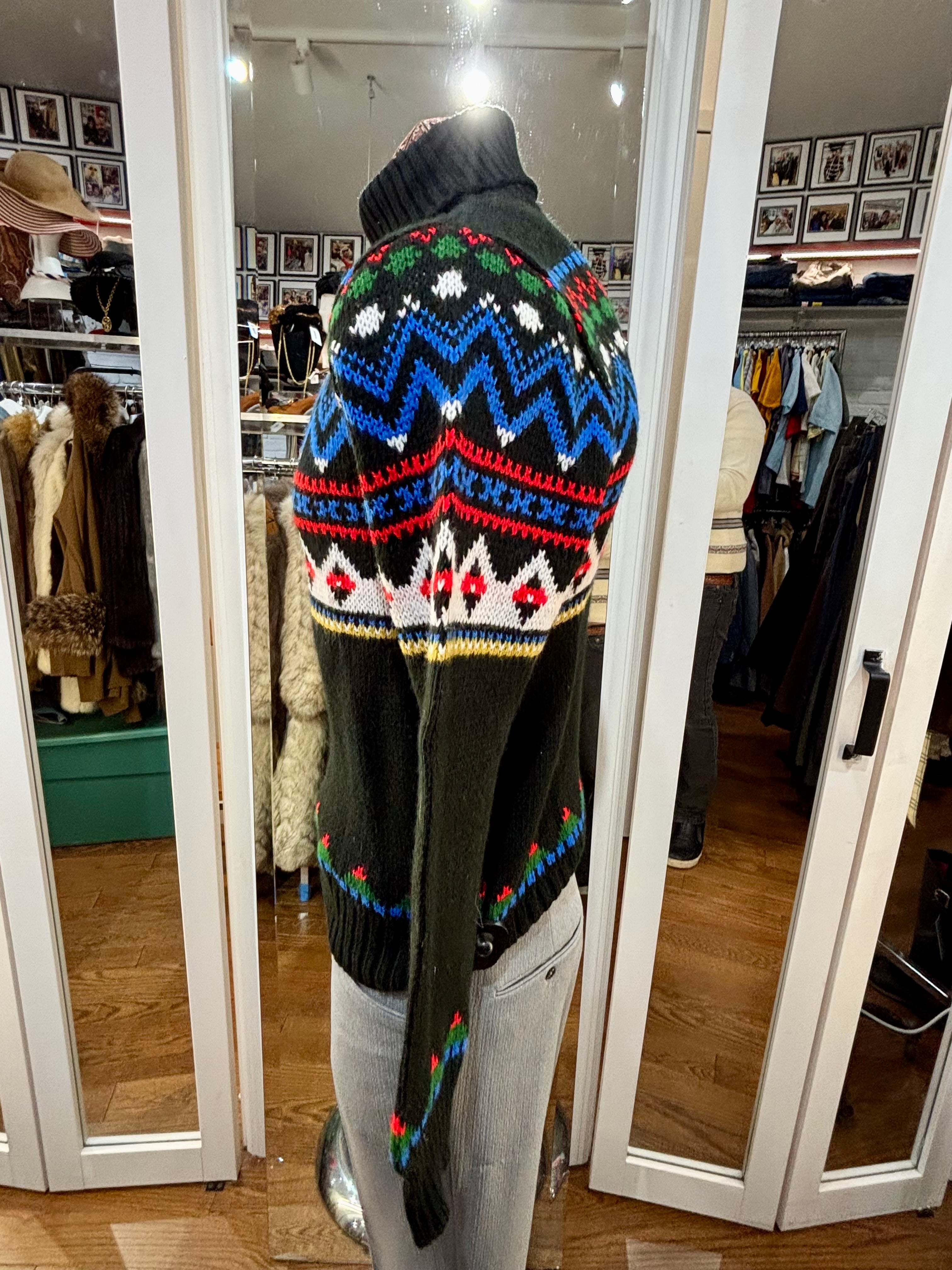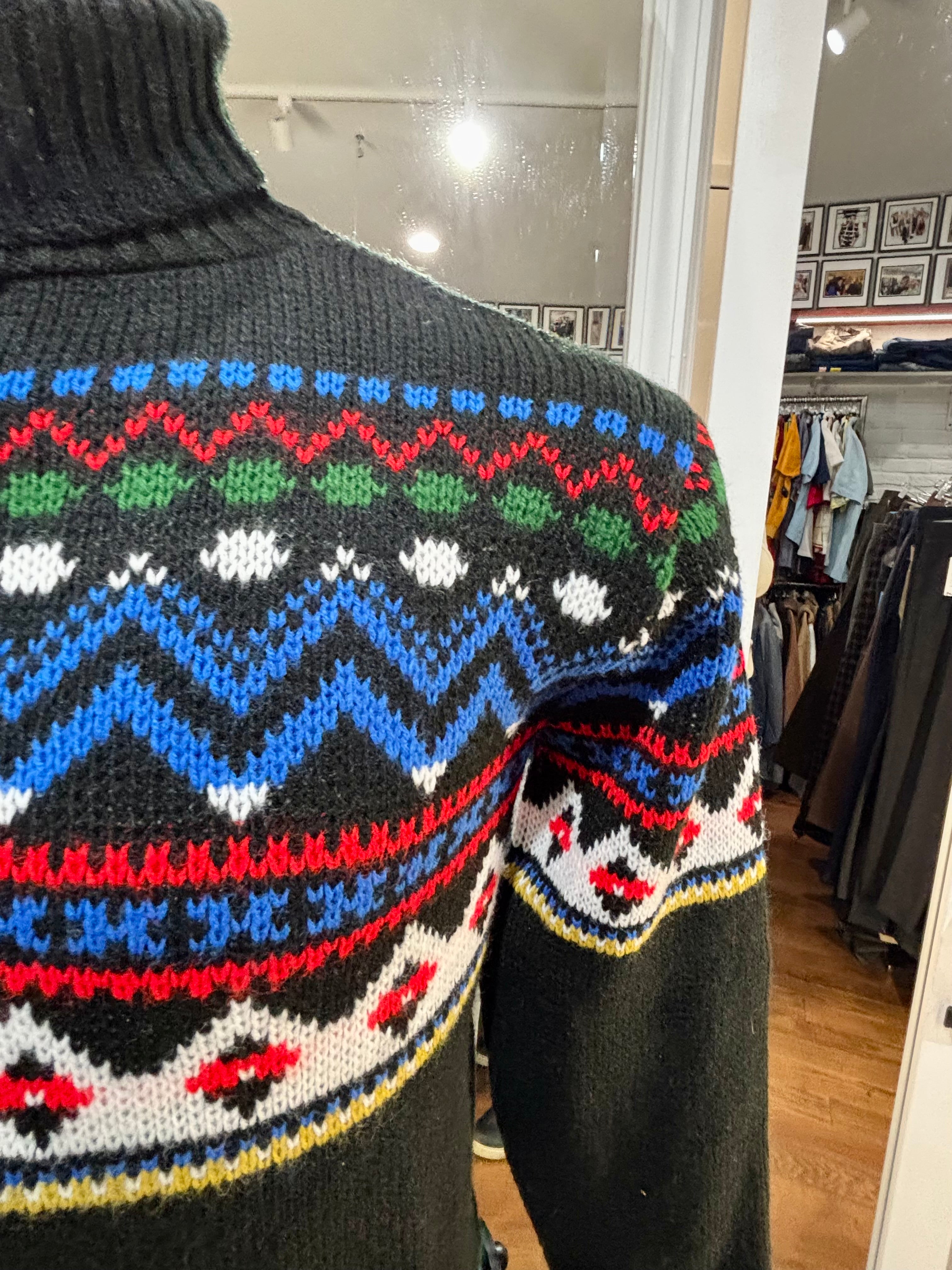 70’s Black Multicolor Old Stock Nordic TurtleNeck Sweater By Sedqewick