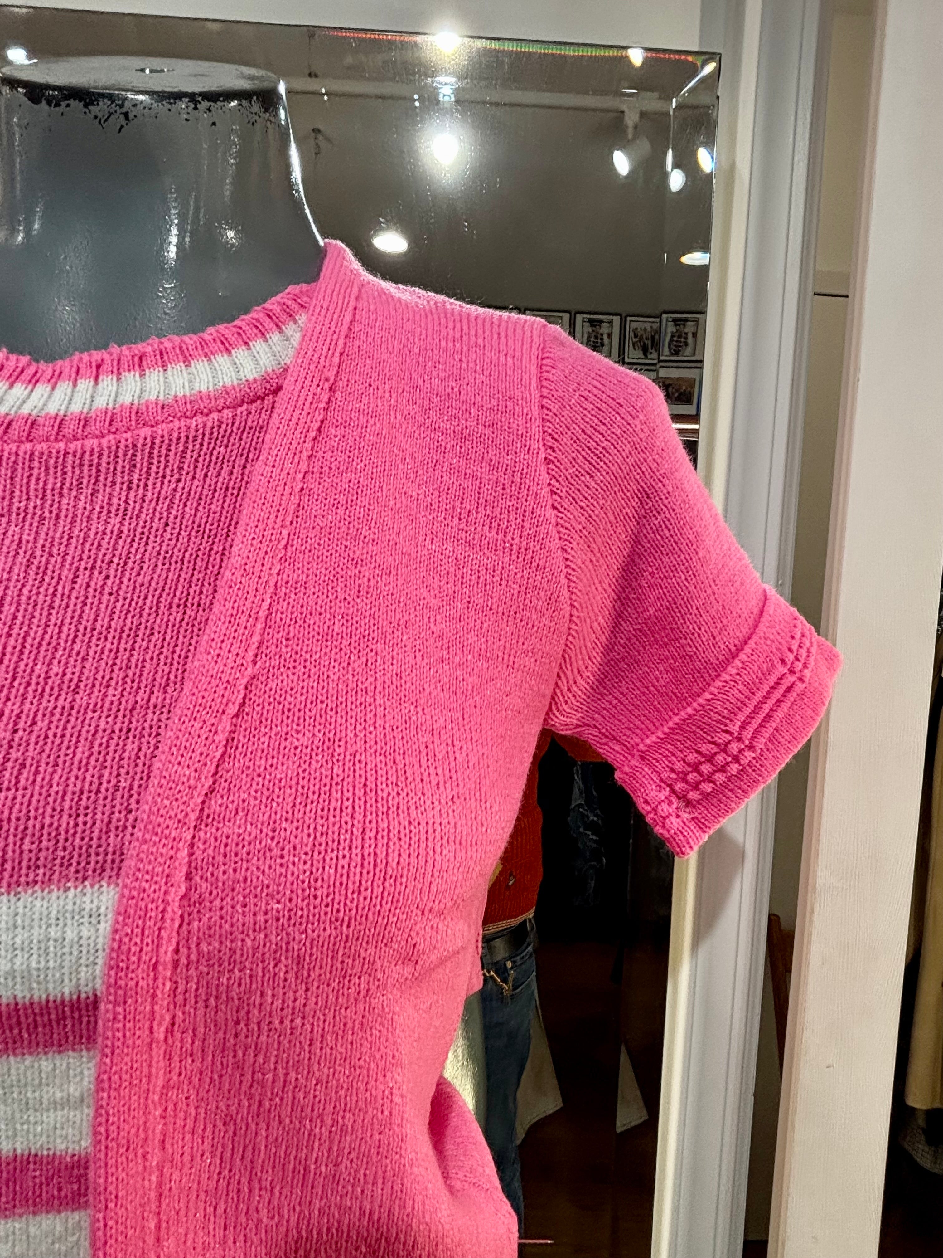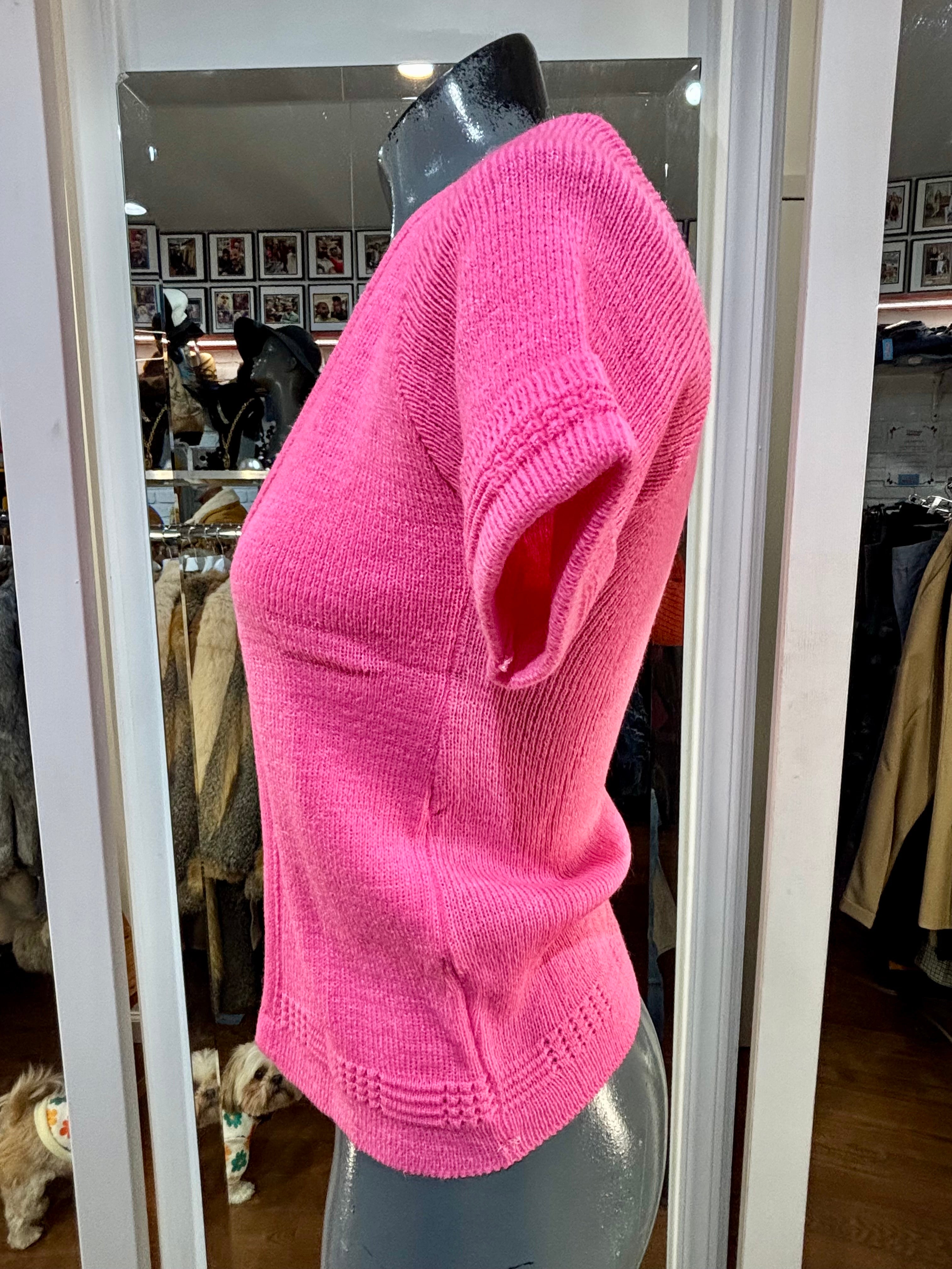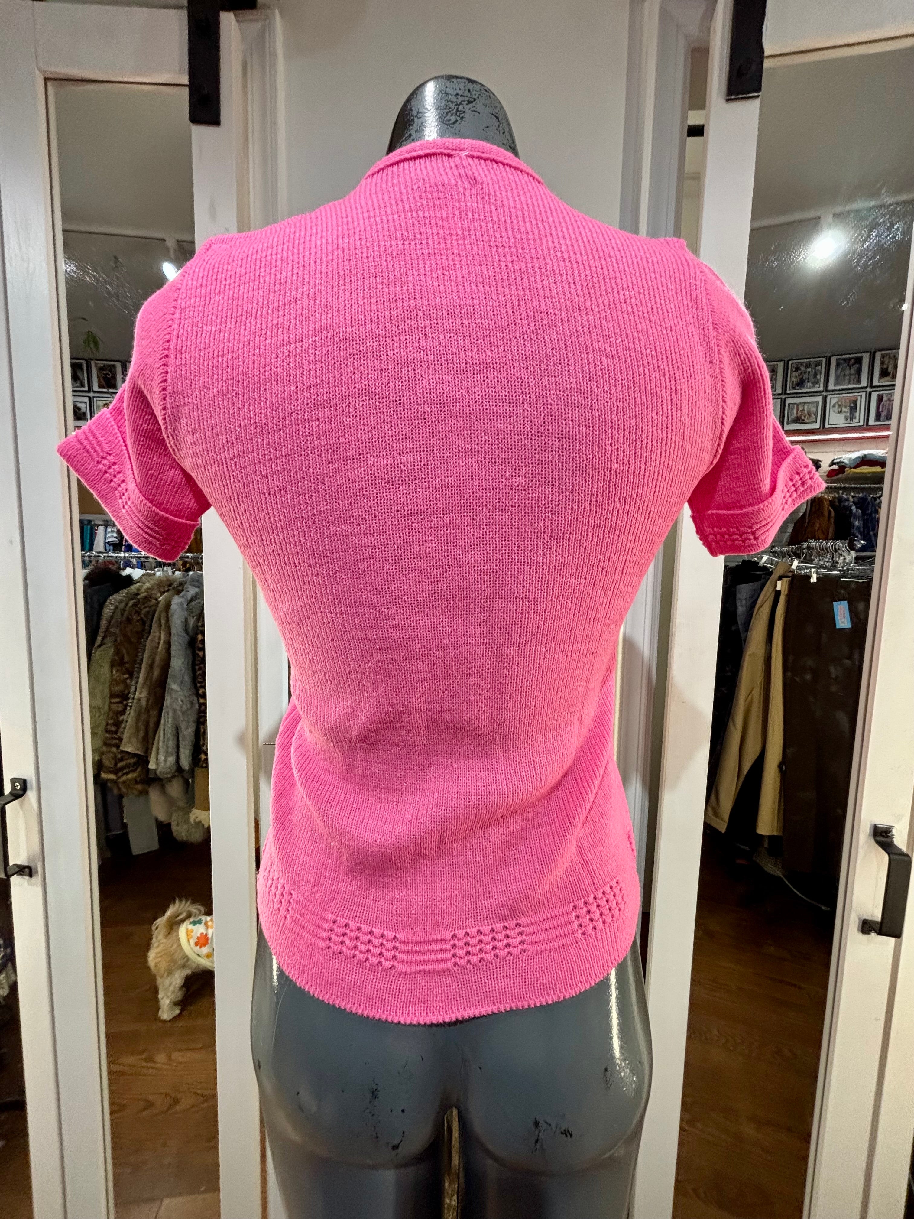 70’s Hot Pink Short Sleeve Knit With Double Layer Illusion Sweater Dead Stock By Lurbo