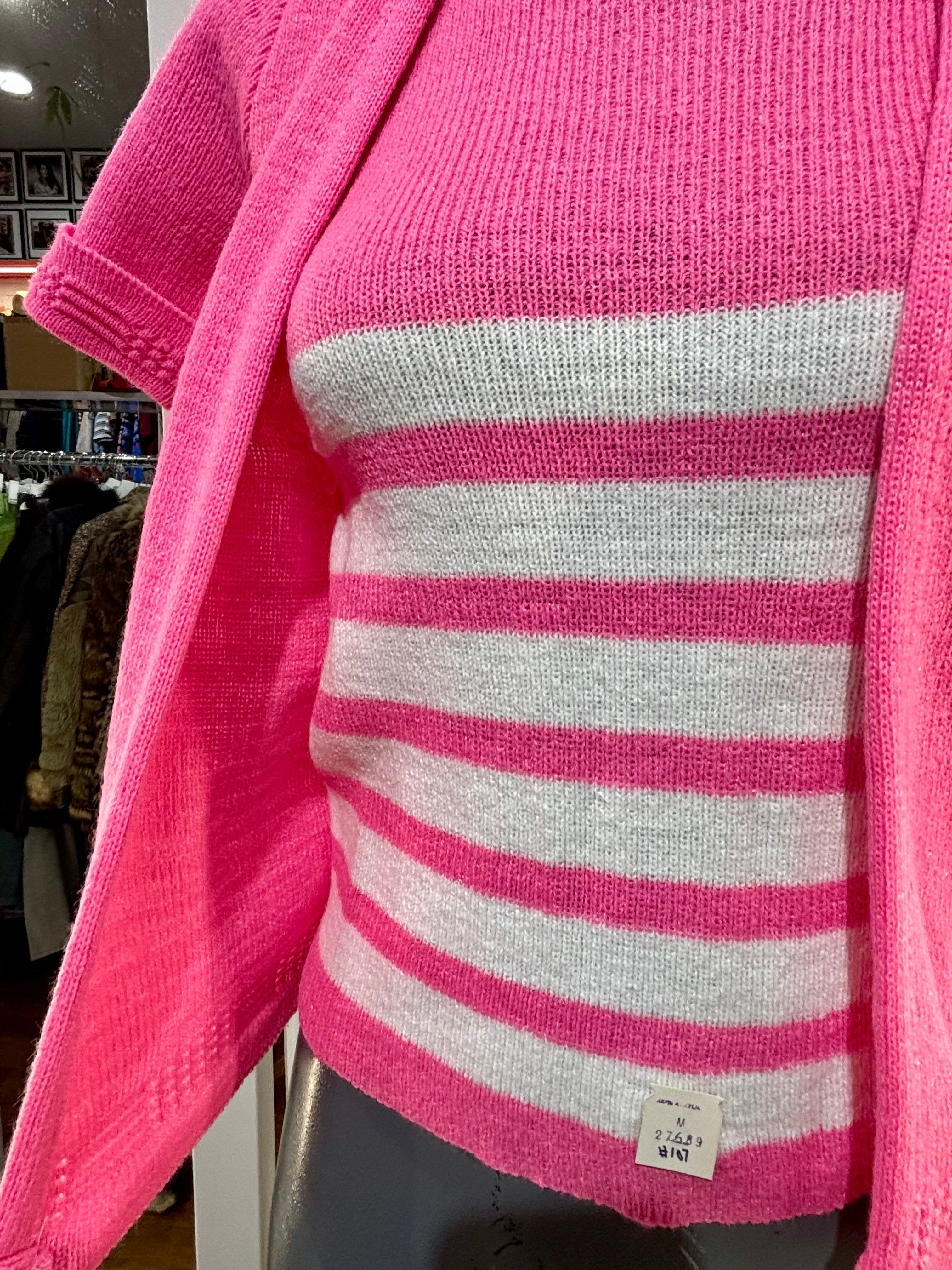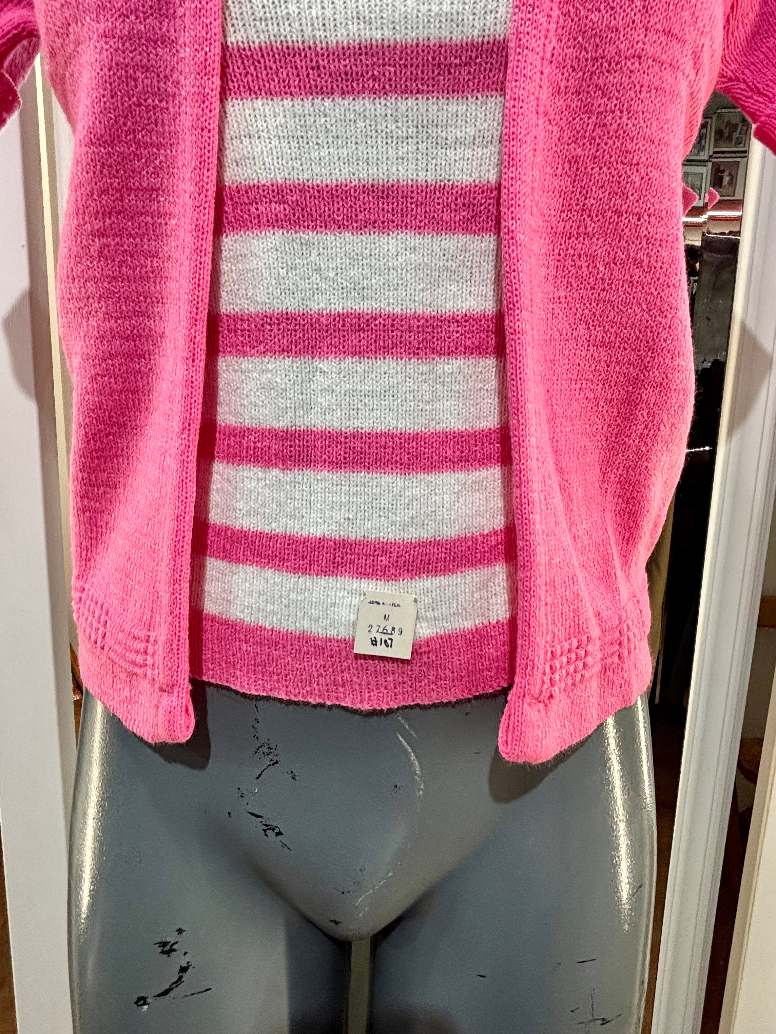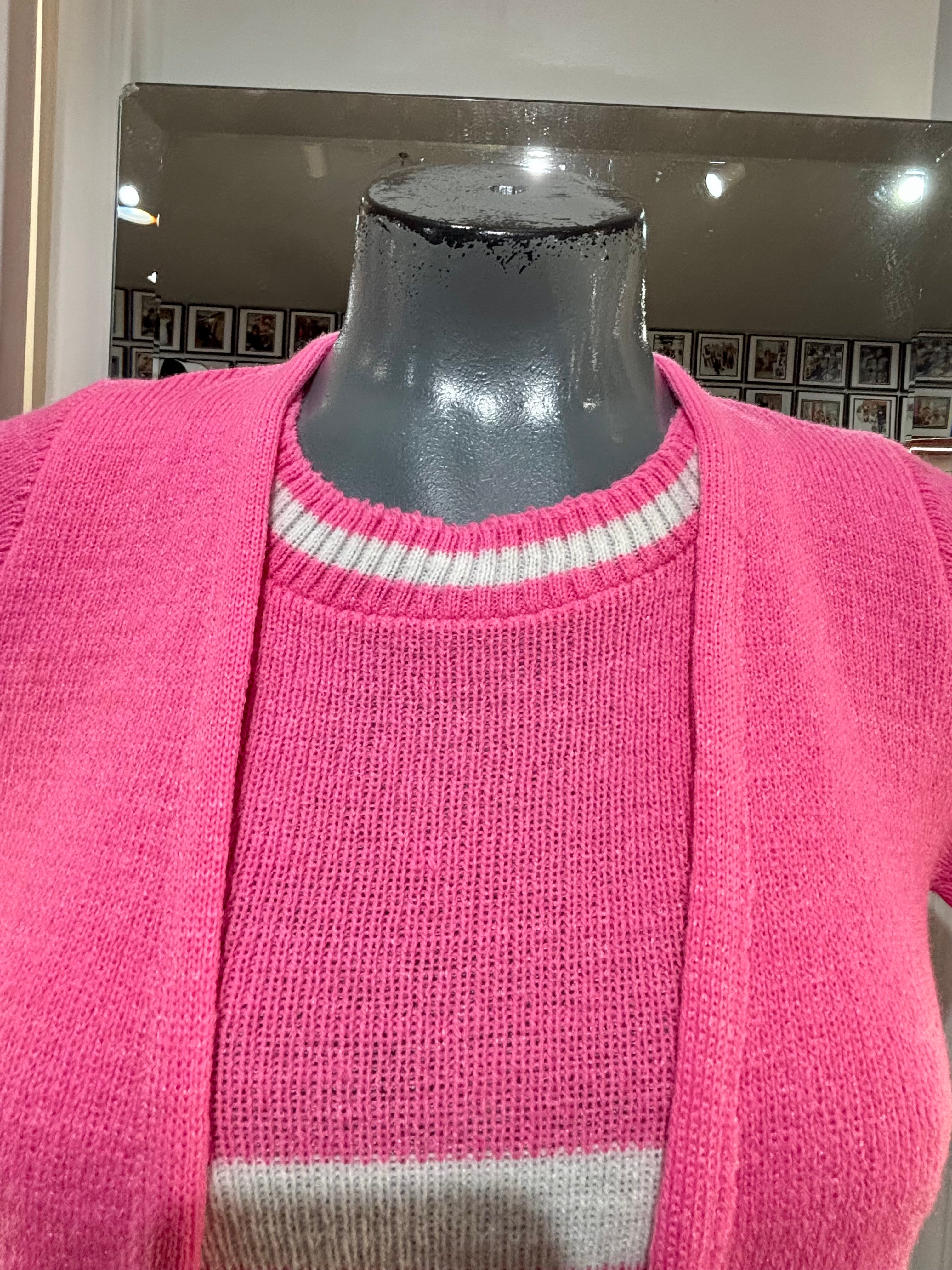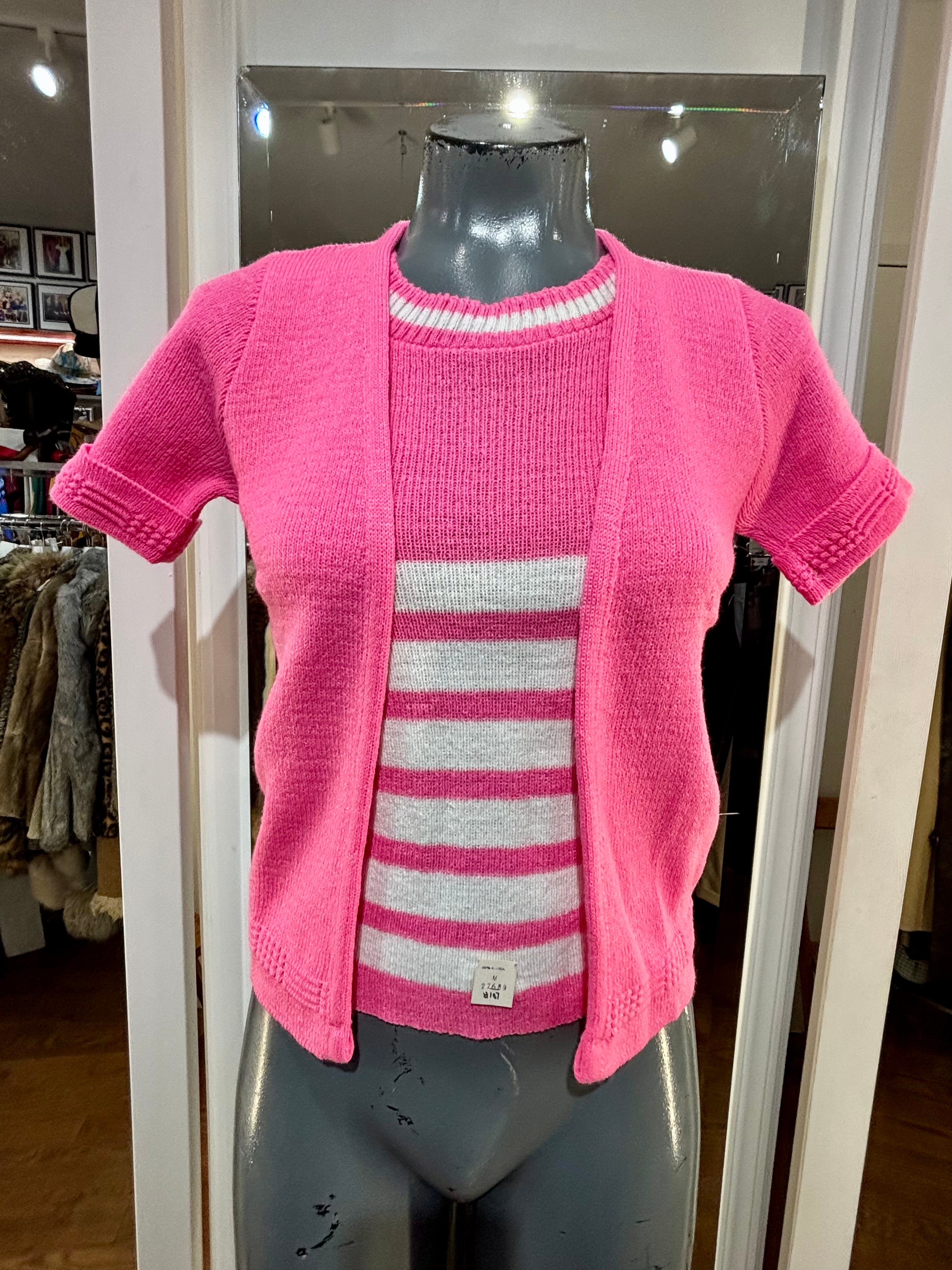 70’s Hot Pink Short Sleeve Knit With Double Layer Illusion Sweater Dead Stock By Lurbo