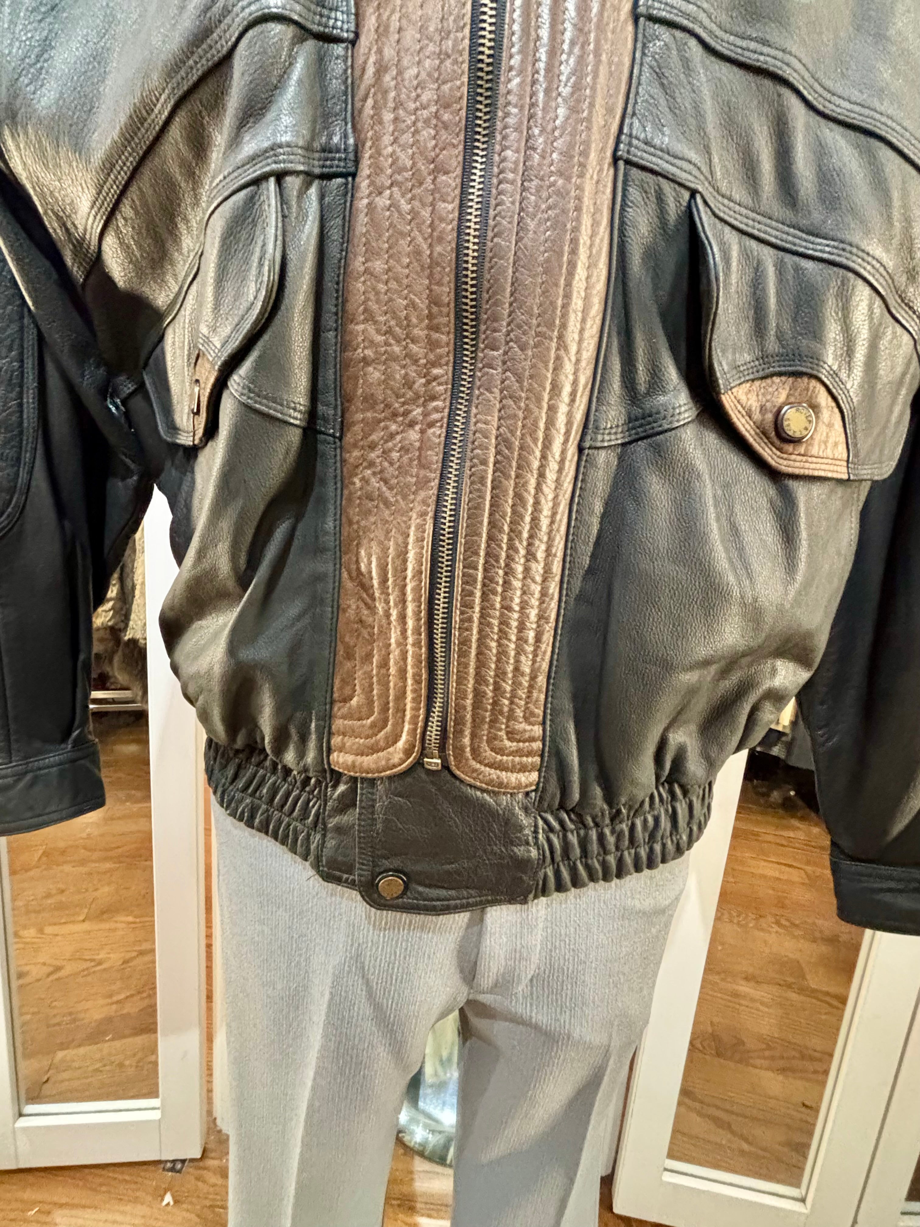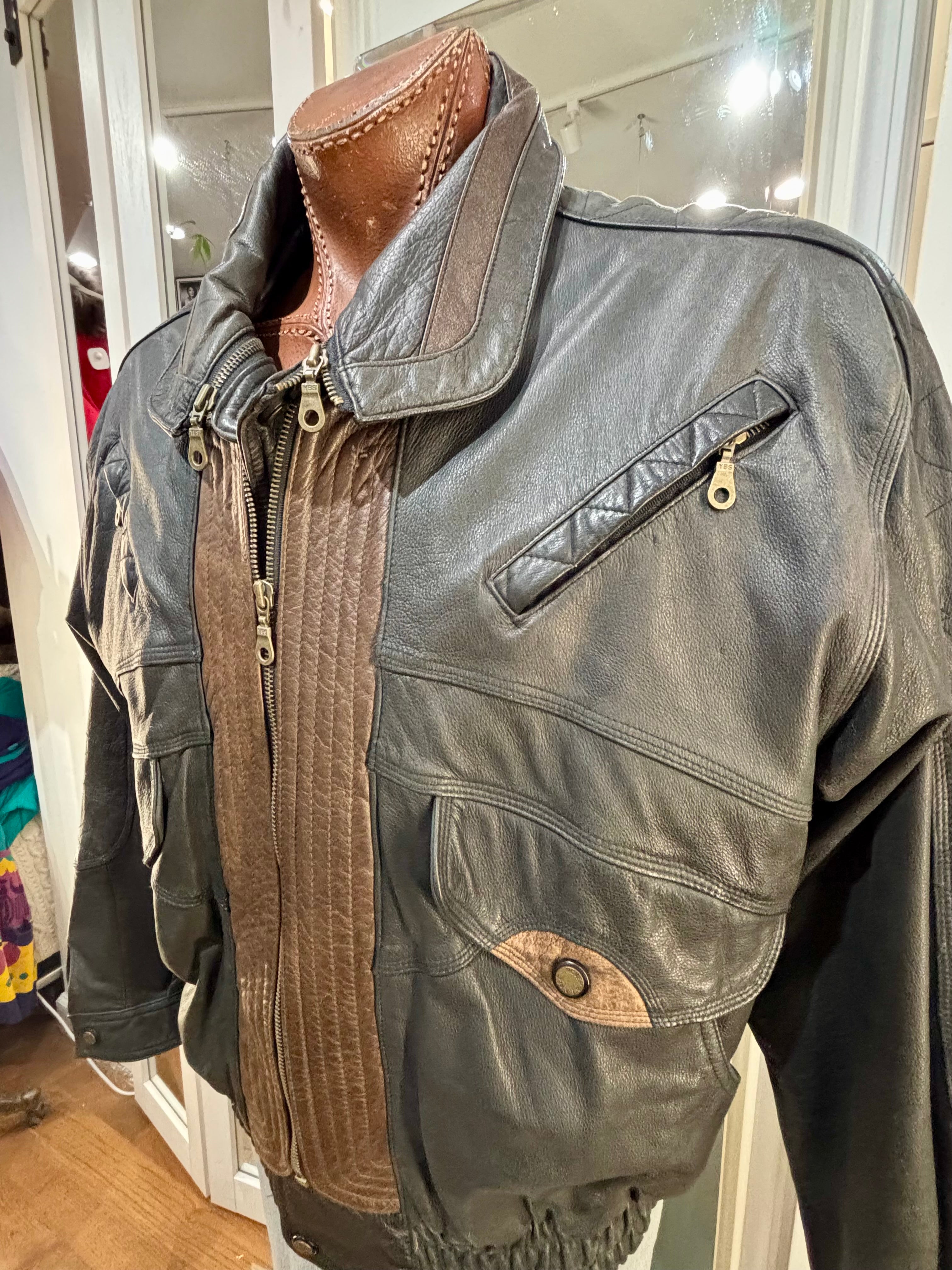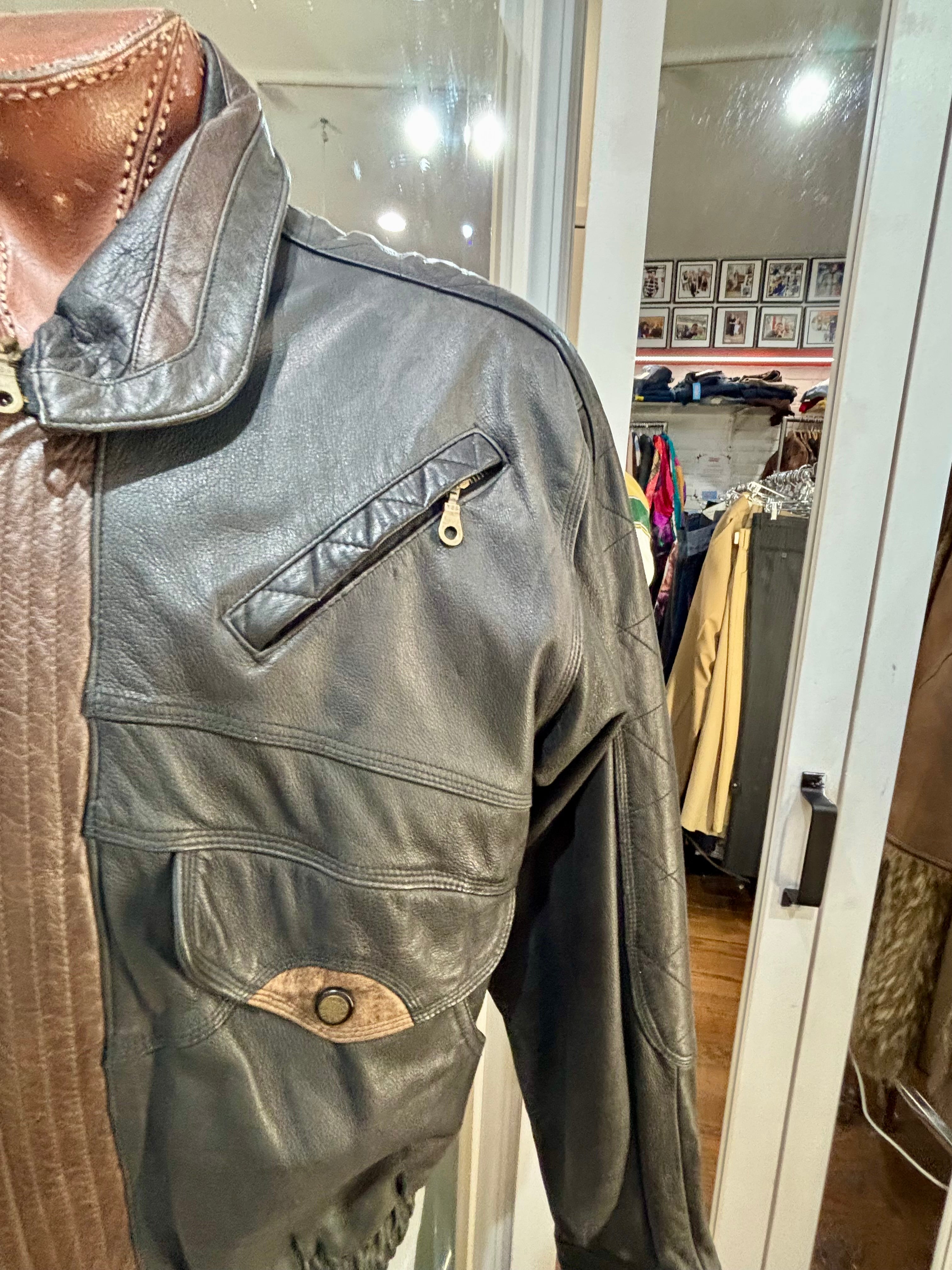 80’s Black & Brown Leather Oversized Bomber Jacket By Rovers & Lakers