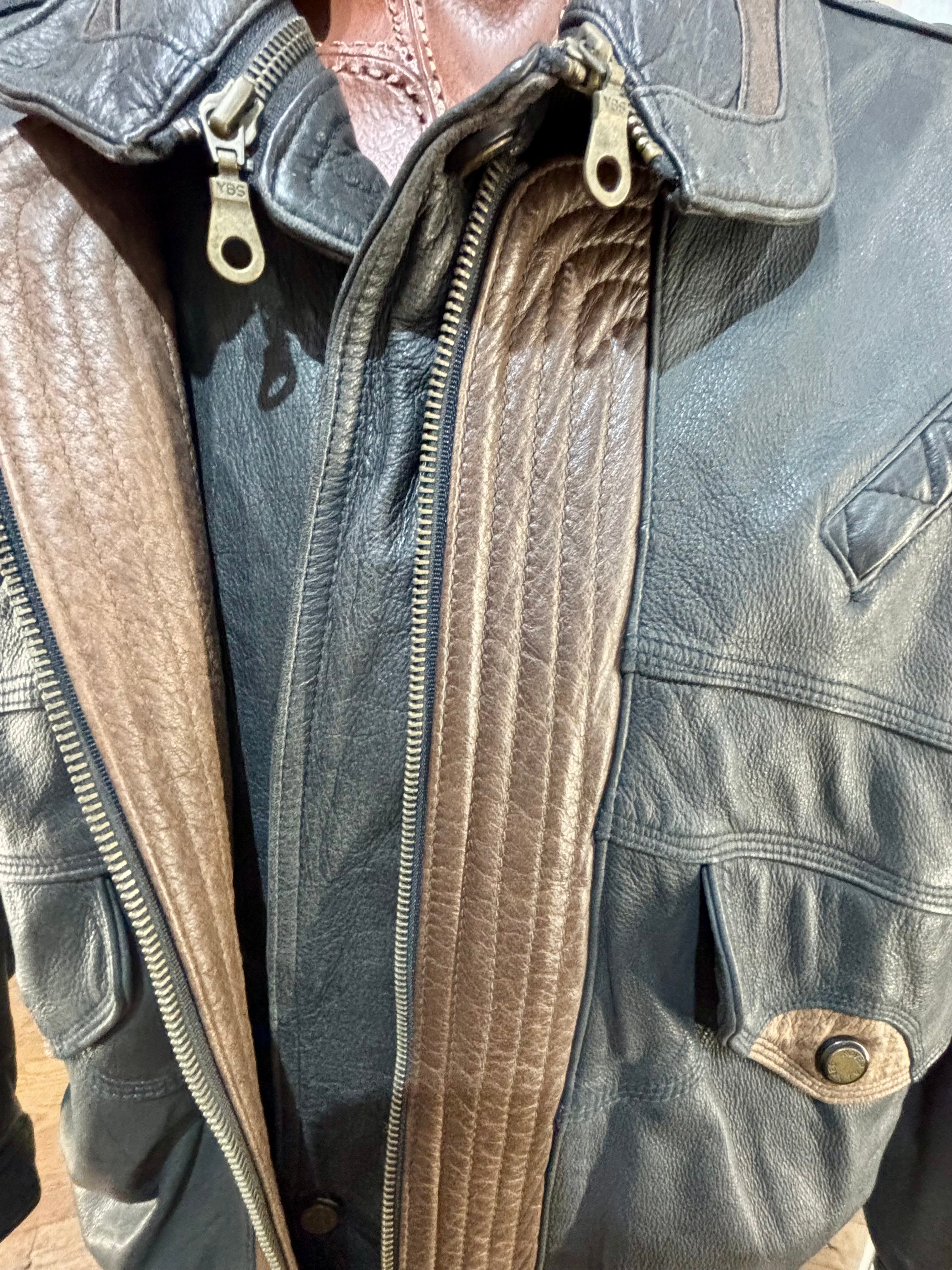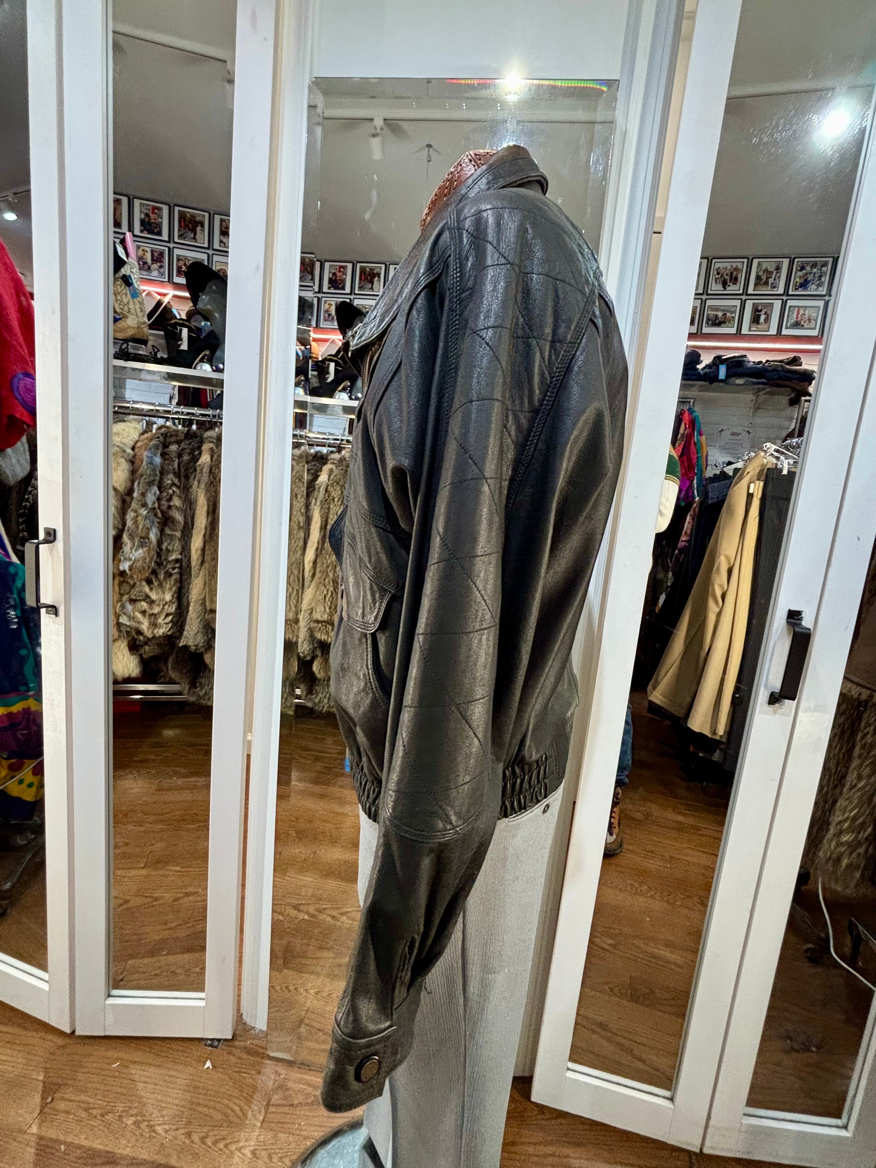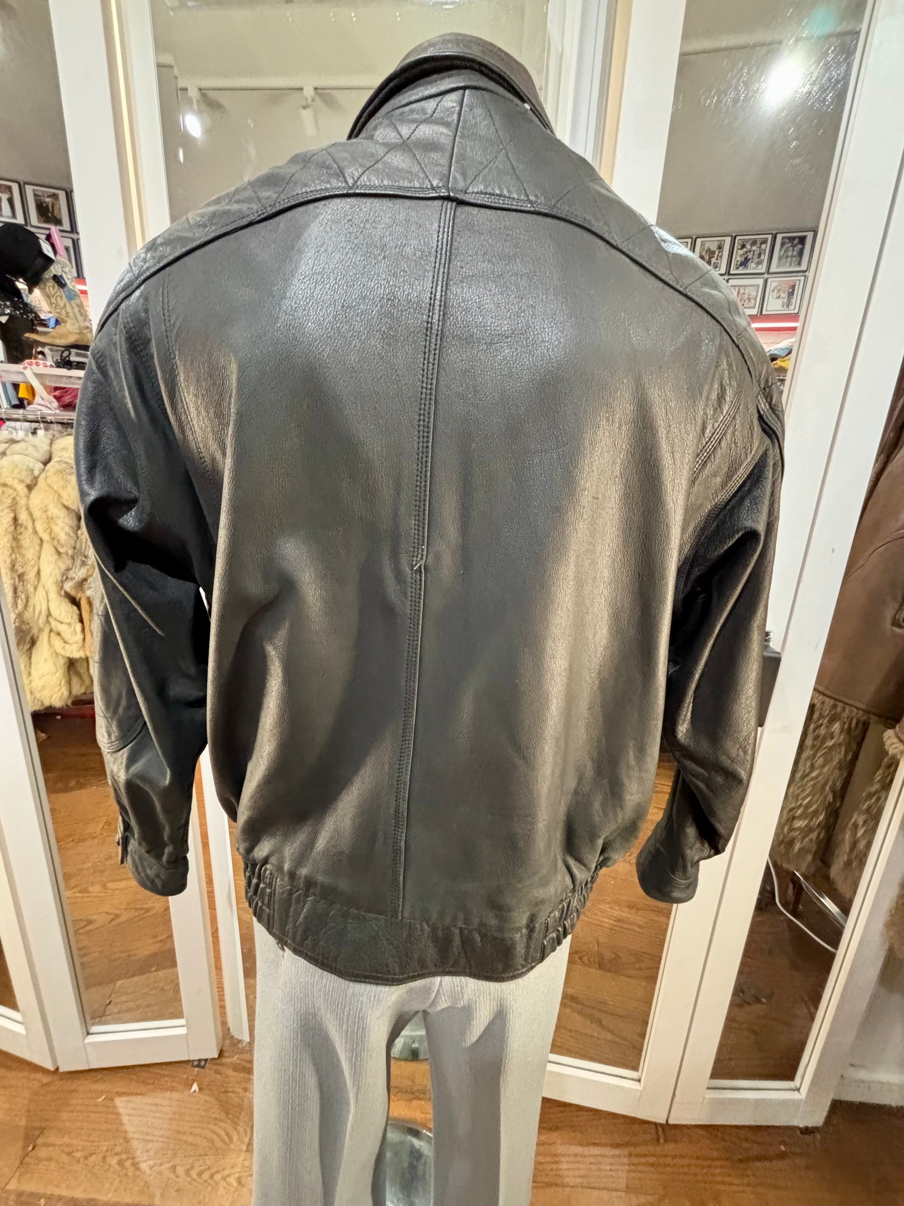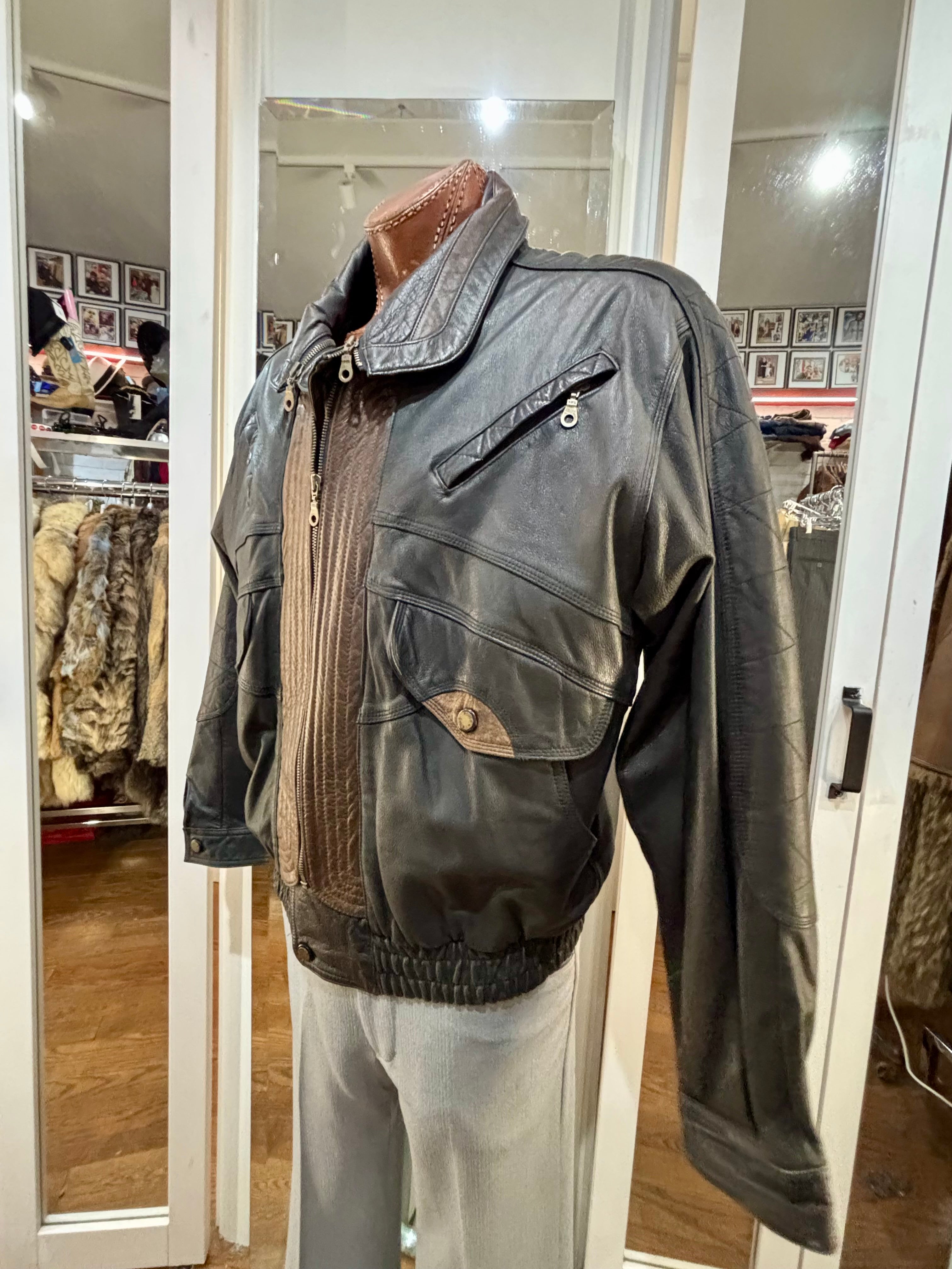 80’s Black & Brown Leather Oversized Bomber Jacket By Rovers & Lakers