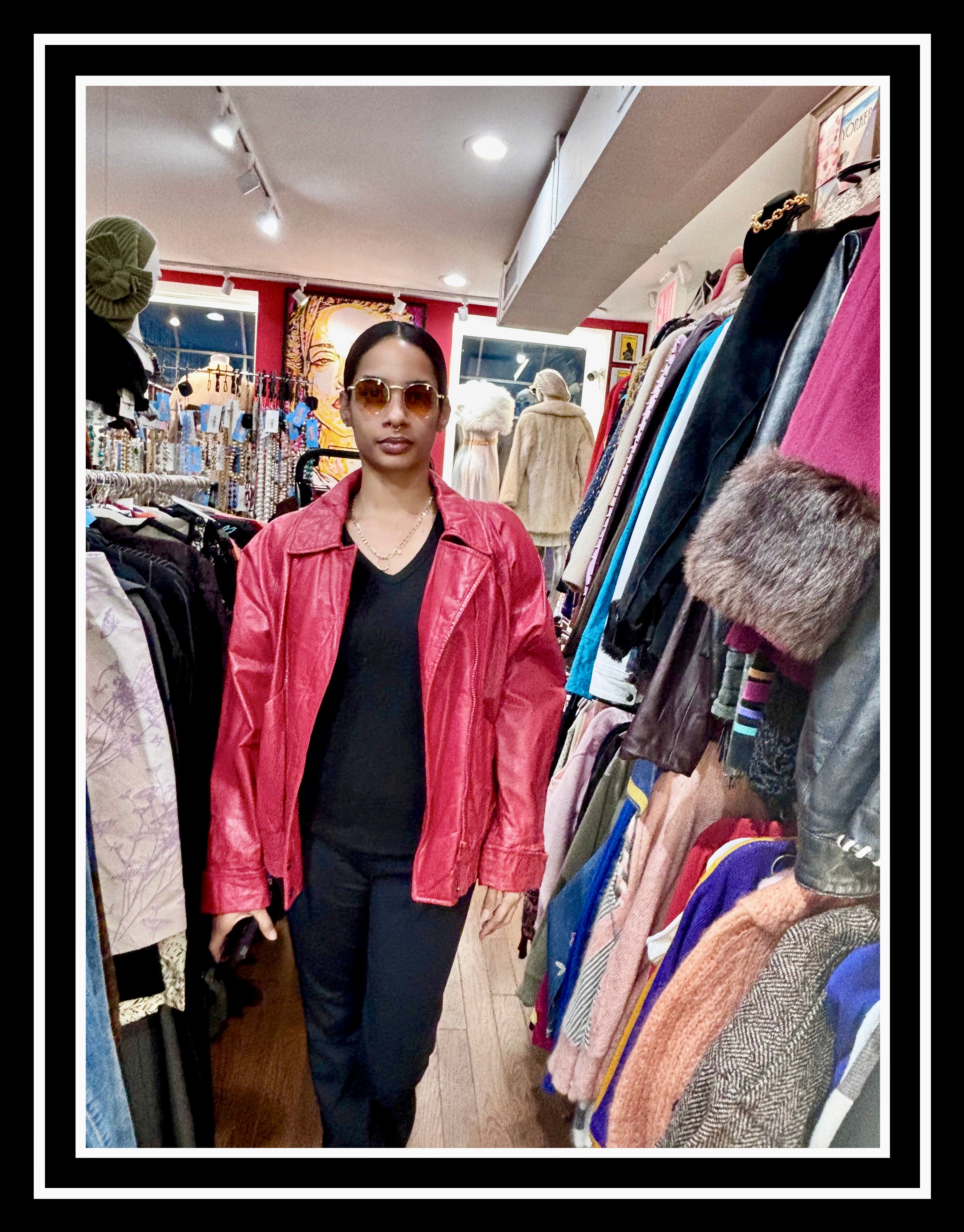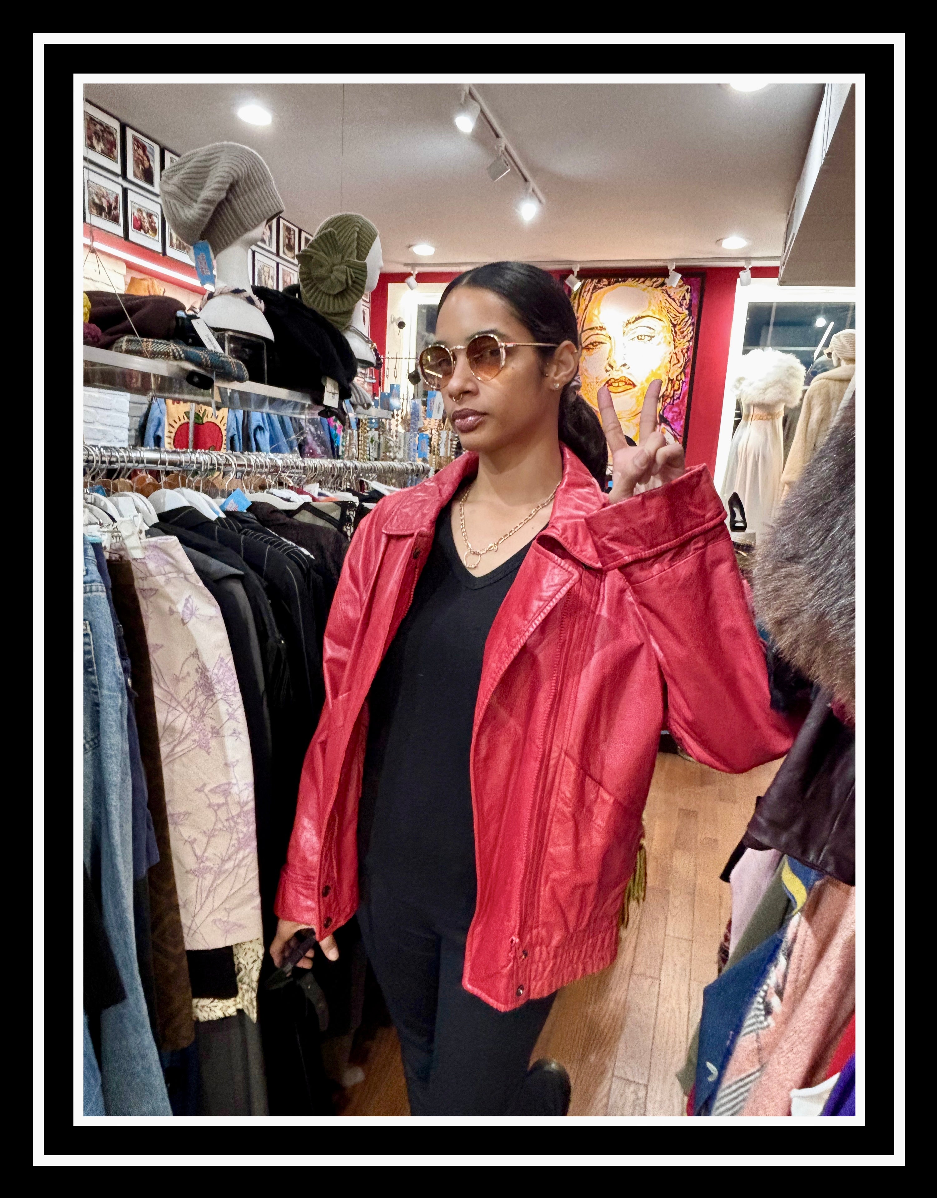 80’s Lipstick Red Oversized Bomber Short Leather Jacket Featuring Front Pockets