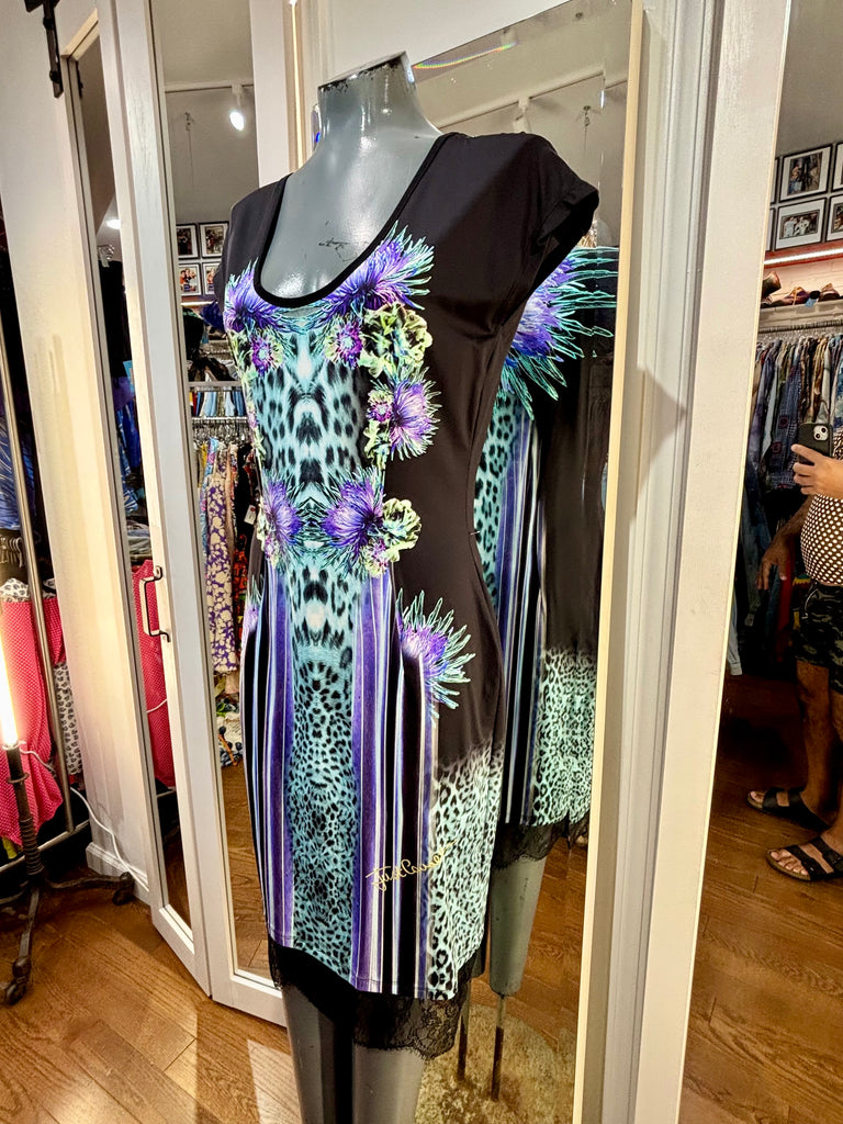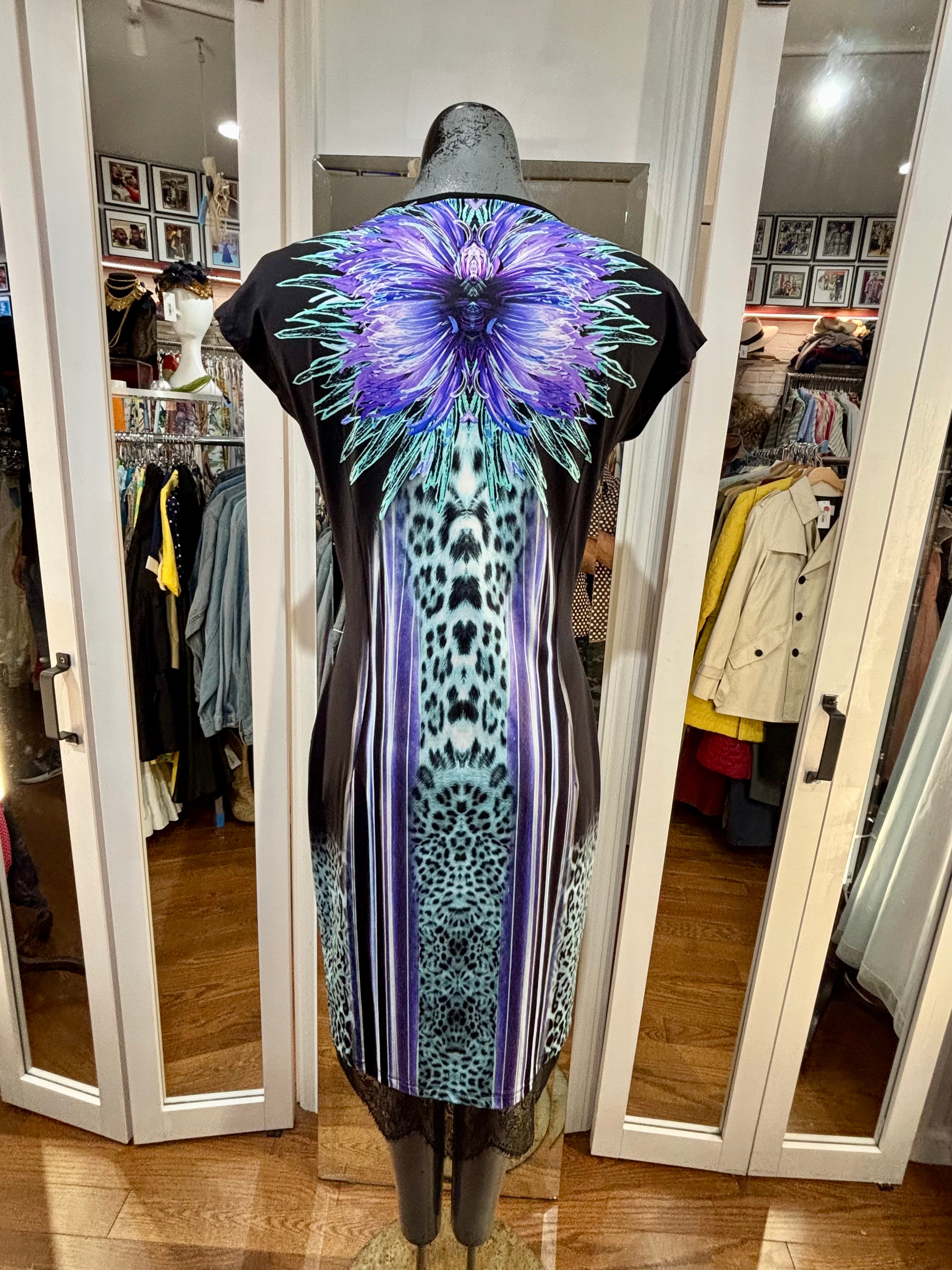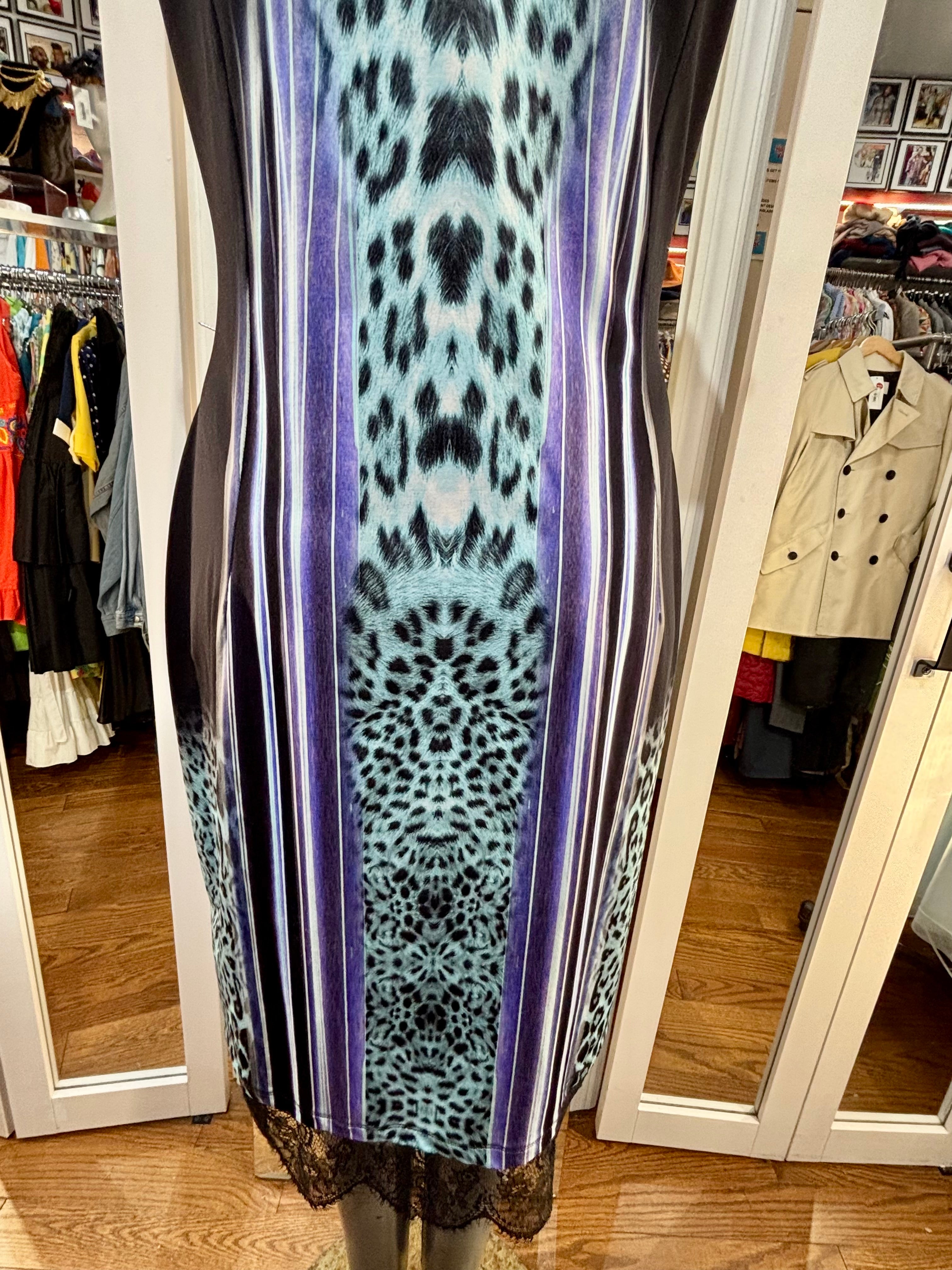 00’s Back Art Deco Print Bodycom Dress By Just Cavalli