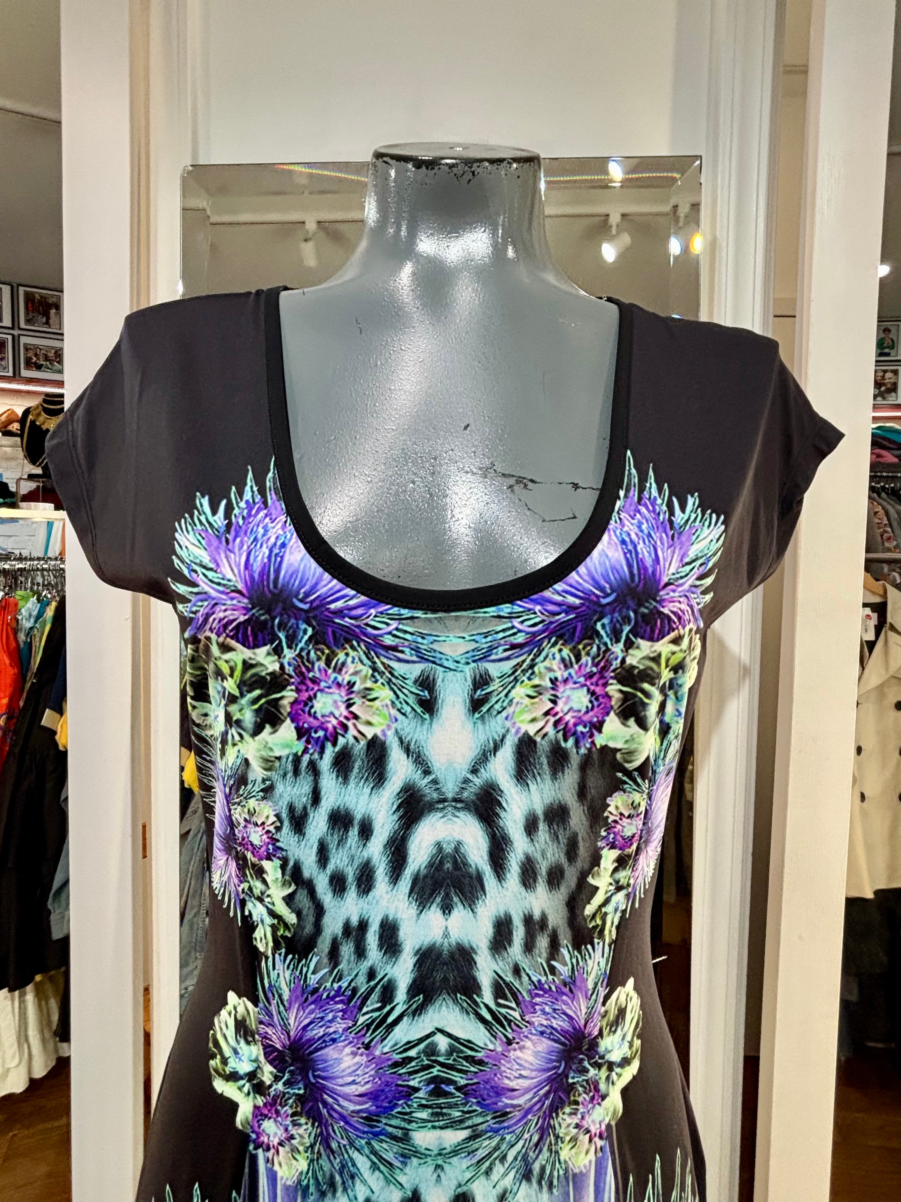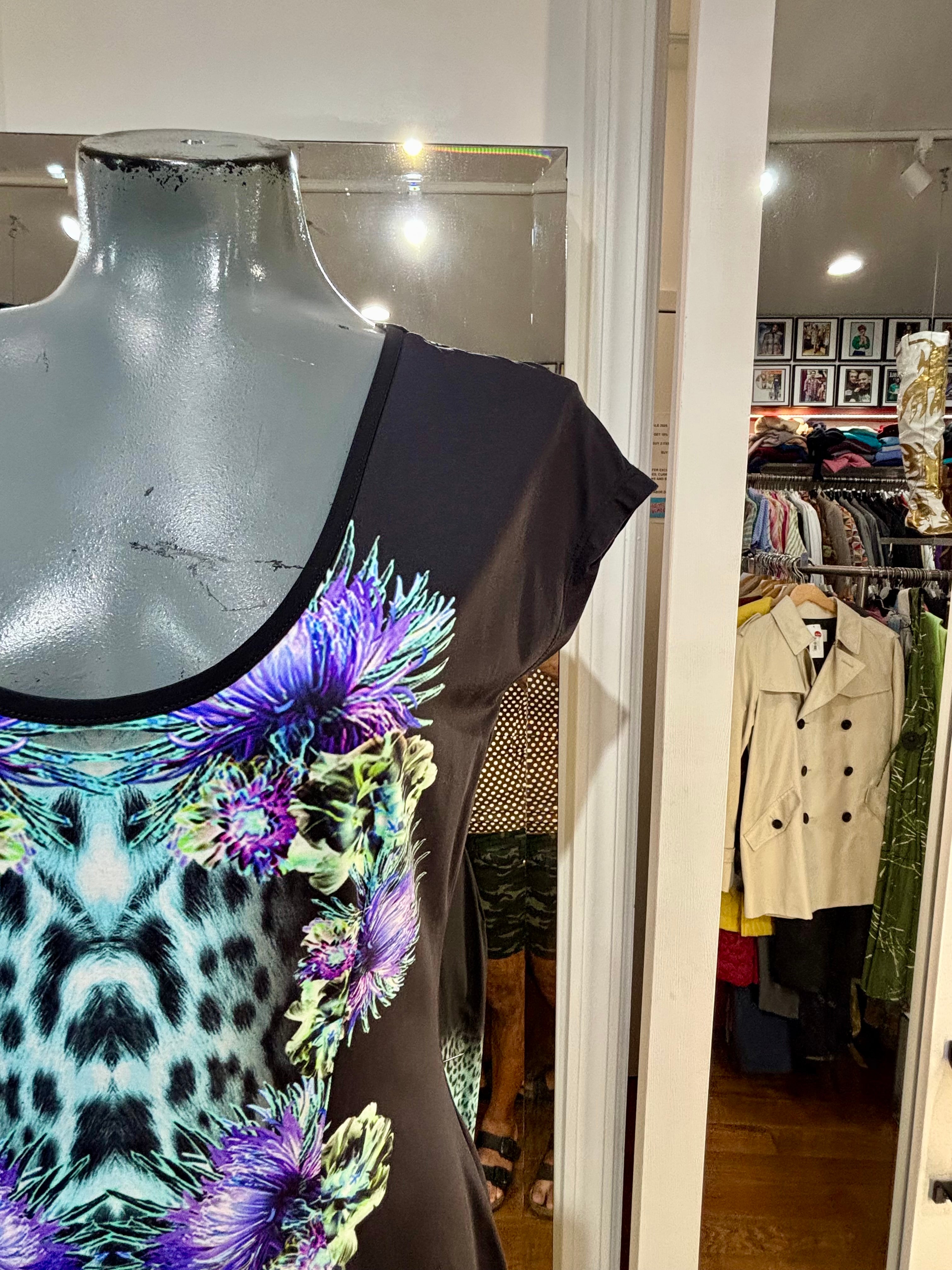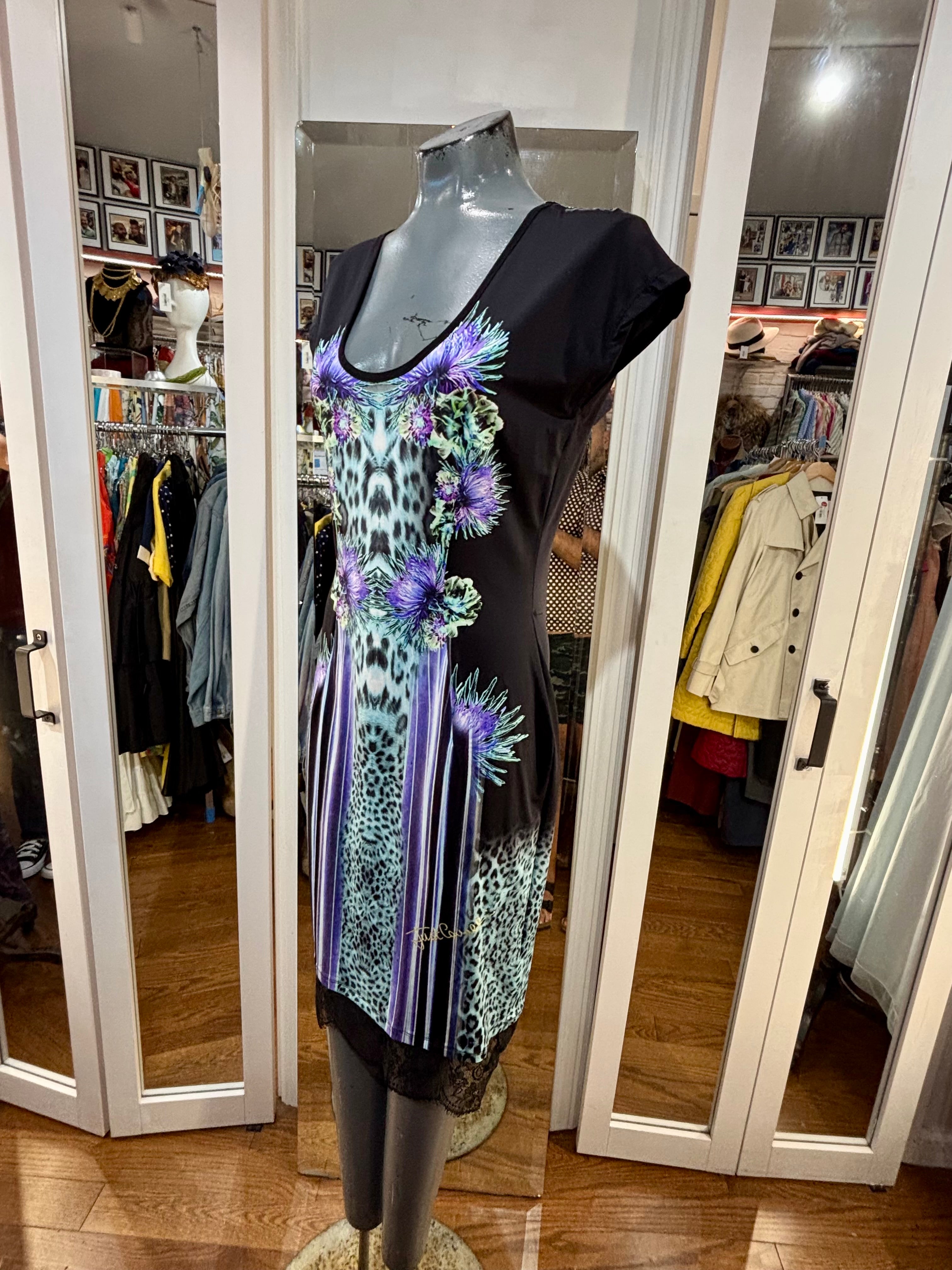 00’s Back Art Deco Print Bodycom Dress By Just Cavalli