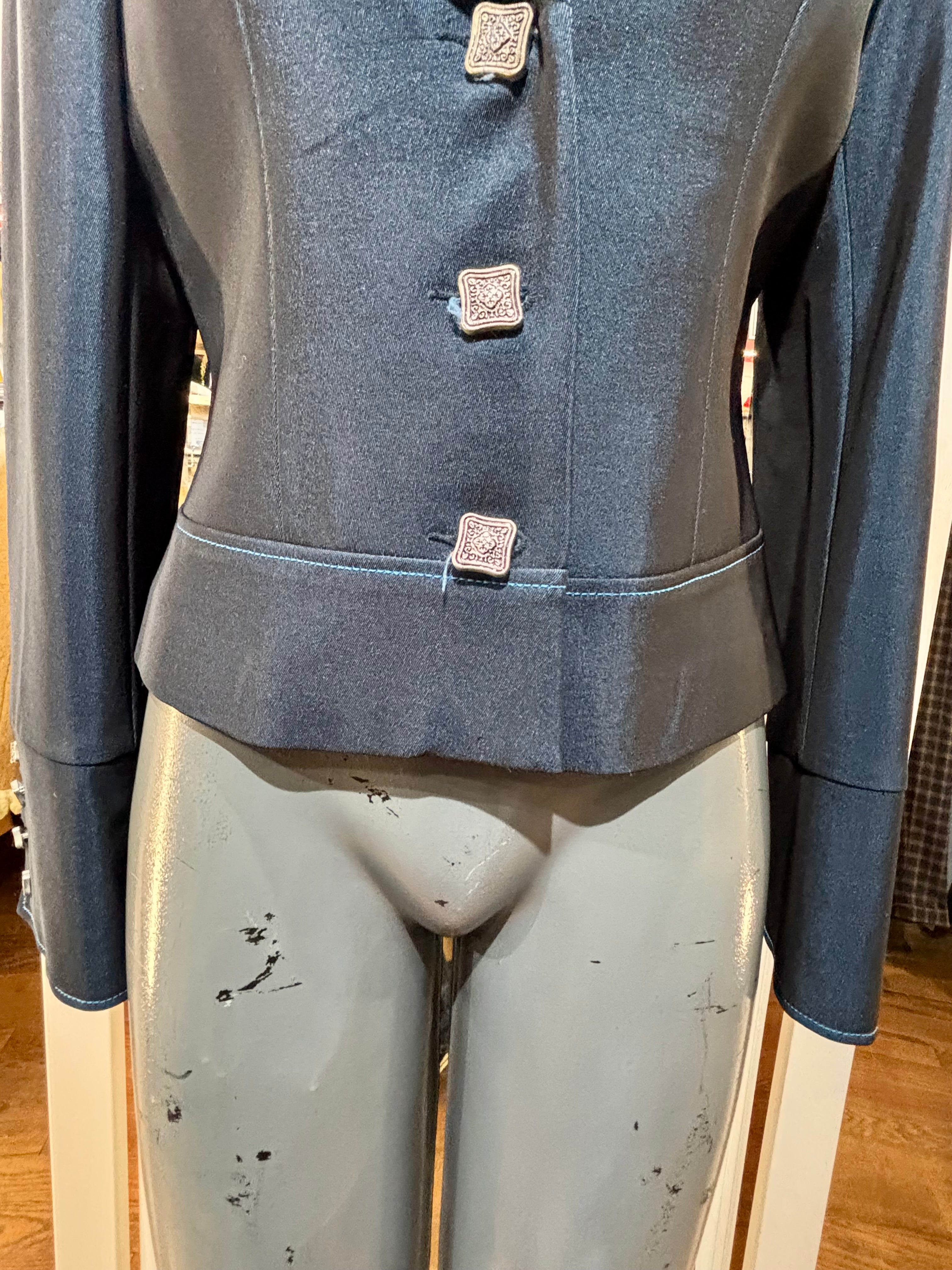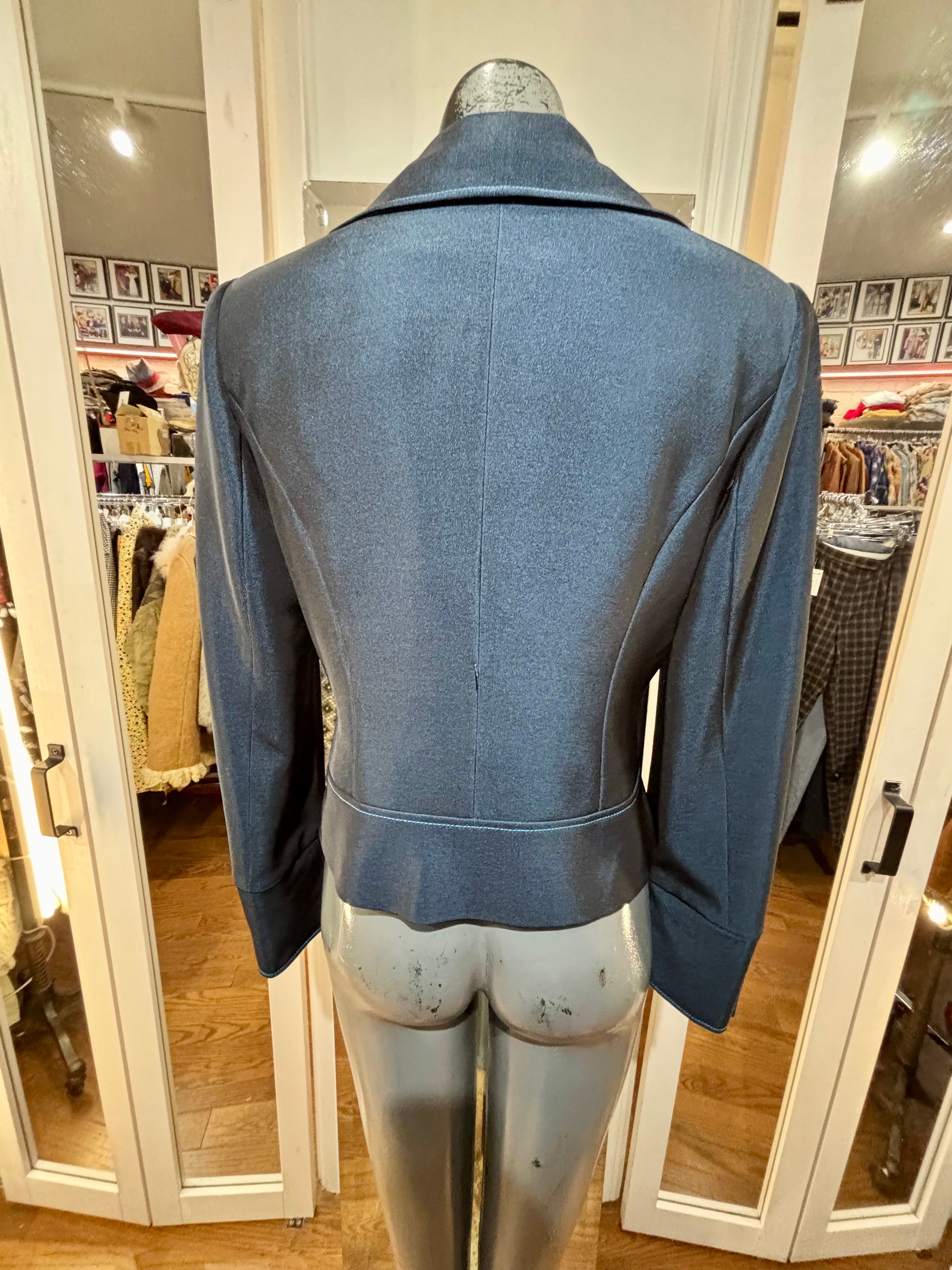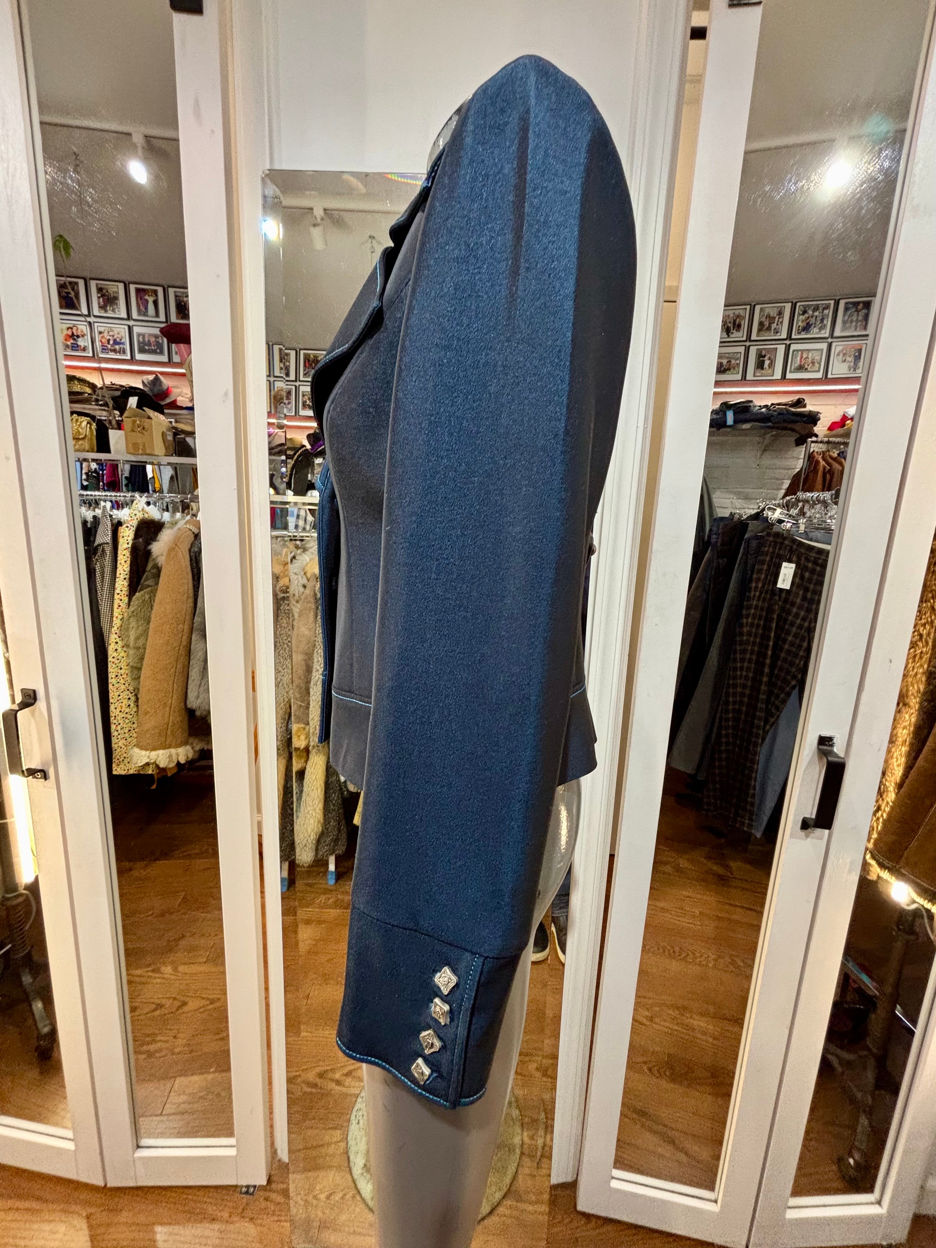 90’s Metallic Blue Crop Dinner Jacket By Kasandra