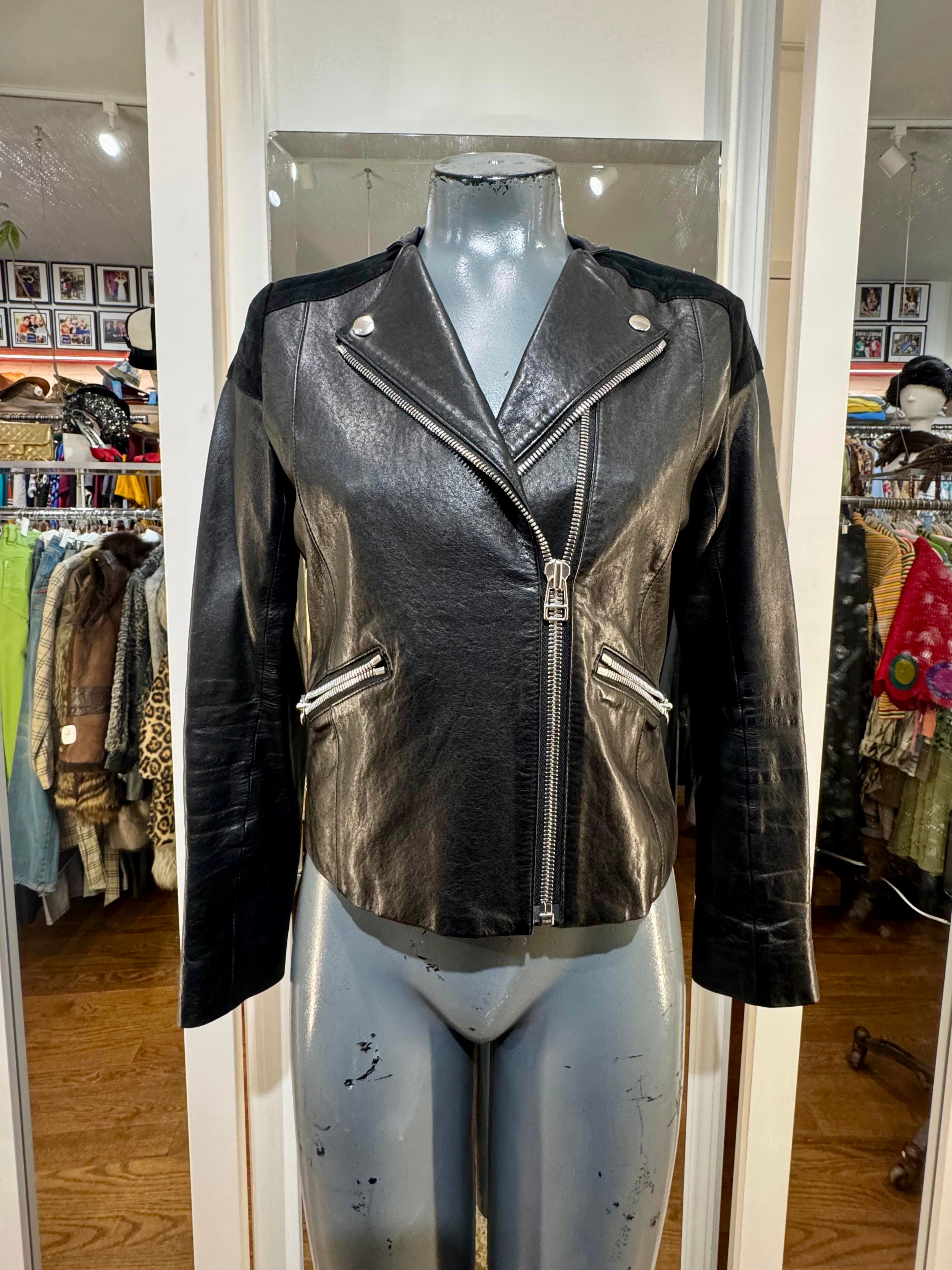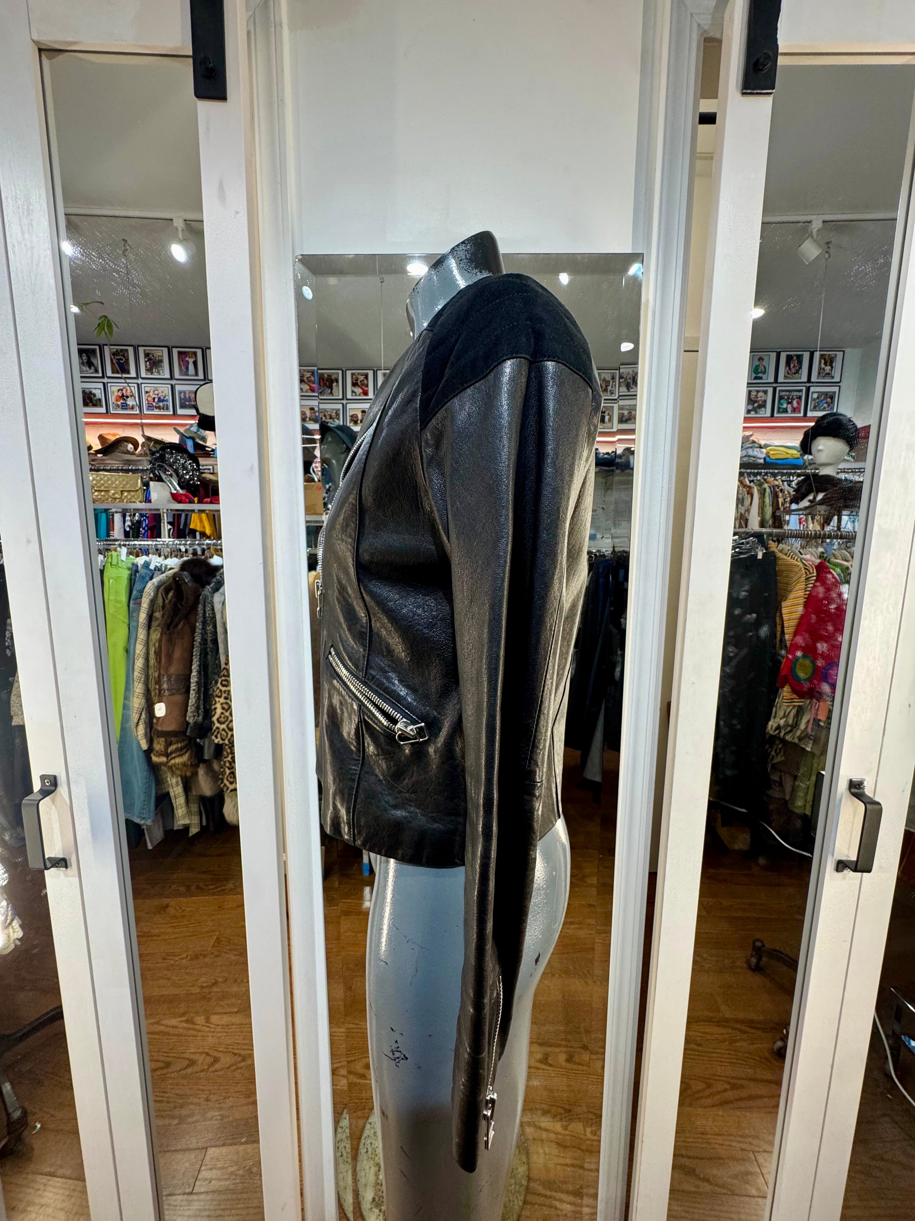 90’s Black Biker Style Jacket By Lavin En Blue