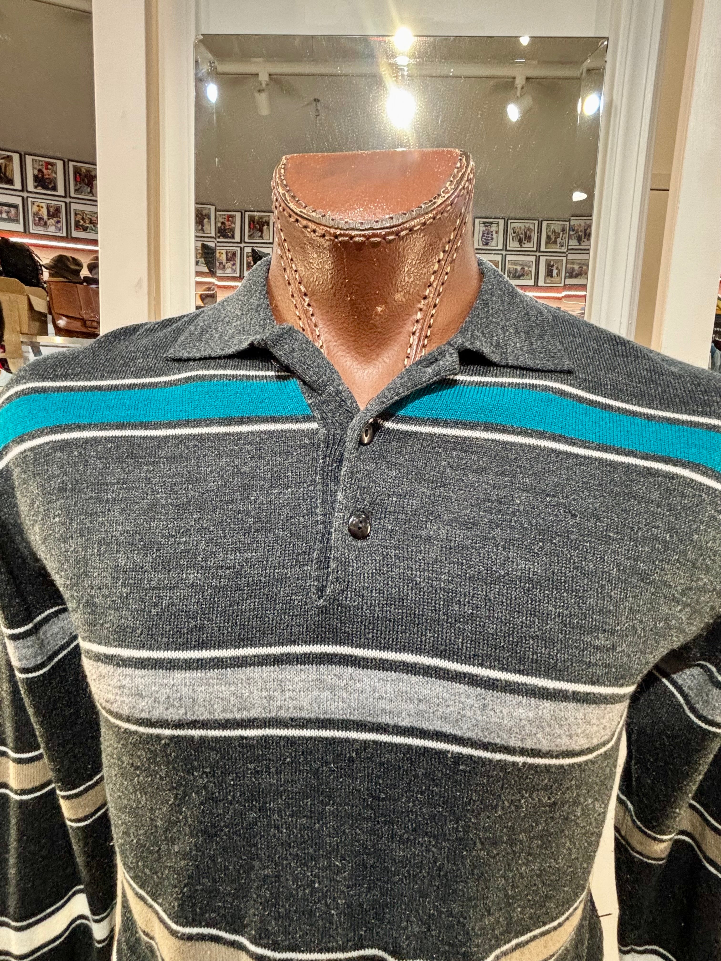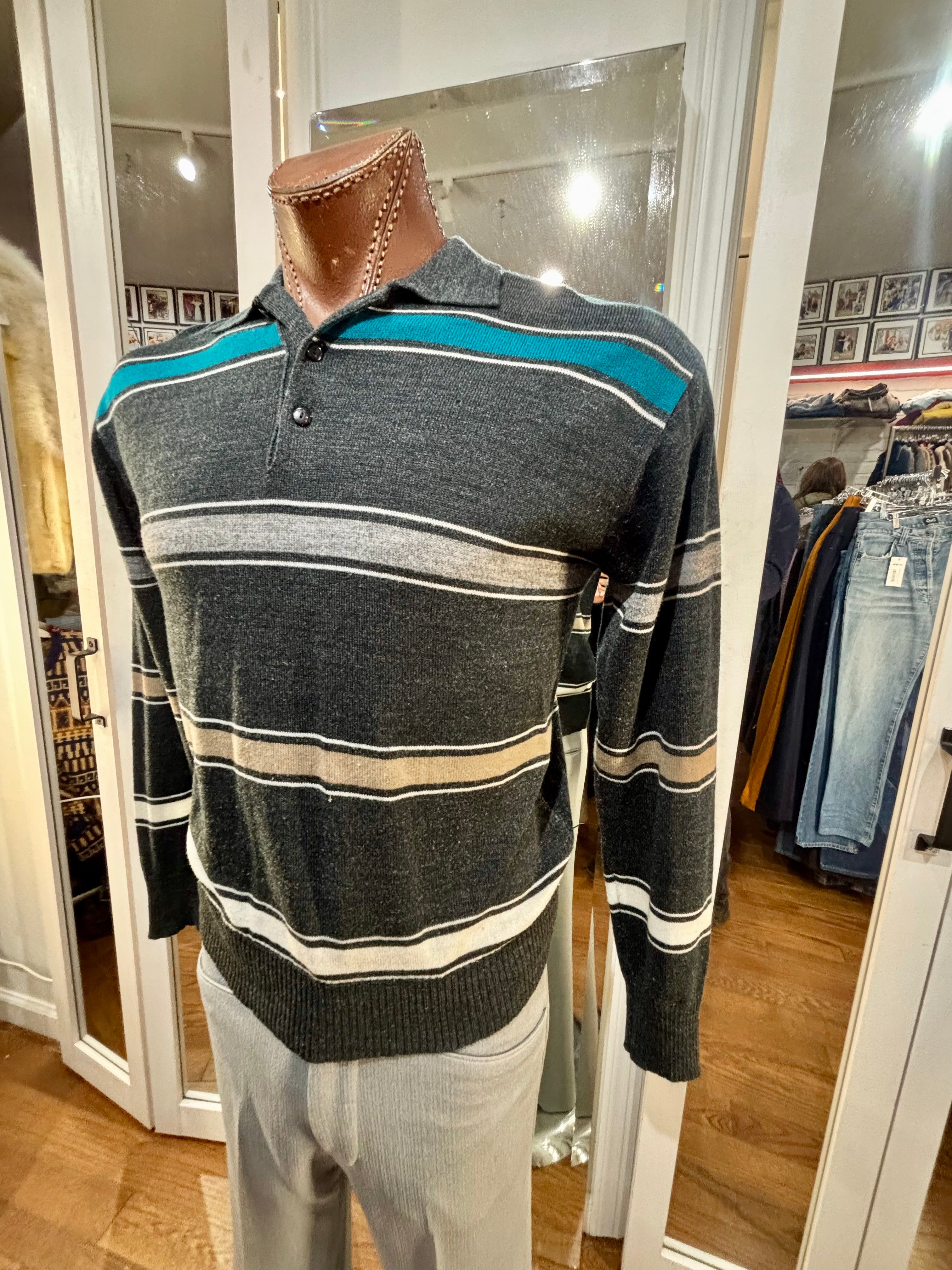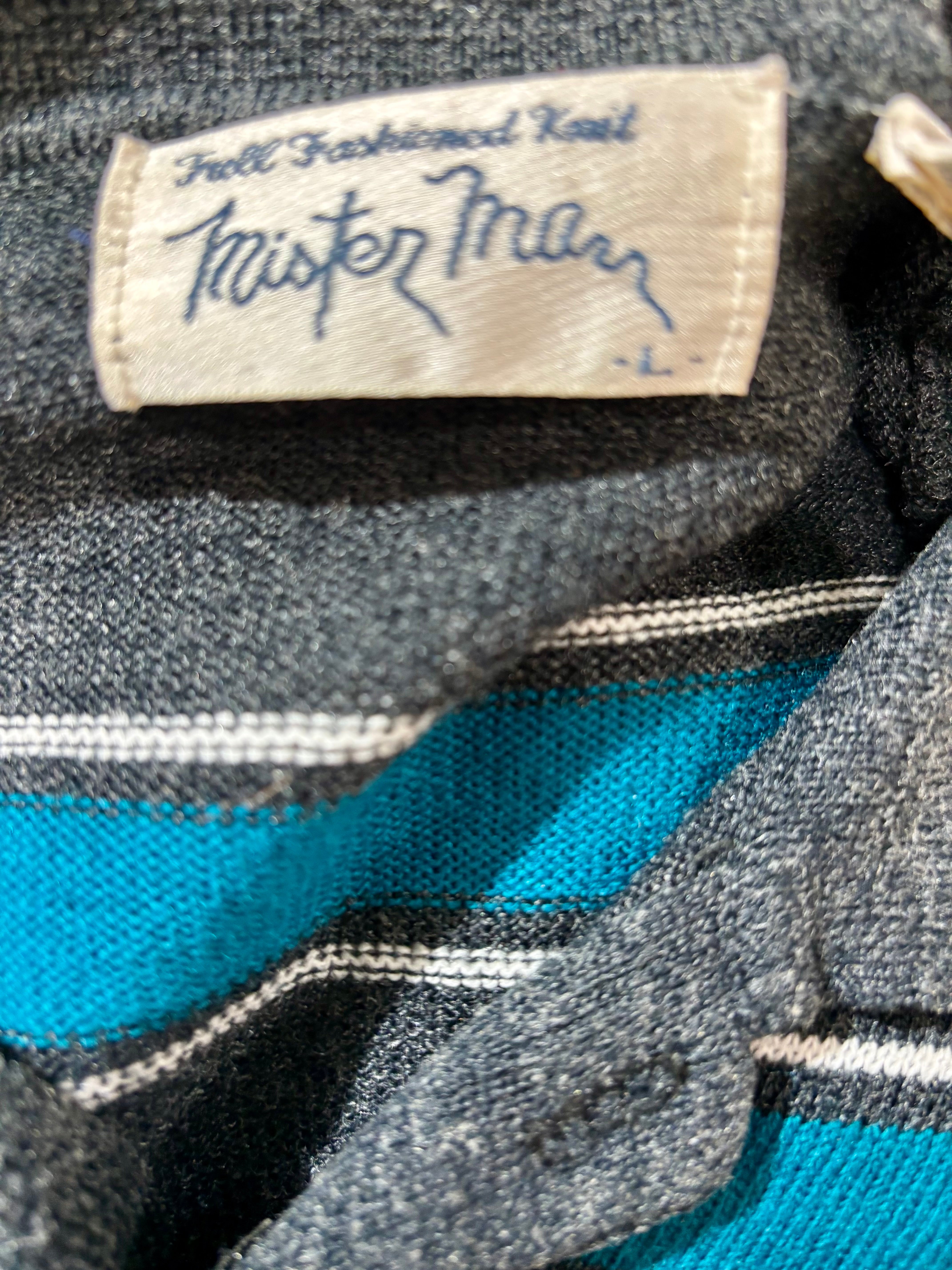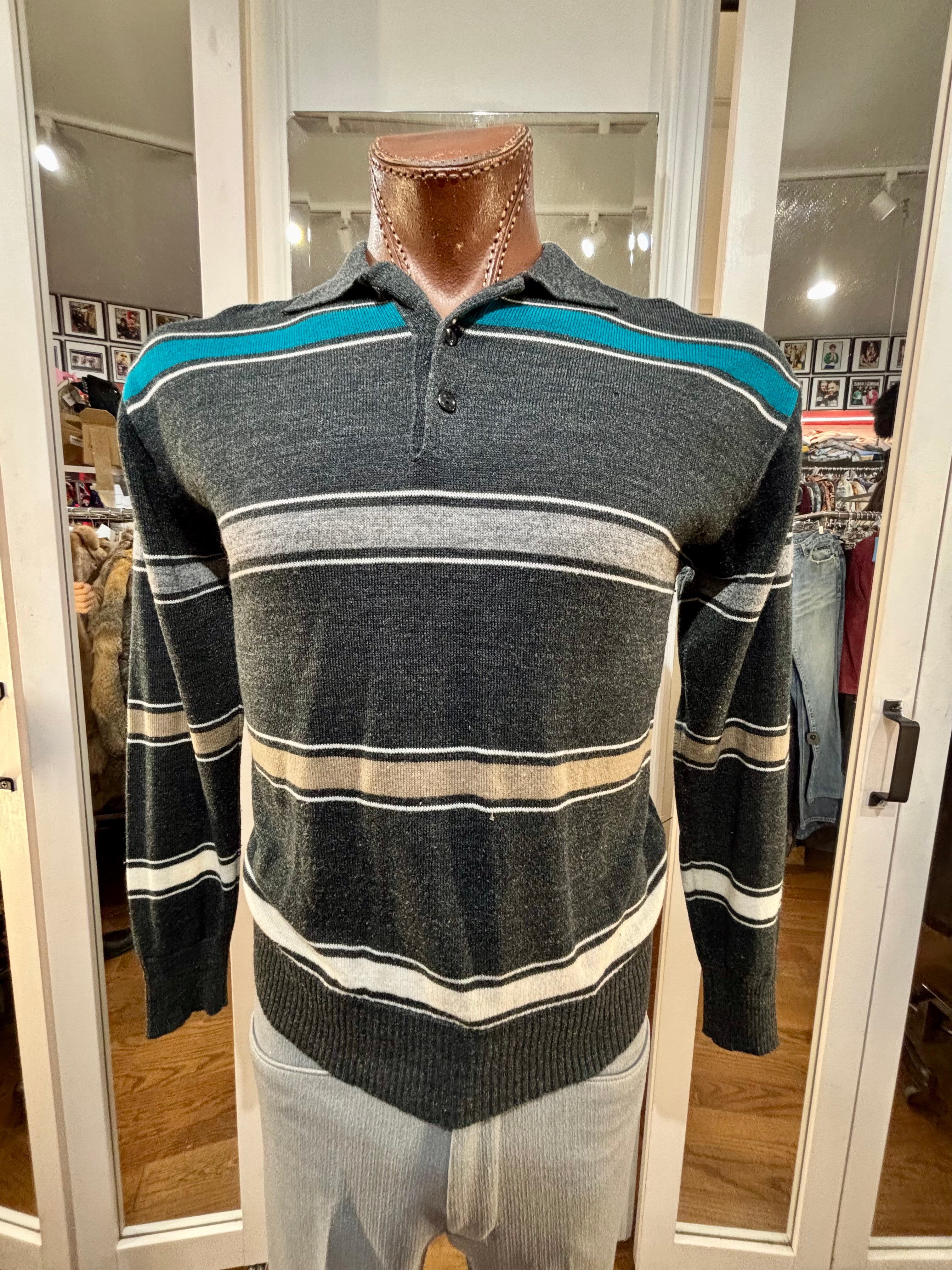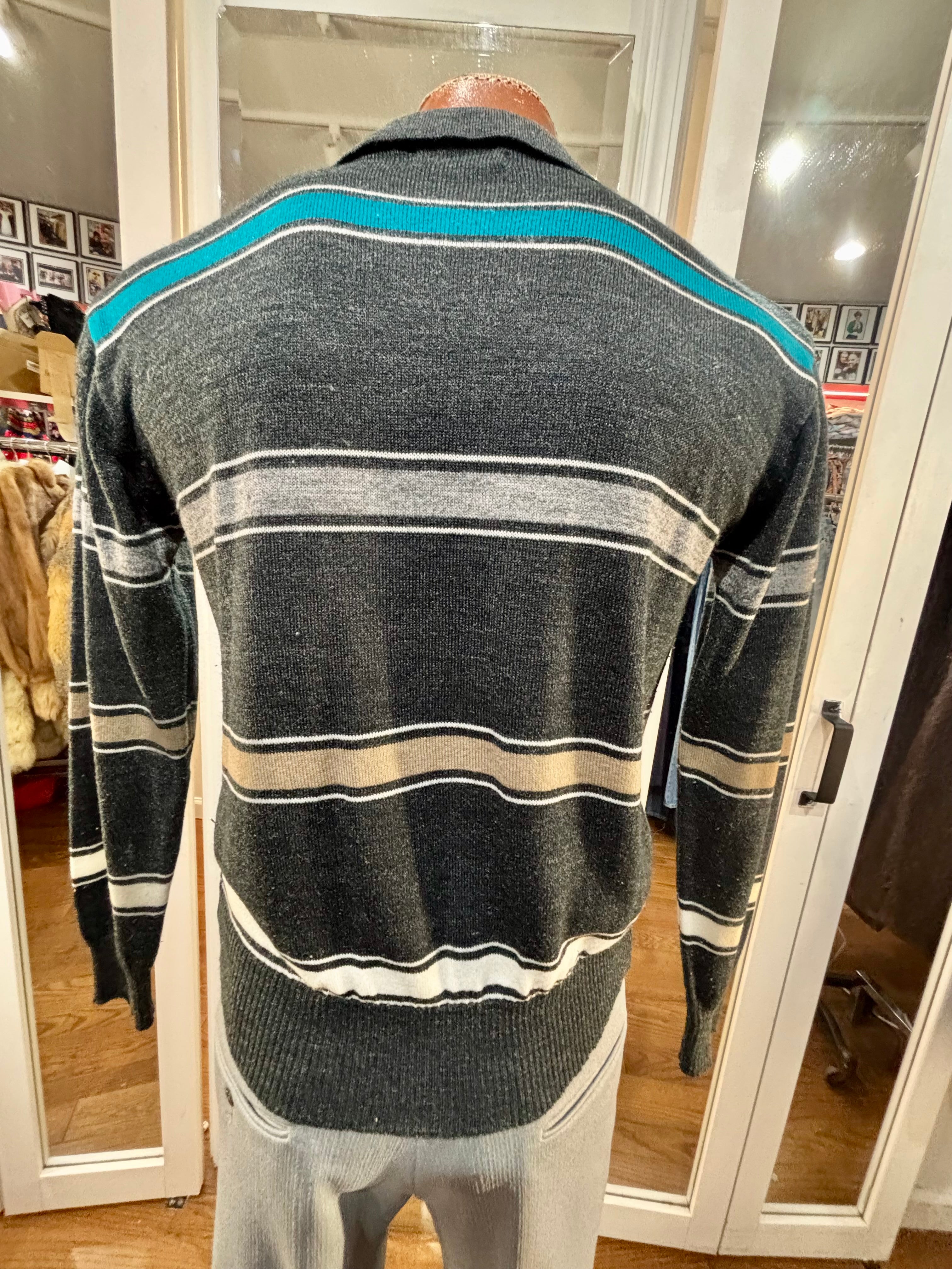 70’s Gray Multicolor Collared Striped Pull By Mister Mann