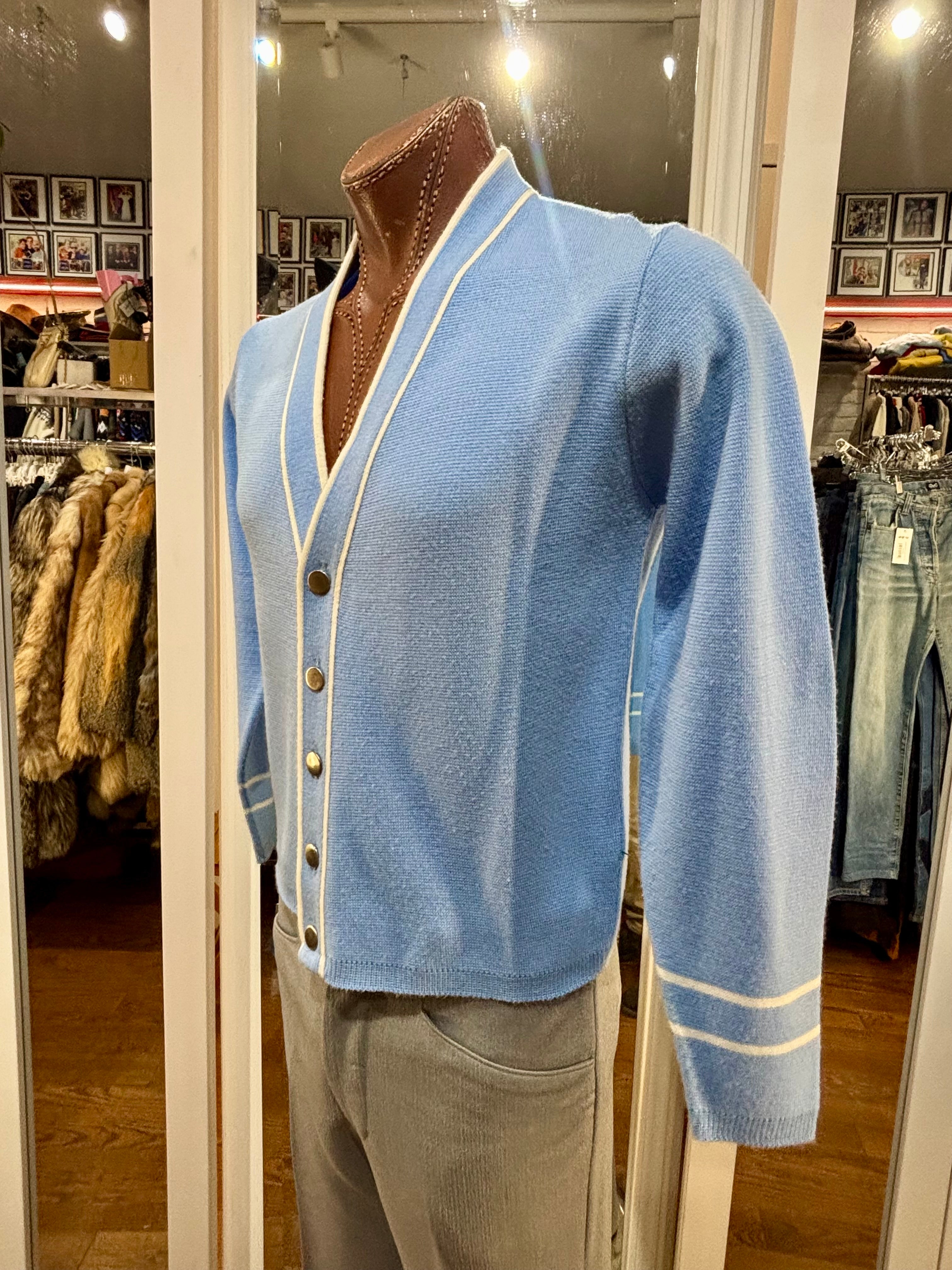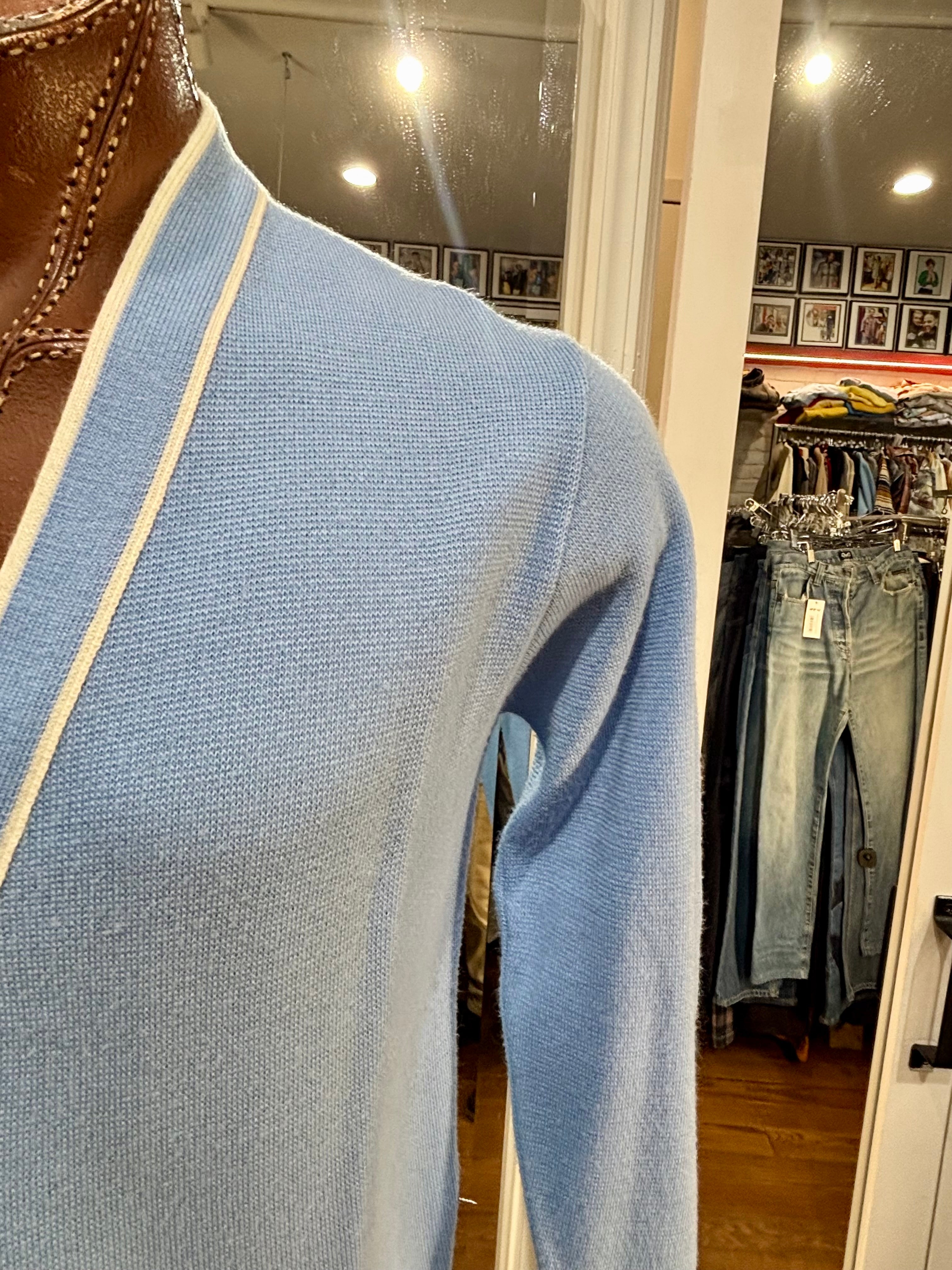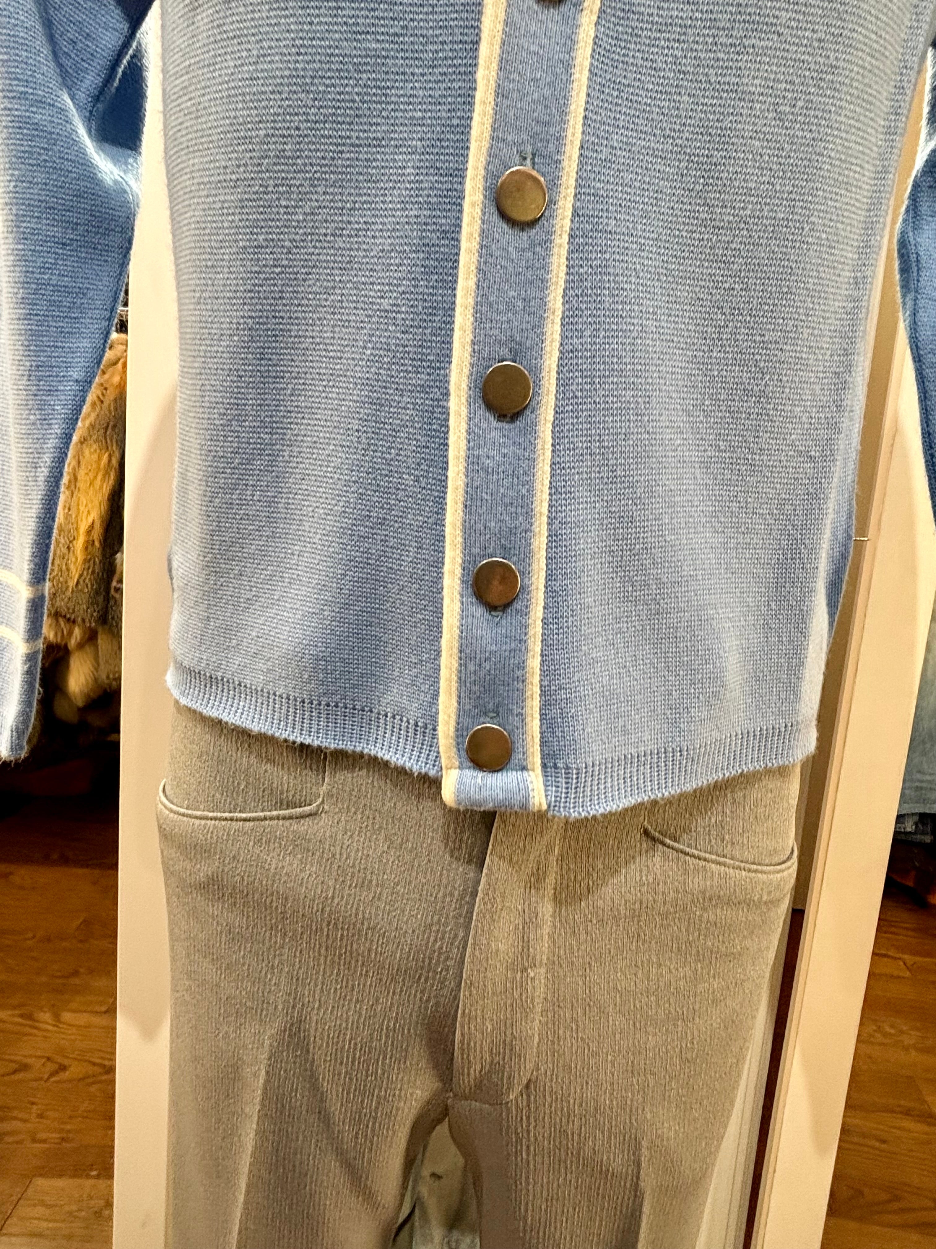 70’s Light Blue With Beige Trim Cardigan By Puritan