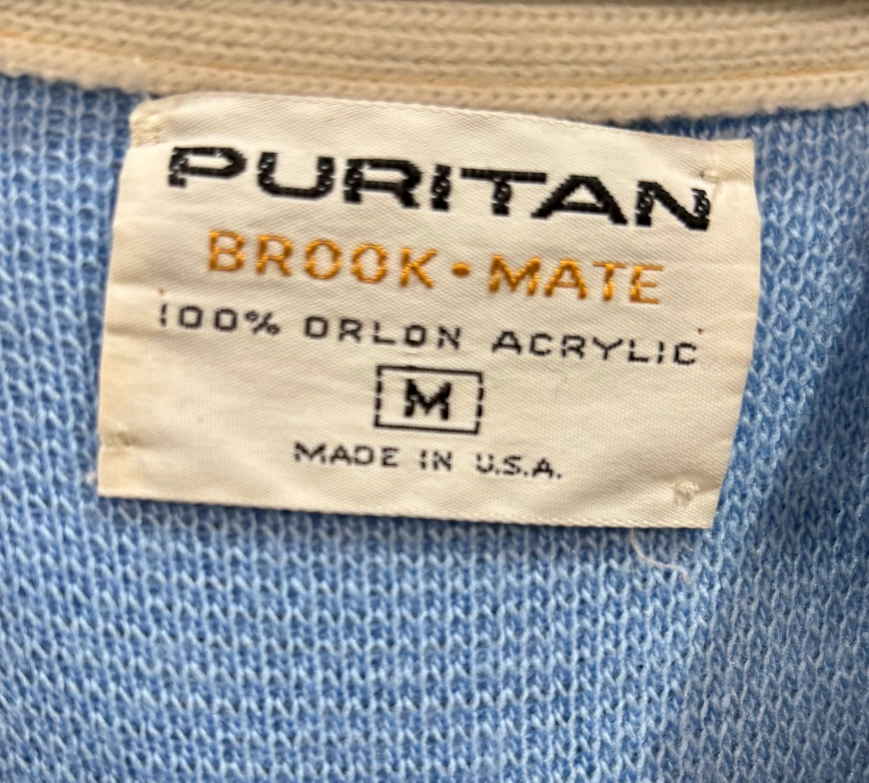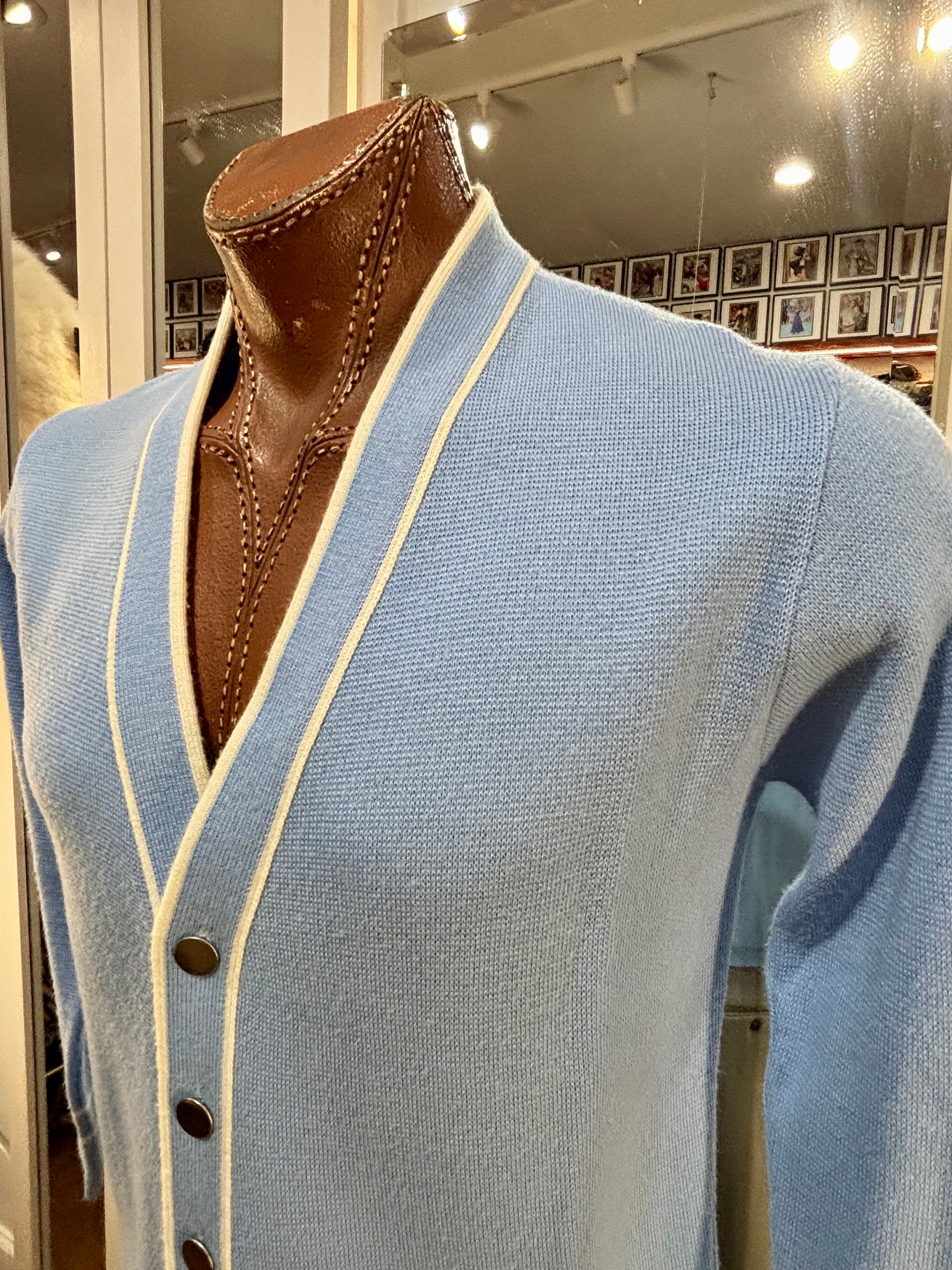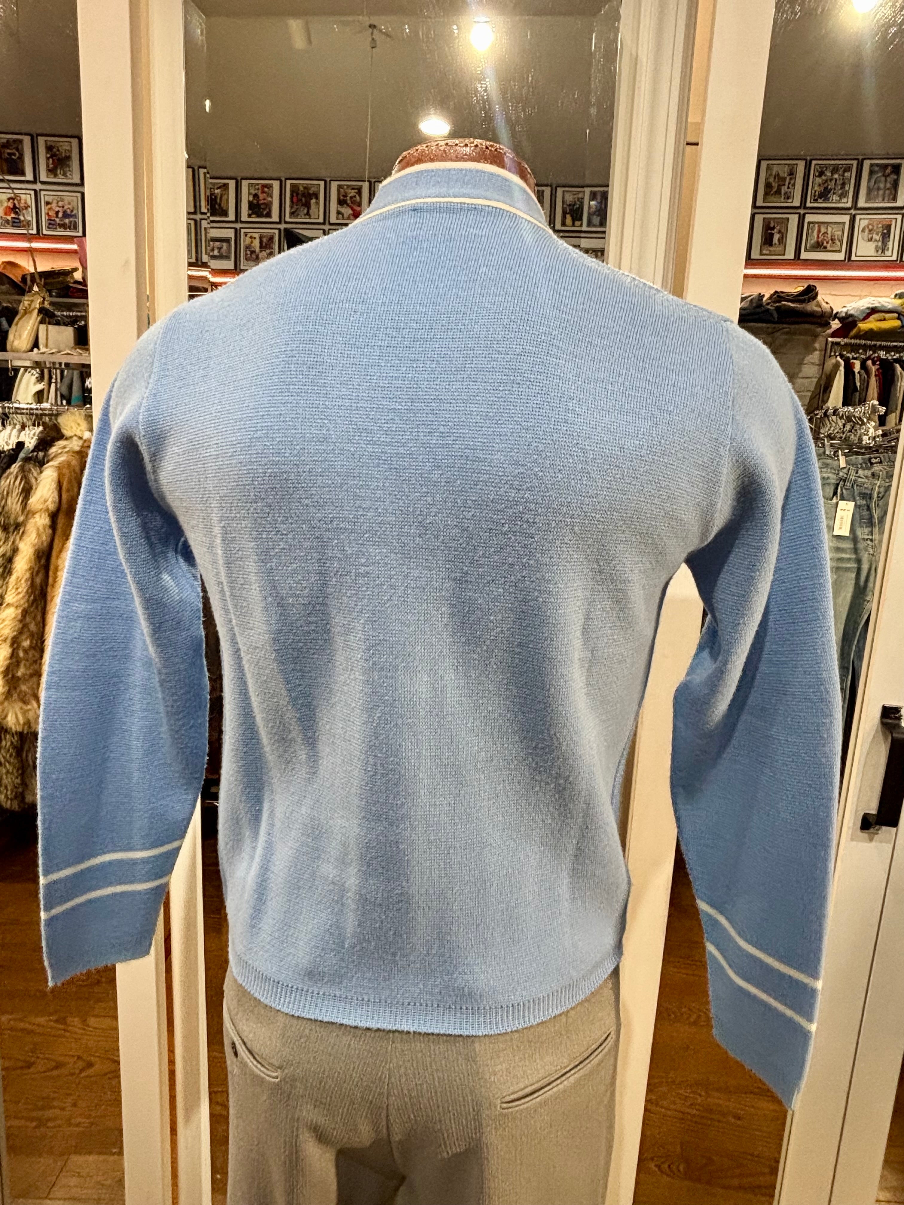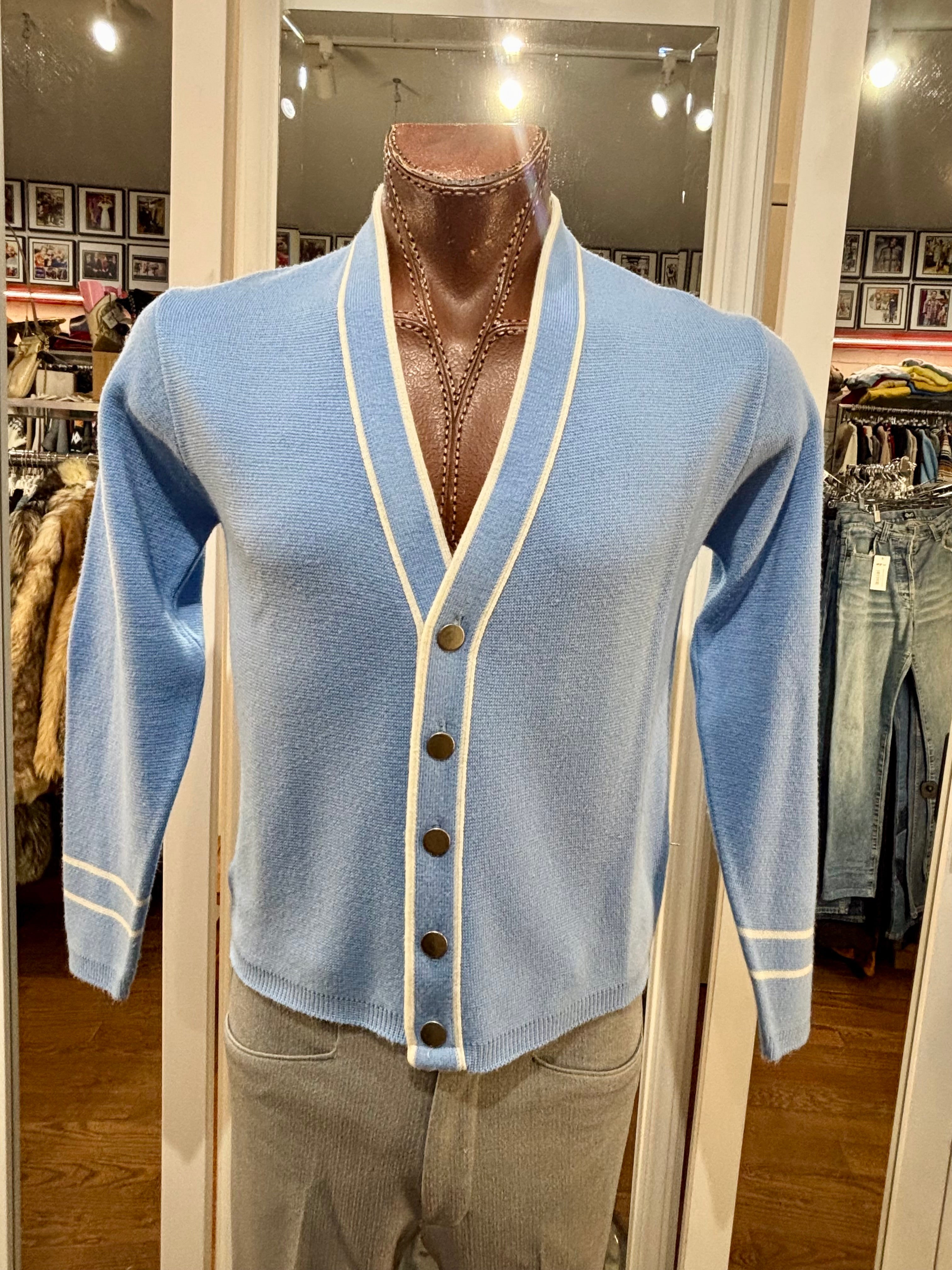 70’s Light Blue With Beige Trim Cardigan By Puritan