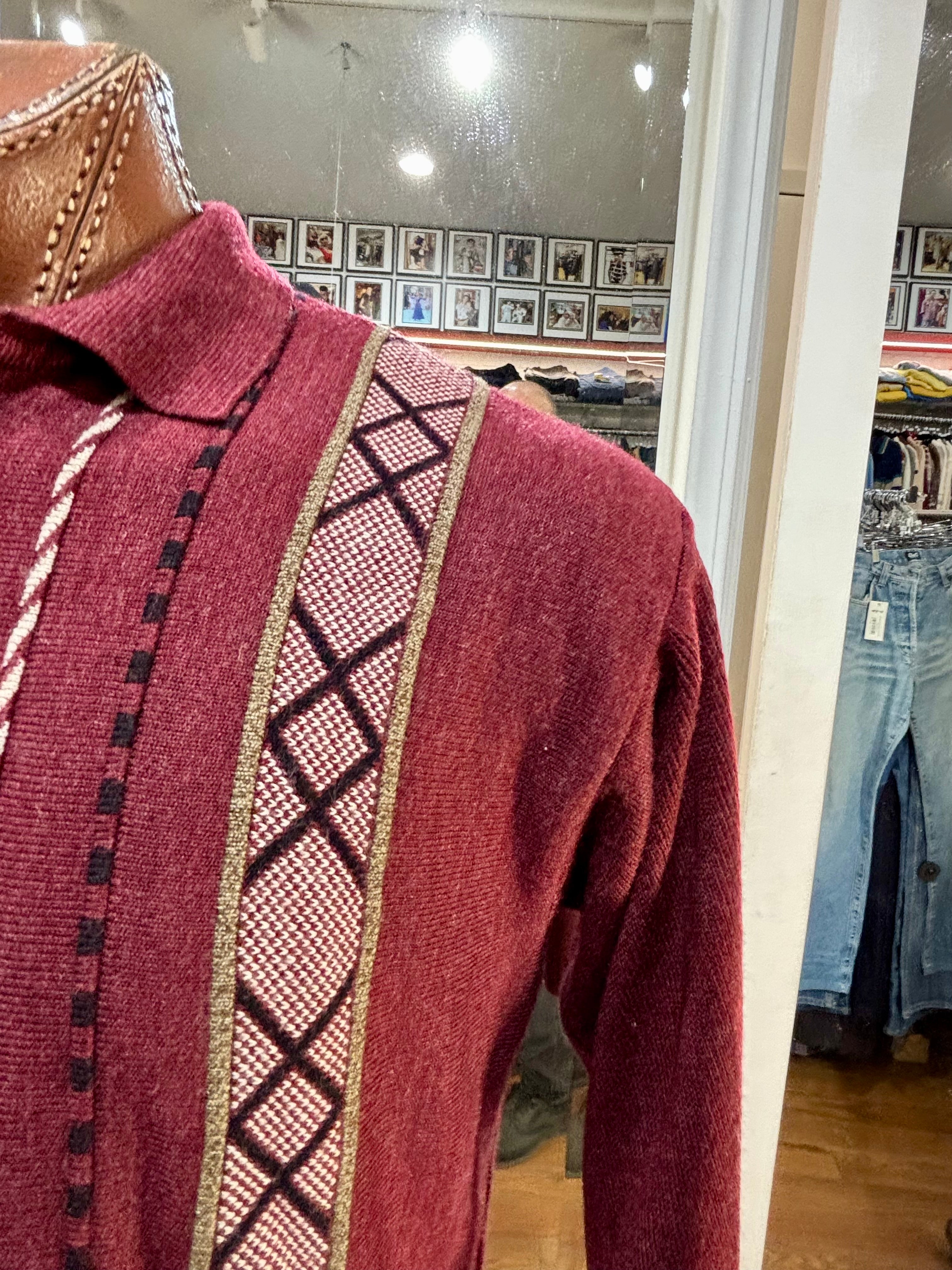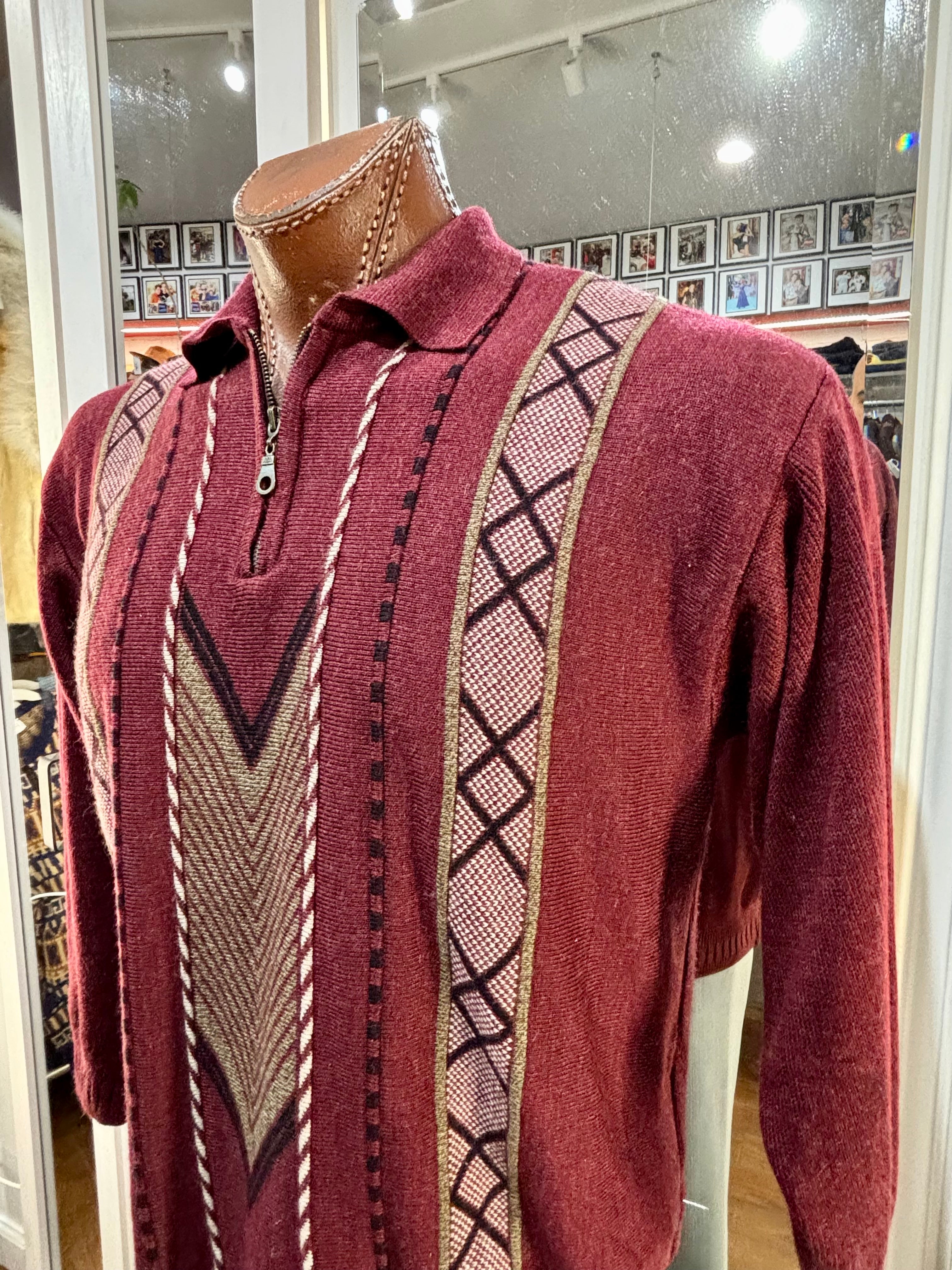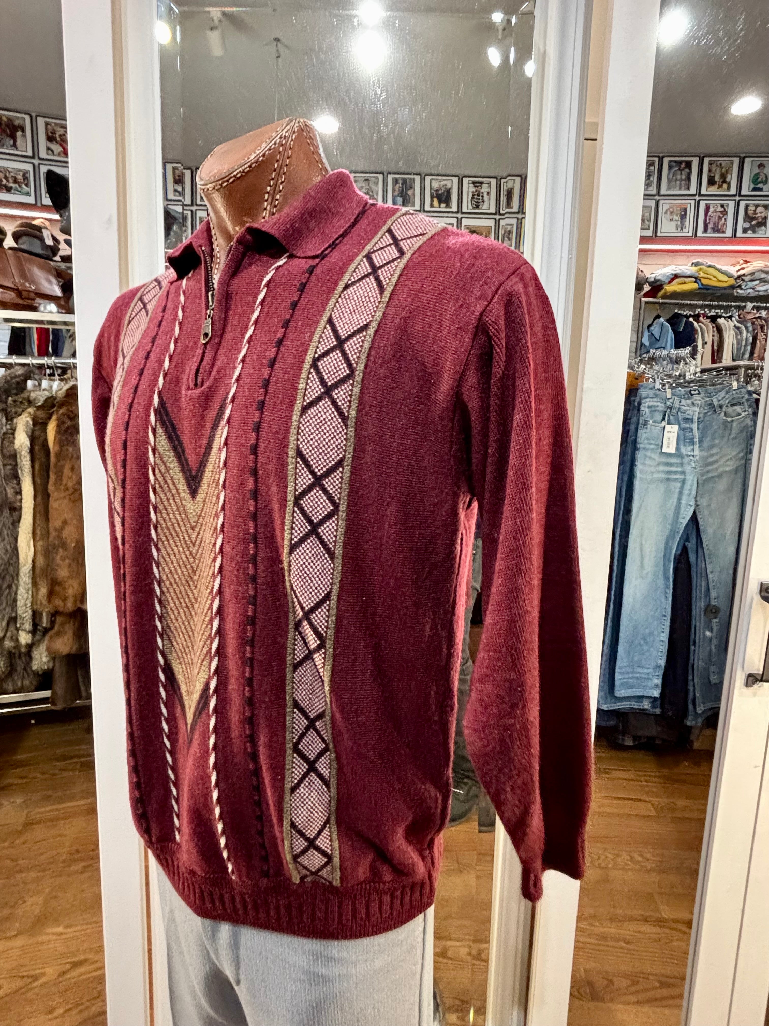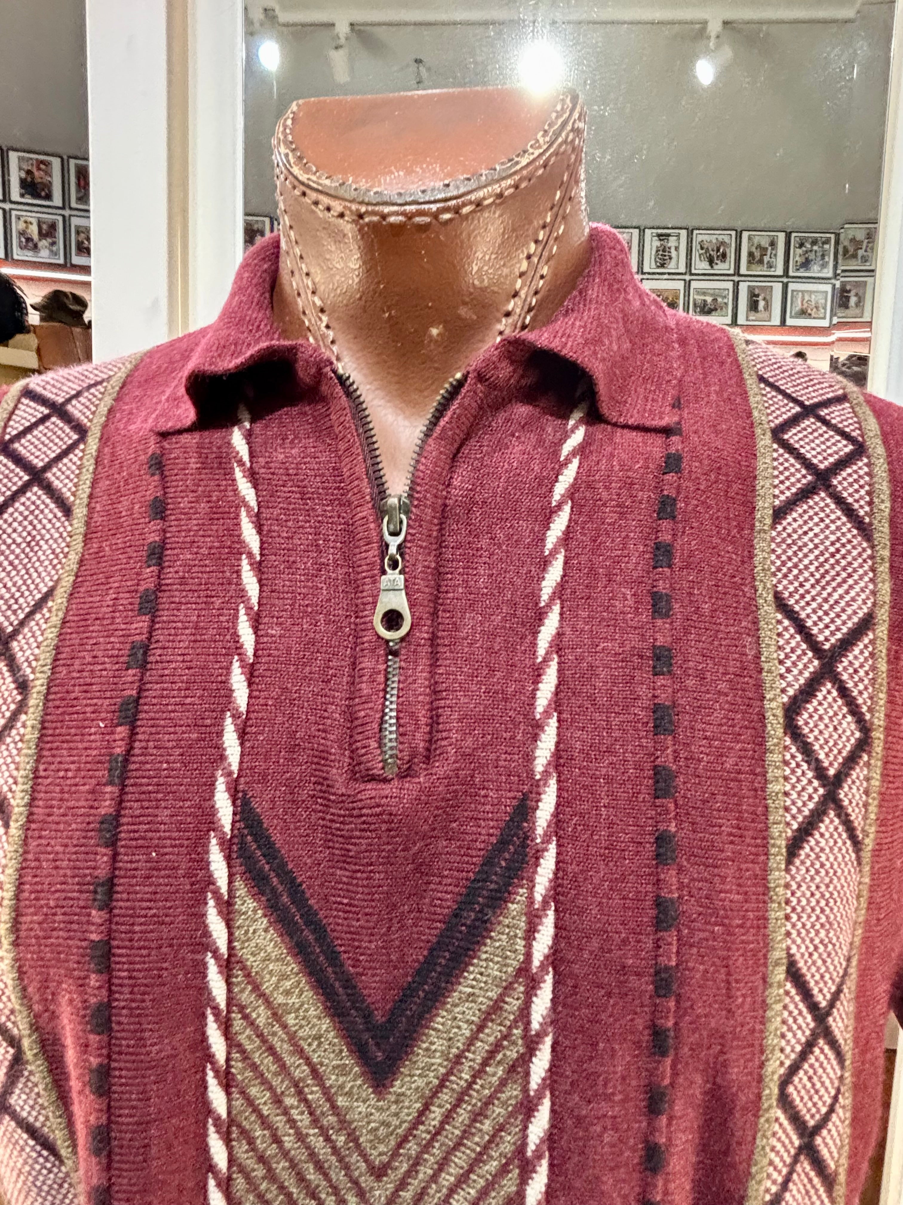 90’s Going 60’s Burgundy Zip Collared Pull With Panels Detailing By Soylu