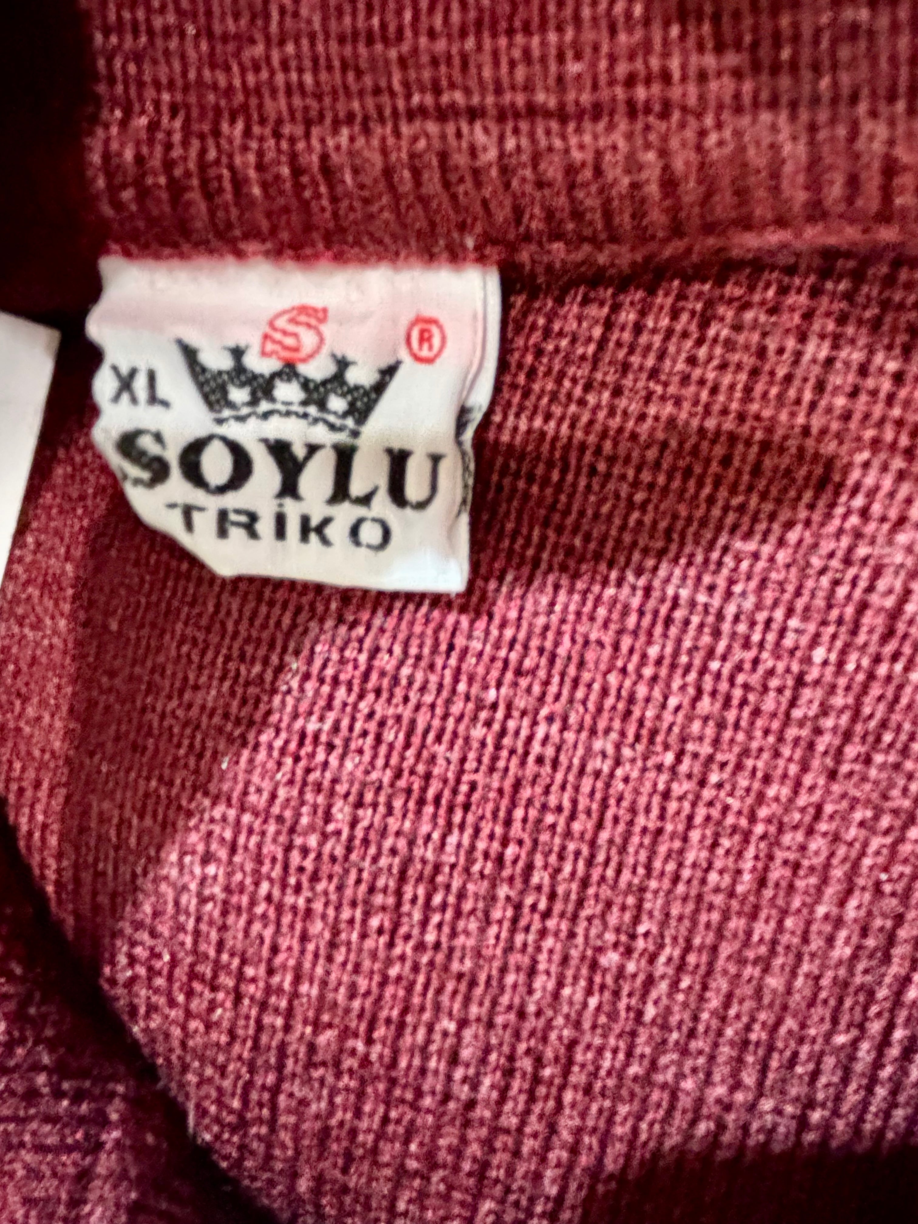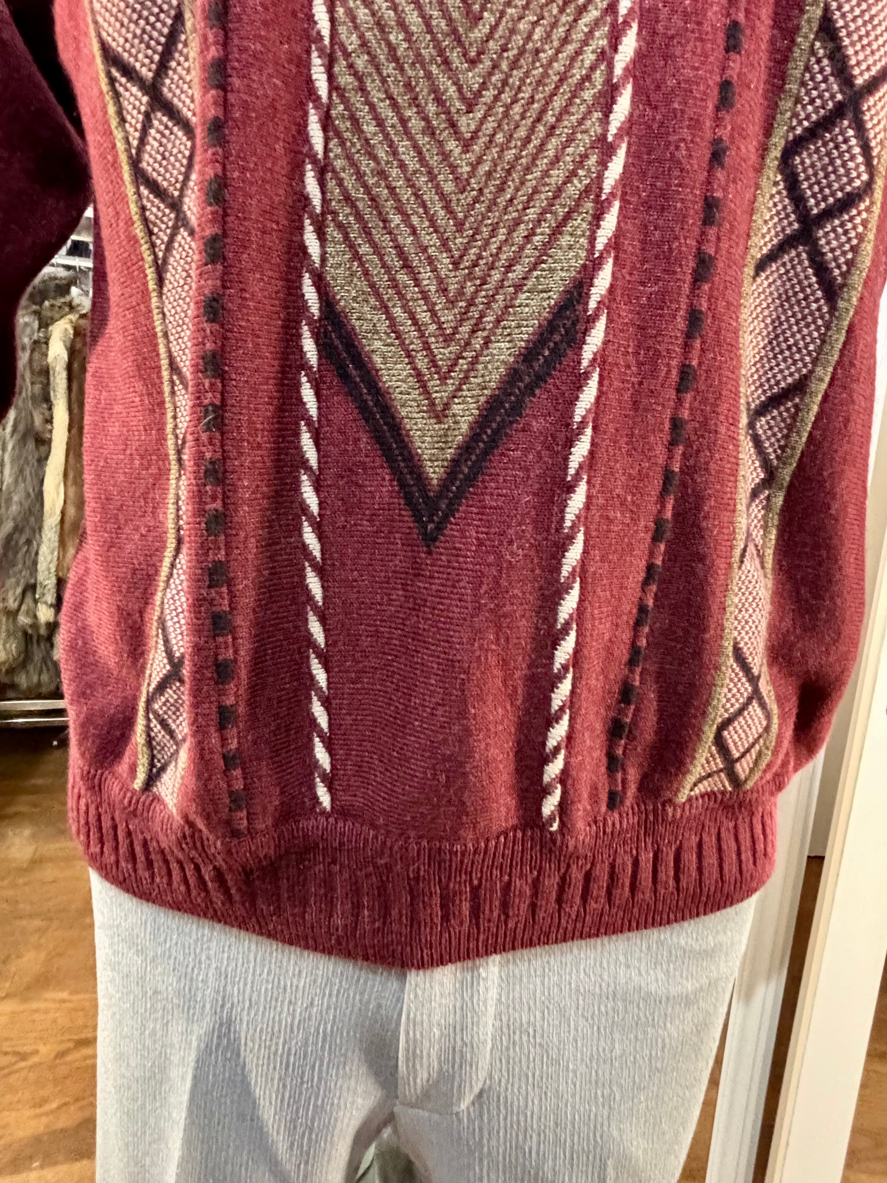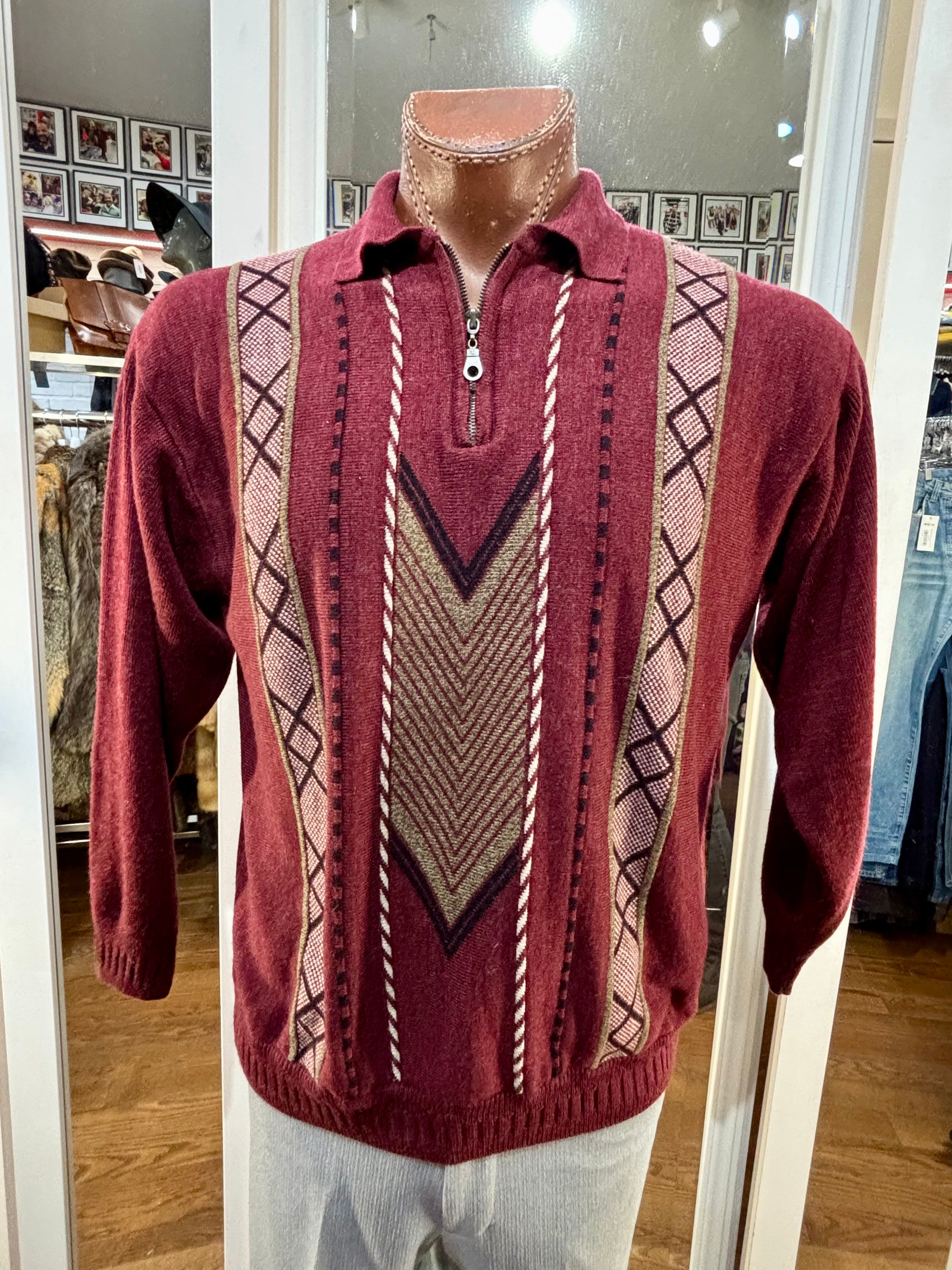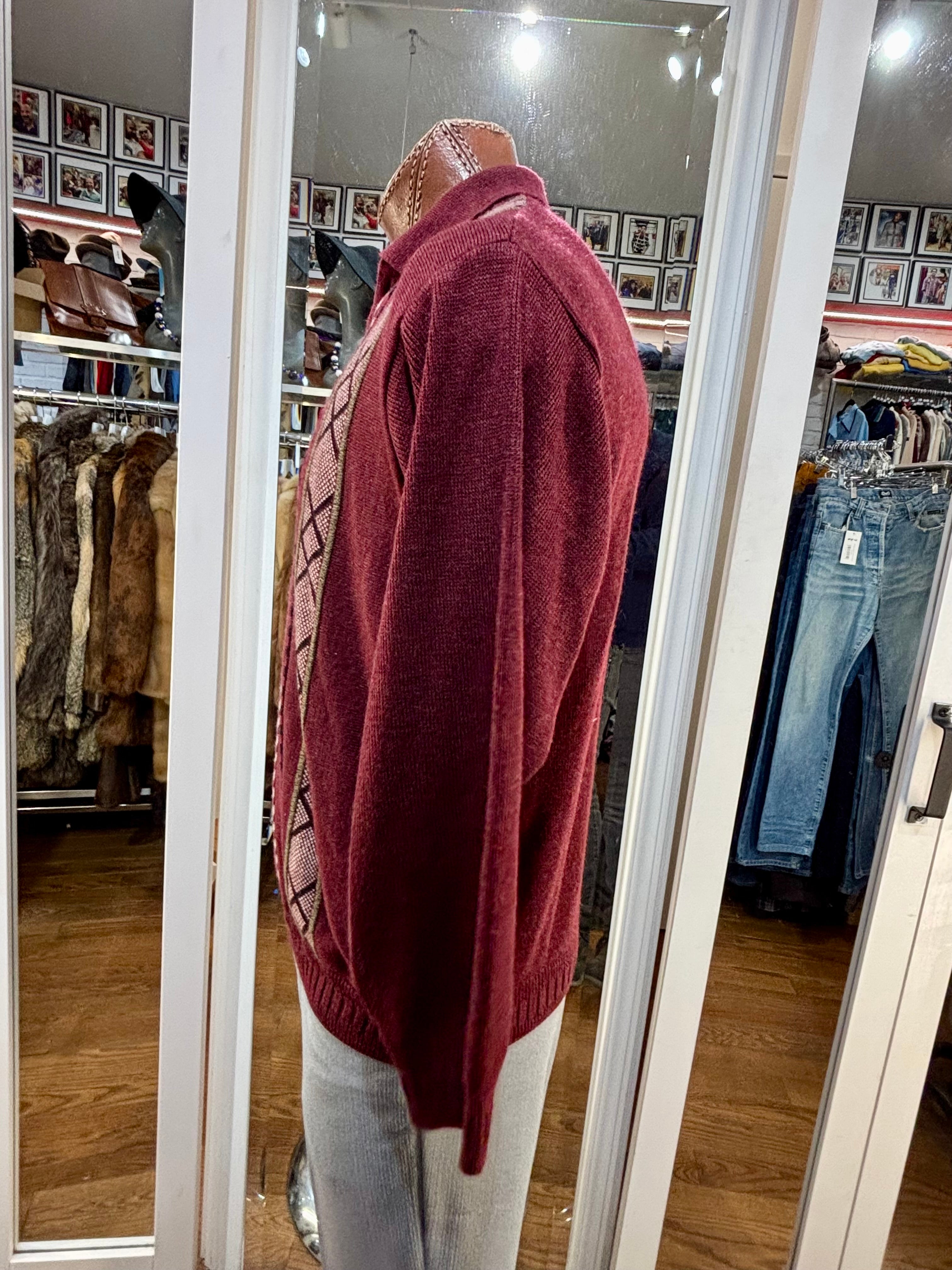 90’s Going 60’s Burgundy Zip Collared Pull With Panels Detailing By Soylu