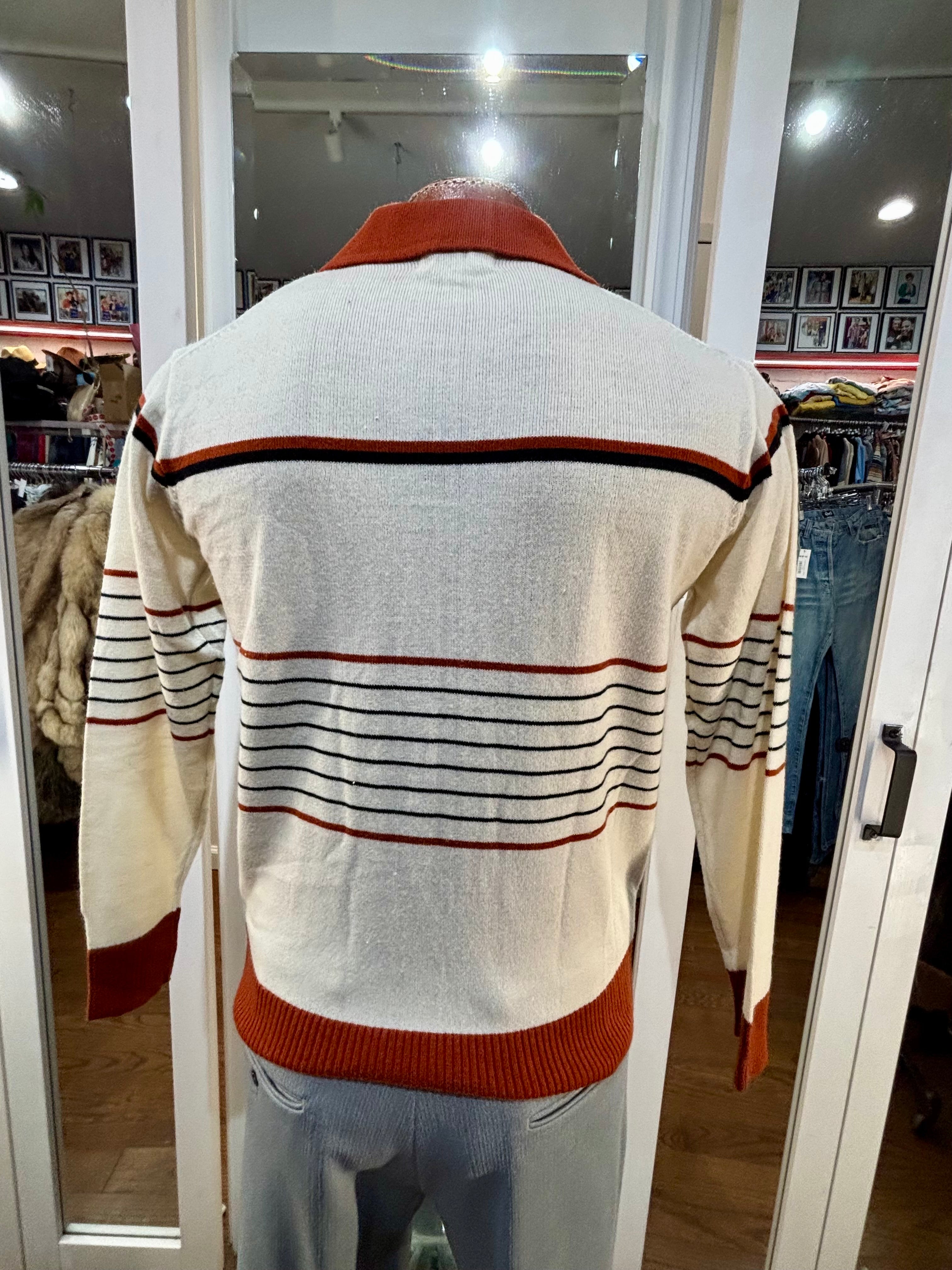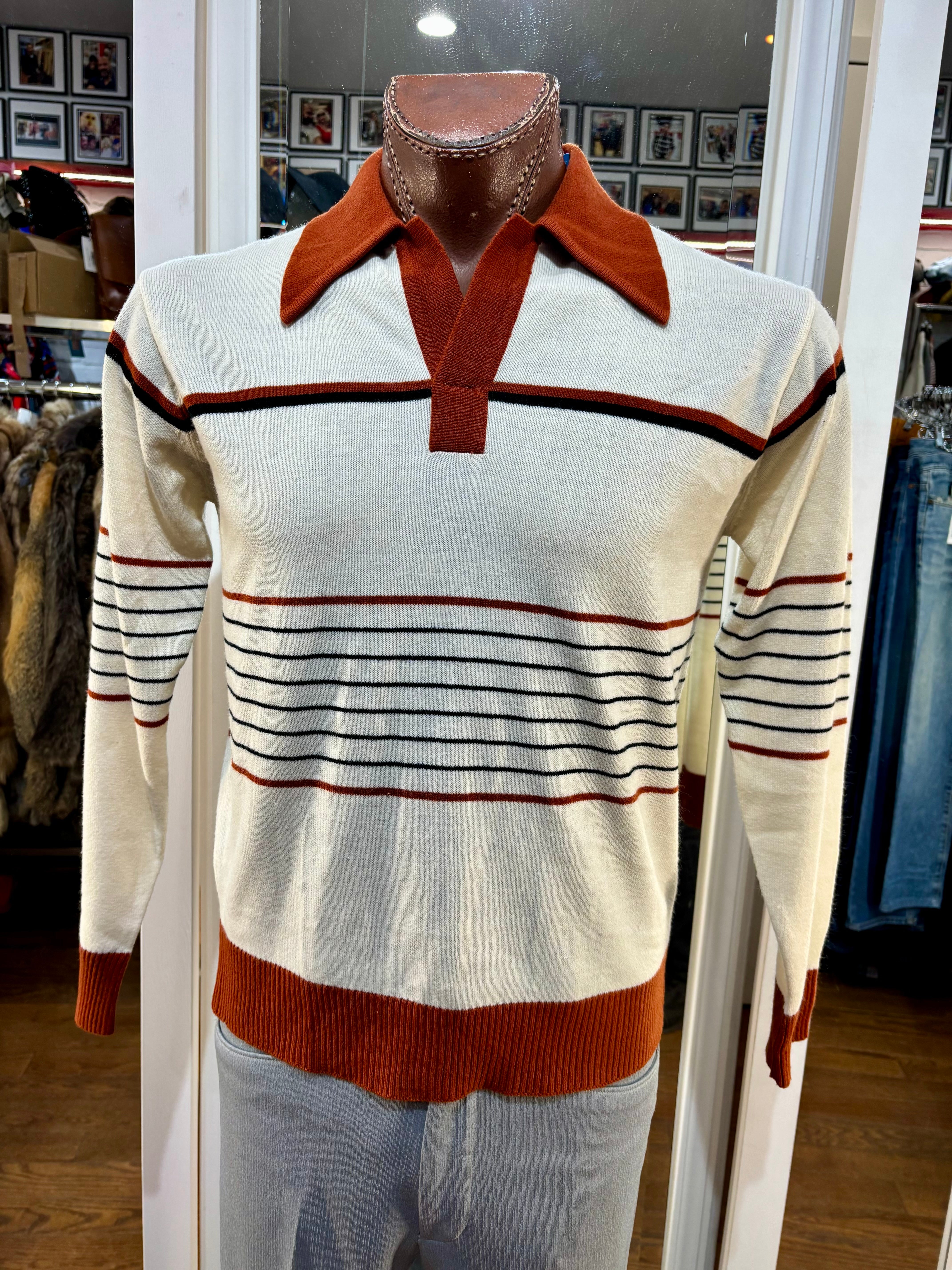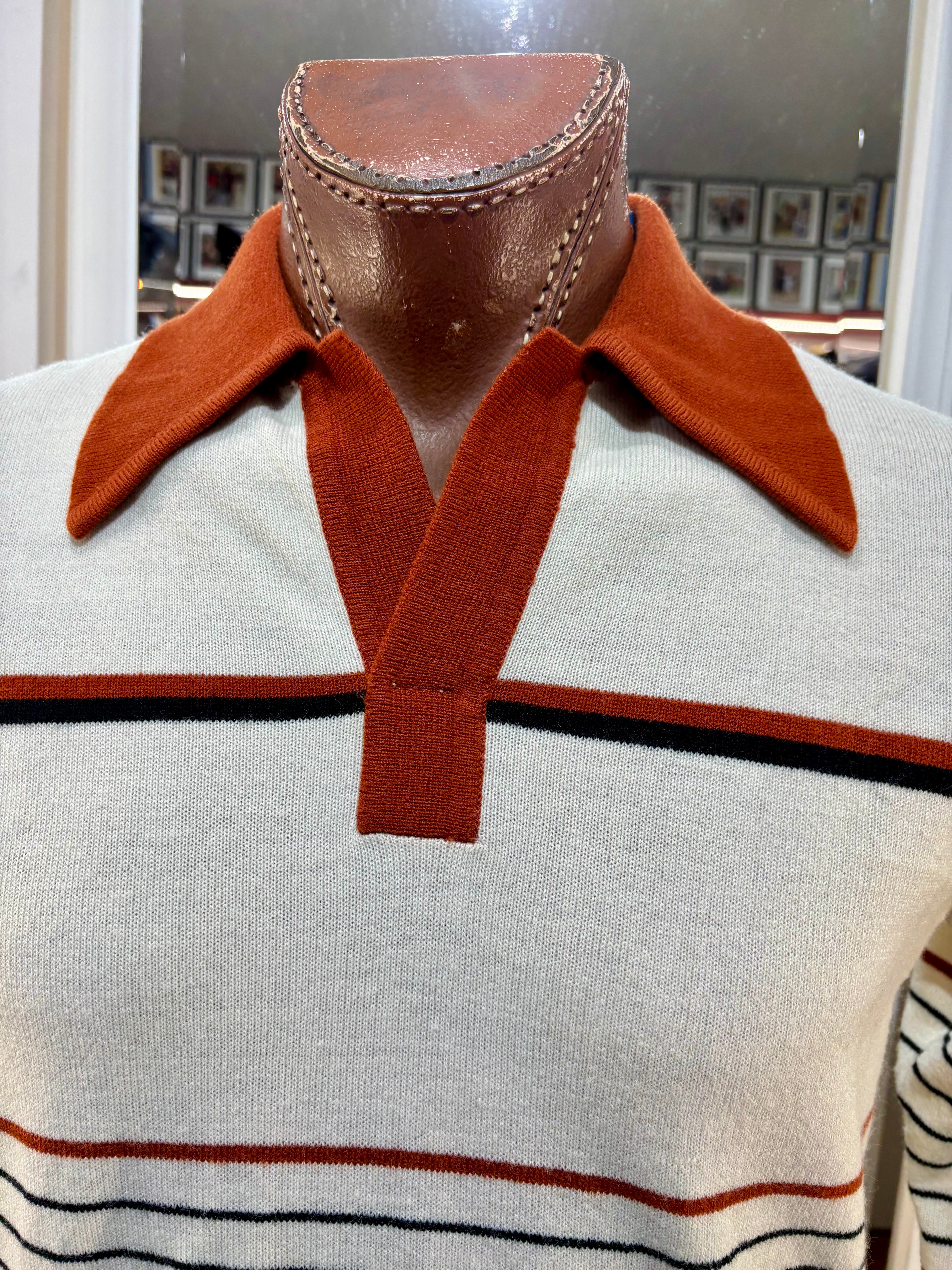 70’s Beige And Caramel Collared Striped Pull By Mister Mann