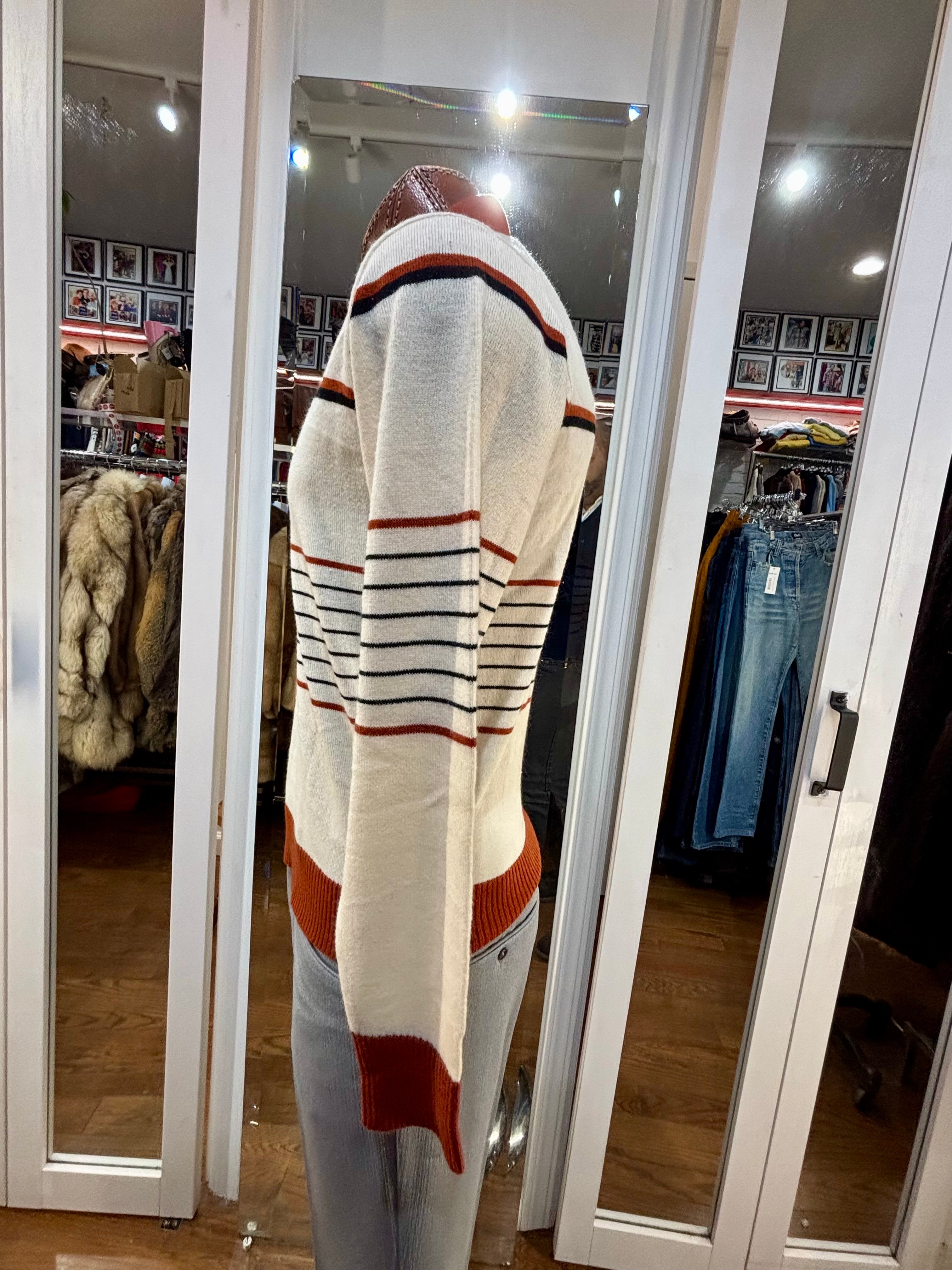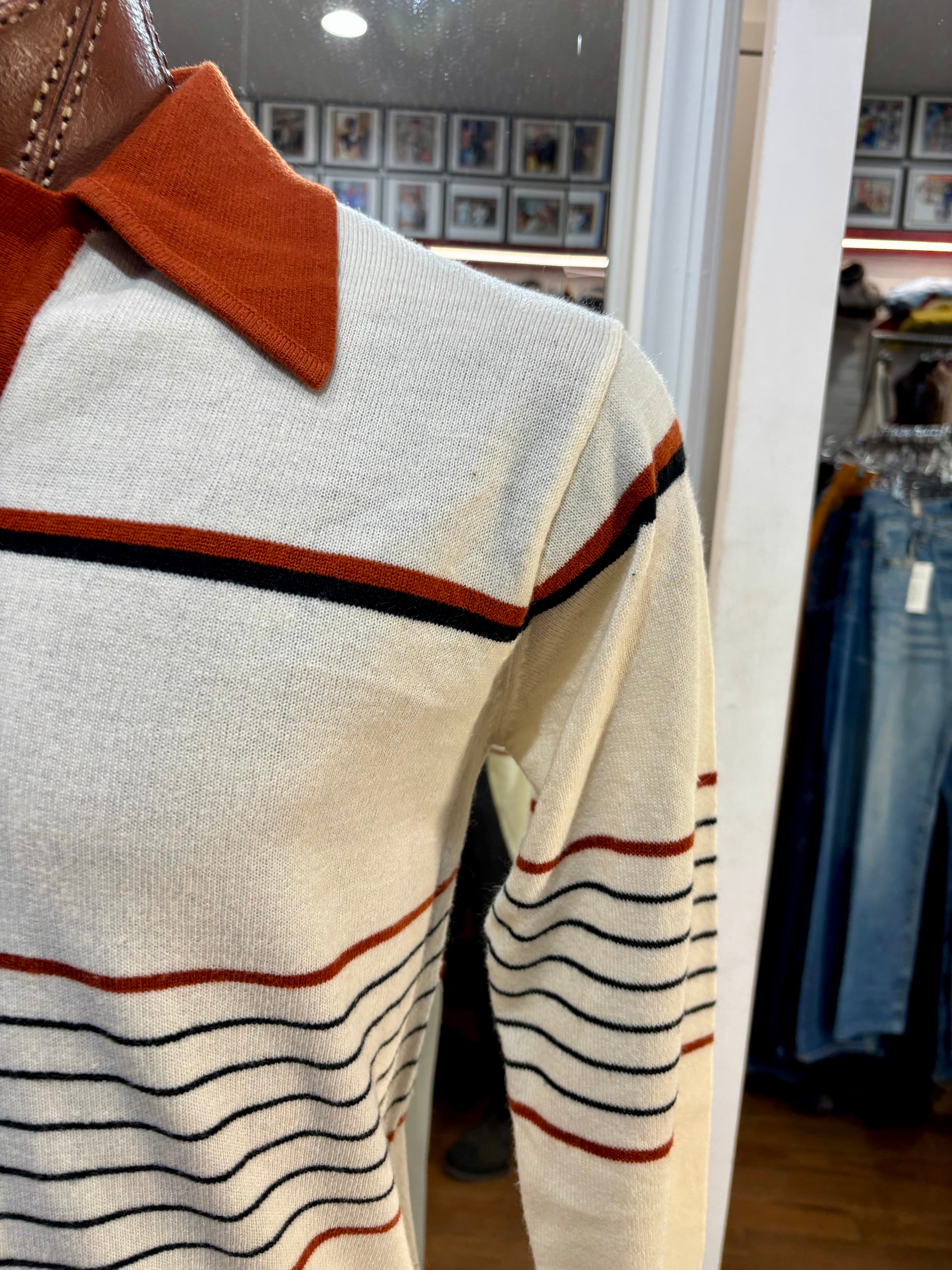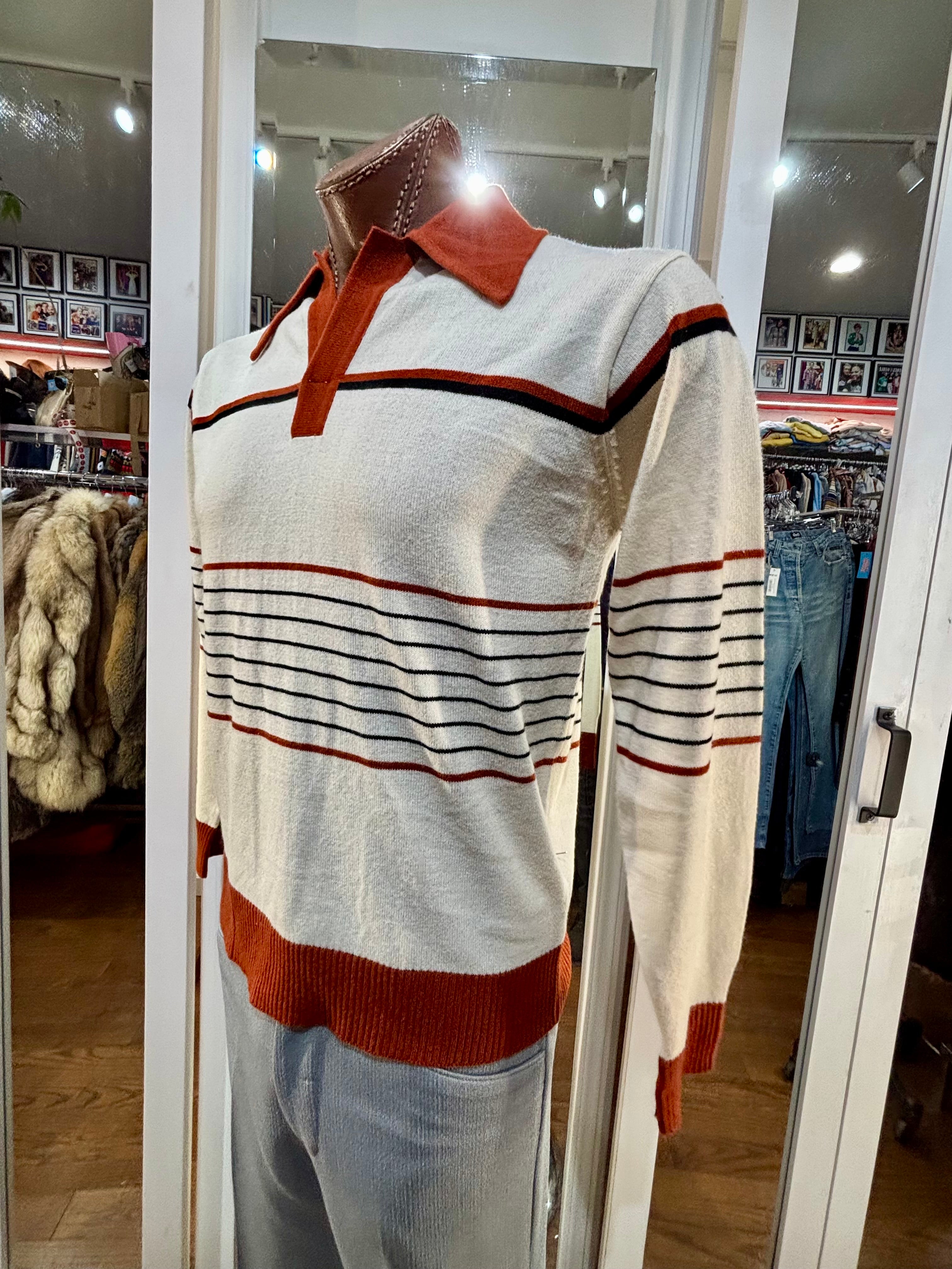 70’s Beige And Caramel Collared Striped Pull By Mister Mann