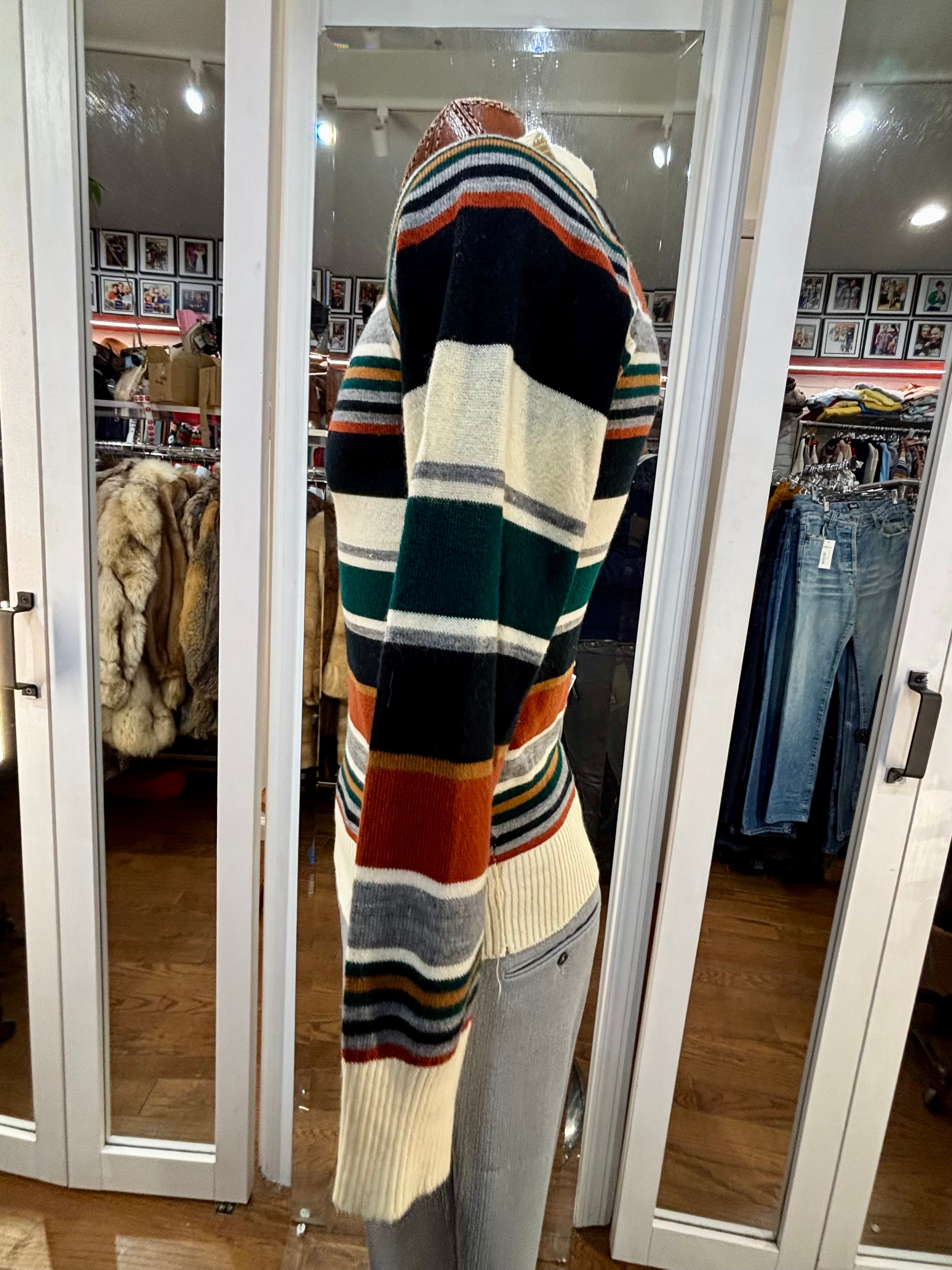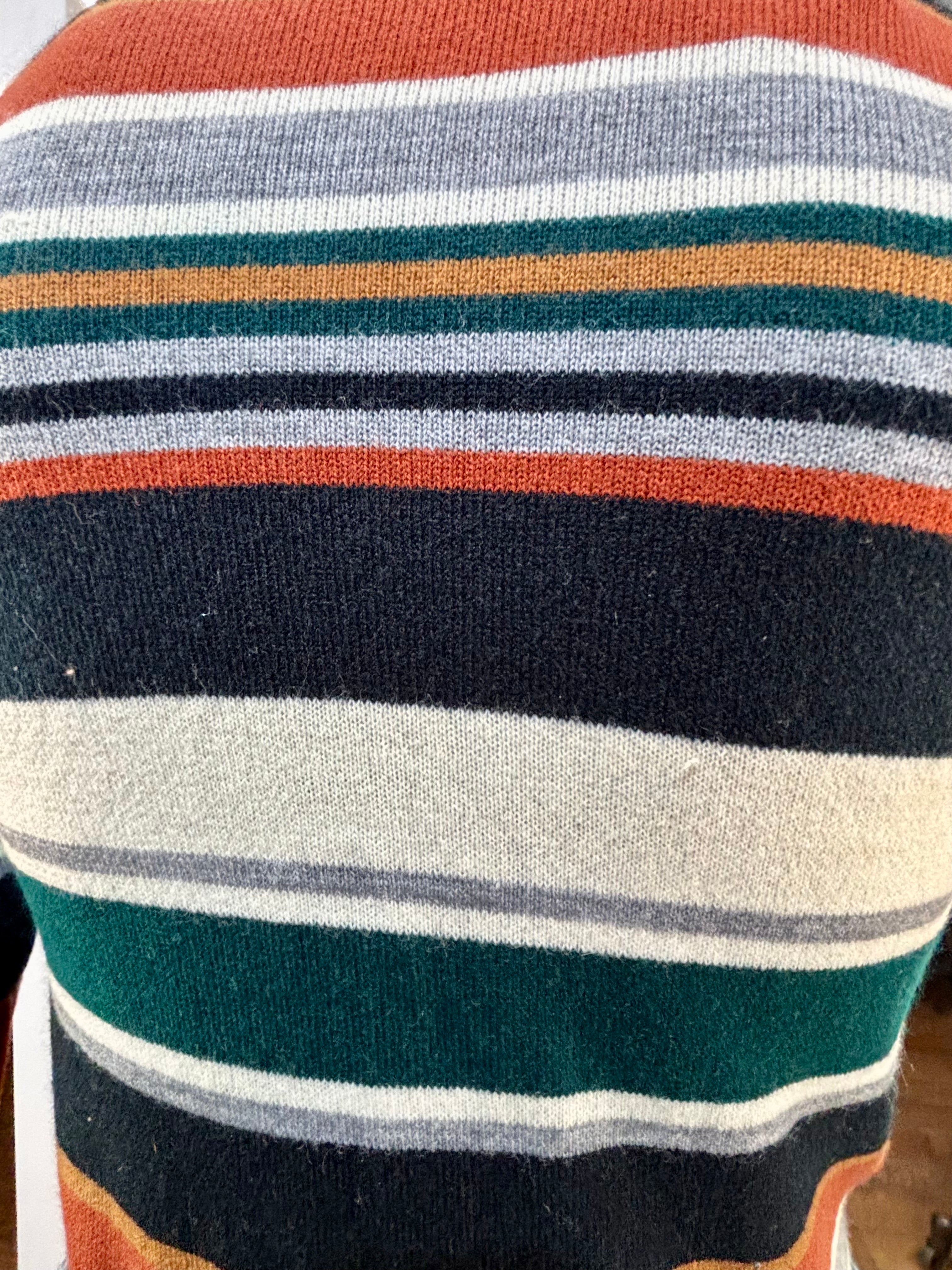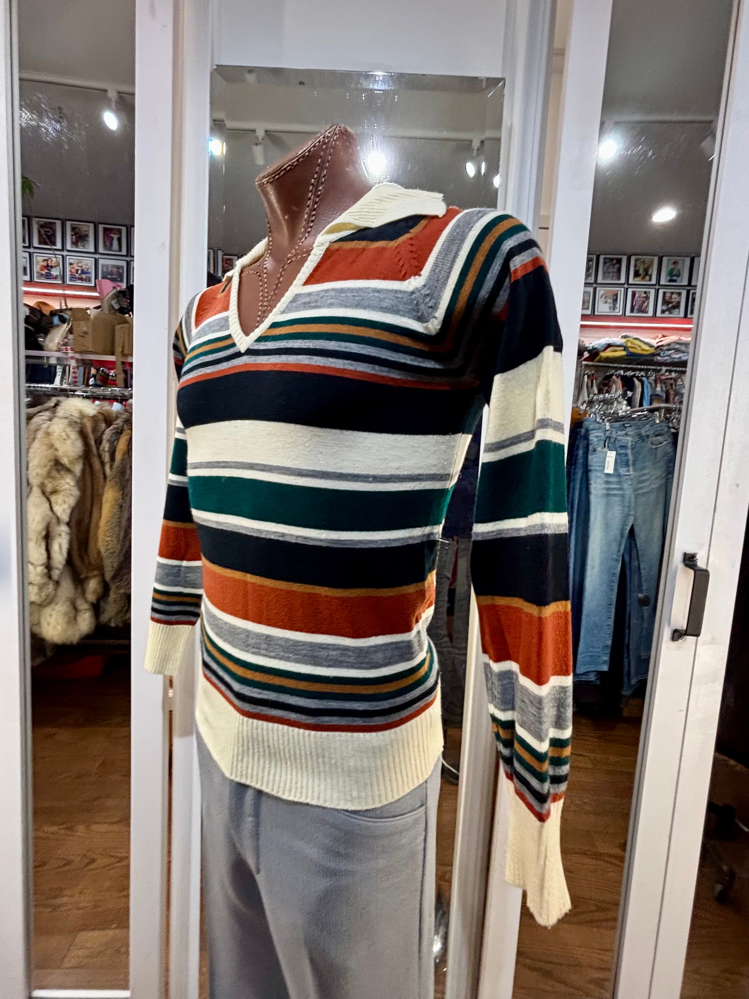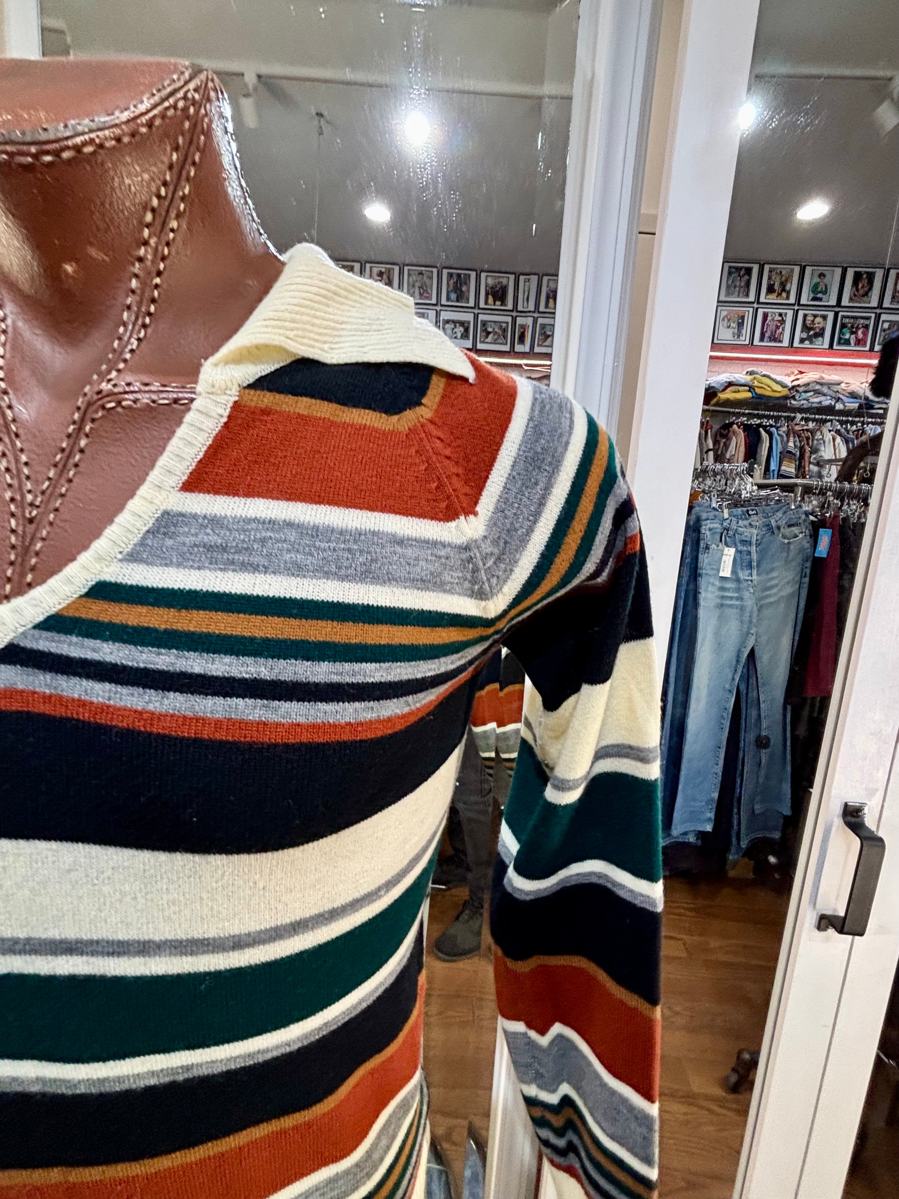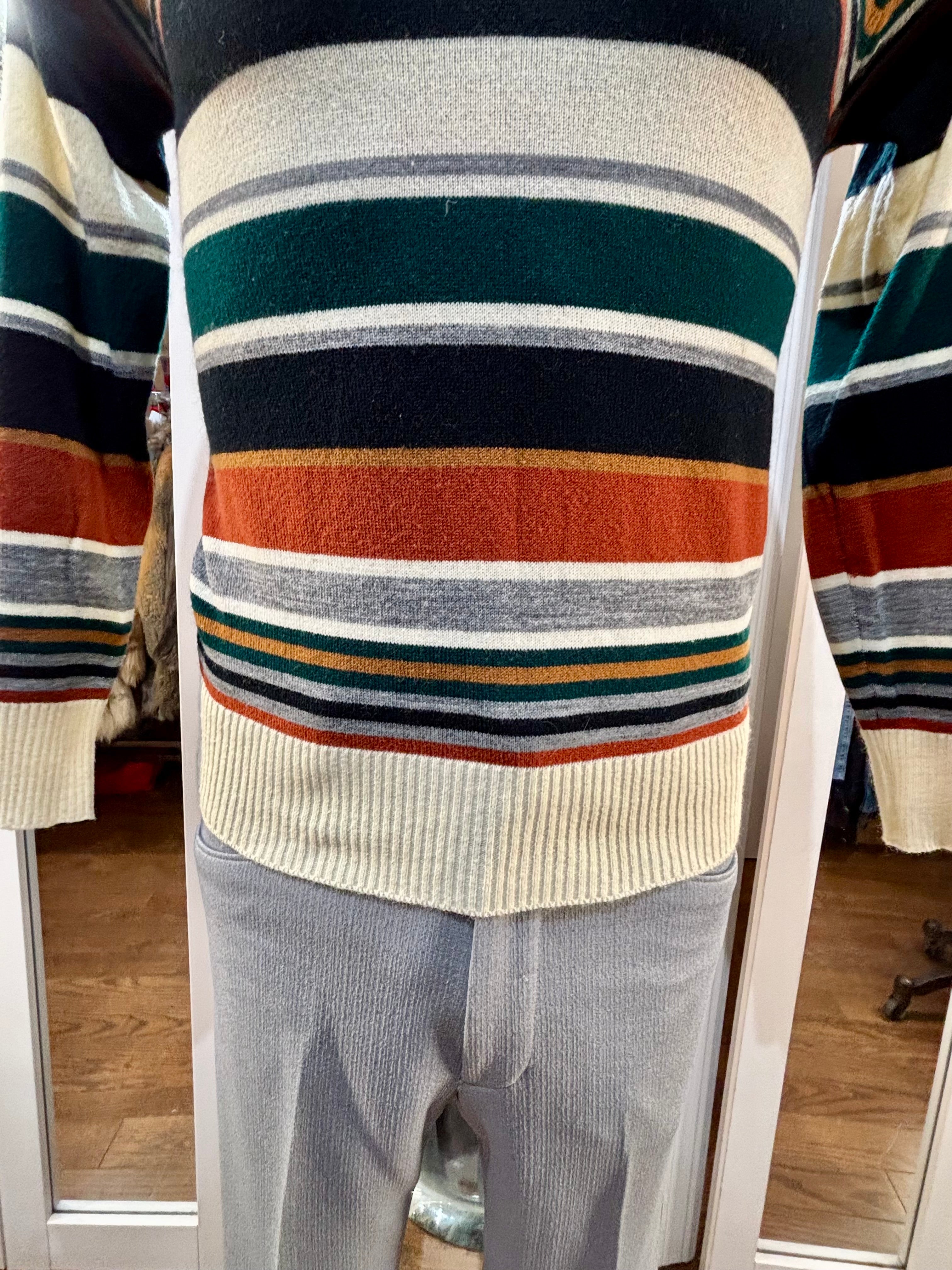 70’s Beige And Navy Multicolor Collared Striped Pull By Colageman
