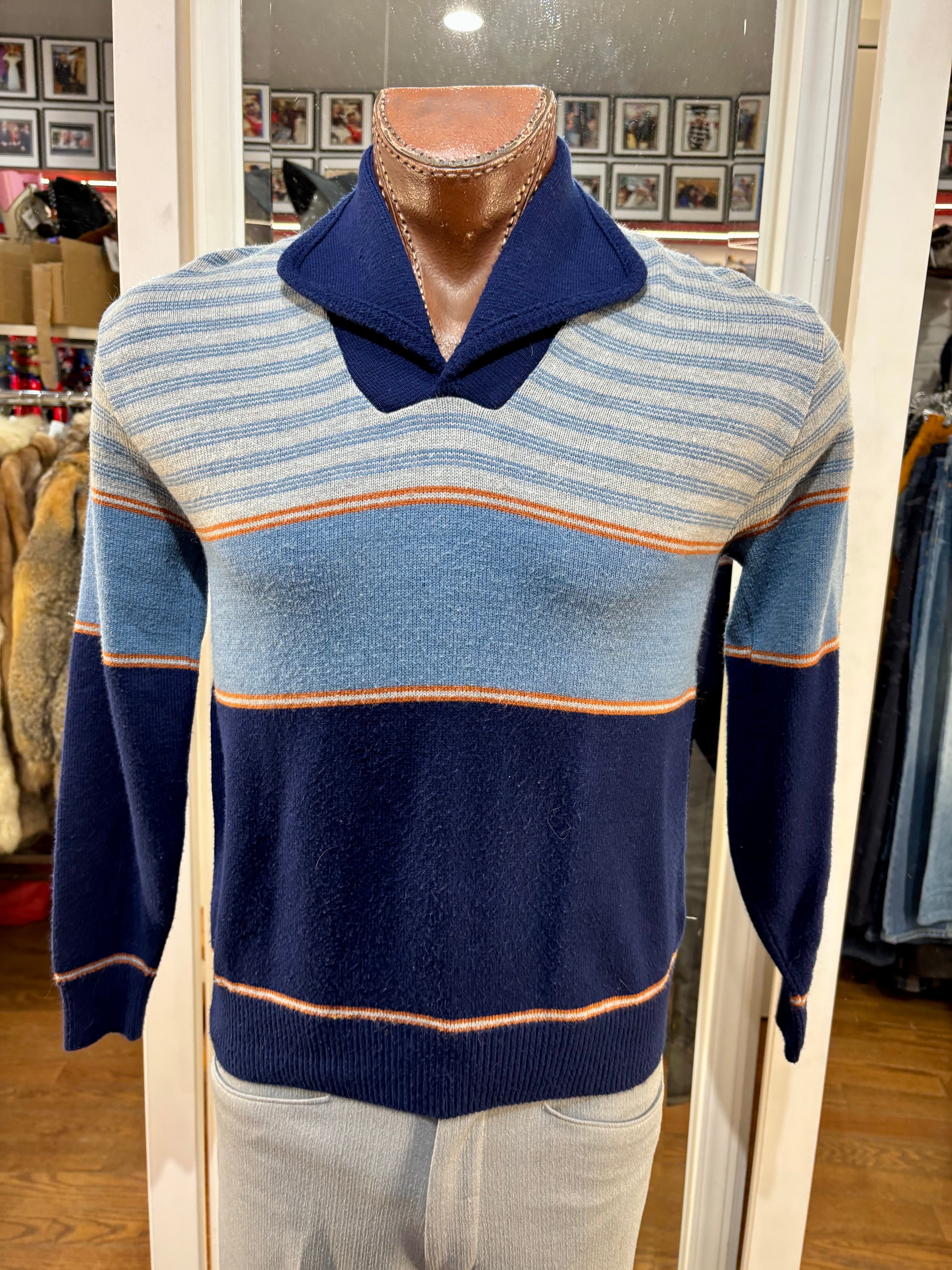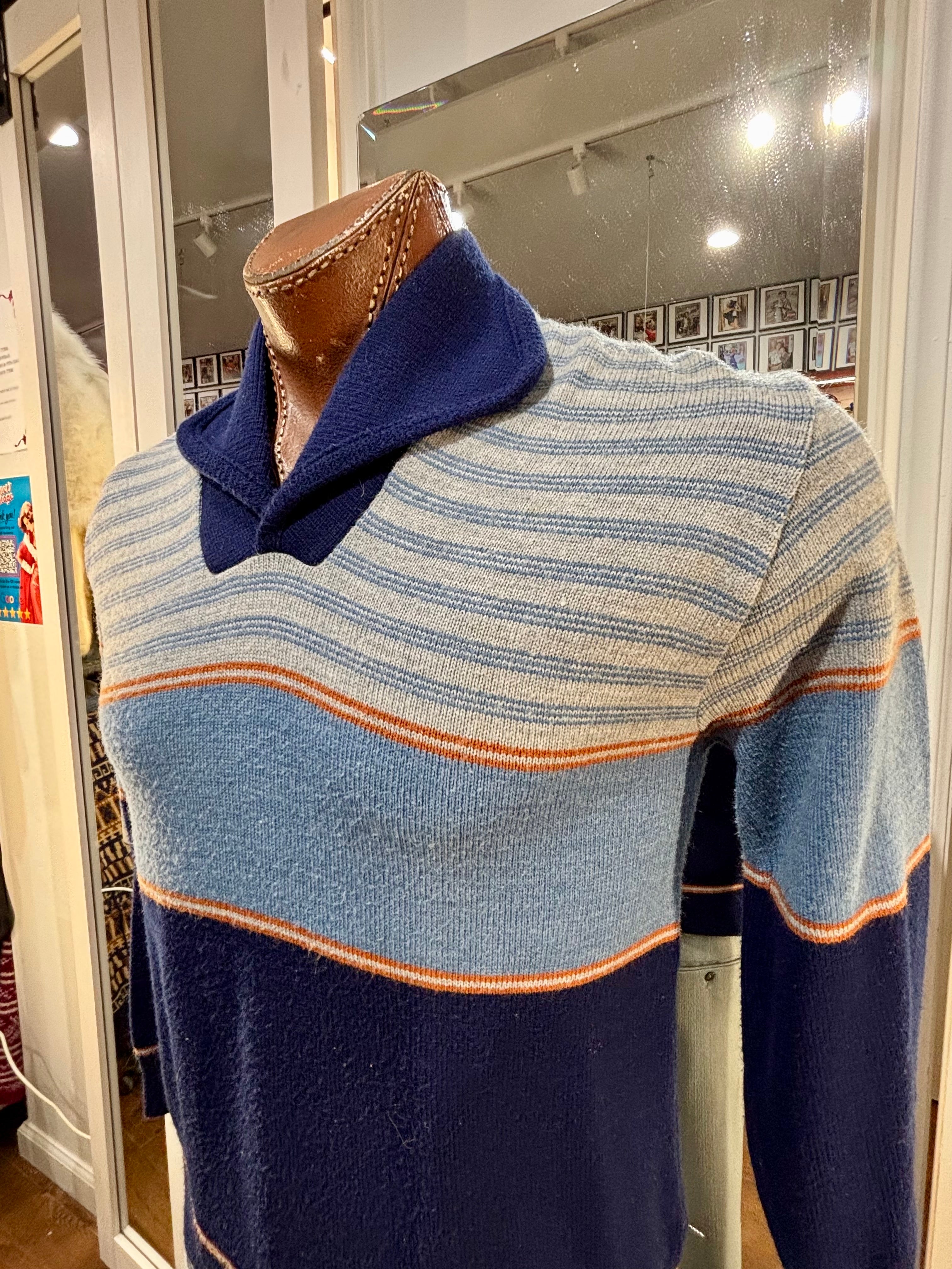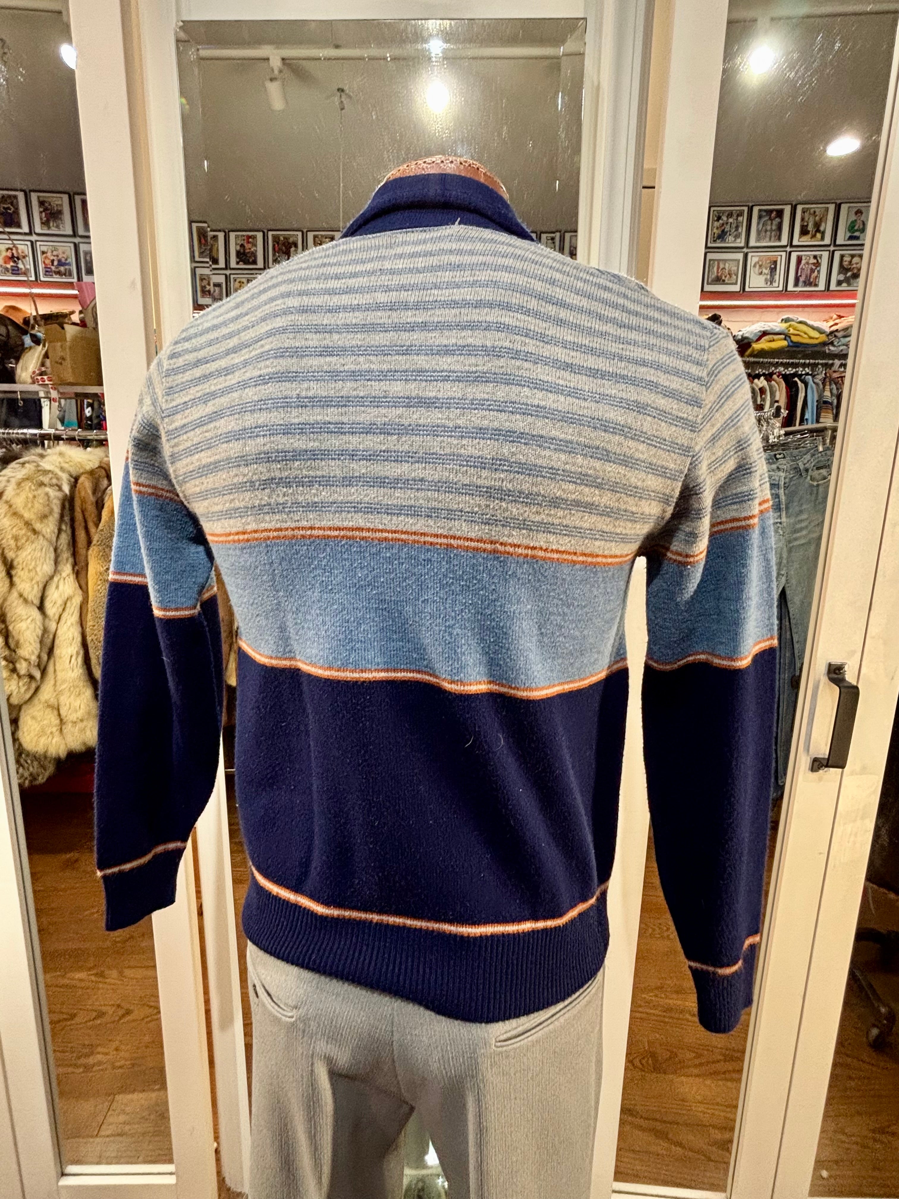 70’s Navy Multicolor Shawl CollarStriped Pull By JC Penney