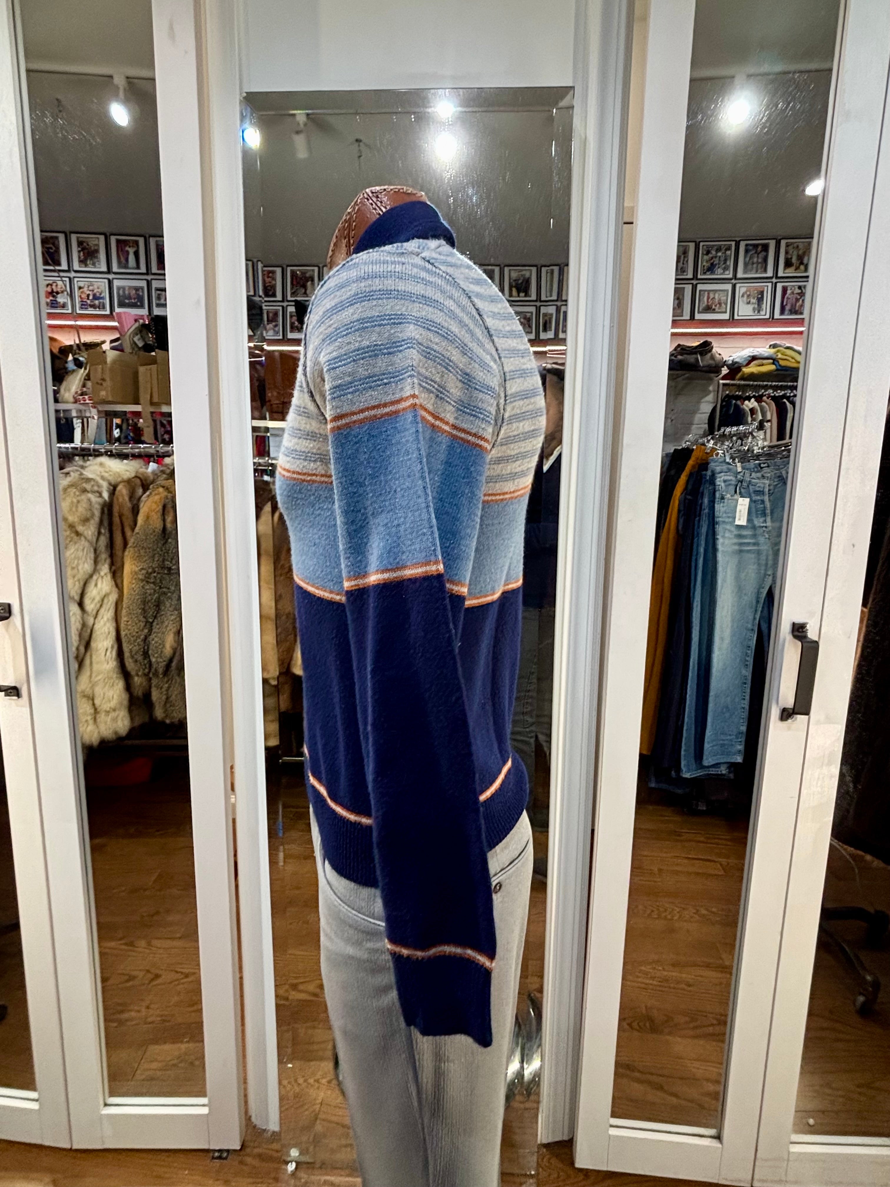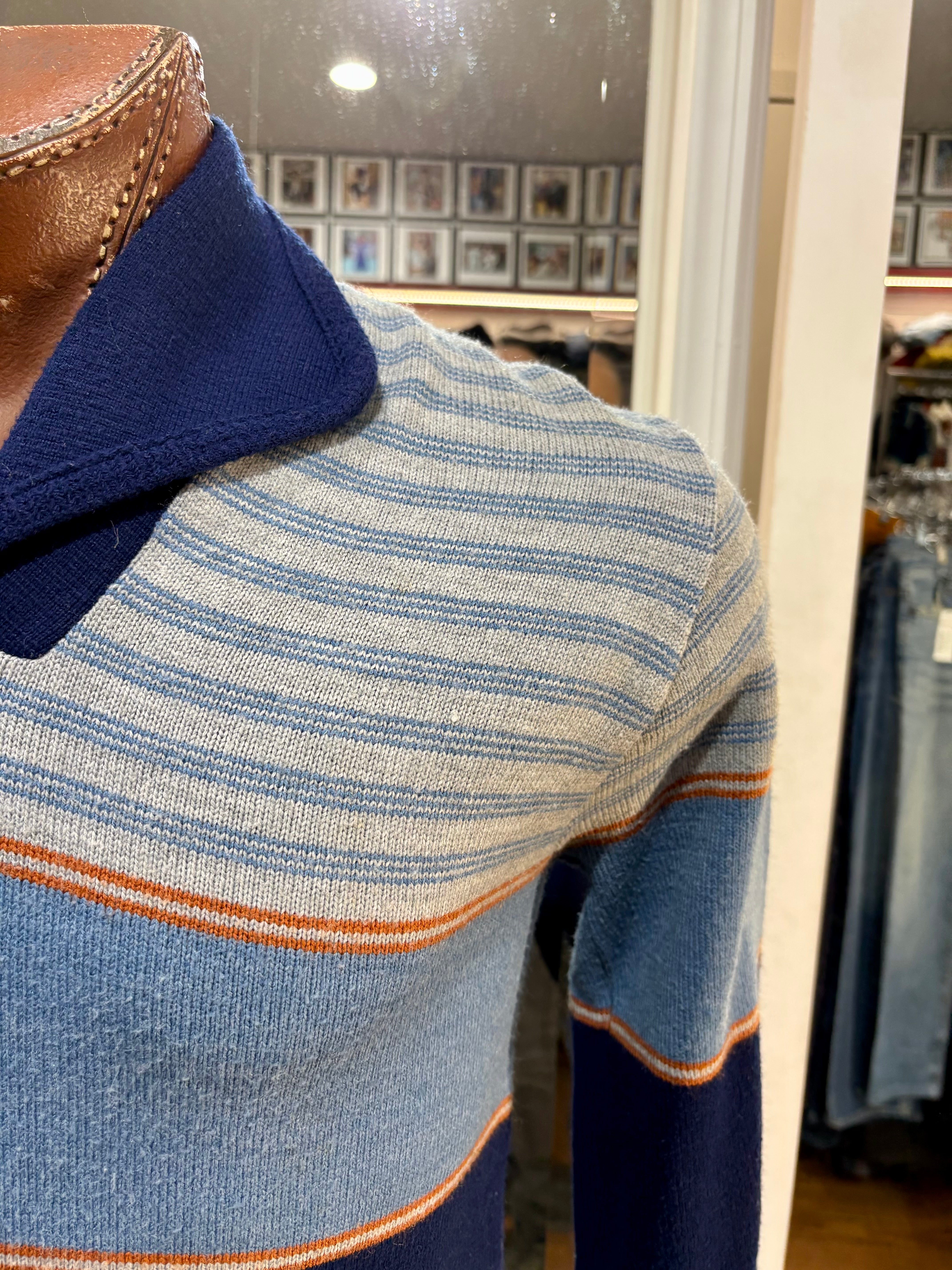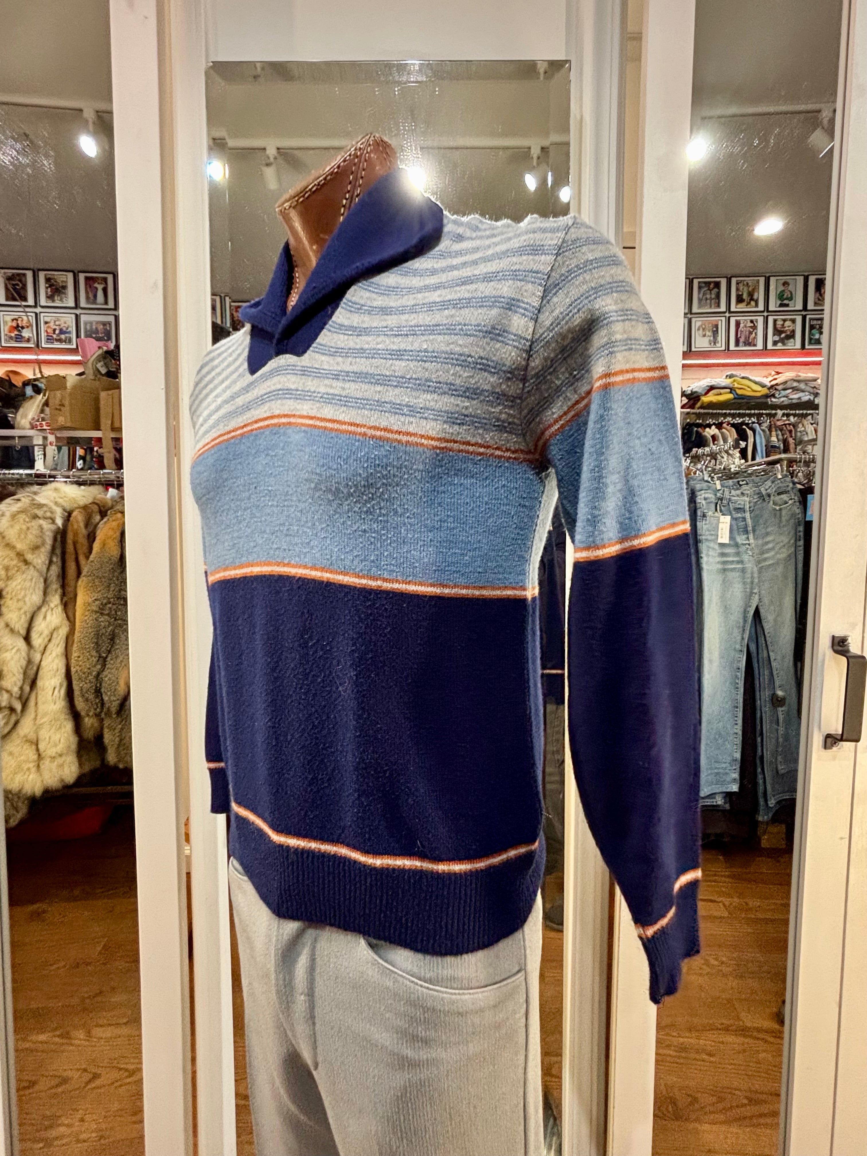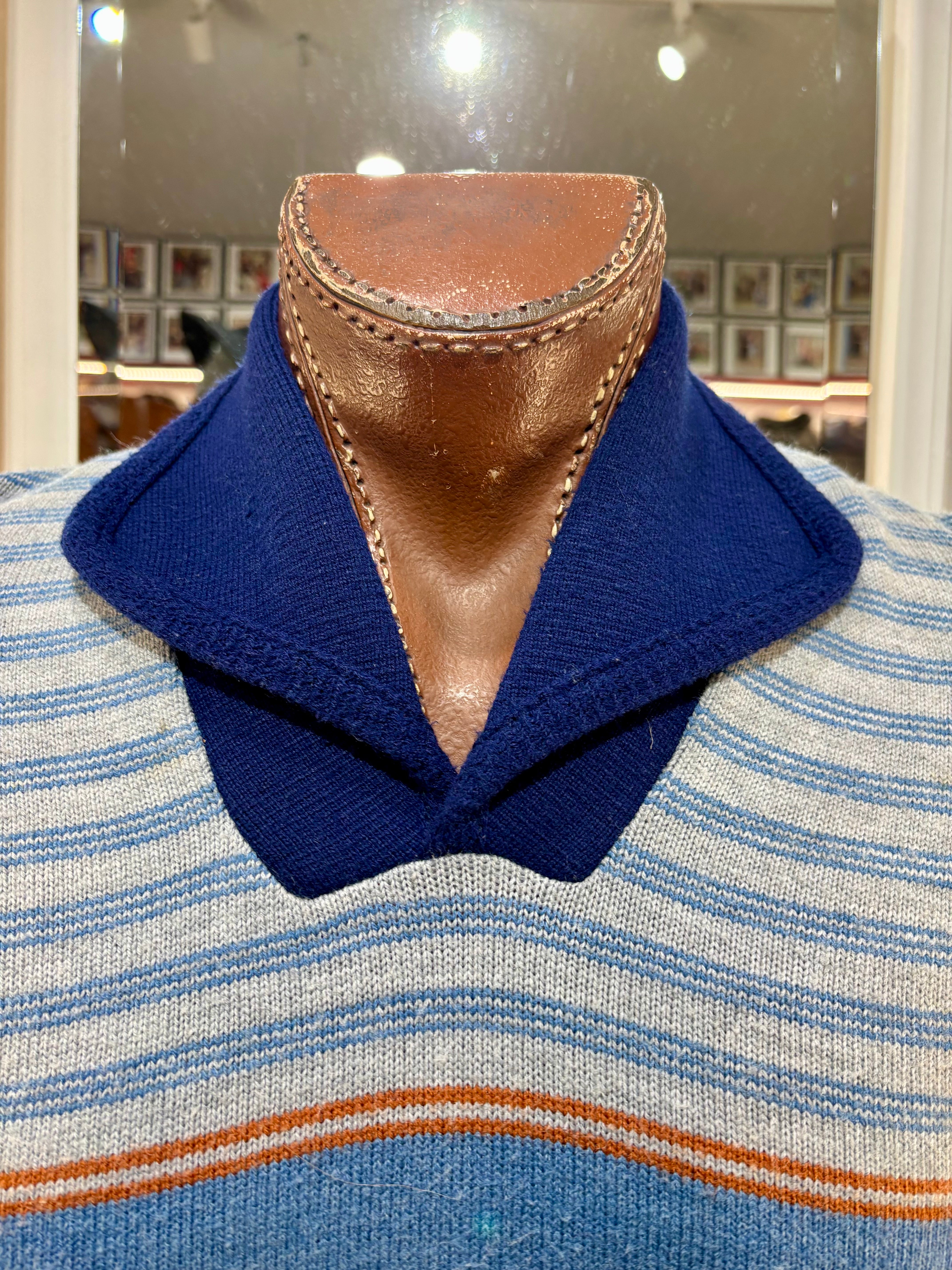 70’s Navy Multicolor Shawl CollarStriped Pull By JC Penney