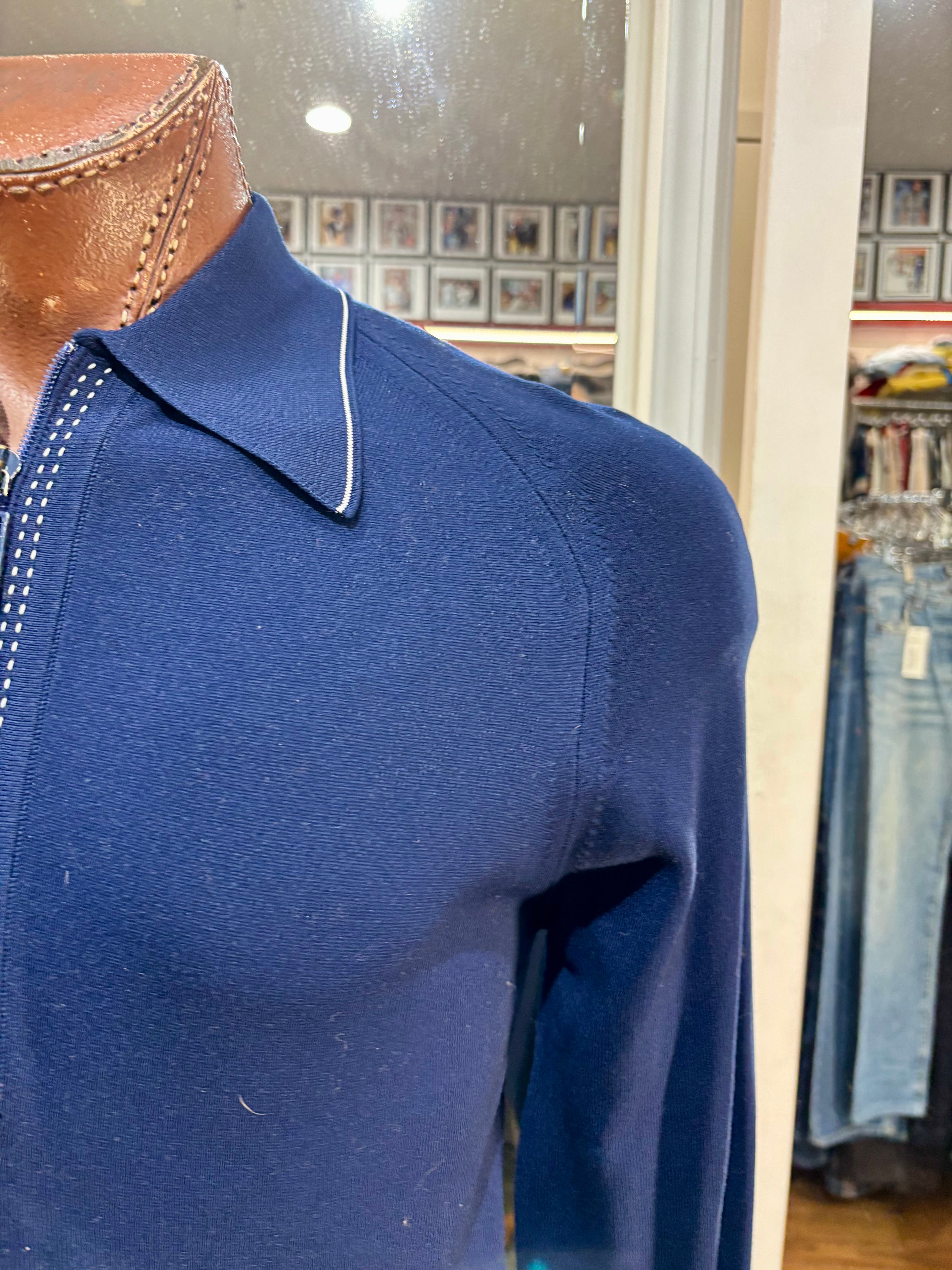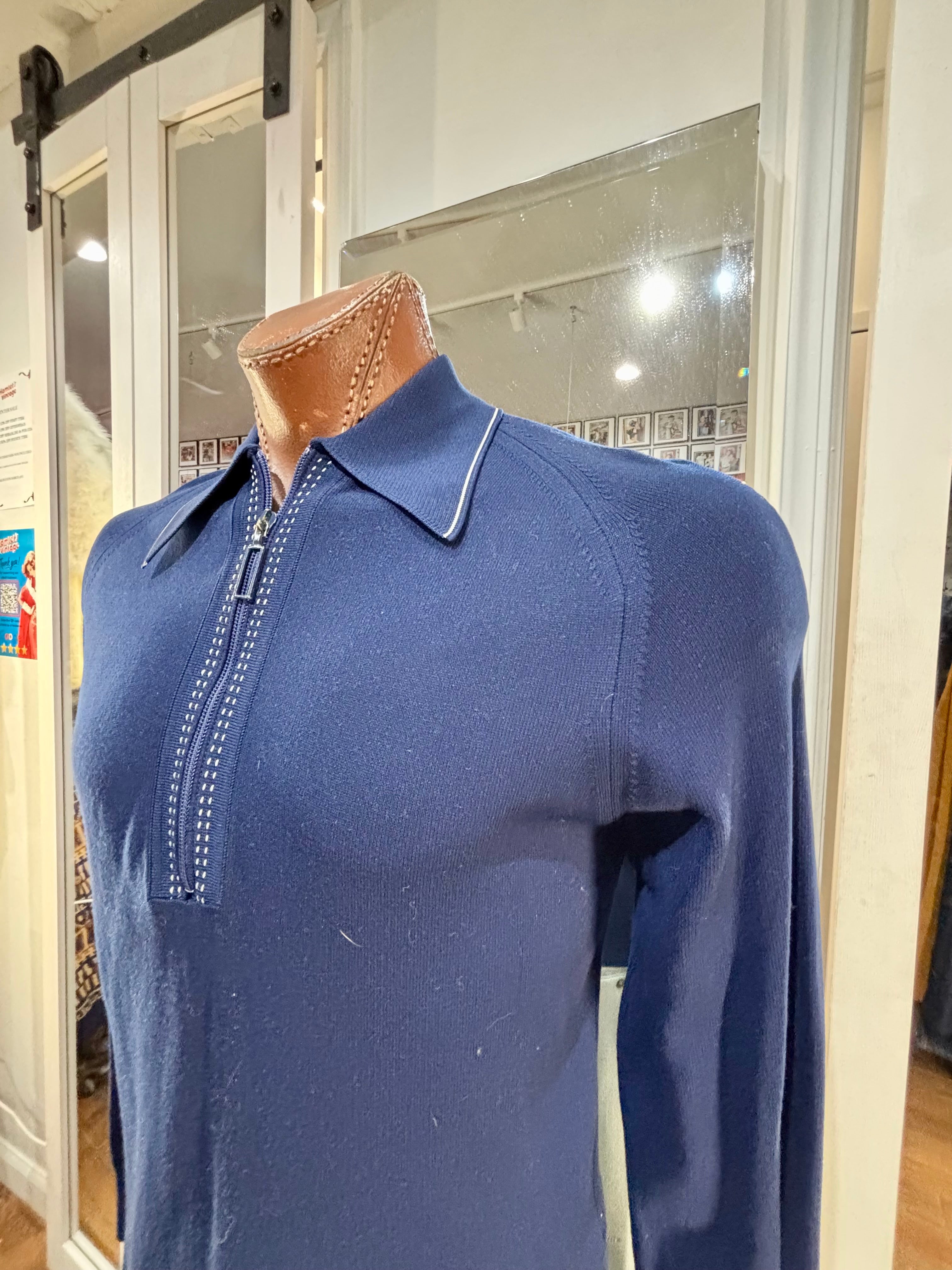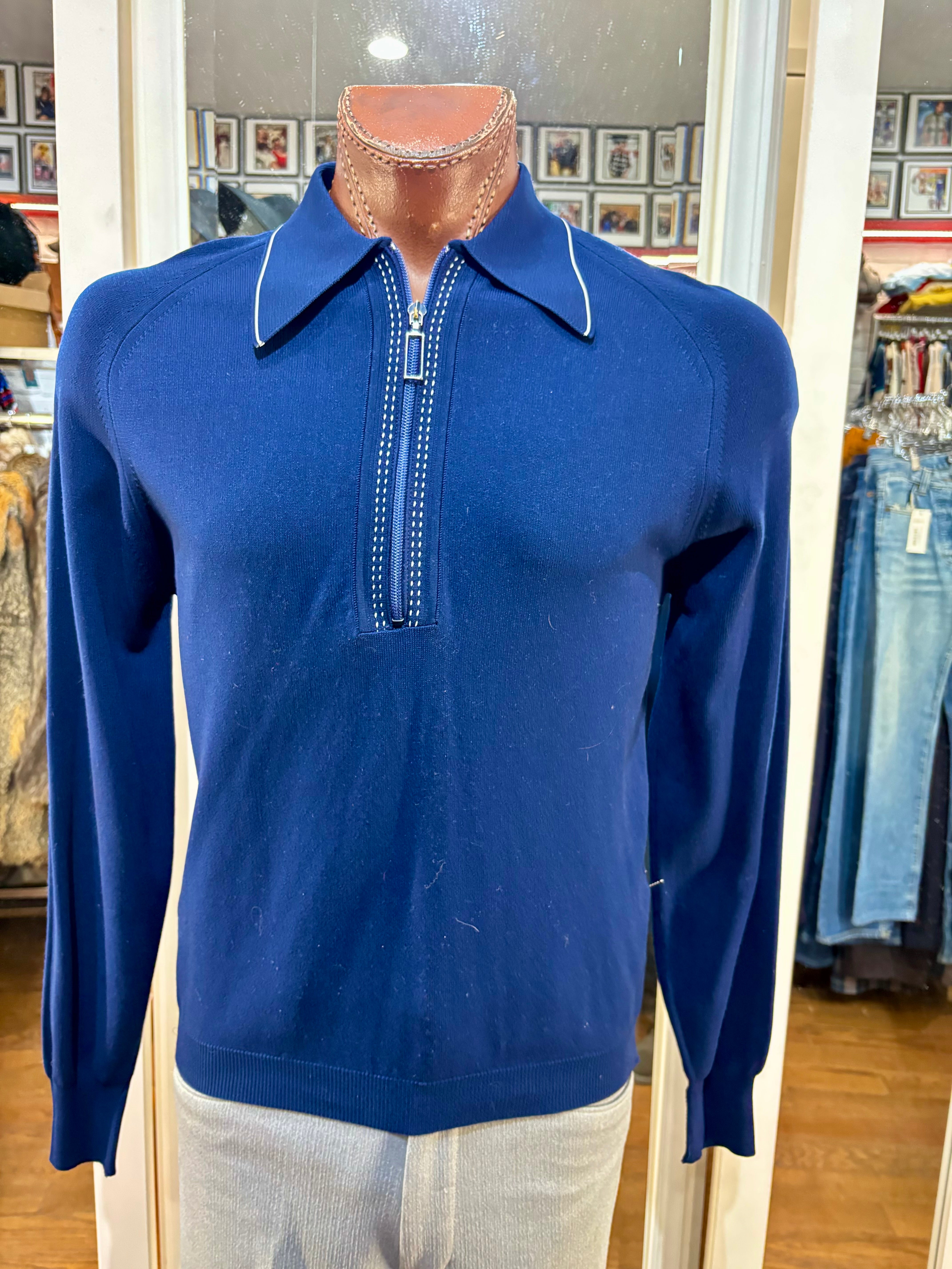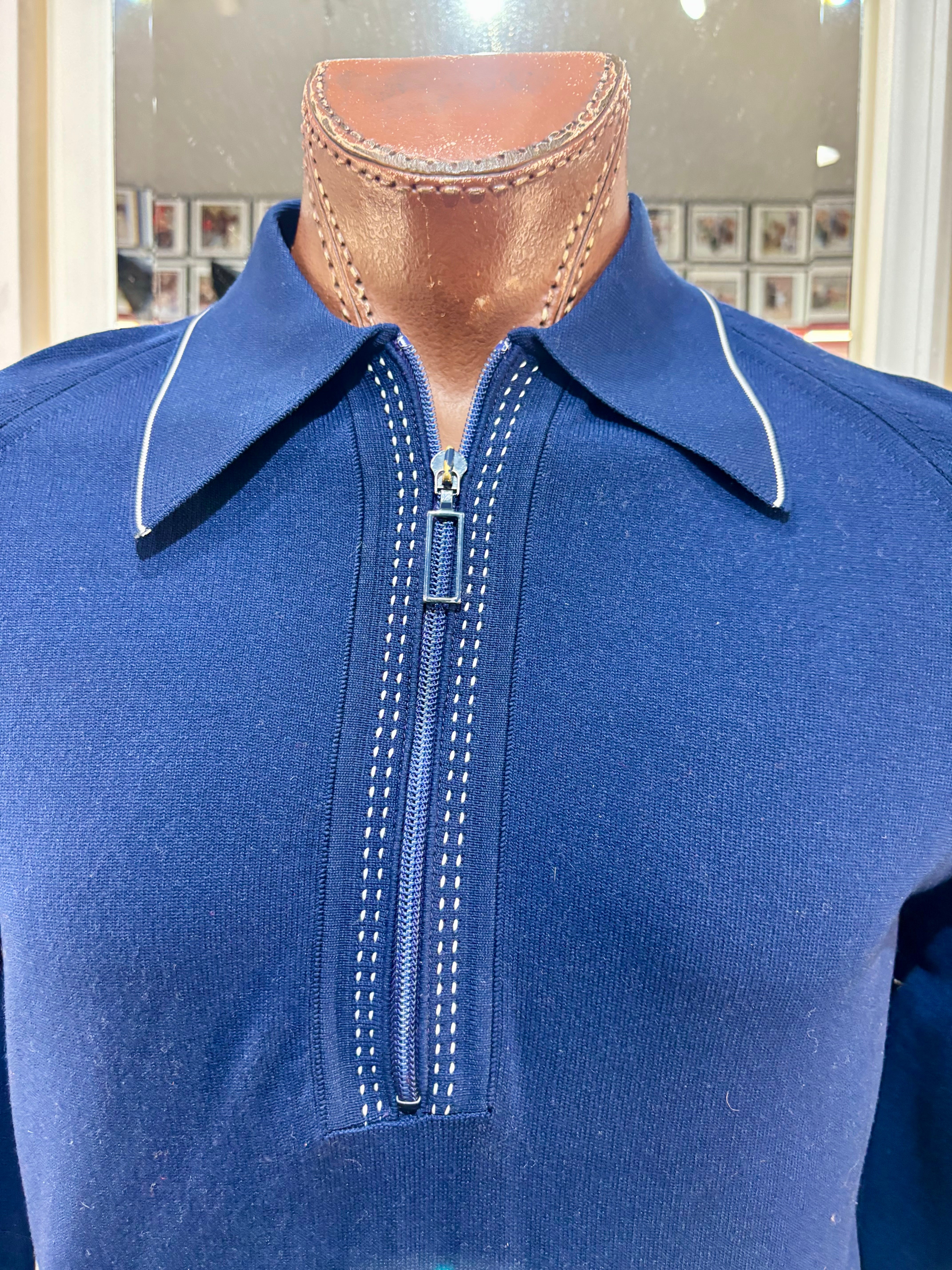 70’s Navy Zip Collared Pull By Puritan