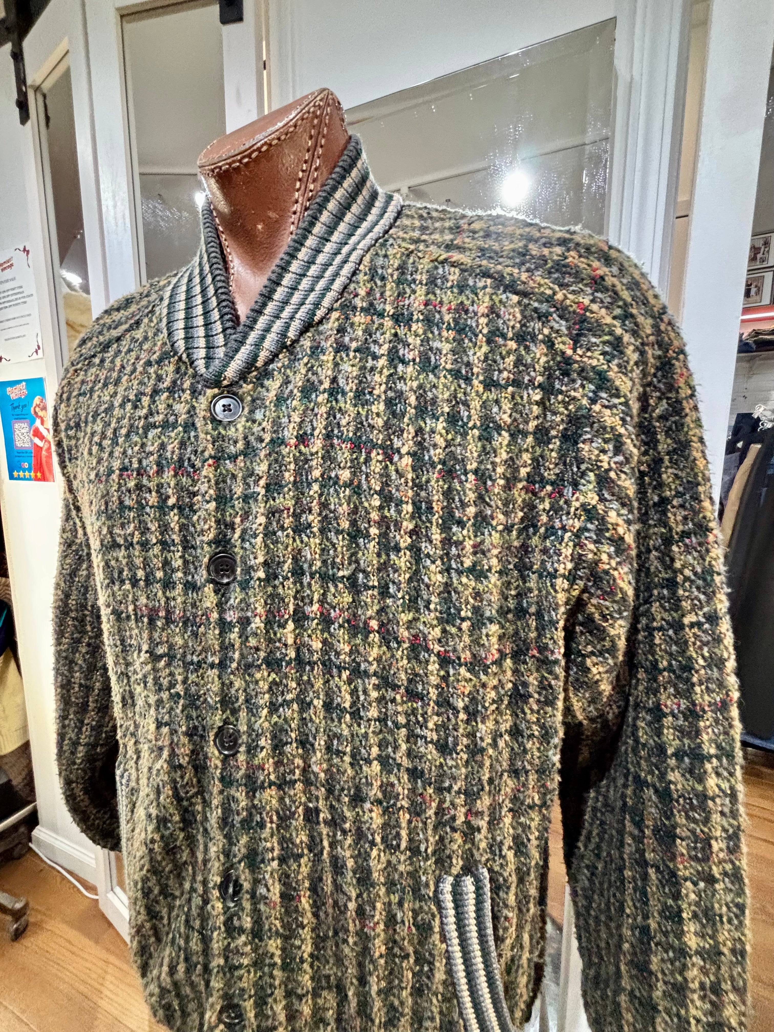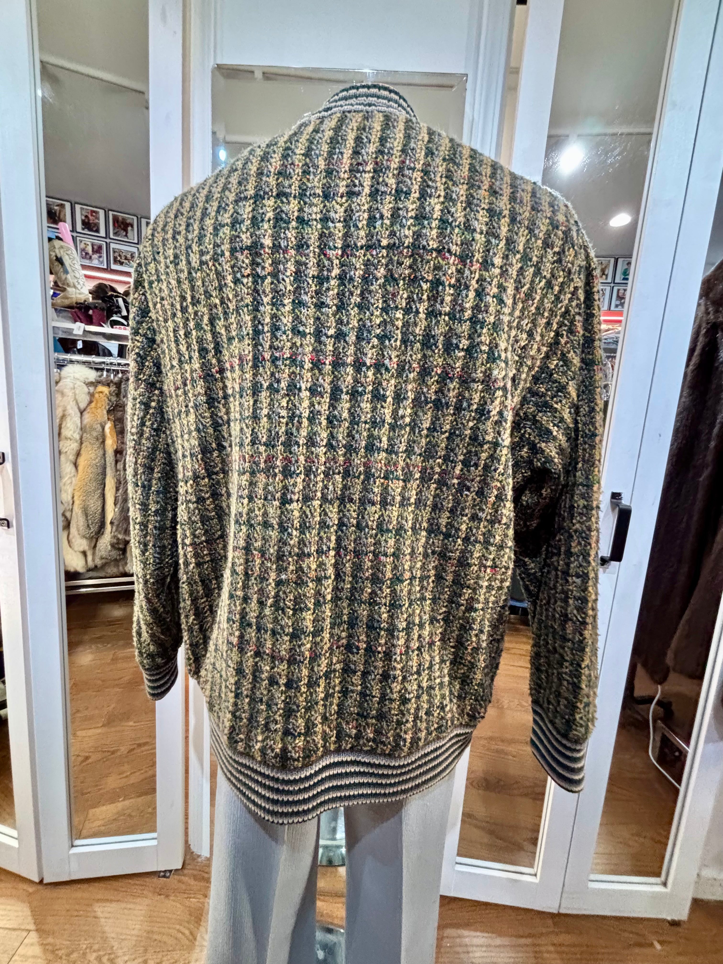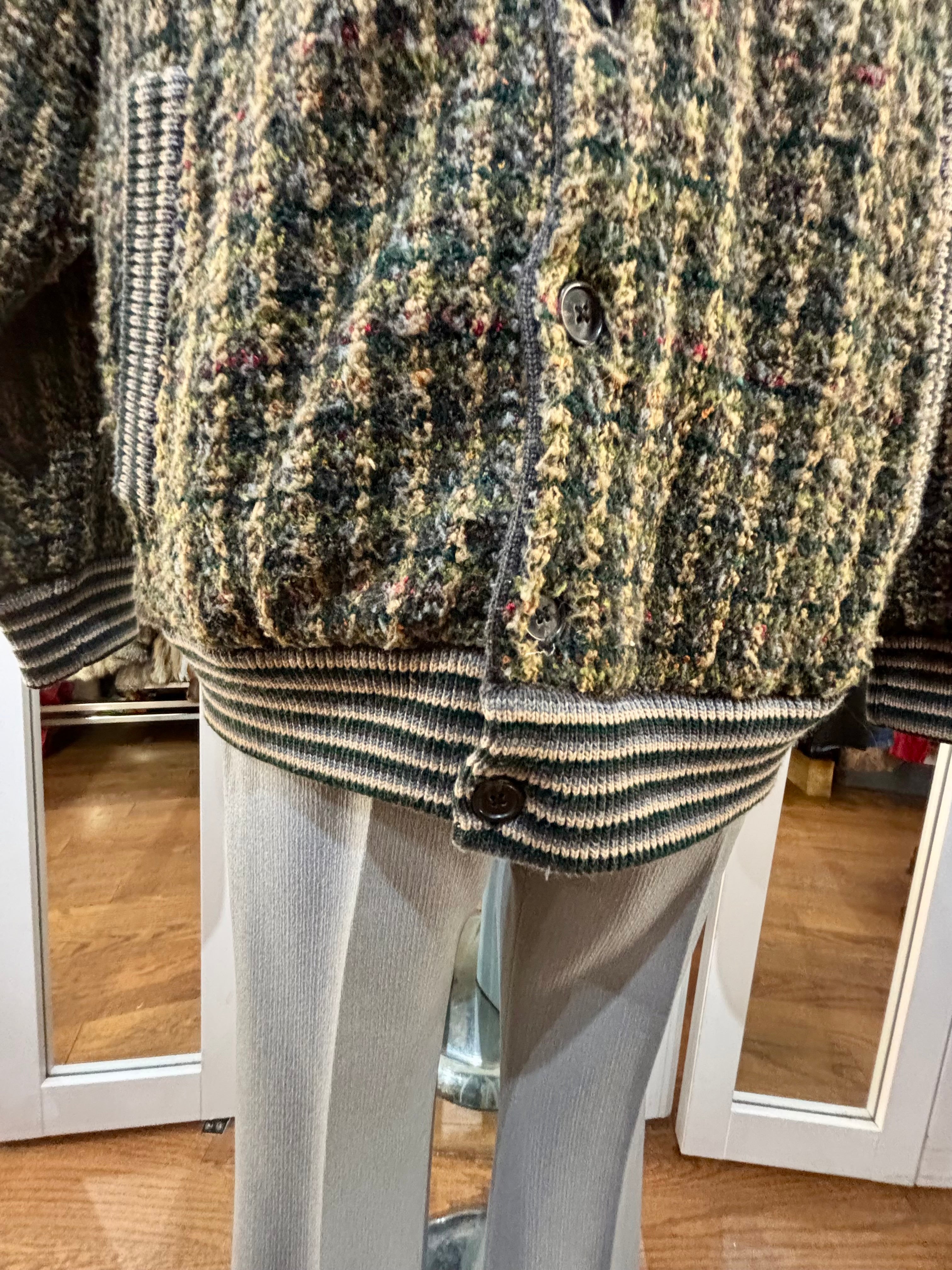 80’s Going 60’s Olive Green Knit Buttoned Bomber Jacket By HM Linea