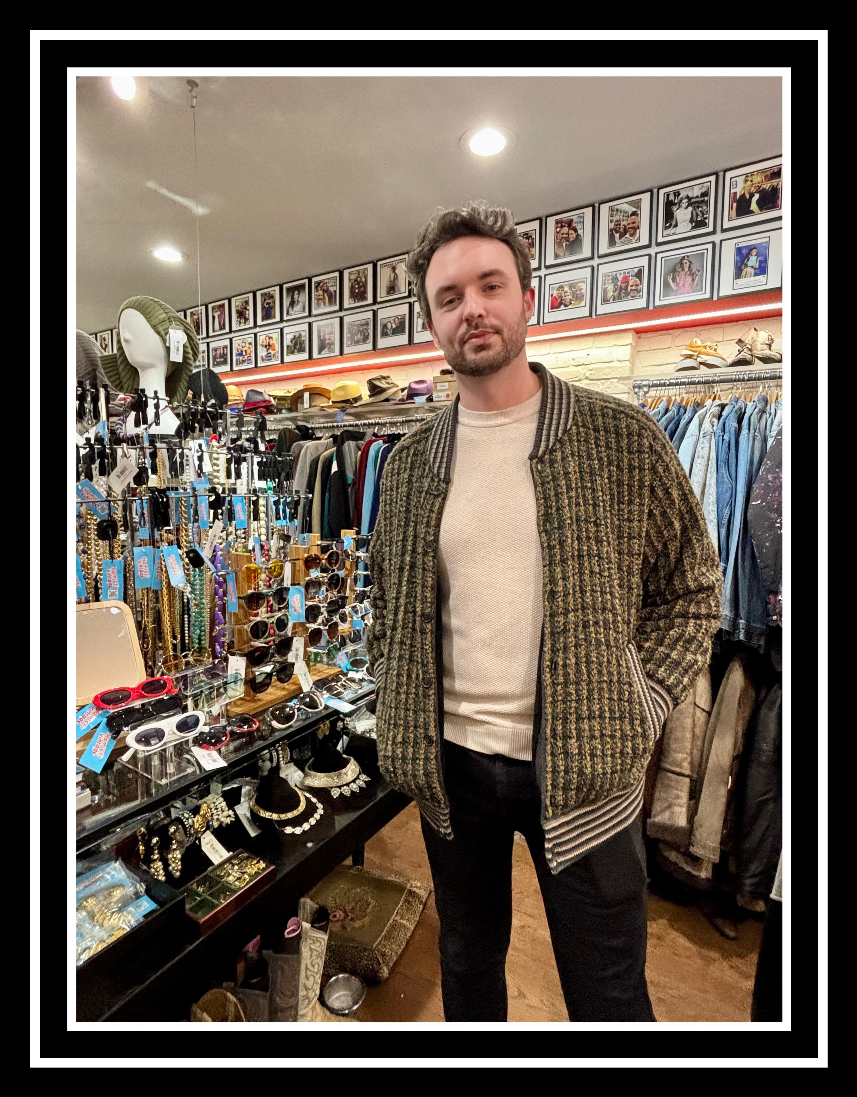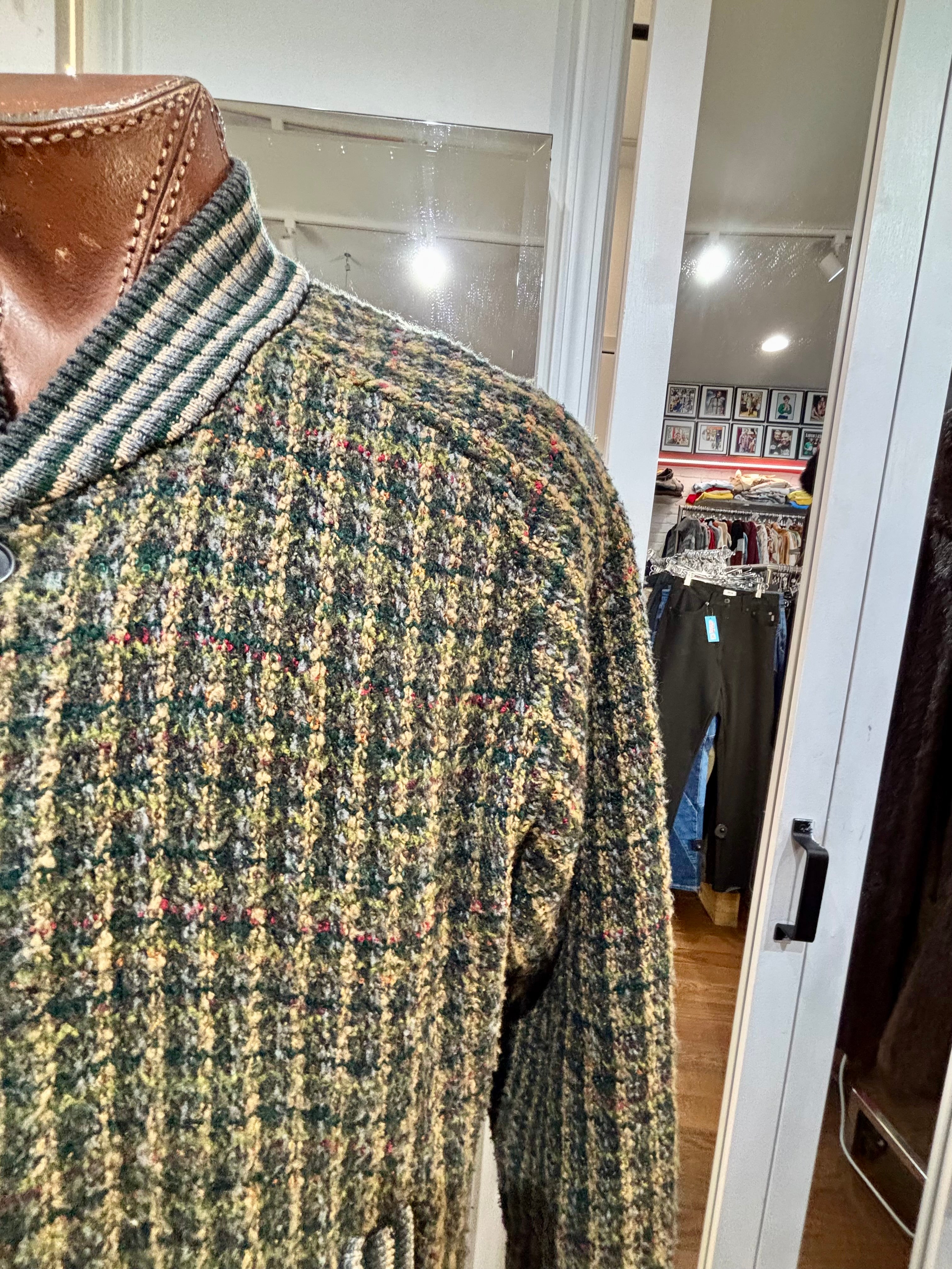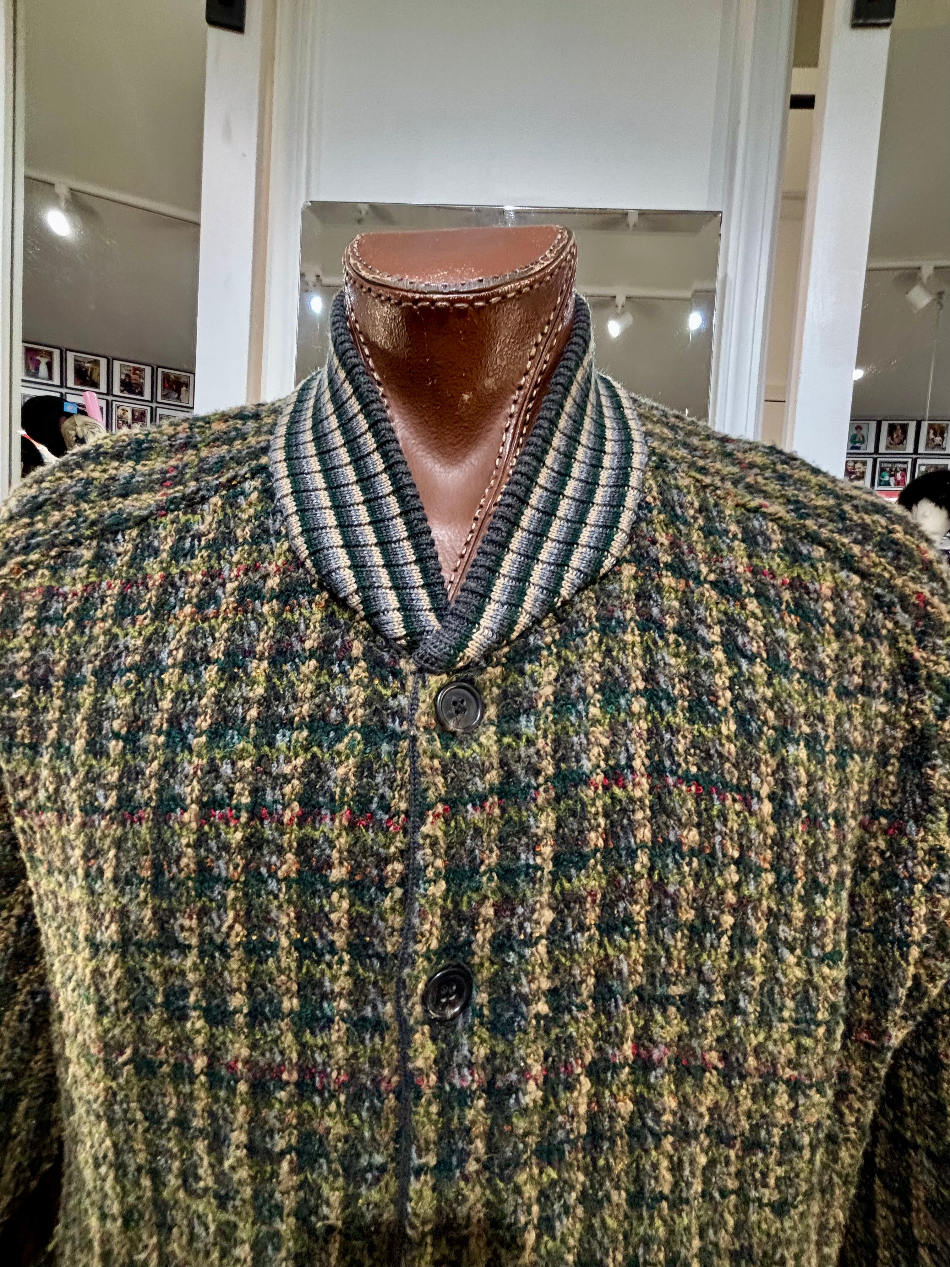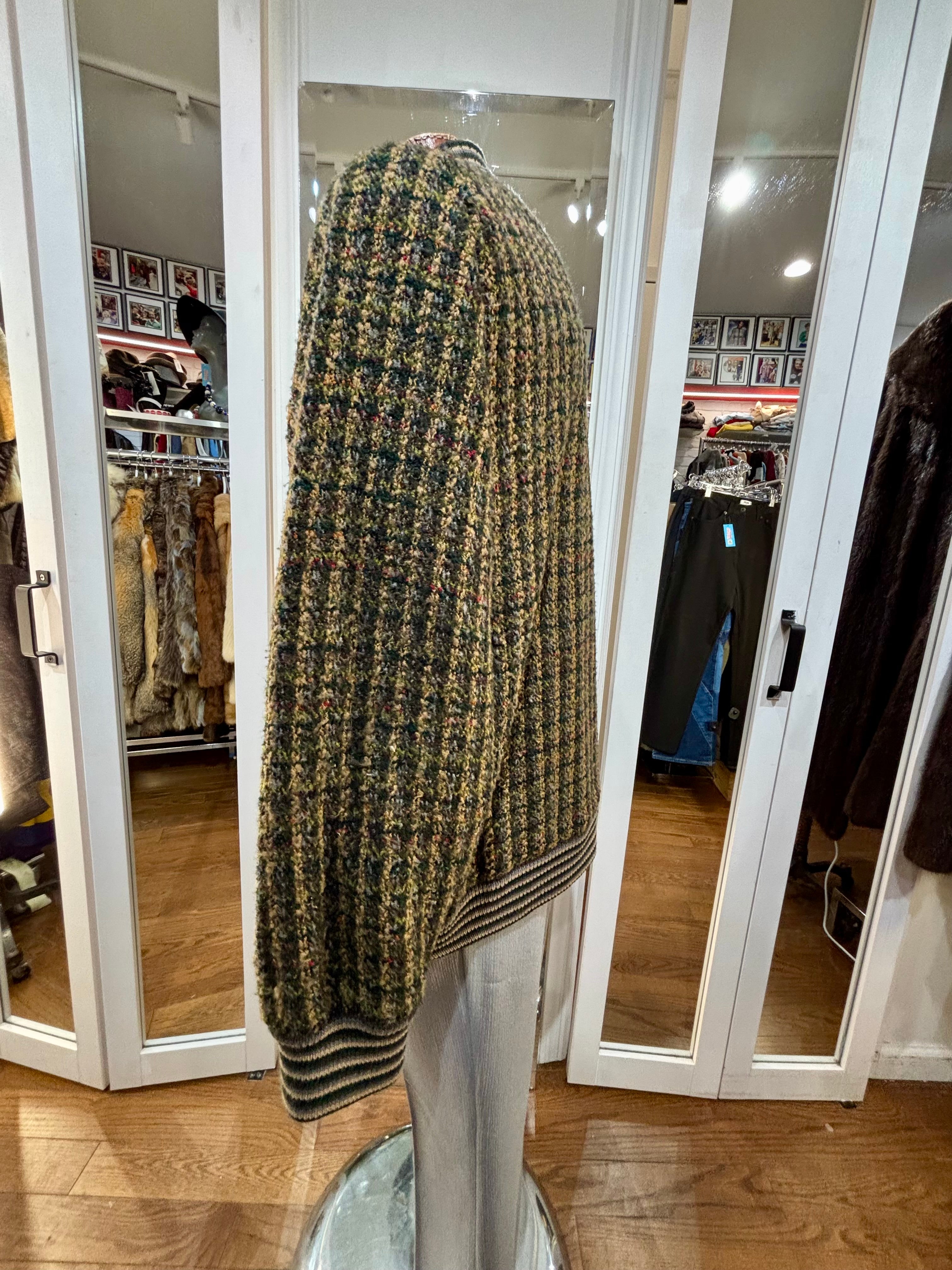80’s Going 60’s Olive Green Knit Buttoned Bomber Jacket By HM Linea