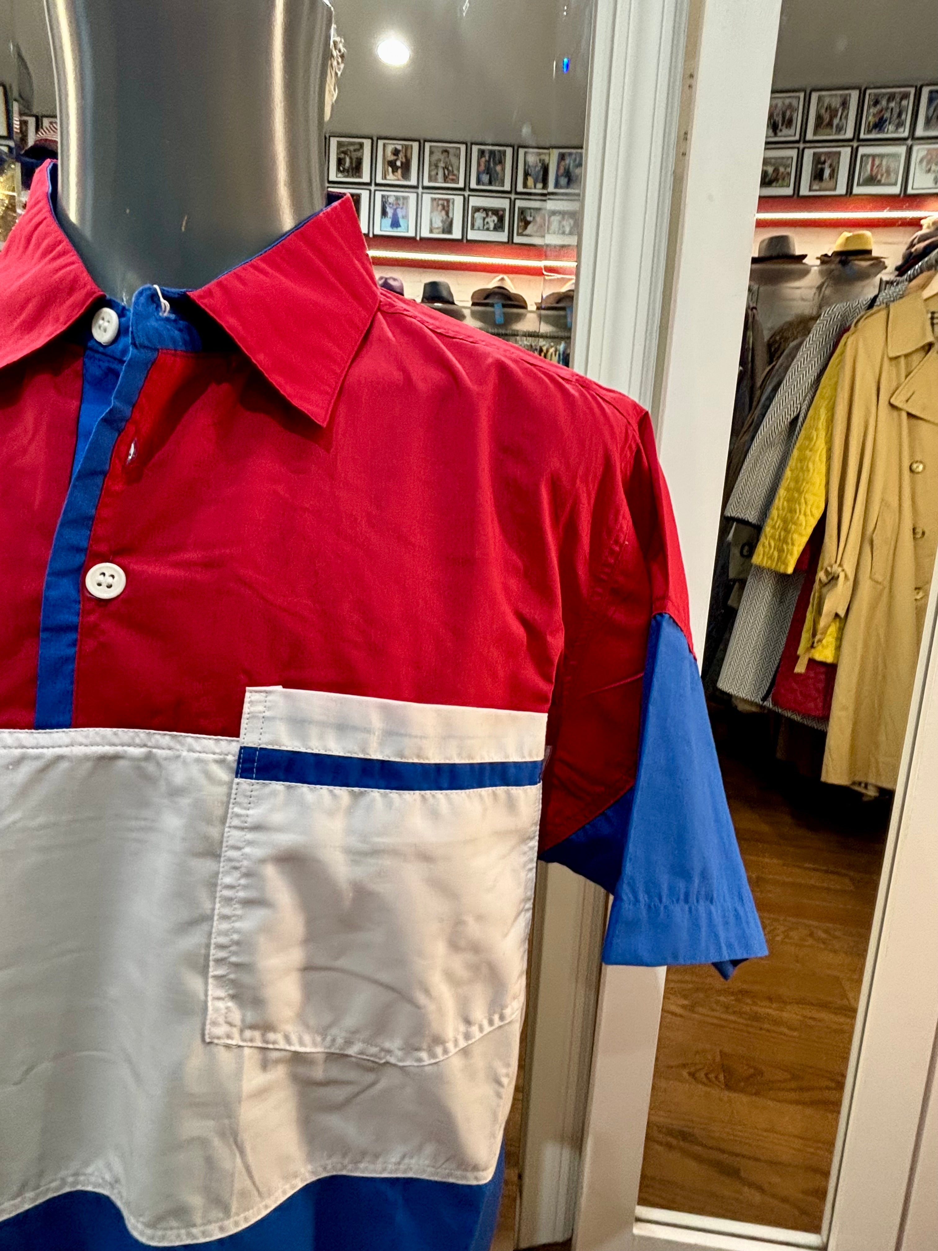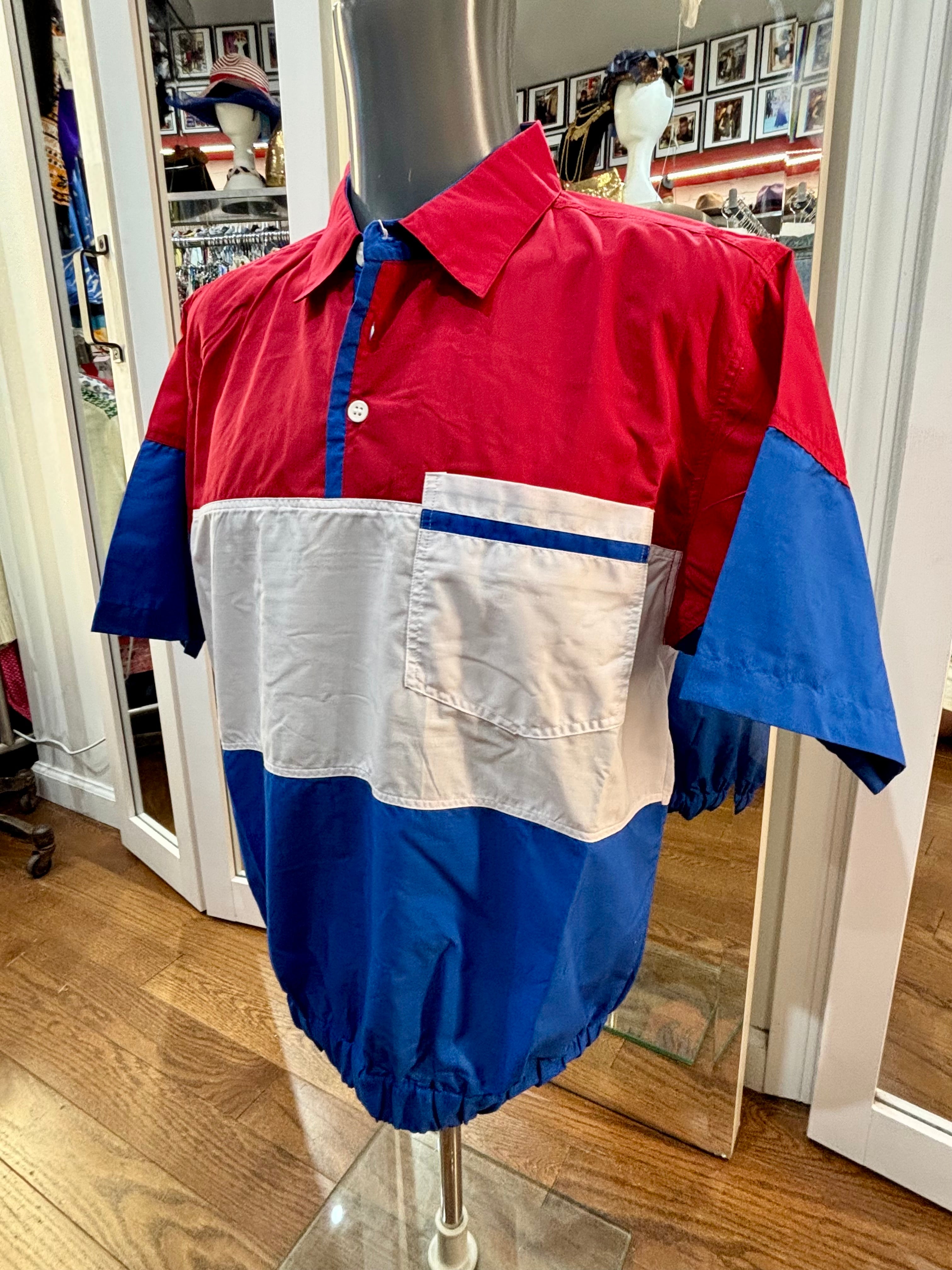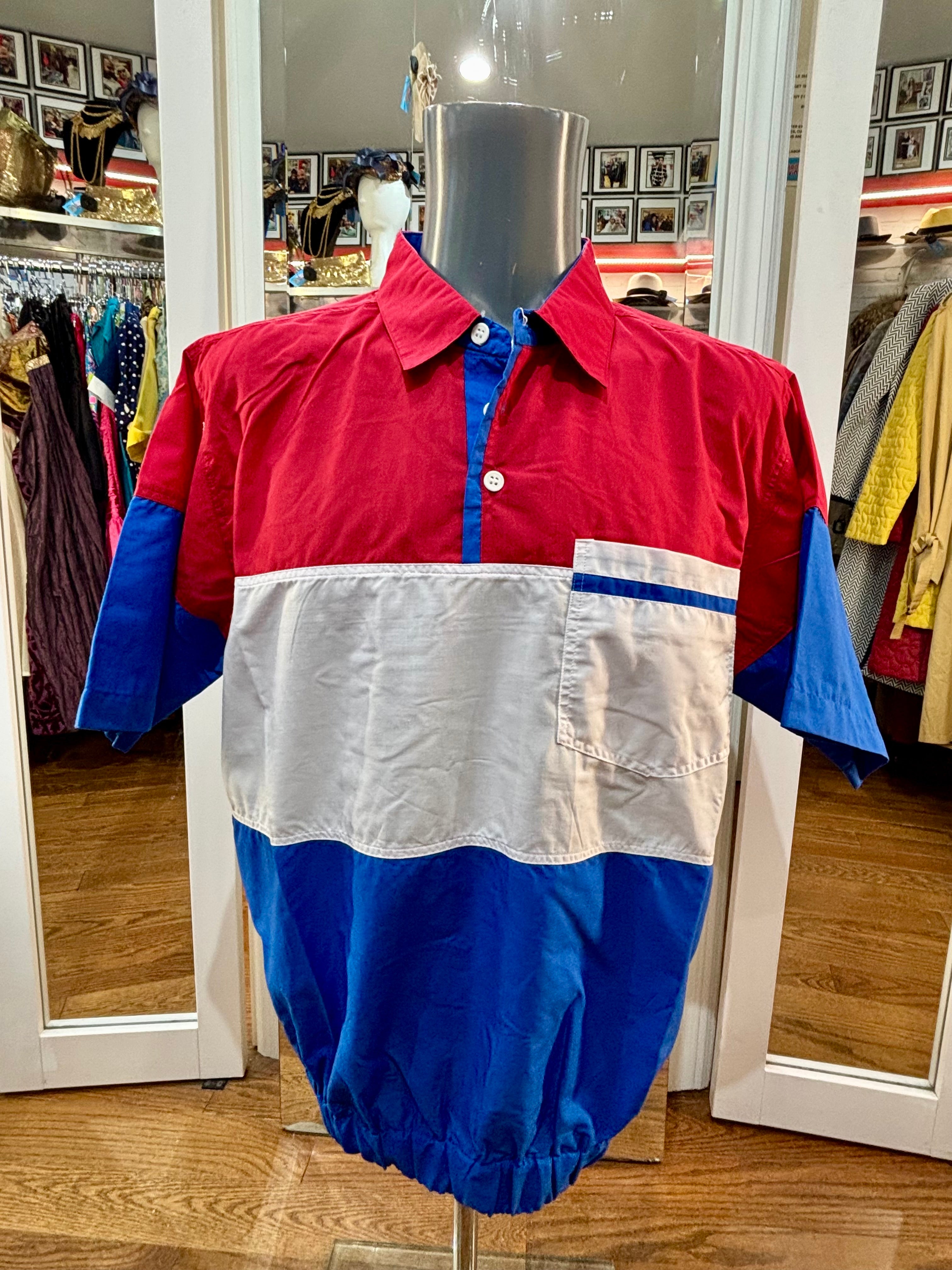 80’s White Multicolor Banded Color Block Style Shirt By Award - Deadstock